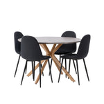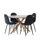 Jídelní stůl Piazza – přírodní / tmavě šedý stříkaný kámen + jídelní židle Polar – černé nohy – černá látka _4