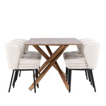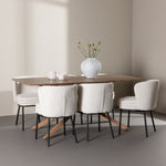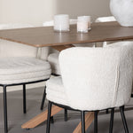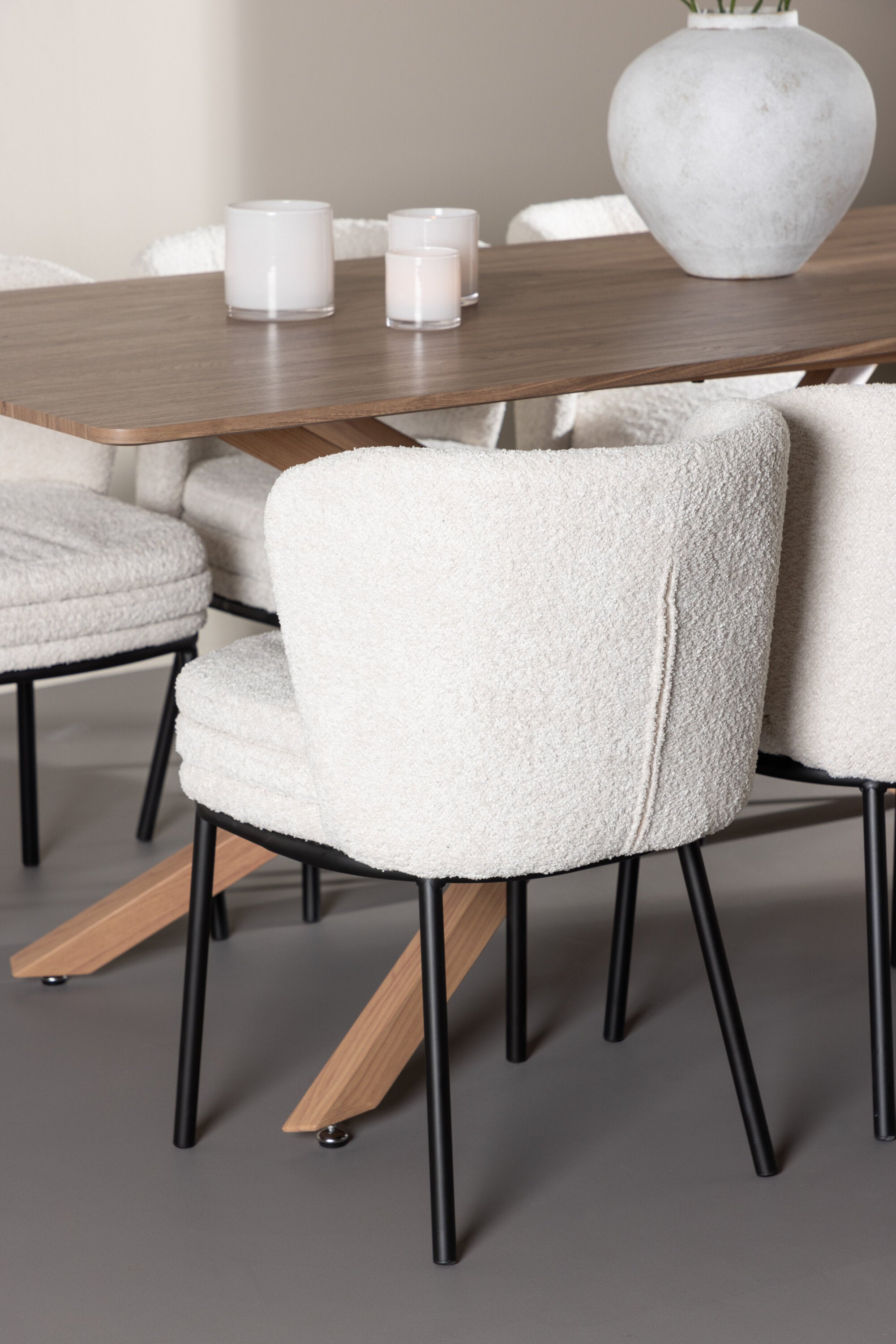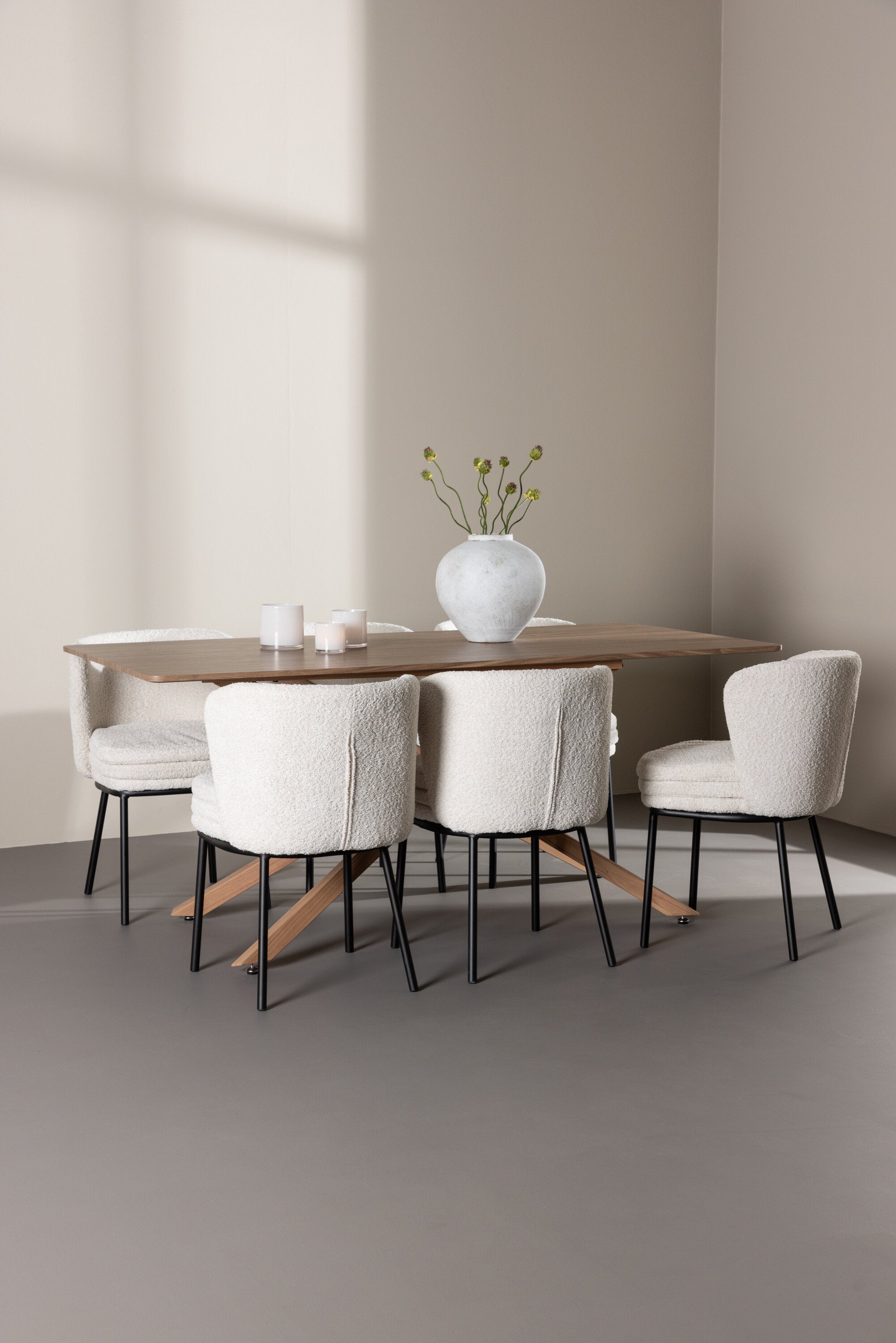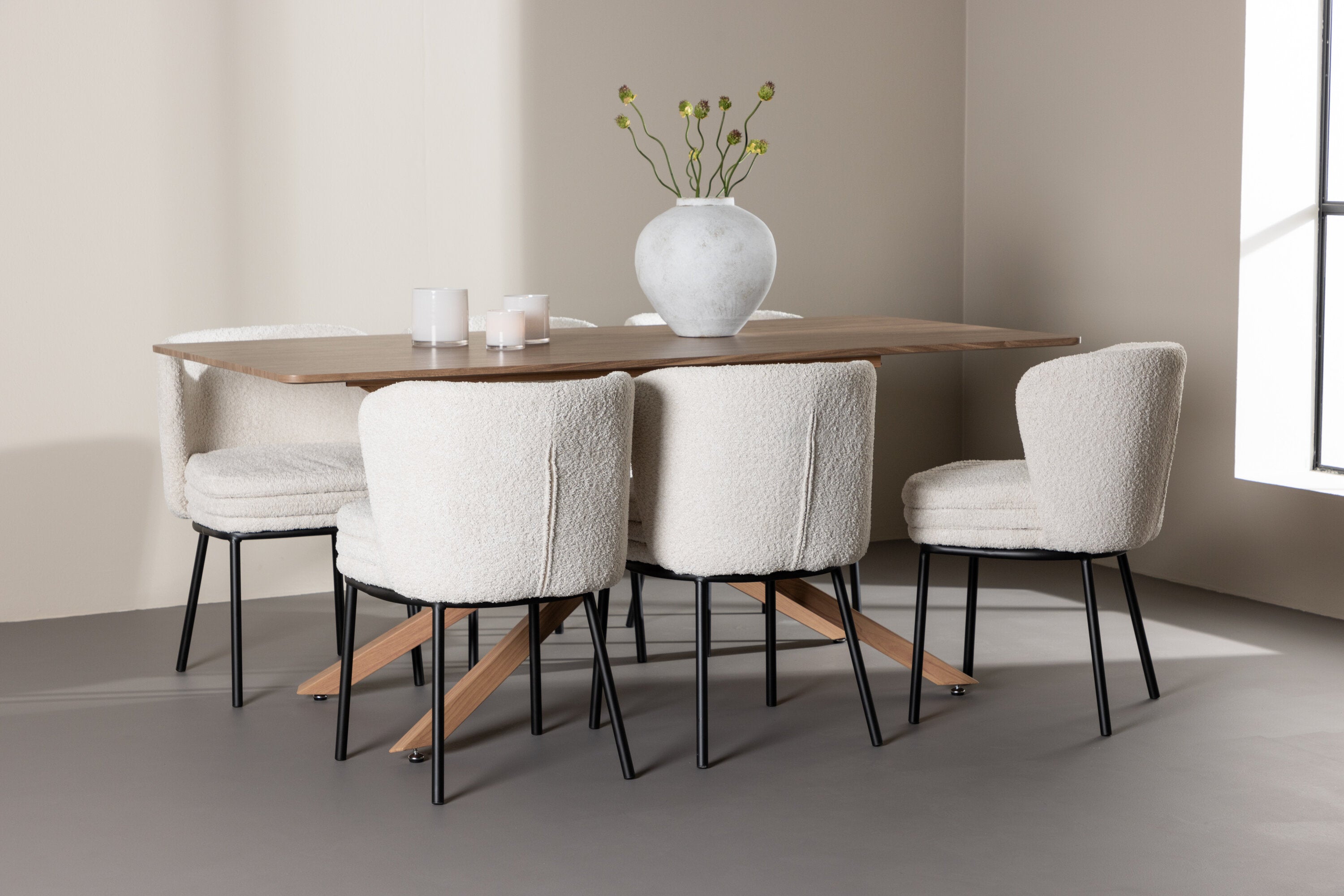 Objevte perfektní jídelní set s jídelními židlemi Agnes a jídelním stolem Piazza – spojení jednoduché krásy, stylu a funkčnosti pro váš domov. Jídelní židle Agnes má sedák v bílém buclé a elegantní černé ocelové nohy, které nabízejí moderní a sofistikovanou estetiku. Měkké a texturované sedadlo v buklé dodává hřejivý a příjemný pocit, zatímco černé ocelové nohy dodávají moderní nádech. Agnes vytváří harmonickou atmosféru a dodává vaší jídelně nebo kuchyni působivý vizuální efekt. Se svým elegantním designem a pohodlným sedákem je jídelní židle Agnes perfektní volbou pro posezení u jídelního stolu s rodinou a přáteli. Kompletní s jídelním stolem Piazza - harmonický kus nábytku pro socializaci a komunitu. S velkorysými rozměry 180x90 cm nabízí Piazza dostatek prostoru pro přivítání rodiny i přátel. Stůl v moka barvě dodává místnosti zemitou a hřejivou atmosféru, ideální pro útulná setkání a dlouhé večeře. Jídelní stůl Piazza spojuje skandinávský design s jednoduchostí a elegancí. Vytvořte příjemnou atmosféru a užijte si komunitu kolem této jídelní soupravy. Ať už pro každodenní jídlo nebo speciální příležitosti, jídelní židle Agnes a jídelní stůl Piazza budou ústřední součástí vašeho domova, kde se daří pospolitosti i stylu.