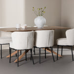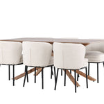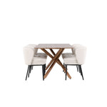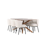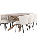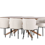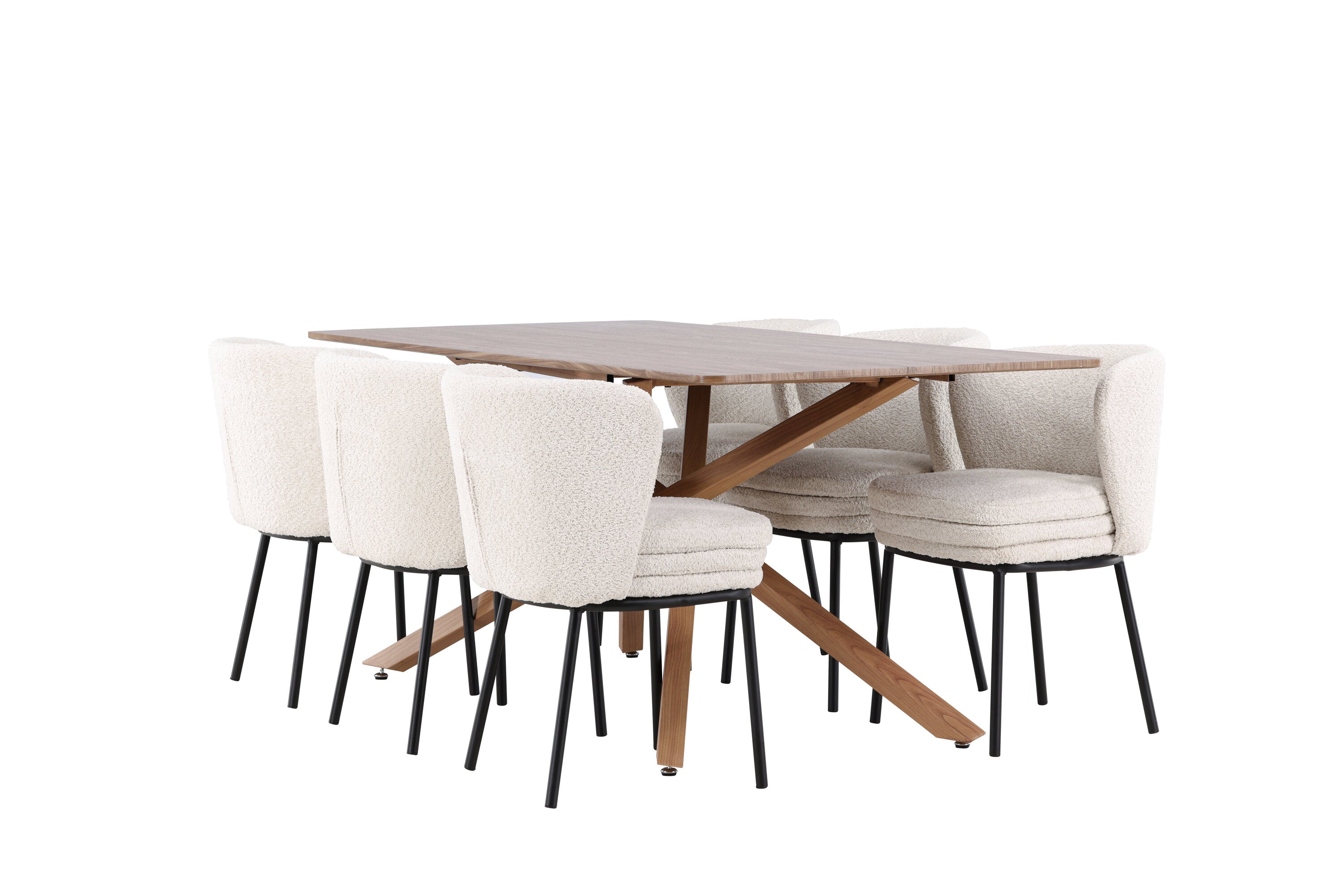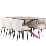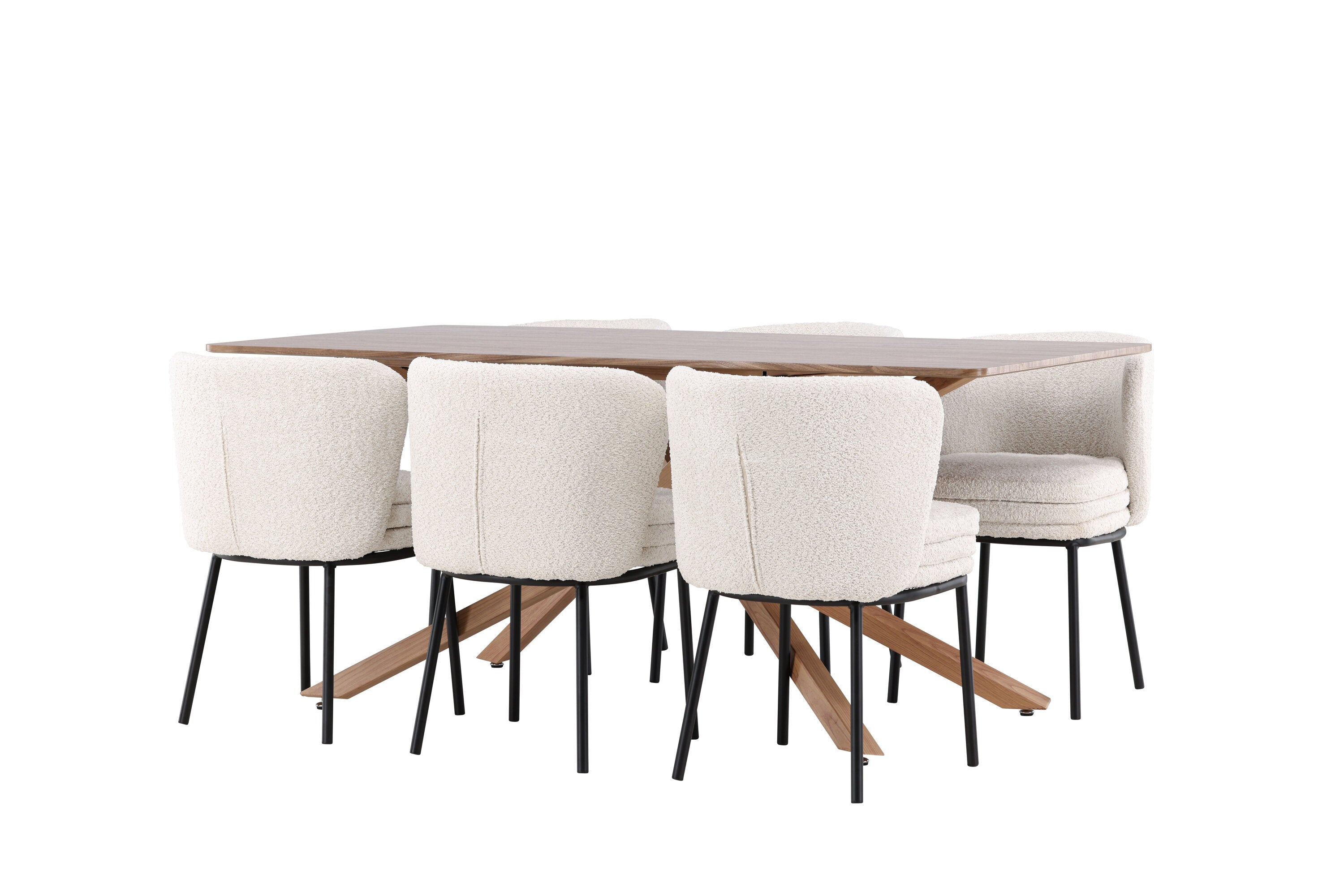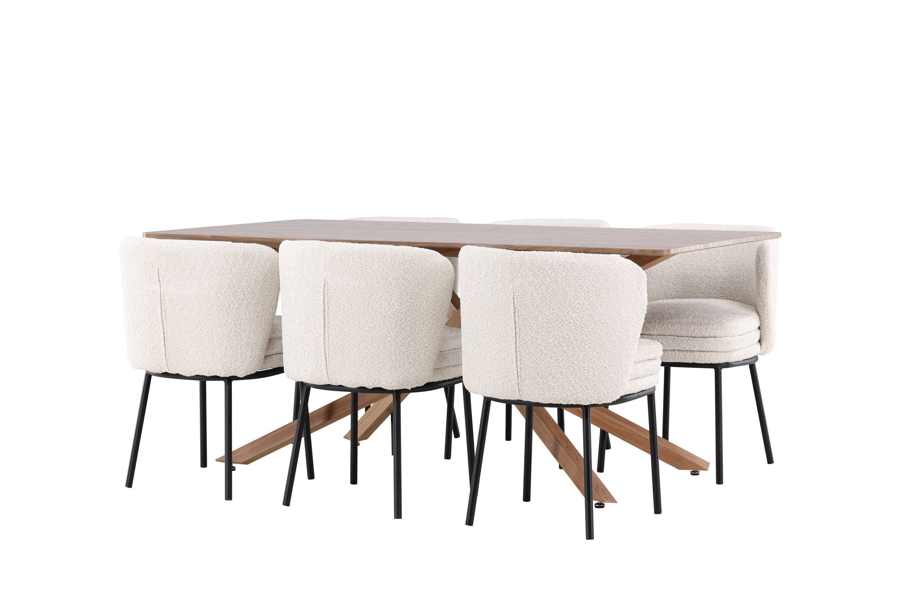 Objevte perfektní jídelní set s jídelními židlemi Agnes a jídelním stolem Piazza – spojení jednoduché krásy, stylu a funkčnosti pro váš domov. Jídelní židle Agnes má sedák v bílém buclé a elegantní černé ocelové nohy, které nabízejí moderní a sofistikovanou estetiku. Měkké a texturované sedadlo v buklé dodává hřejivý a příjemný pocit, zatímco černé ocelové nohy dodávají moderní nádech. Agnes vytváří harmonickou atmosféru a dodává vaší jídelně nebo kuchyni působivý vizuální efekt. Se svým elegantním designem a pohodlným sedákem je jídelní židle Agnes perfektní volbou pro posezení u jídelního stolu s rodinou a přáteli. Kompletní s jídelním stolem Piazza - harmonický kus nábytku pro socializaci a komunitu. S velkorysými rozměry 180x90 cm nabízí Piazza dostatek prostoru pro přivítání rodiny i přátel. Stůl v moka barvě dodává místnosti zemitou a hřejivou atmosféru, ideální pro útulná setkání a dlouhé večeře. Jídelní stůl Piazza spojuje skandinávský design s jednoduchostí a elegancí. Vytvořte příjemnou atmosféru a užijte si komunitu kolem této jídelní soupravy. Ať už pro každodenní jídlo nebo speciální příležitosti, jídelní židle Agnes a jídelní stůl Piazza budou ústřední součástí vašeho domova, kde se daří pospolitosti i stylu.