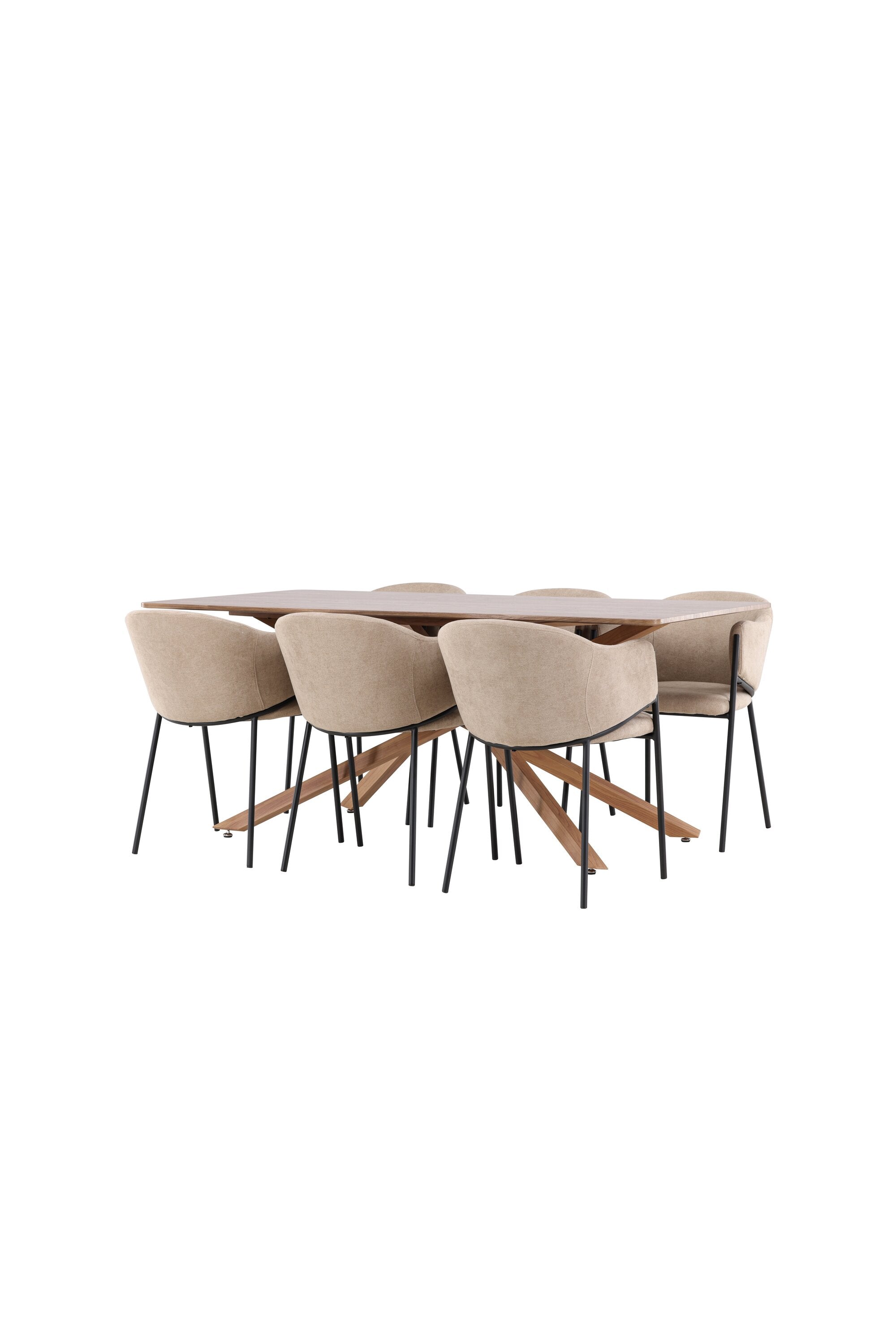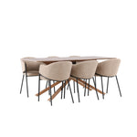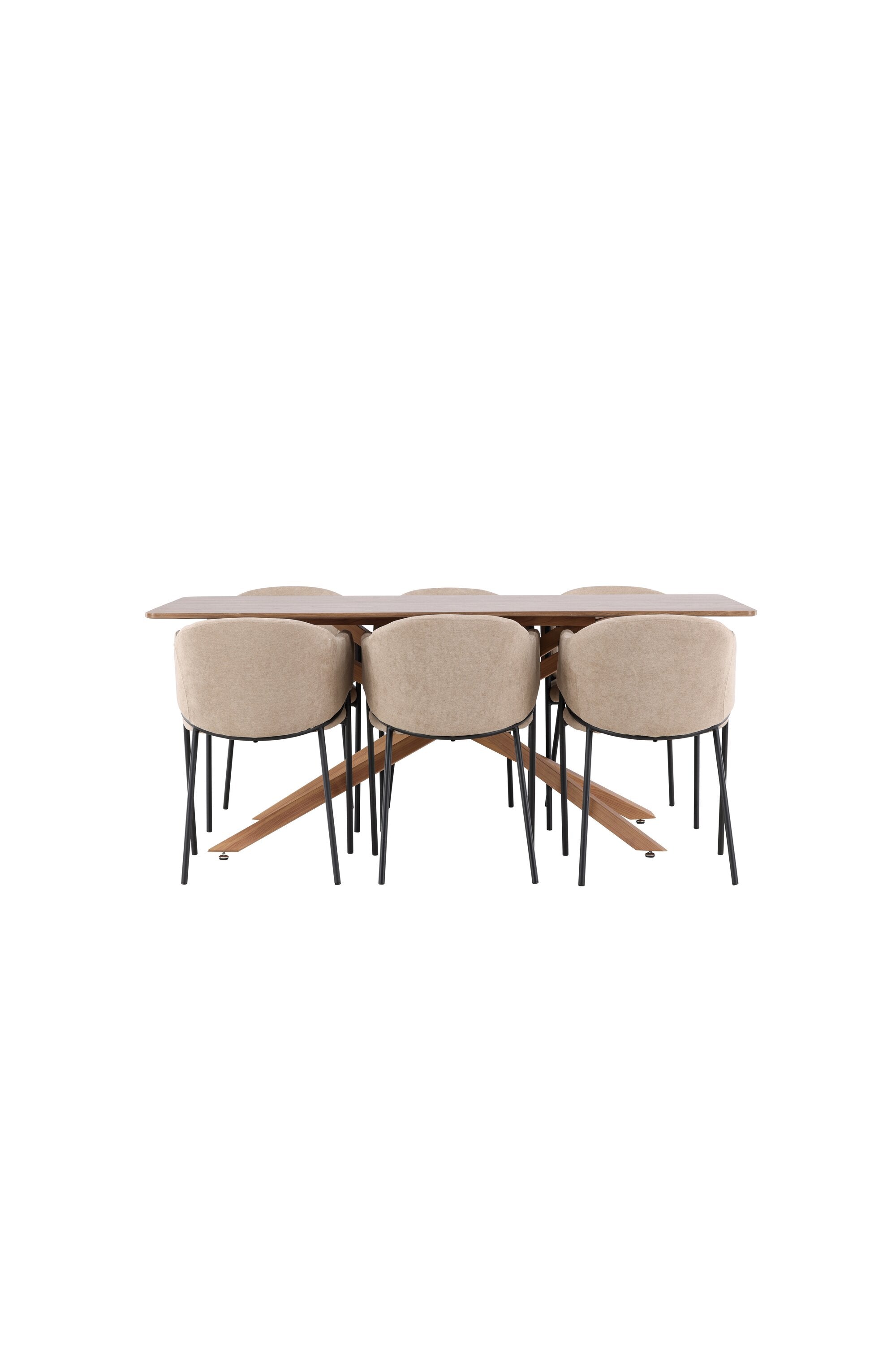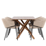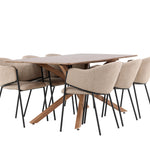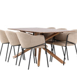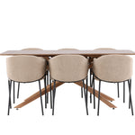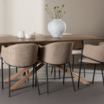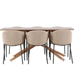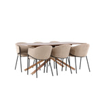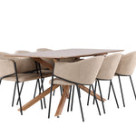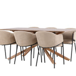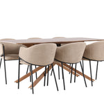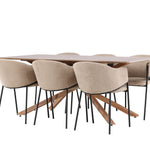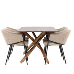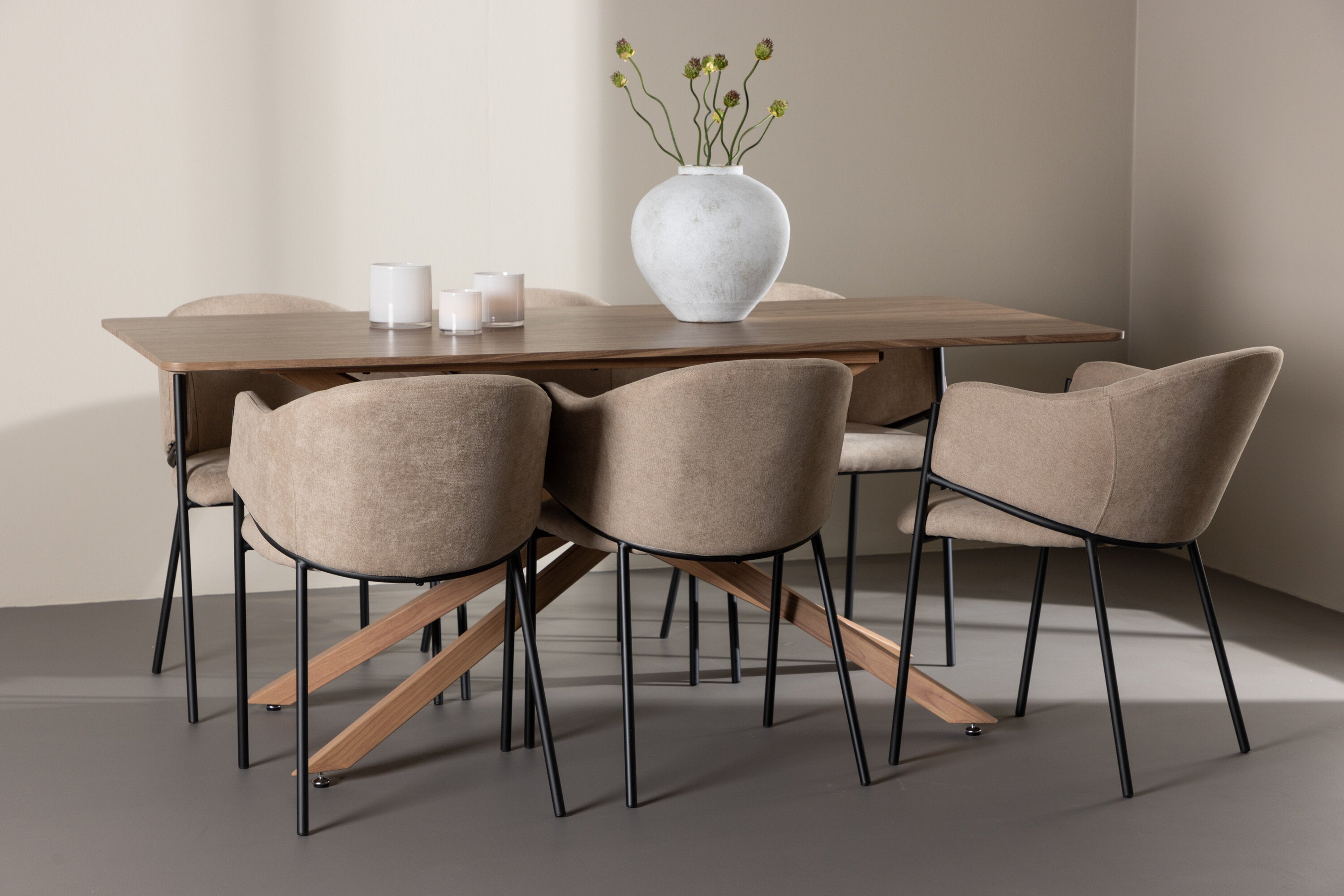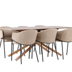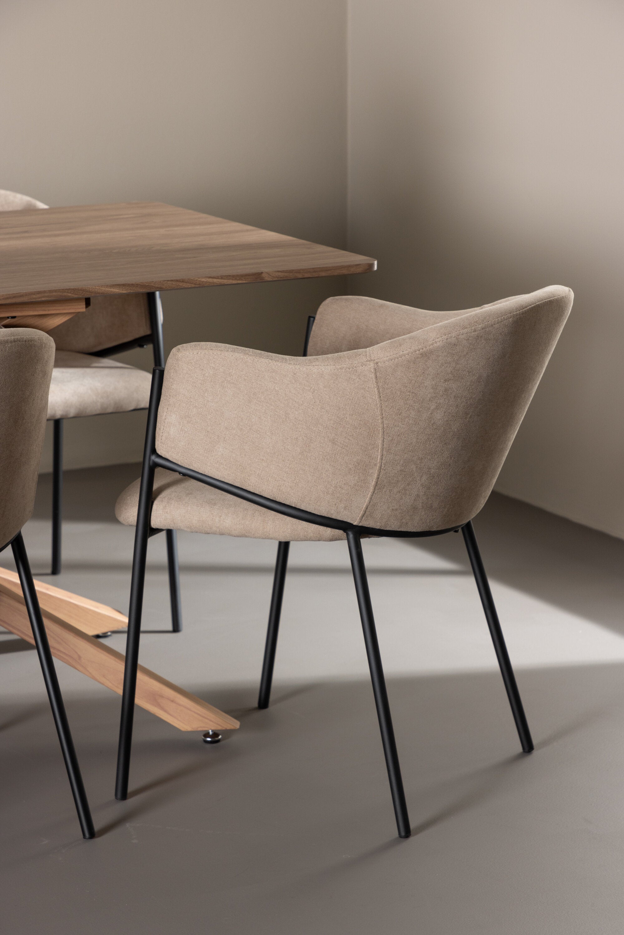 Seznamte se s jídelní židlí Evelina a jídelním stolem Piazza – dokonalou jídelní sadou pro teplý a příjemný jídelní zážitek. Jídelní židle Evelina, prodávaná v praktických 2-baleních, je čalouněná polyesterovým povlečením v jemné béžové barvě, která dodá vaší jídelně elegantní a zemitý nádech. Robustní konstrukce dělá z Eveliny spolehlivého společníka při dlouhých a příjemných jídlech. Díky neutrální barvě a klasickému designu se perfektně hodí do každé domácnosti a vytváří vřelou a přívětivou atmosféru. Kompletní s jídelním stolem Piazza - harmonický kus nábytku pro socializaci a komunitu. S velkorysými rozměry 180x90 cm nabízí Piazza dostatek prostoru pro přivítání rodiny i přátel. Stůl v moka barvě dodává místnosti zemitou a hřejivou atmosféru, ideální pro útulná setkání a dlouhé večeře. Jídelní stůl Piazza spojuje skandinávský design s jednoduchostí a elegancí. Vytvořte příjemnou atmosféru a užijte si komunitu kolem této jídelní soupravy. Ať už pro každodenní jídlo nebo speciální příležitosti, jídelní židle Evelina a jídelní stůl Piazza budou ústřední součástí vašeho domova, kde se daří pospolitosti i stylu.