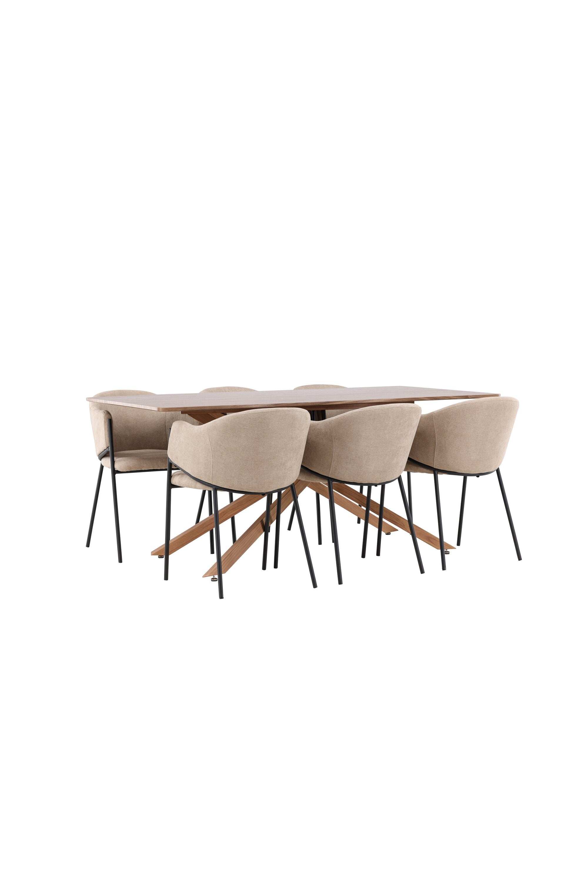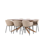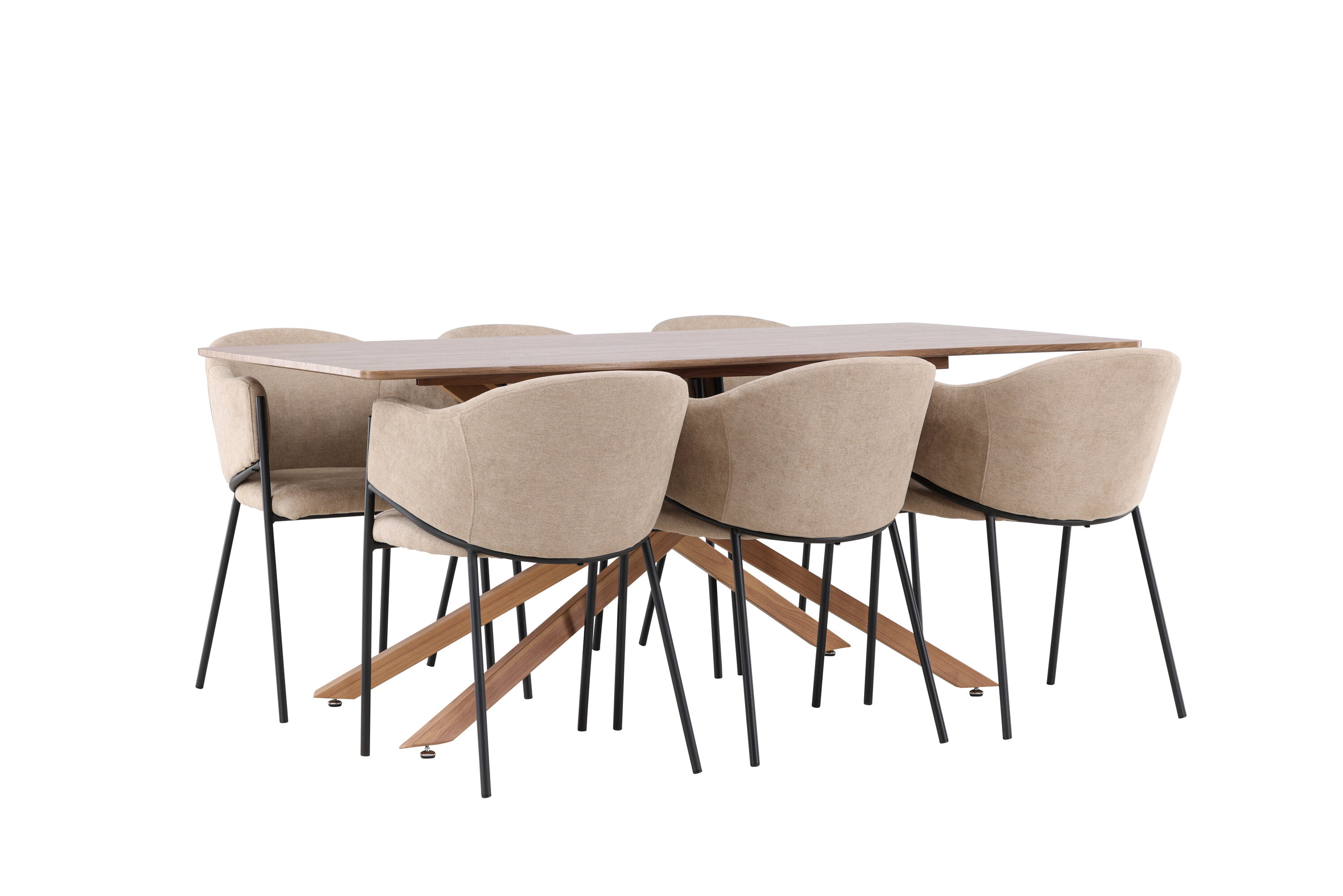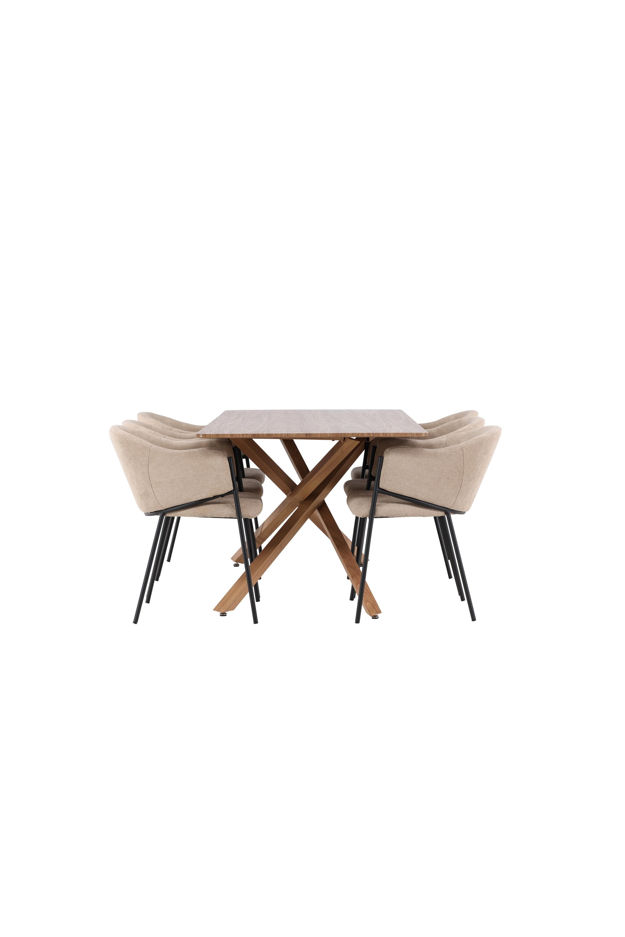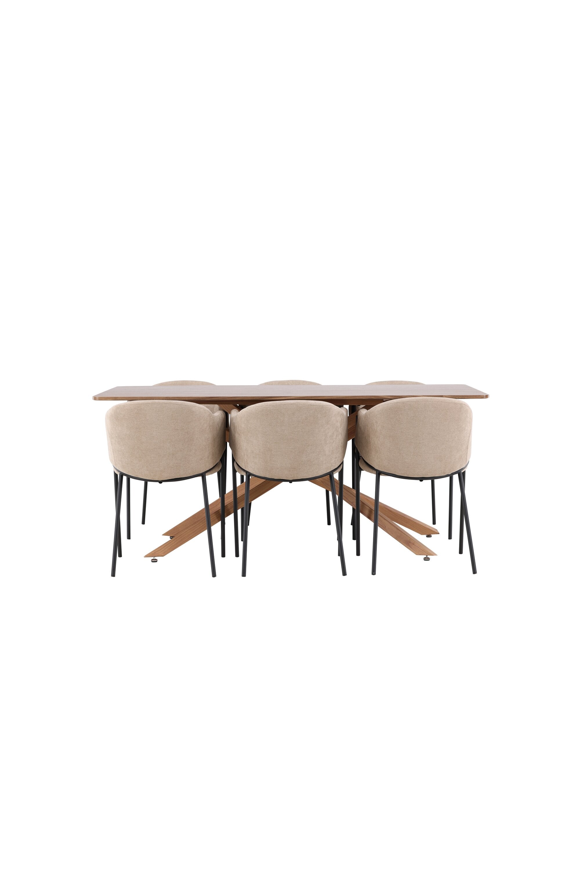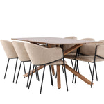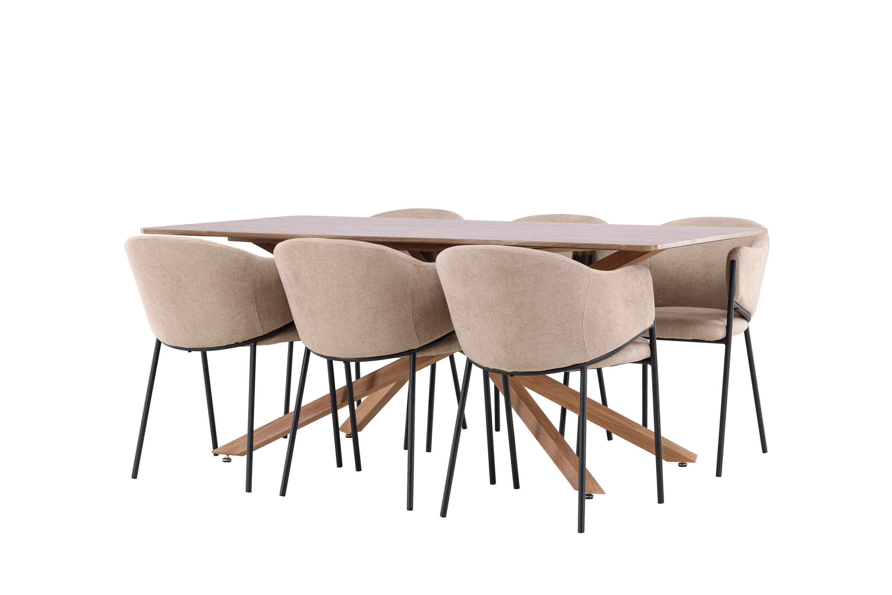 Seznamte se s jídelní židlí Evelina a jídelním stolem Piazza – dokonalou jídelní sadou pro teplý a příjemný jídelní zážitek. Jídelní židle Evelina, prodávaná v praktických 2-baleních, je čalouněná polyesterovým povlečením v jemné béžové barvě, která dodá vaší jídelně elegantní a zemitý nádech. Robustní konstrukce dělá z Eveliny spolehlivého společníka při dlouhých a příjemných jídlech. Díky neutrální barvě a klasickému designu se perfektně hodí do každé domácnosti a vytváří vřelou a přívětivou atmosféru. Kompletní s jídelním stolem Piazza - harmonický kus nábytku pro socializaci a komunitu. S velkorysými rozměry 180x90 cm nabízí Piazza dostatek prostoru pro přivítání rodiny i přátel. Stůl v moka barvě dodává místnosti zemitou a hřejivou atmosféru, ideální pro útulná setkání a dlouhé večeře. Jídelní stůl Piazza spojuje skandinávský design s jednoduchostí a elegancí. Vytvořte příjemnou atmosféru a užijte si komunitu kolem této jídelní soupravy. Ať už pro každodenní jídlo nebo speciální příležitosti, jídelní židle Evelina a jídelní stůl Piazza budou ústřední součástí vašeho domova, kde se daří pospolitosti i stylu.