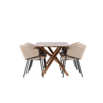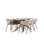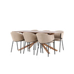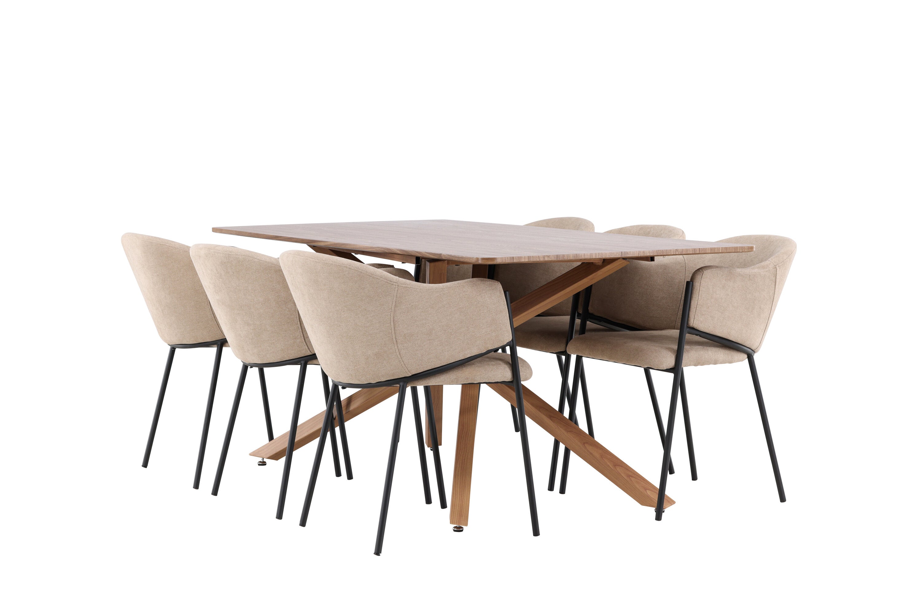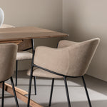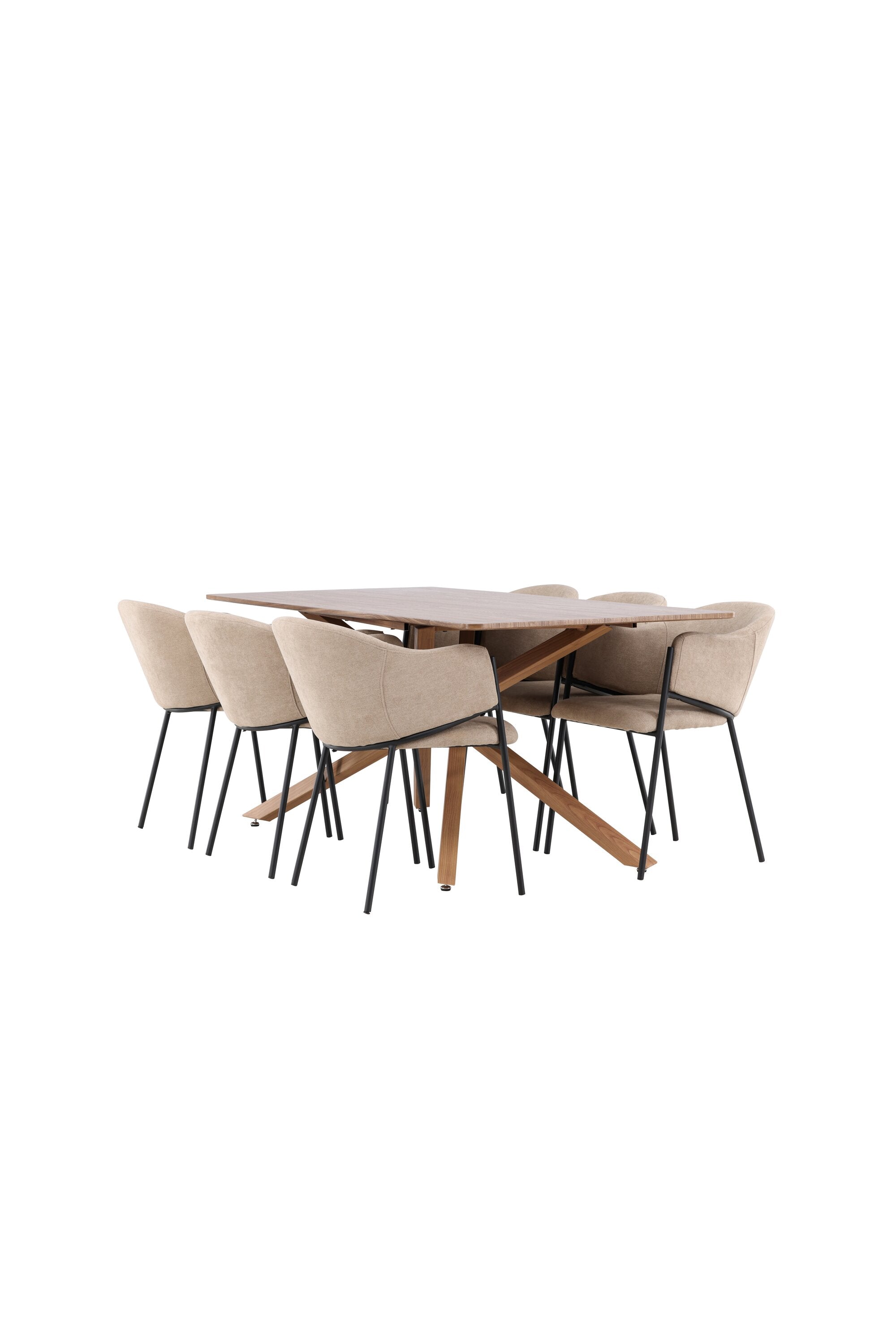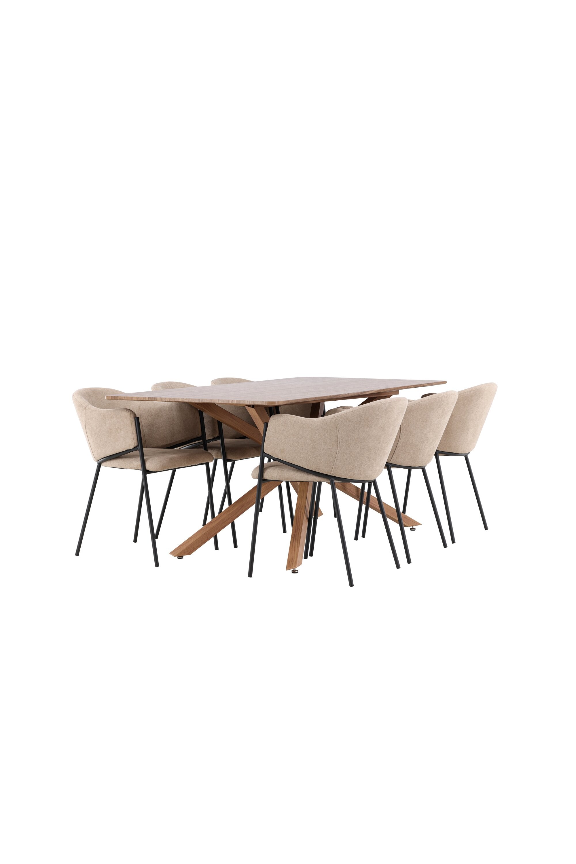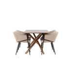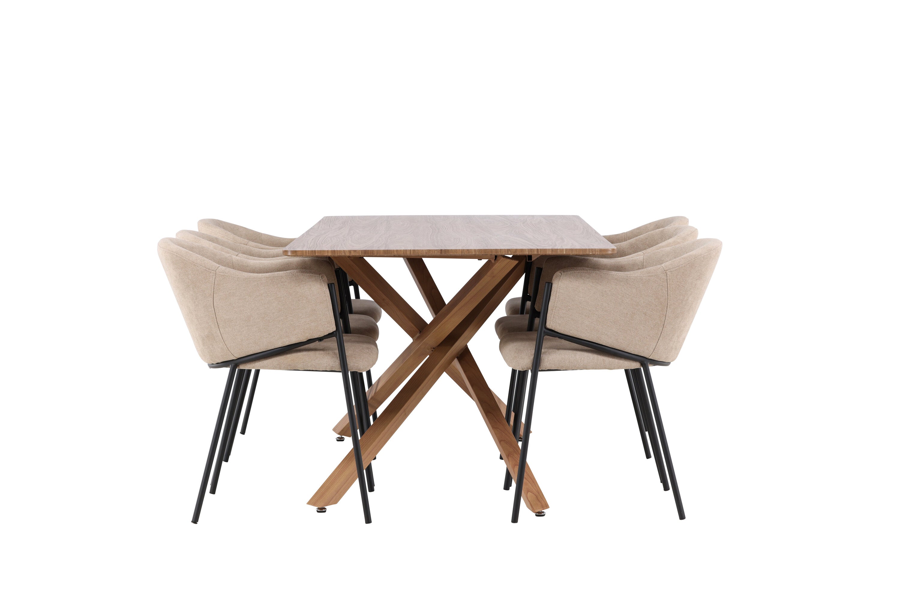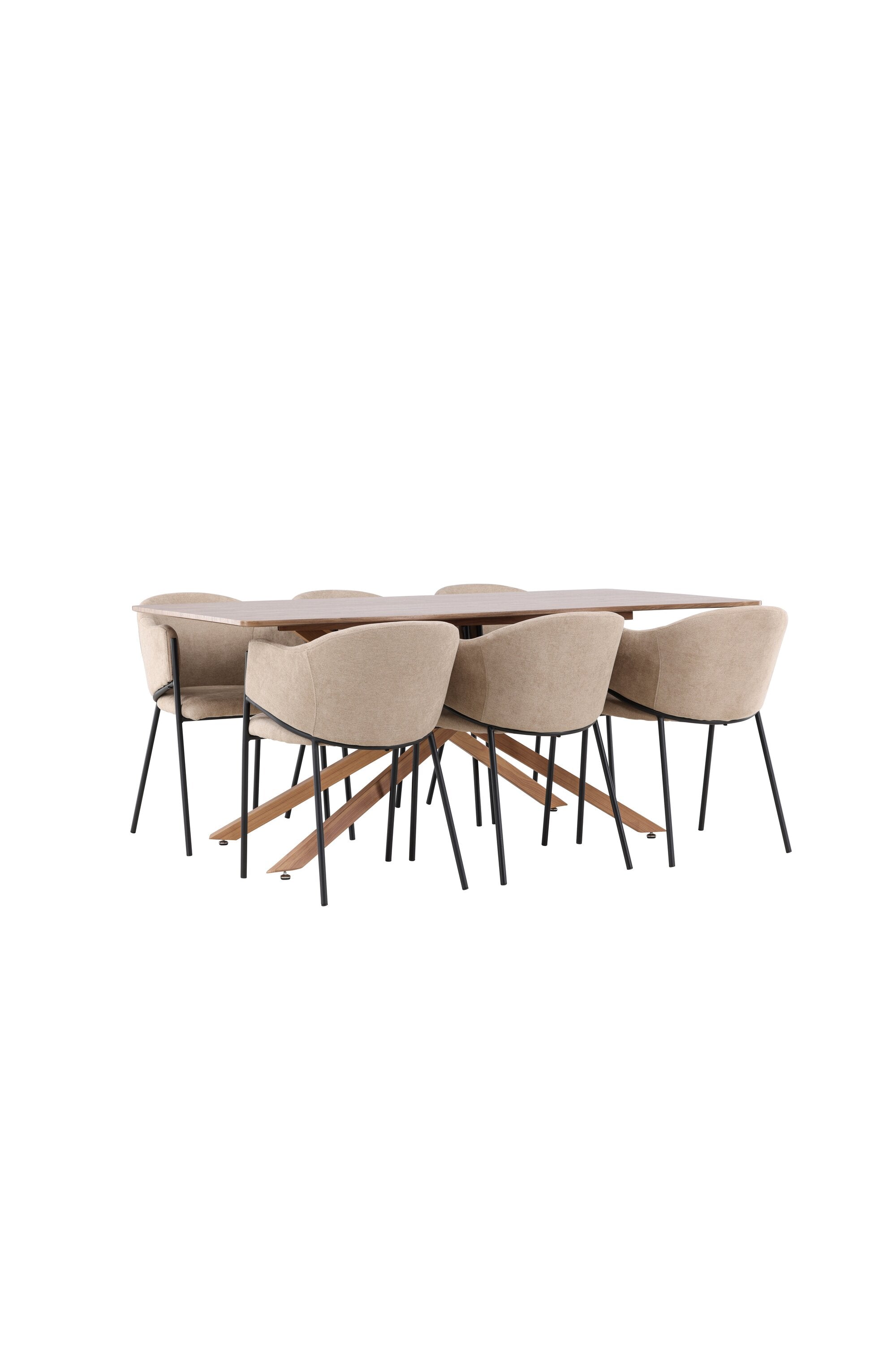 Seznamte se s jídelní židlí Evelina a jídelním stolem Piazza – dokonalou jídelní sadou pro teplý a příjemný jídelní zážitek. Jídelní židle Evelina, prodávaná v praktických 2-baleních, je čalouněná polyesterovým povlečením v jemné béžové barvě, která dodá vaší jídelně elegantní a zemitý nádech. Robustní konstrukce dělá z Eveliny spolehlivého společníka při dlouhých a příjemných jídlech. Díky neutrální barvě a klasickému designu se perfektně hodí do každé domácnosti a vytváří vřelou a přívětivou atmosféru. Kompletní s jídelním stolem Piazza - harmonický kus nábytku pro socializaci a komunitu. S velkorysými rozměry 180x90 cm nabízí Piazza dostatek prostoru pro přivítání rodiny i přátel. Stůl v moka barvě dodává místnosti zemitou a hřejivou atmosféru, ideální pro útulná setkání a dlouhé večeře. Jídelní stůl Piazza spojuje skandinávský design s jednoduchostí a elegancí. Vytvořte příjemnou atmosféru a užijte si komunitu kolem této jídelní soupravy. Ať už pro každodenní jídlo nebo speciální příležitosti, jídelní židle Evelina a jídelní stůl Piazza budou ústřední součástí vašeho domova, kde se daří pospolitosti i stylu.