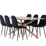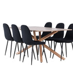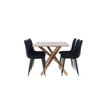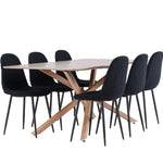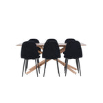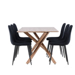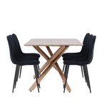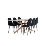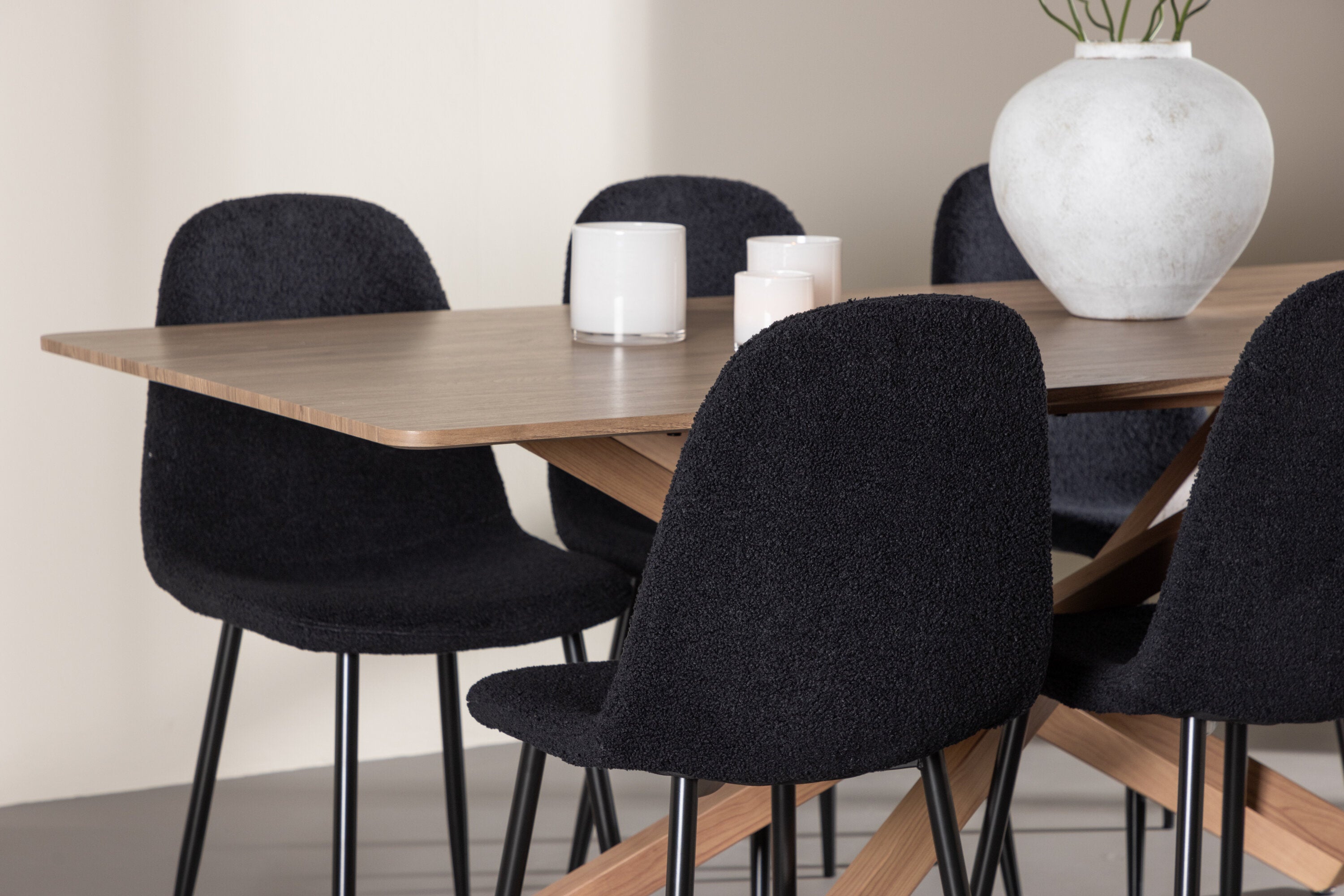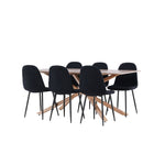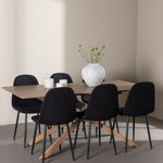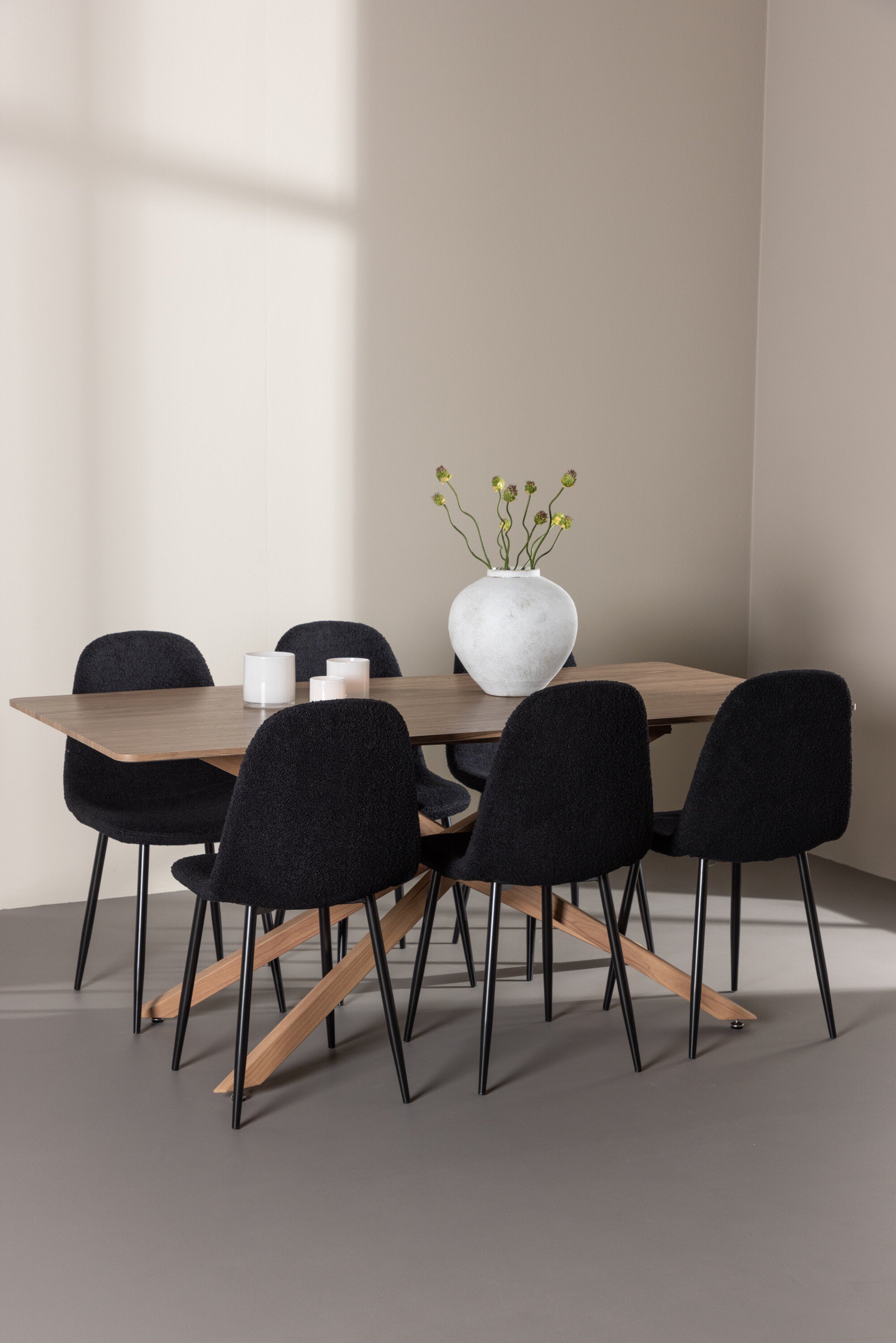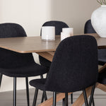 Objevte jídelní židli Polar a jídelní stůl Piazza – dokonalou kombinaci moderní elegance a komunity pro vaše jídelní uspořádání. Židle má certifikaci FSC® (FSC®C177288), což znamená, že se skládá ze dřeva z odpovědného lesnictví, lesnictví, které bere ohled na lidi a životní prostředí. Jídelní židle Polar nabízí stylový a moderní nádech. Tmavě černá barva křesla a polyesterový plyšový materiál poskytují exkluzivní pocit a nabízejí pohodlné sezení na všech vašich večeřích a setkáních. Jeho moderní design a čisté linie poskytují nadčasovou estetiku, která doplňuje všechny styly interiéru. Nohy jídelní židle Polar jsou vyrobeny z černé oceli, poskytují pevnou a robustní konstrukci a zároveň přispívají k jejímu elegantnímu vzhledu. Díky své jednoduchosti a všestrannosti bude Polar vítaným doplňkem vašeho domova. Jídelní stůl Piazza s velkorysými rozměry 180x90 cm je dostatečně prostorný, aby přivítal rodinu i přátele. Stůl v moka barvě dodává místnosti zemitou a hřejivou atmosféru, ideální pro útulná setkání a dlouhé večeře. Jídelní stůl Piazza spojuje skandinávský design s jednoduchostí a elegancí. Vytvořte příjemnou atmosféru a užijte si komunitu kolem jídelního stolu Piazza. Ať už se jedná o každodenní jídlo nebo speciální příležitosti, tento stůl bude ústřední součástí vašeho domova, kde se daří pospolitosti i stylu. Jídelní židle Polar a jídelní stůl Piazza společně tvoří elegantní a funkční jídelní set, který bude srdcem vašeho domova, kde se utužují vztahy a sdílí radost.