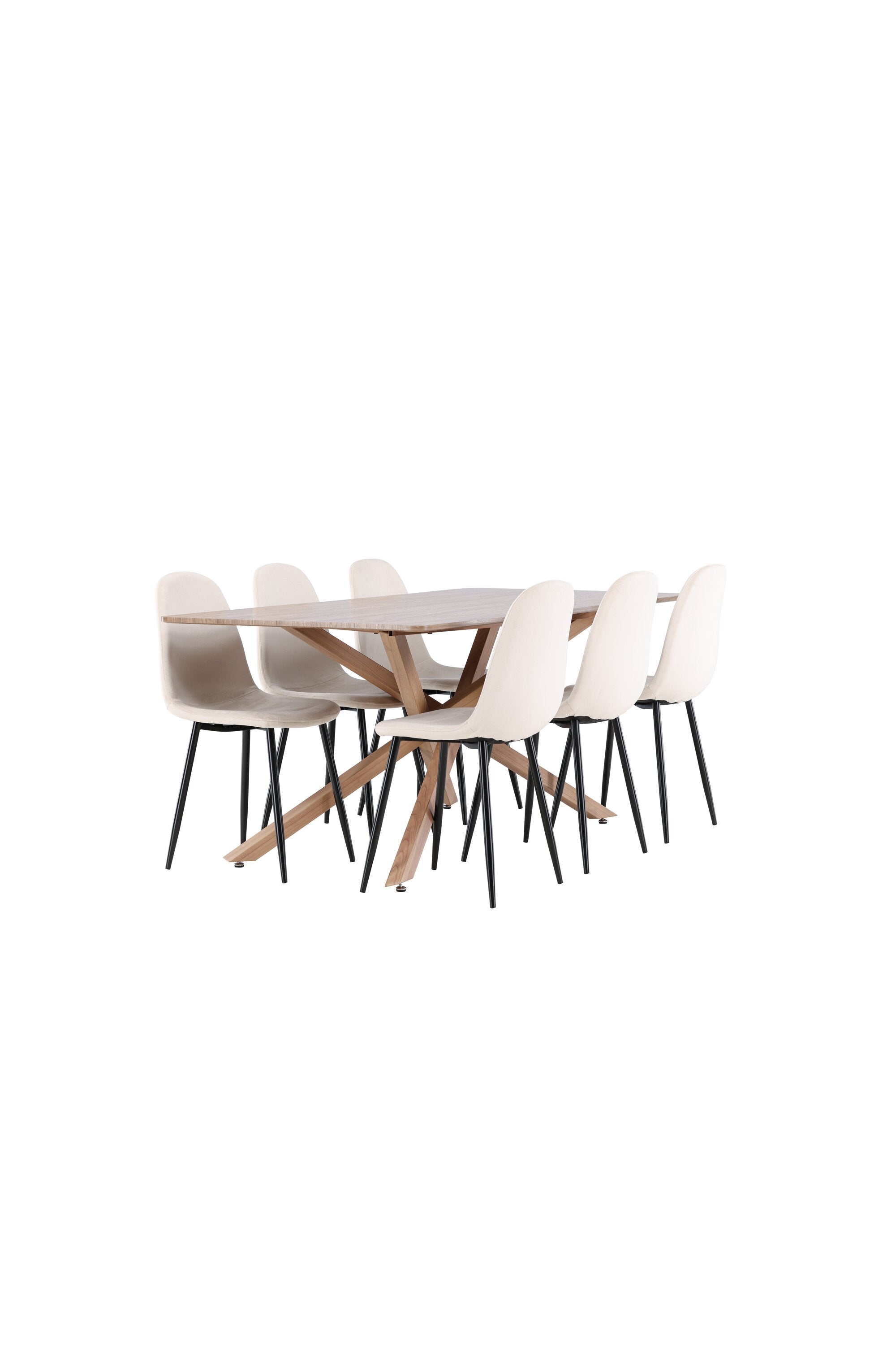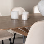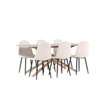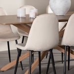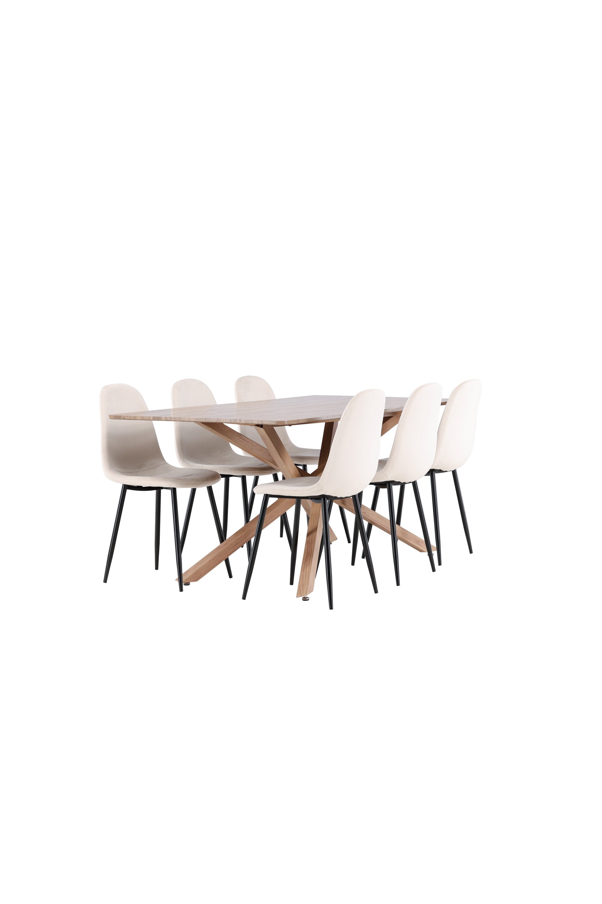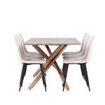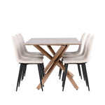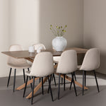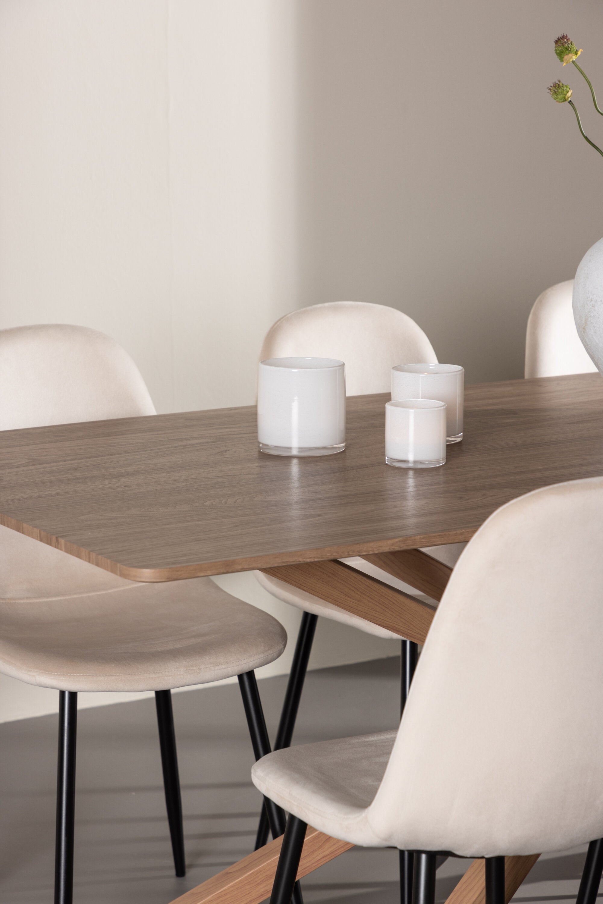 Objevte moderní jídelní set, který kombinuje eleganci a pohodlí se stylem! Elegantní jídelní židle ze série Polar přichází ve stylové béžové barvě s celočalouněným designem. Mírně zaoblené opěradlo a sedák ze sametové látky poskytují příjemné a pohodlné sezení, zatímco nohy z černého kovu s práškovým nástřikem dodávají moderní nádech. Ideální pro vybavení srdce domova a společné vychutnávání krásných jídel! Nutná nějaká montáž. Doplňte jídelním stolem Piazza - harmonickým kusem nábytku pro socializaci a komunitu. S velkorysými rozměry 180x90 cm nabízí Piazza dostatek prostoru pro přivítání rodiny i přátel. Stůl v moka barvě dodává místnosti zemitou a hřejivou atmosféru, ideální pro útulná setkání a dlouhé večeře. Jídelní stůl Piazza kombinuje skandinávský design s jednoduchostí a elegancí, díky čemuž je ústřední součástí vašeho domova, kde se daří kamarádství i stylu.