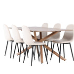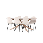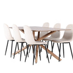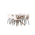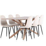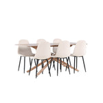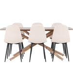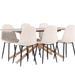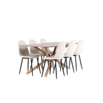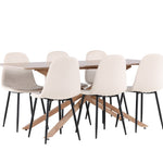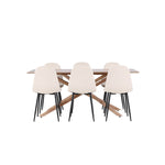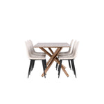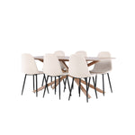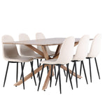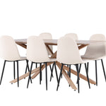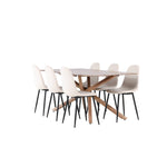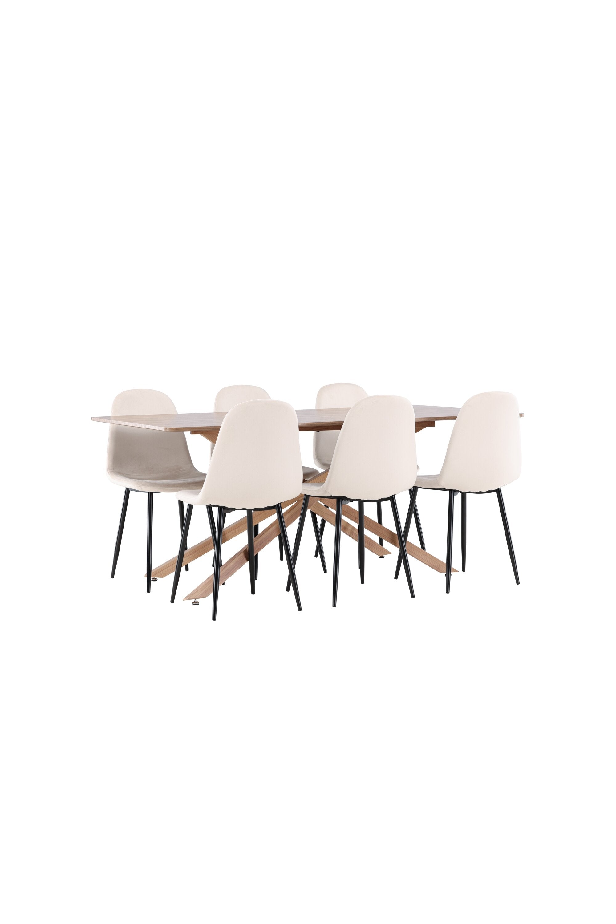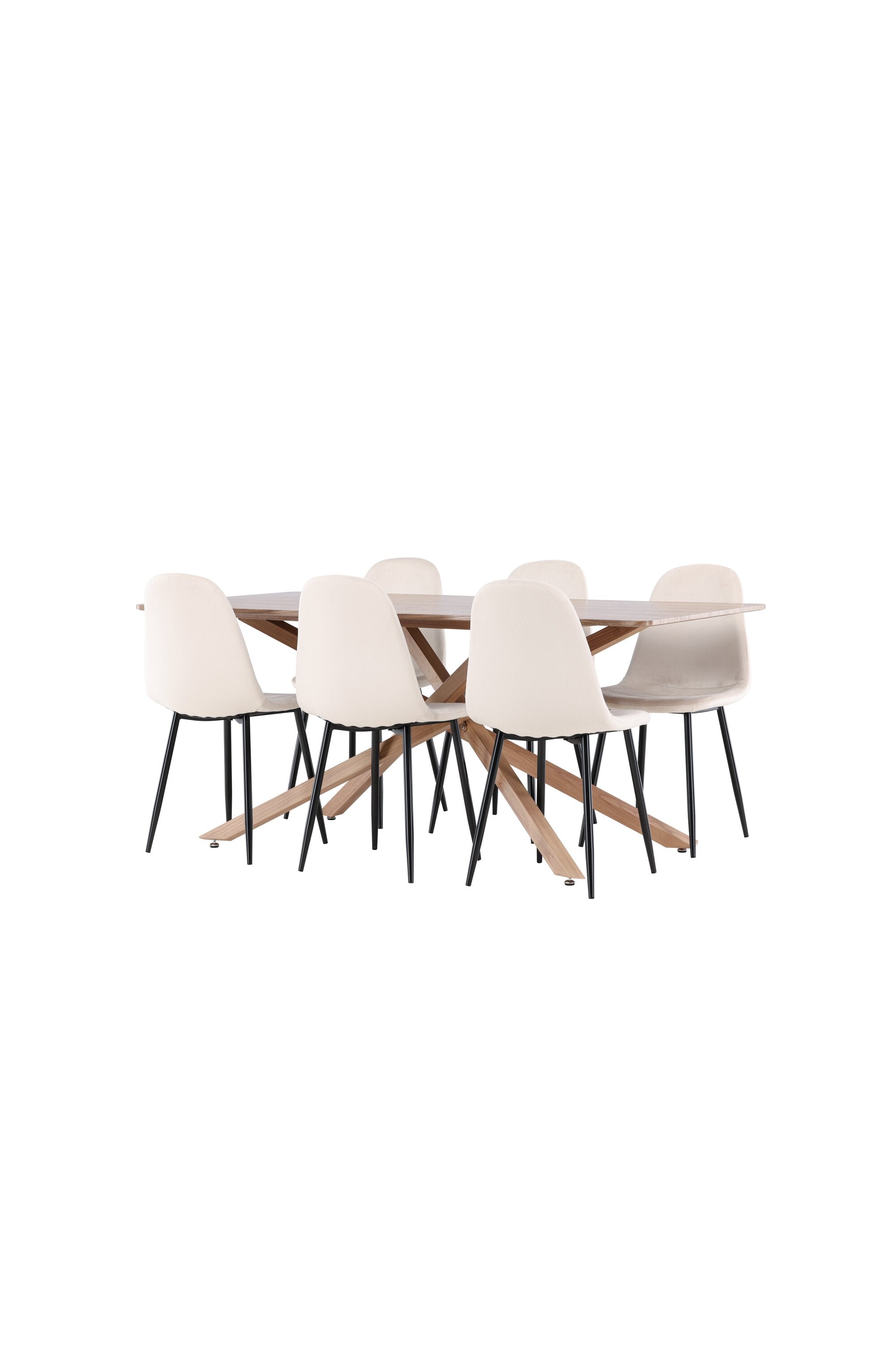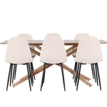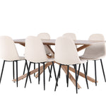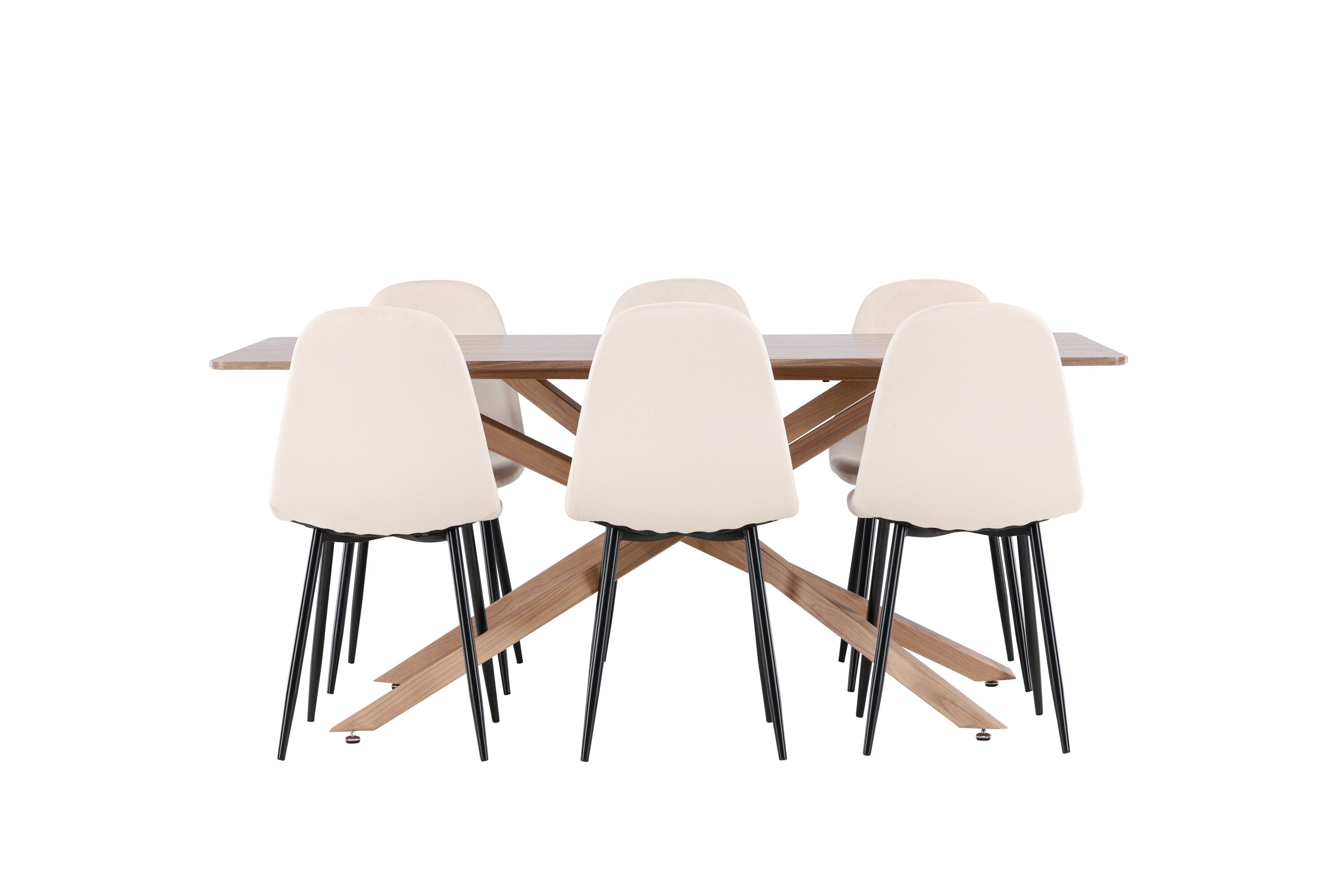 Objevte moderní jídelní set, který kombinuje eleganci a pohodlí se stylem! Elegantní jídelní židle ze série Polar přichází ve stylové béžové barvě s celočalouněným designem. Mírně zaoblené opěradlo a sedák ze sametové látky poskytují příjemné a pohodlné sezení, zatímco nohy z černého kovu s práškovým nástřikem dodávají moderní nádech. Ideální pro vybavení srdce domova a společné vychutnávání krásných jídel! Nutná nějaká montáž. Doplňte jídelním stolem Piazza - harmonickým kusem nábytku pro socializaci a komunitu. S velkorysými rozměry 180x90 cm nabízí Piazza dostatek prostoru pro přivítání rodiny i přátel. Stůl v moka barvě dodává místnosti zemitou a hřejivou atmosféru, ideální pro útulná setkání a dlouhé večeře. Jídelní stůl Piazza kombinuje skandinávský design s jednoduchostí a elegancí, díky čemuž je ústřední součástí vašeho domova, kde se daří kamarádství i stylu.