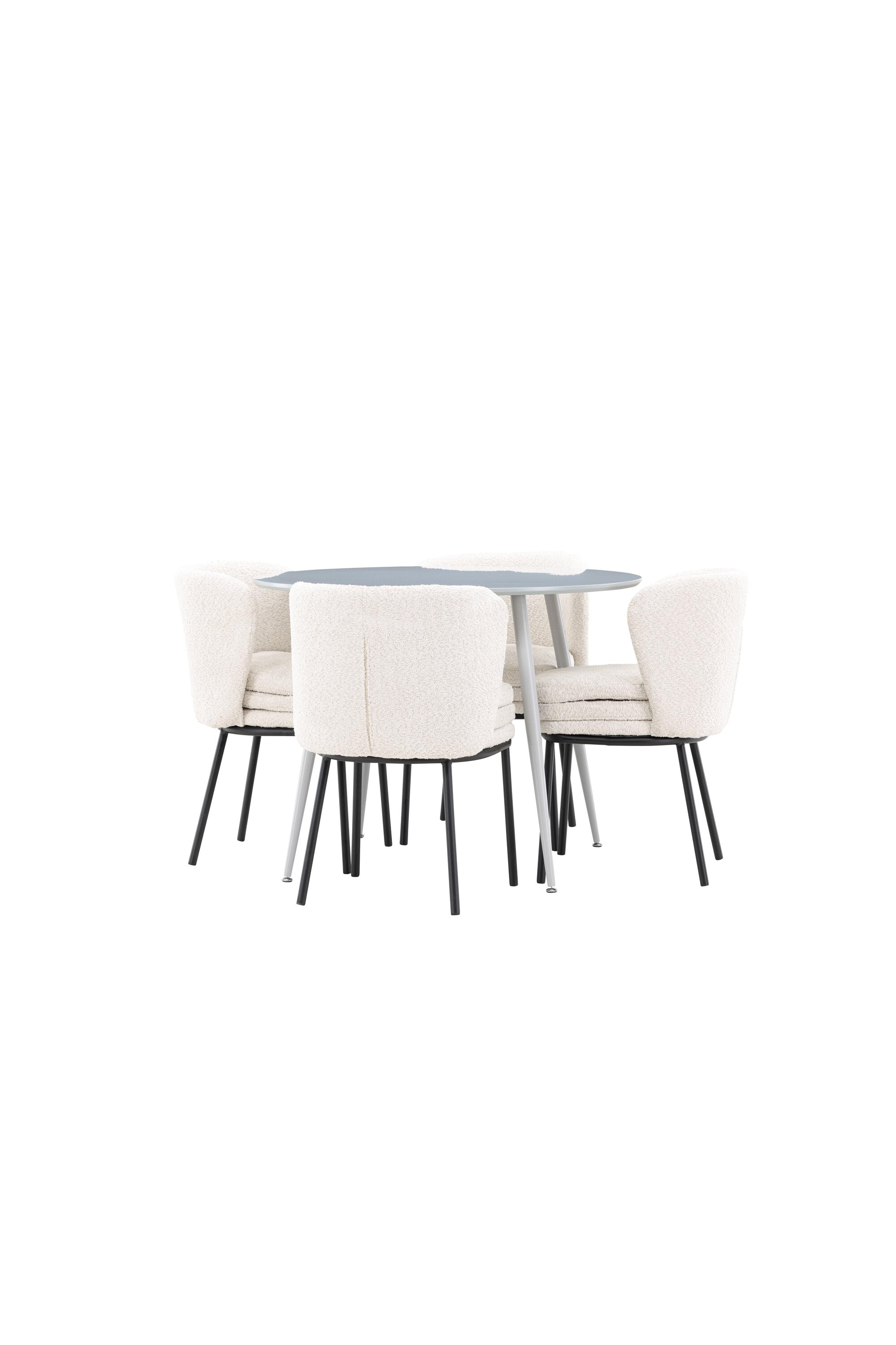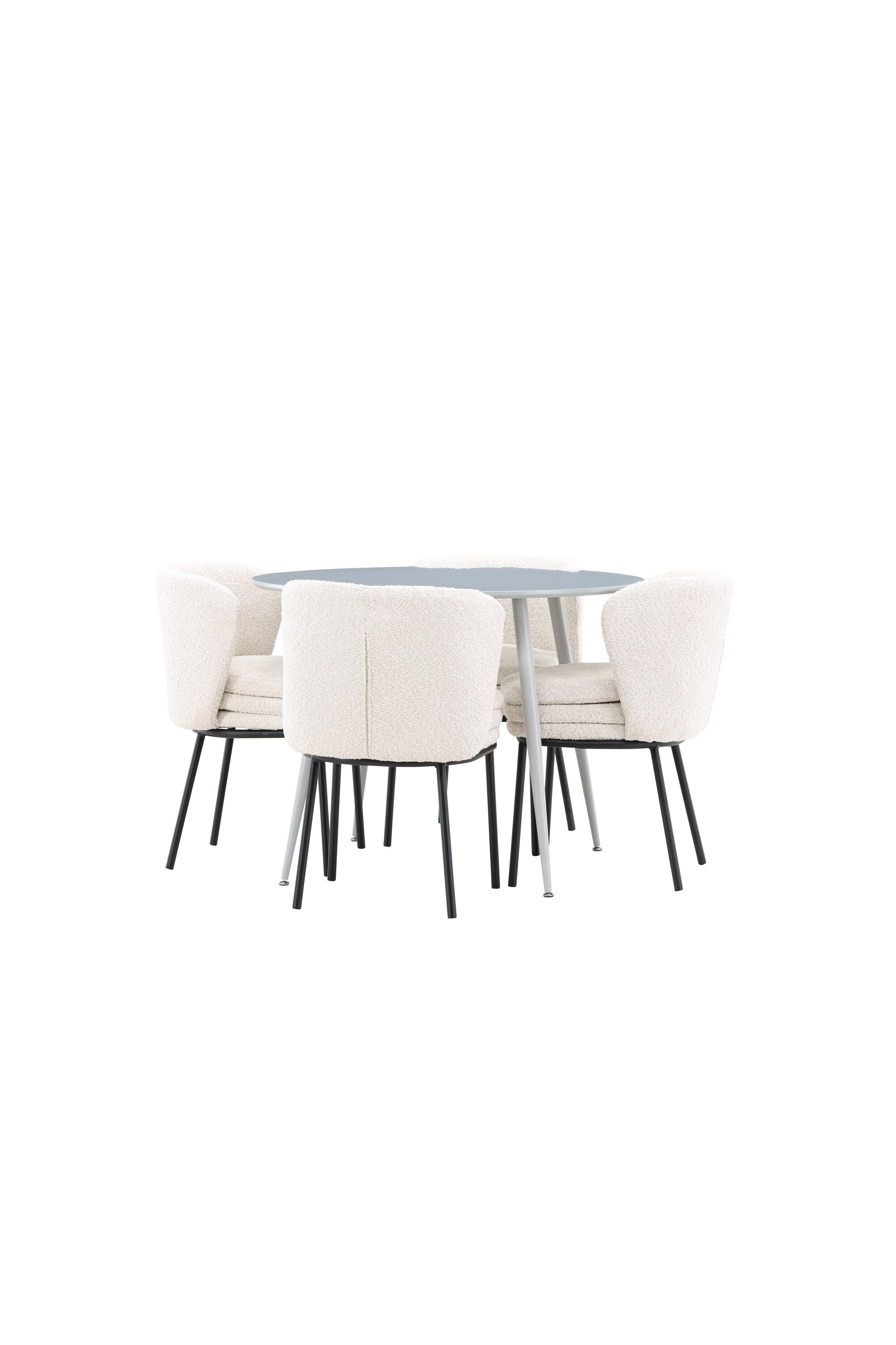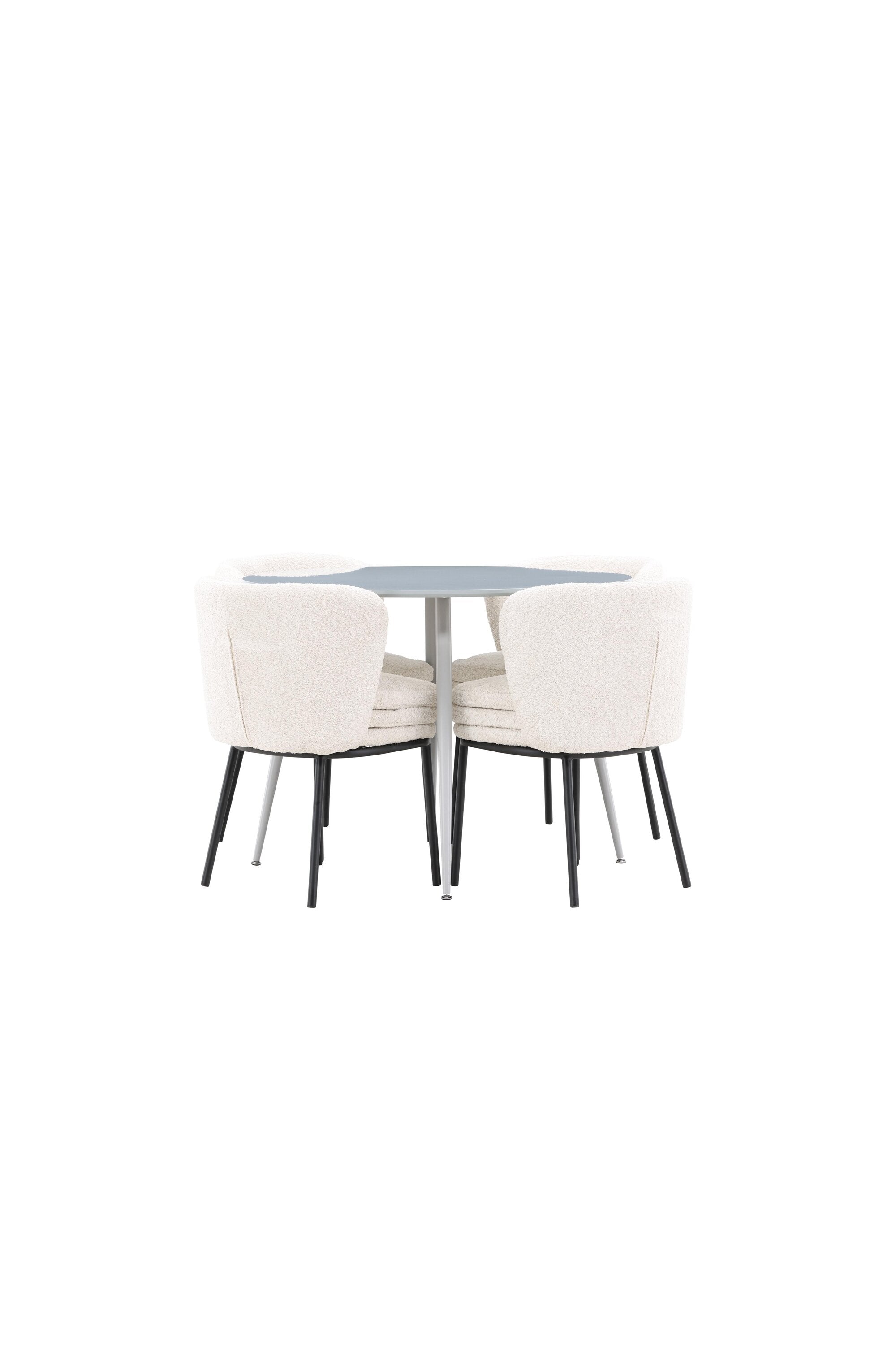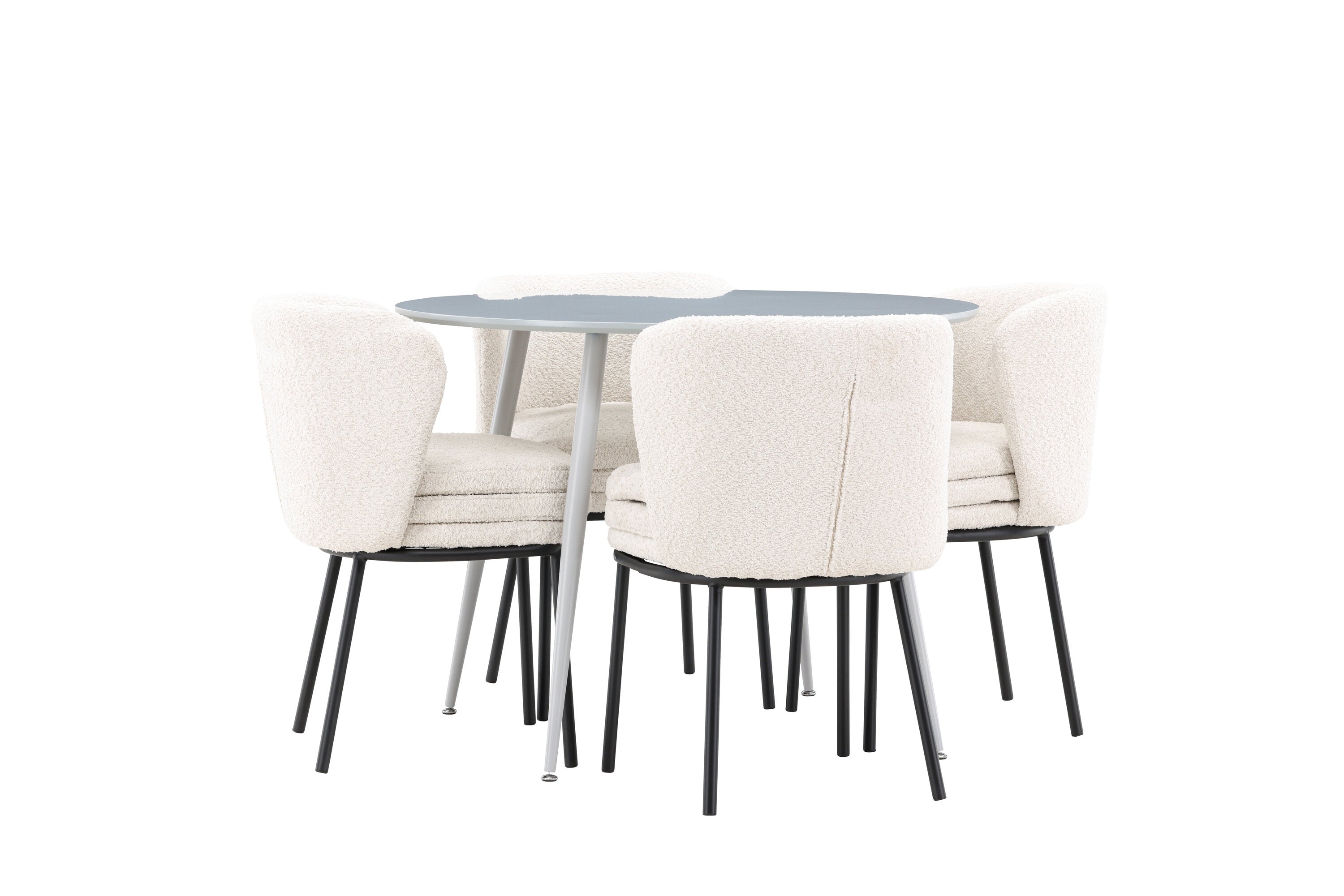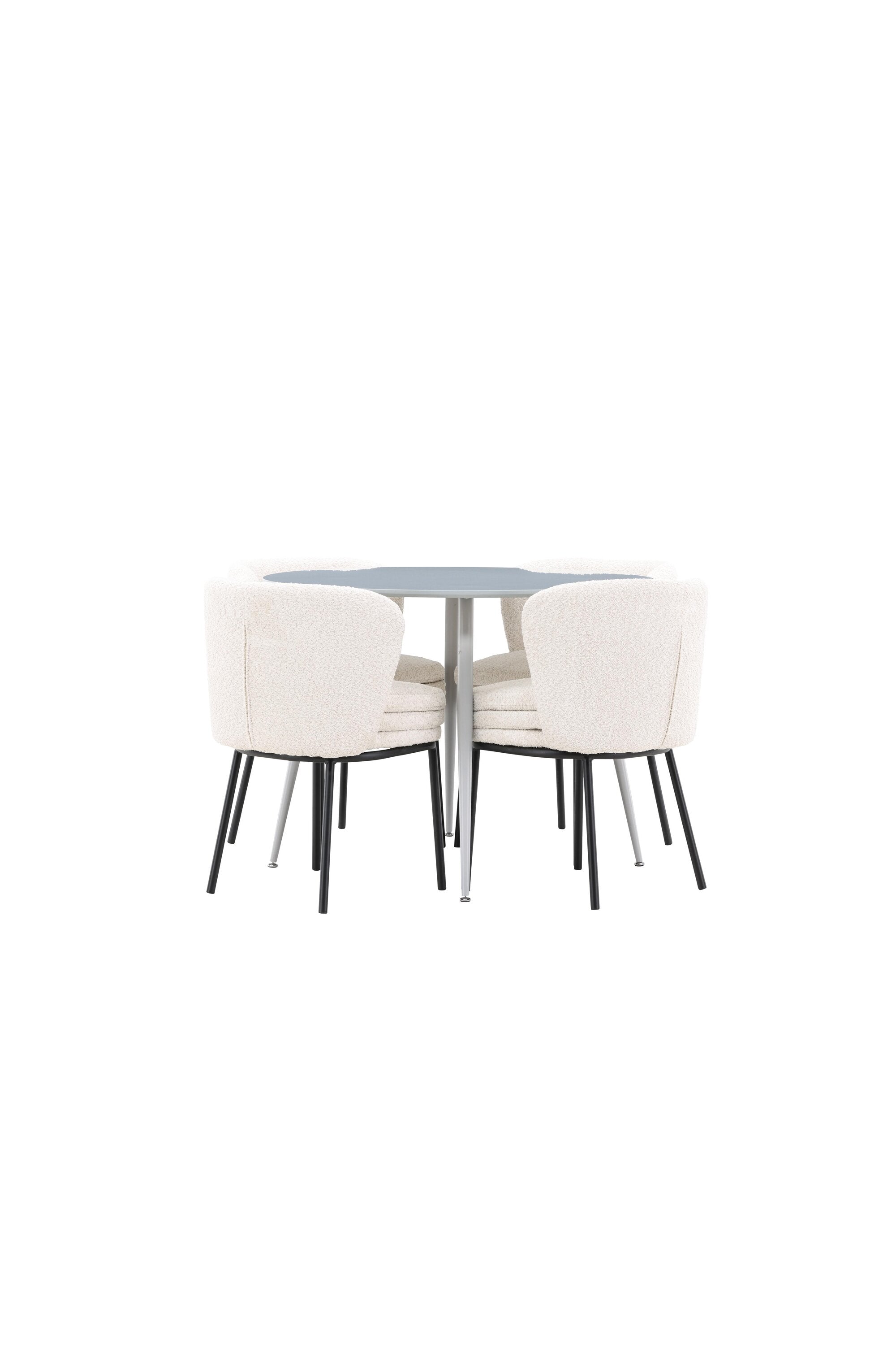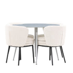 Obnovte svou jídelnu sofistikovaným a stylovým jídelním setem, který obsahuje stůl Plaza a židle Agnes. Tento jídelní set kombinuje moderní design s nejvyšším komfortem a je dokonalým doplňkem vašeho domova. Stůl Plaza zaujme elegantní šedou barvou a robustní MDF konstrukcí. S průměrem 100 cm nabízí velkorysou plochu pro stolování a posezení při zachování kompaktní velikosti, která se perfektně hodí do malých i velkých místností. Šedý odstín dodává stolu moderní a sofistikovaný vzhled a jeho odolný povrch usnadňuje čištění a údržbu. Čtyři doprovodné židle Agnes se svým moderním a elegantním designem perfektně hodí ke stolu. Židle jsou čalouněny měkkým bílým buklem, který poskytuje luxusní a pohodlné sezení. Tkanina Boucle je známá svou texturou a měkkostí, což vám a vašim hostům umožňuje pohodlně sedět při dlouhých jídlech a příjemných rozhovorech. Bílé židle vytvářejí krásný kontrast proti šedému stolu a dodávají vaší jídelně svěží a příjemnou atmosféru. Jídelní set Plaza se židlemi Agnes je perfektní volbou pro ty, kteří chtějí spojit styl s funkčností. Vytvořte si místo, kde si můžete vychutnat jídlo, stýkat se s přáteli a rodinou a vytvářet trvalé vzpomínky. Vítejte na nové úrovni elegance a pohodlí u vás doma s Plaza a Agnes!