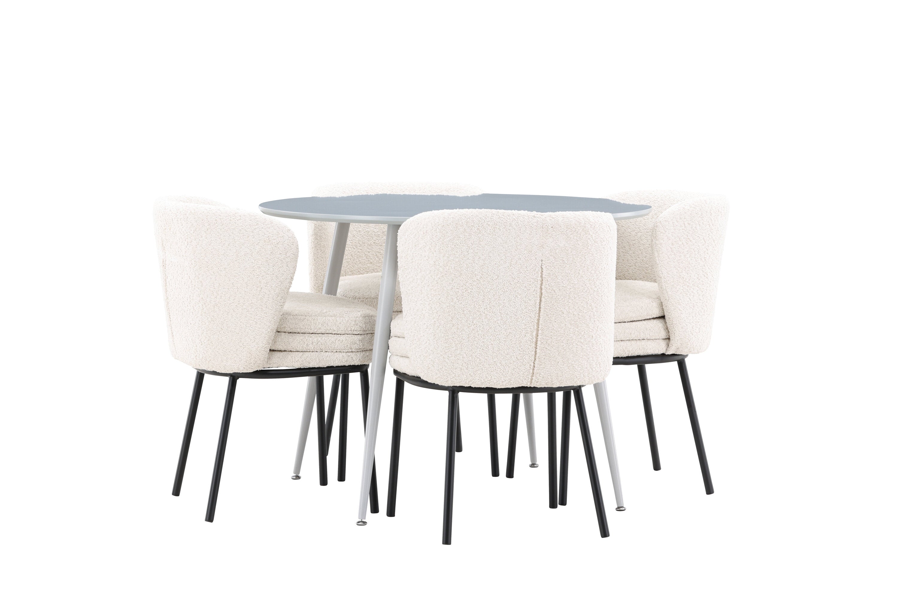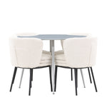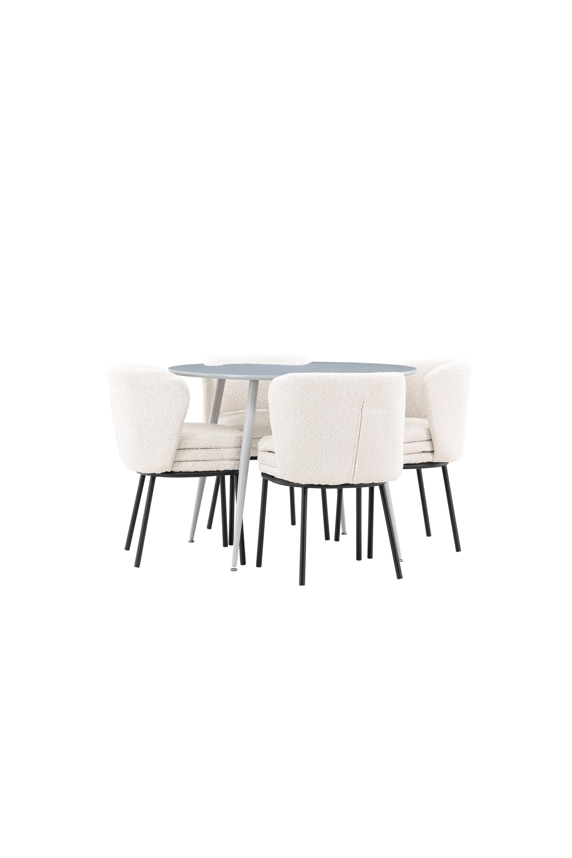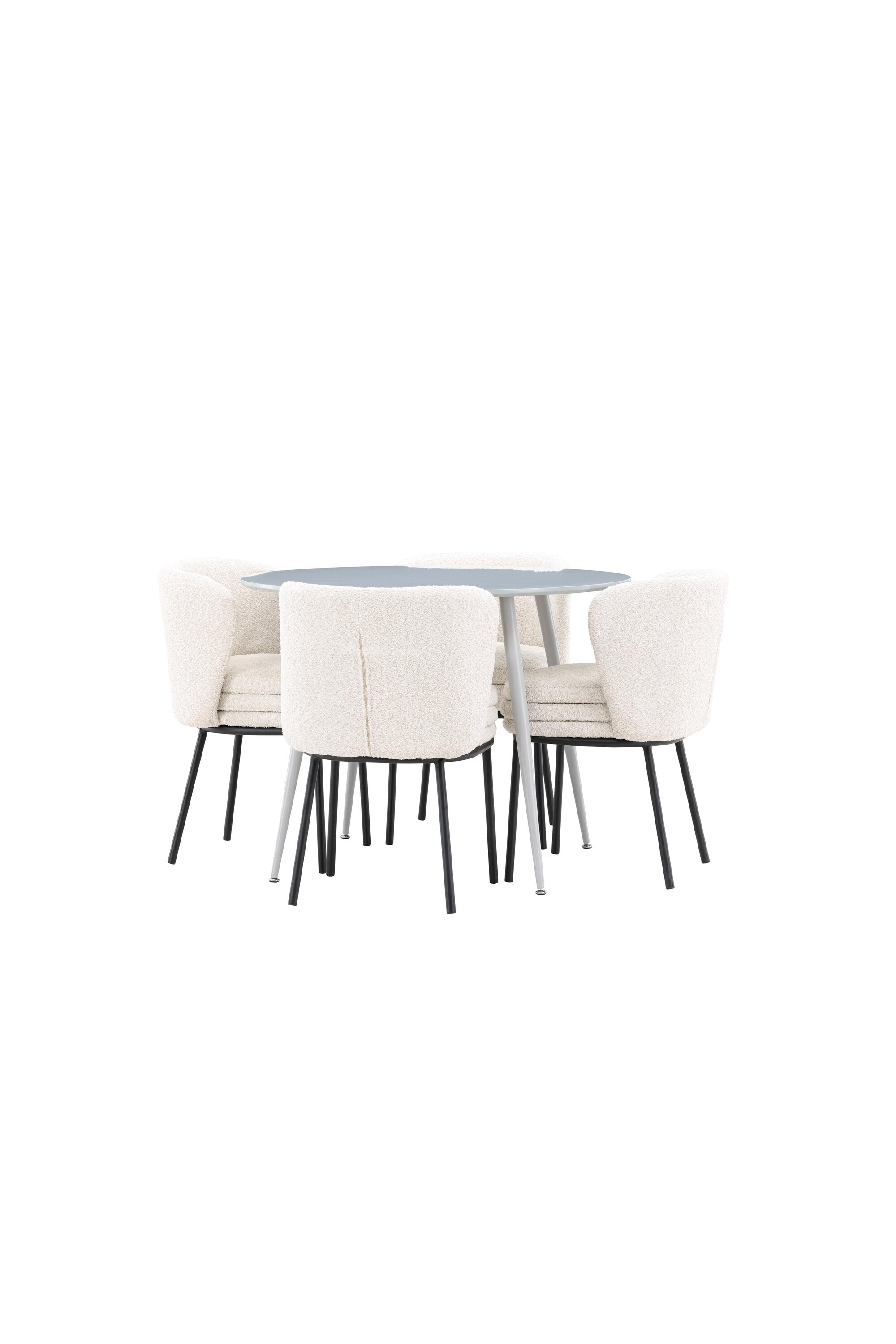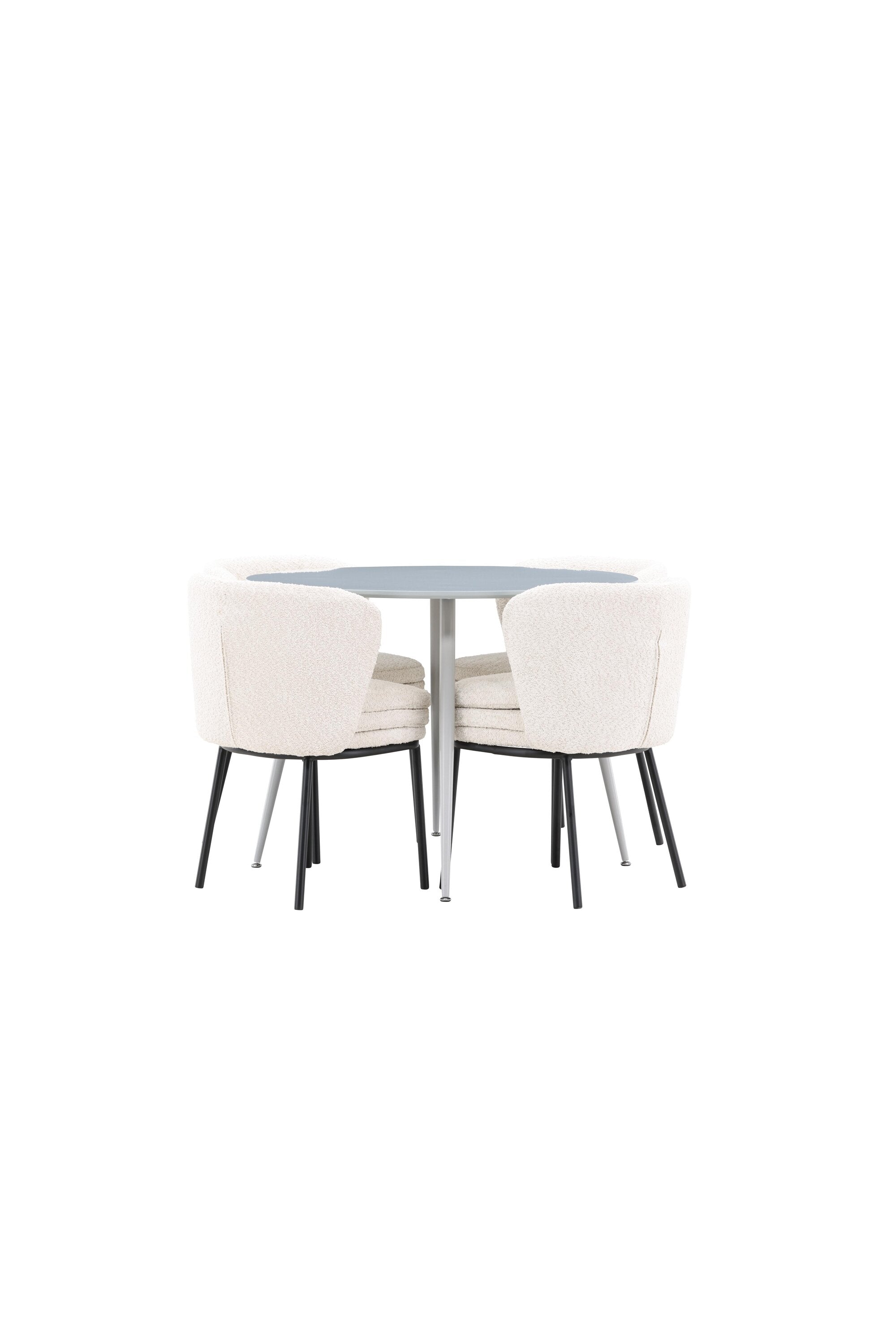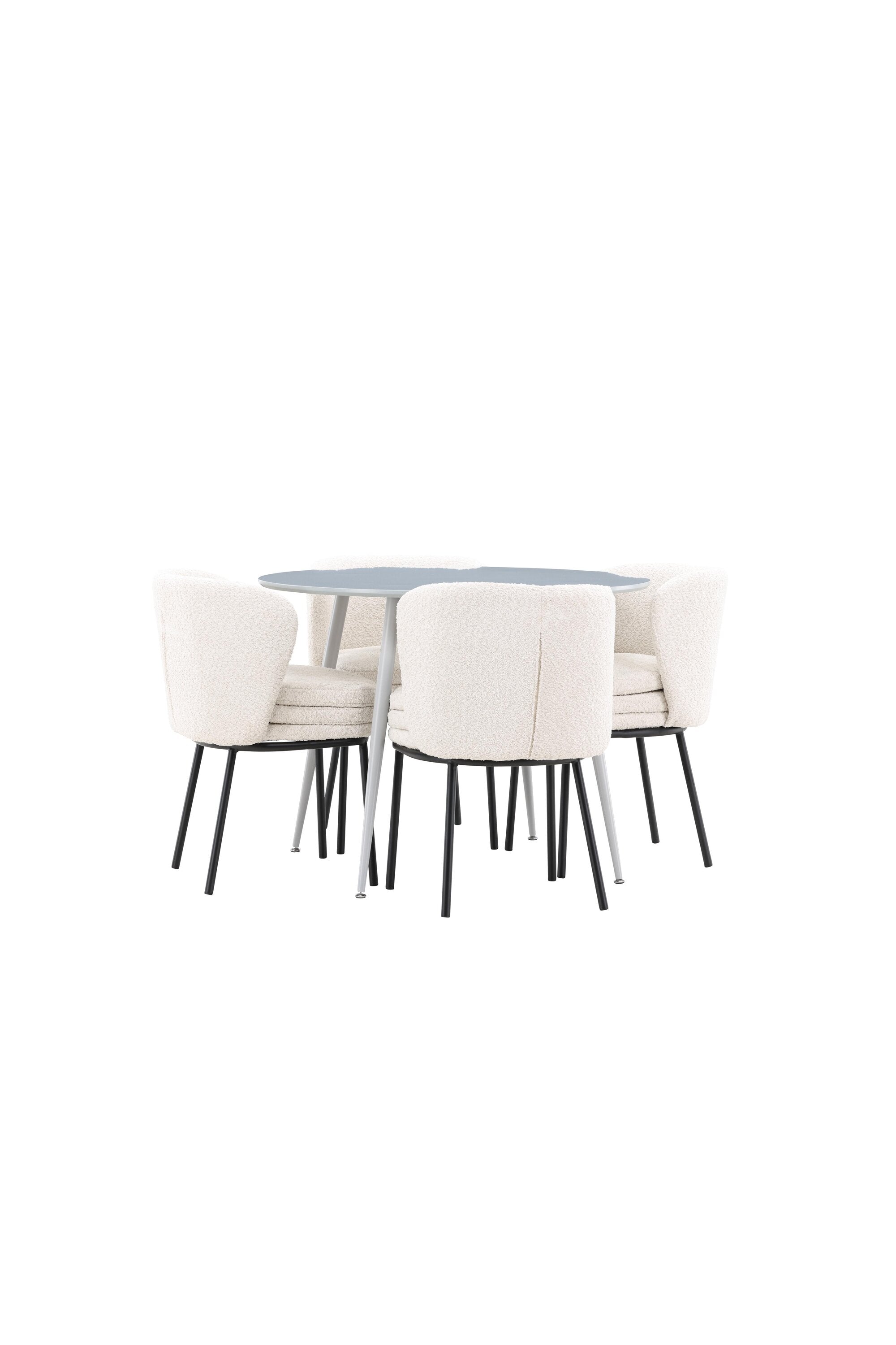 Obnovte svou jídelnu sofistikovaným a stylovým jídelním setem, který obsahuje stůl Plaza a židle Agnes. Tento jídelní set kombinuje moderní design s nejvyšším komfortem a je dokonalým doplňkem vašeho domova. Stůl Plaza zaujme elegantní šedou barvou a robustní MDF konstrukcí. S průměrem 100 cm nabízí velkorysou plochu pro stolování a posezení při zachování kompaktní velikosti, která se perfektně hodí do malých i velkých místností. Šedý odstín dodává stolu moderní a sofistikovaný vzhled a jeho odolný povrch usnadňuje čištění a údržbu. Čtyři doprovodné židle Agnes se svým moderním a elegantním designem perfektně hodí ke stolu. Židle jsou čalouněny měkkým bílým buklem, který poskytuje luxusní a pohodlné sezení. Tkanina Boucle je známá svou texturou a měkkostí, což vám a vašim hostům umožňuje pohodlně sedět při dlouhých jídlech a příjemných rozhovorech. Bílé židle vytvářejí krásný kontrast proti šedému stolu a dodávají vaší jídelně svěží a příjemnou atmosféru. Jídelní set Plaza se židlemi Agnes je perfektní volbou pro ty, kteří chtějí spojit styl s funkčností. Vytvořte si místo, kde si můžete vychutnat jídlo, stýkat se s přáteli a rodinou a vytvářet trvalé vzpomínky. Vítejte na nové úrovni elegance a pohodlí u vás doma s Plaza a Agnes!
