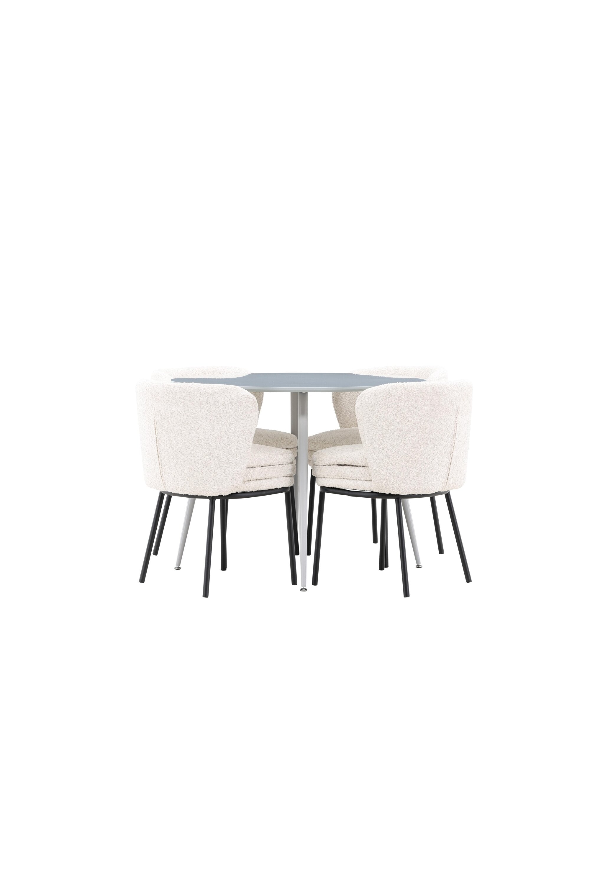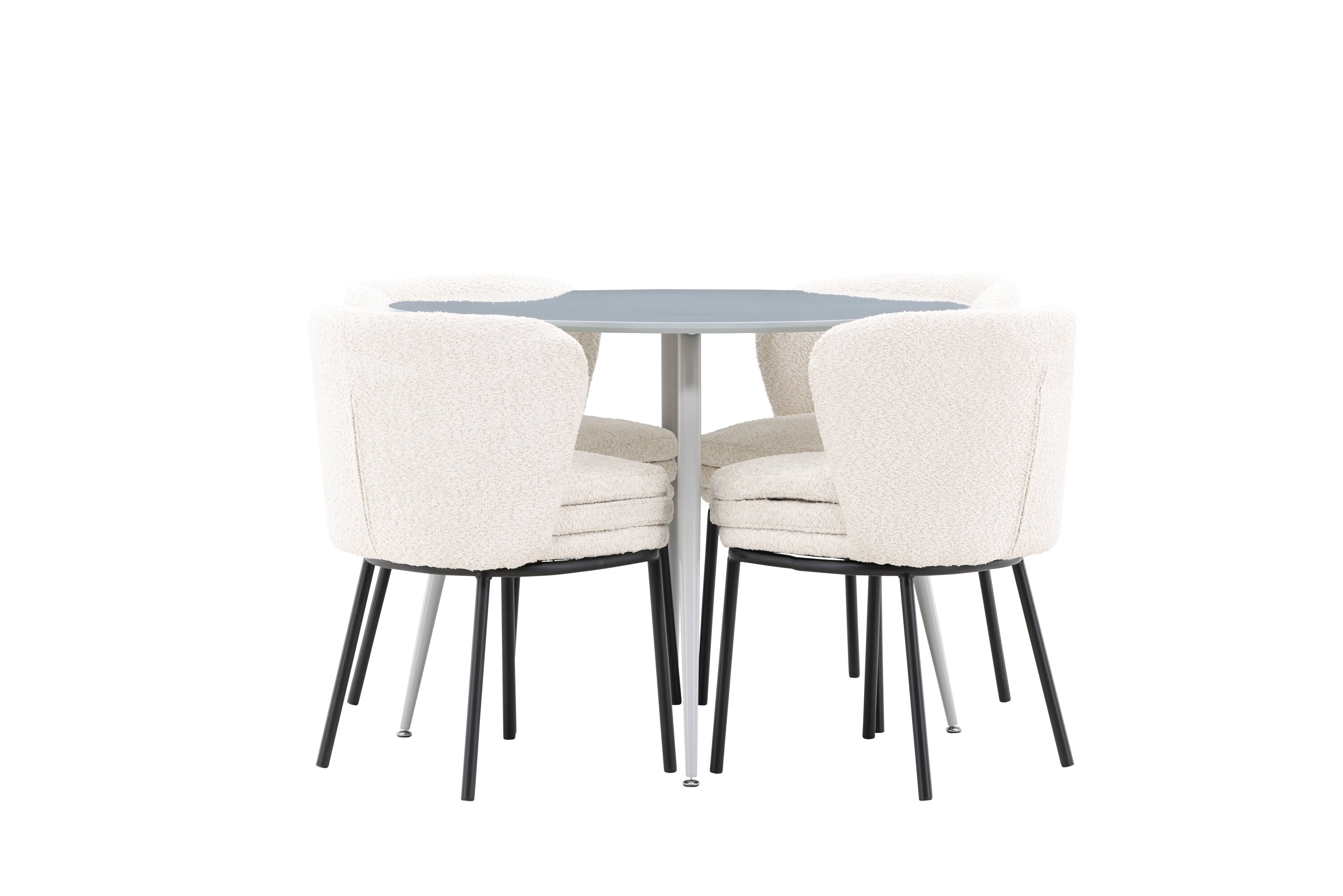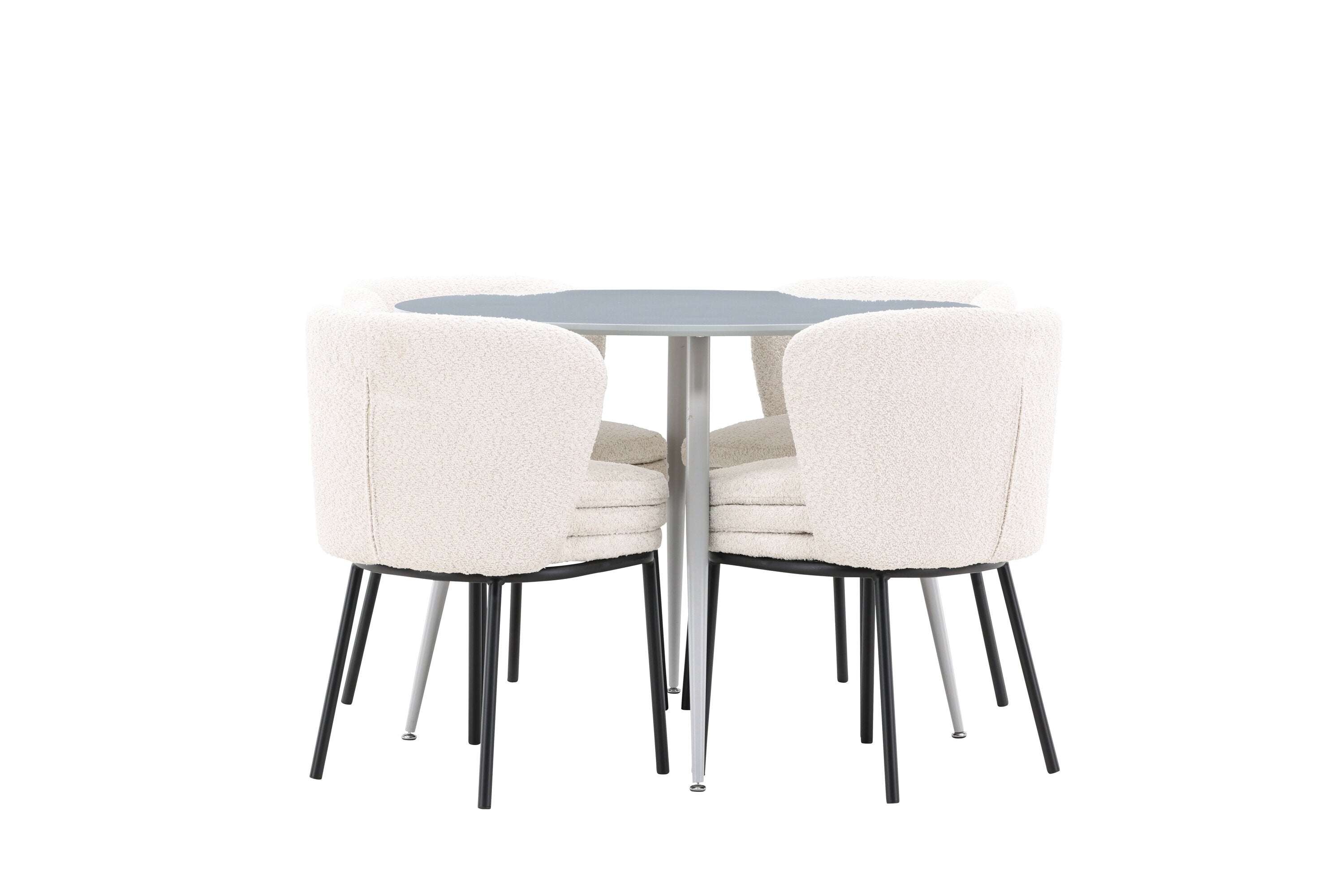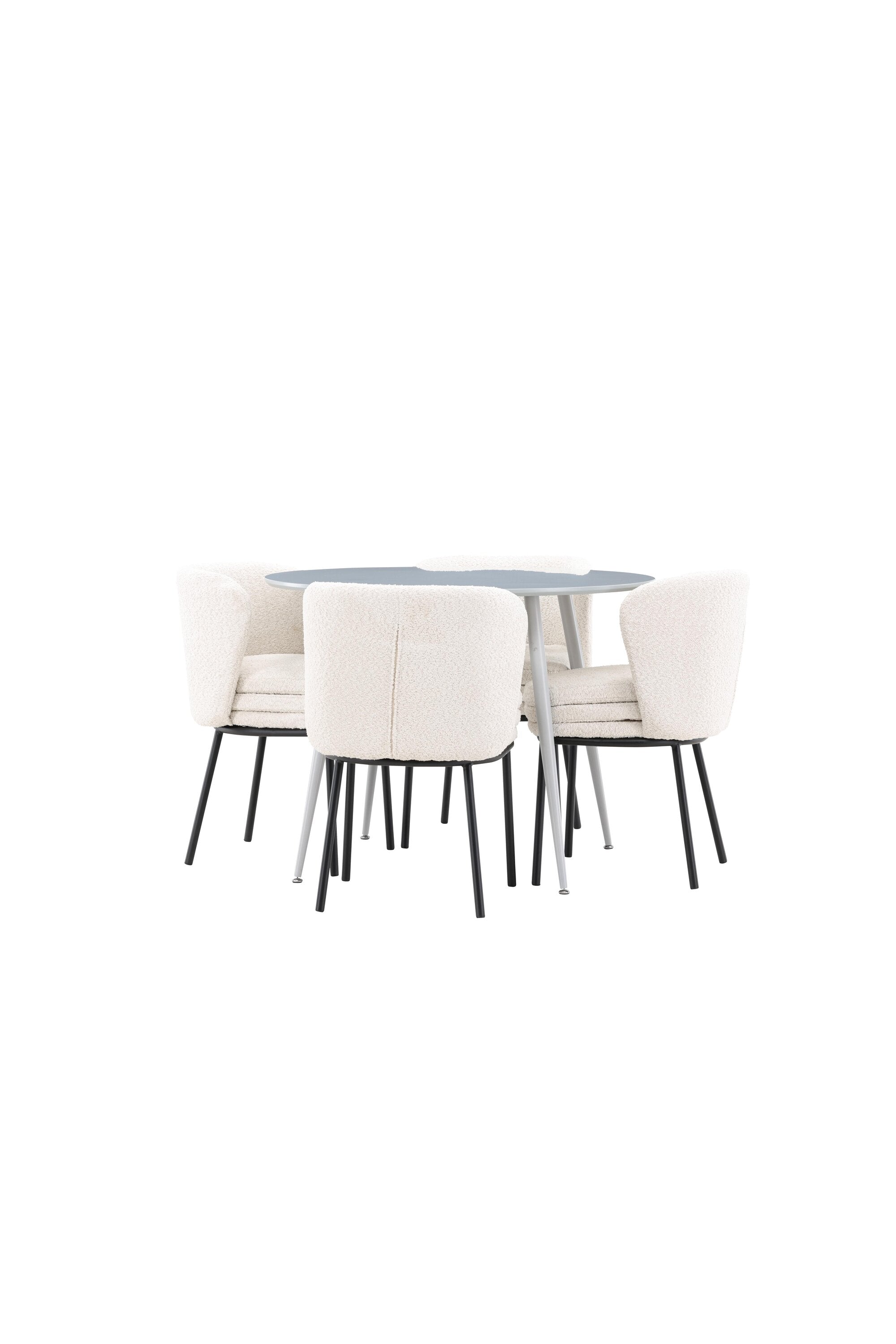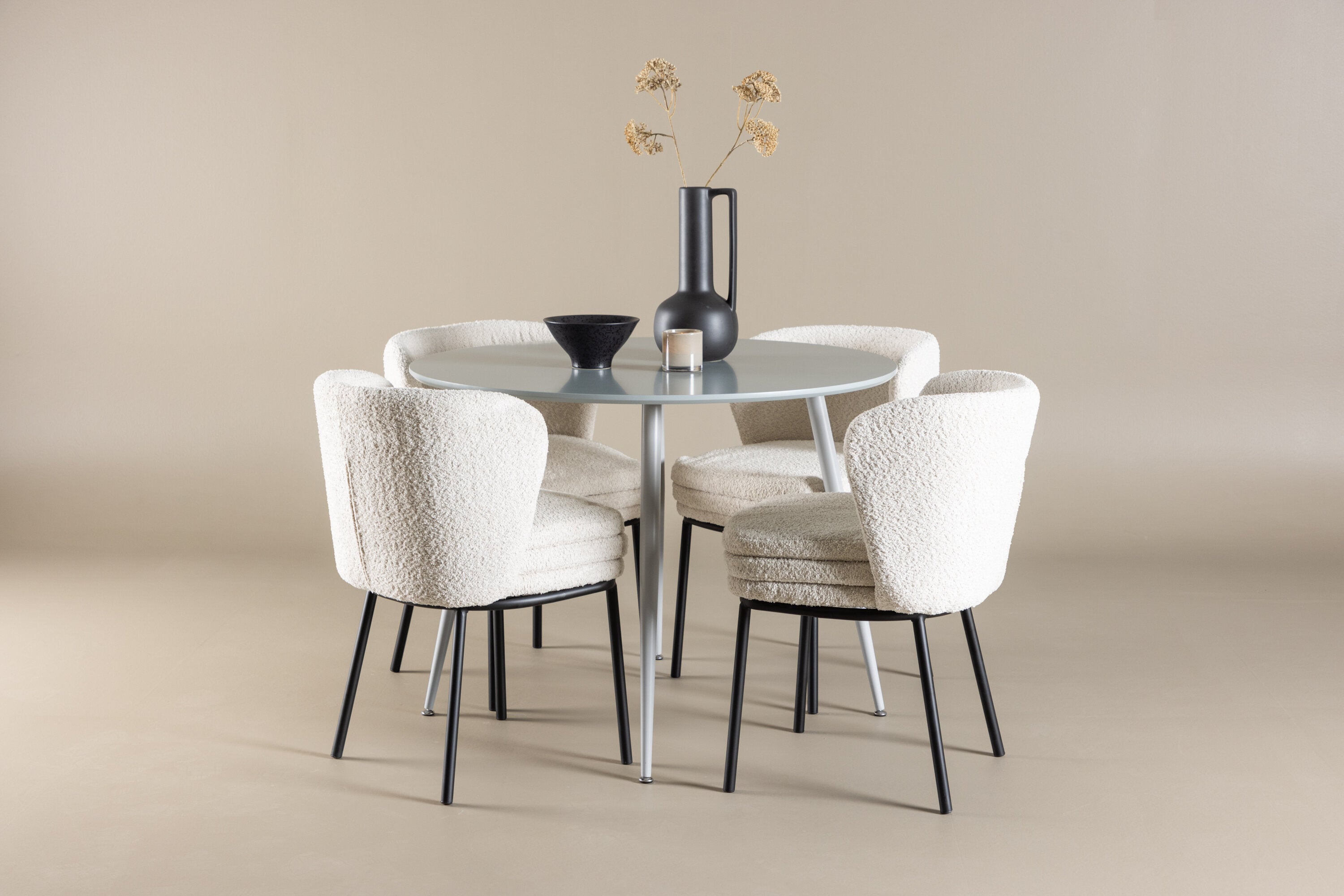 Obnovte svou jídelnu sofistikovaným a stylovým jídelním setem, který obsahuje stůl Plaza a židle Agnes. Tento jídelní set kombinuje moderní design s nejvyšším komfortem a je dokonalým doplňkem vašeho domova. Stůl Plaza zaujme elegantní šedou barvou a robustní MDF konstrukcí. S průměrem 100 cm nabízí velkorysou plochu pro stolování a posezení při zachování kompaktní velikosti, která se perfektně hodí do malých i velkých místností. Šedý odstín dodává stolu moderní a sofistikovaný vzhled a jeho odolný povrch usnadňuje čištění a údržbu. Čtyři doprovodné židle Agnes se svým moderním a elegantním designem perfektně hodí ke stolu. Židle jsou čalouněny měkkým bílým buklem, který poskytuje luxusní a pohodlné sezení. Tkanina Boucle je známá svou texturou a měkkostí, což vám a vašim hostům umožňuje pohodlně sedět při dlouhých jídlech a příjemných rozhovorech. Bílé židle vytvářejí krásný kontrast proti šedému stolu a dodávají vaší jídelně svěží a příjemnou atmosféru. Jídelní set Plaza se židlemi Agnes je perfektní volbou pro ty, kteří chtějí spojit styl s funkčností. Vytvořte si místo, kde si můžete vychutnat jídlo, stýkat se s přáteli a rodinou a vytvářet trvalé vzpomínky. Vítejte na nové úrovni elegance a pohodlí u vás doma s Plaza a Agnes!