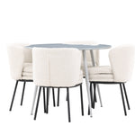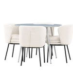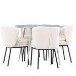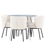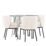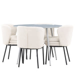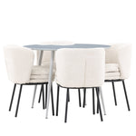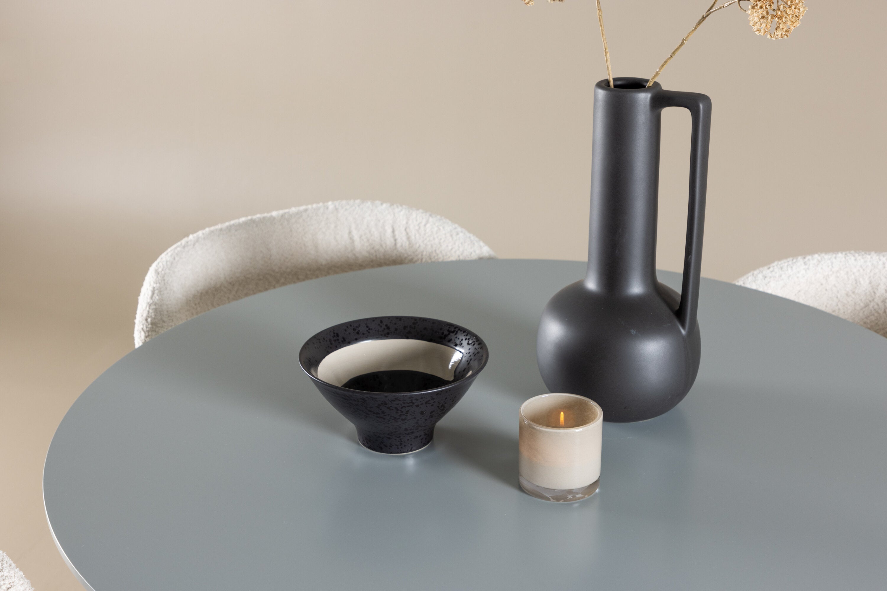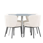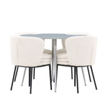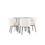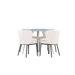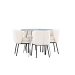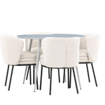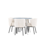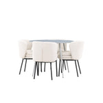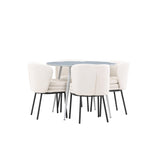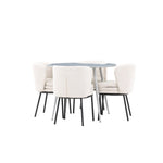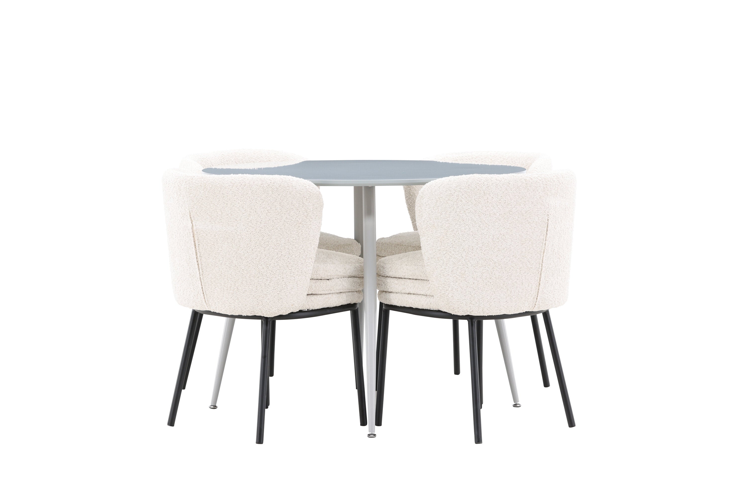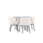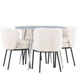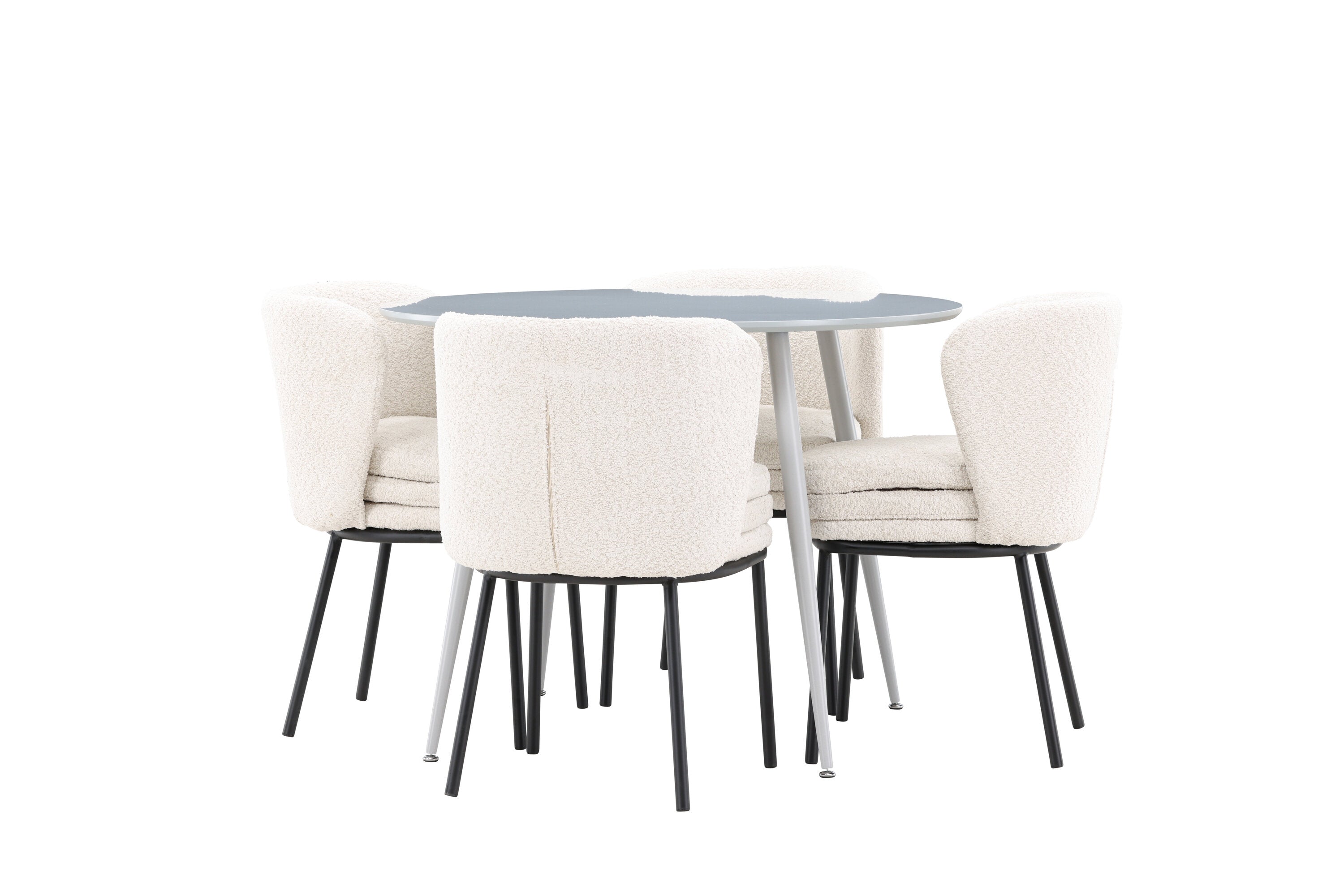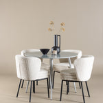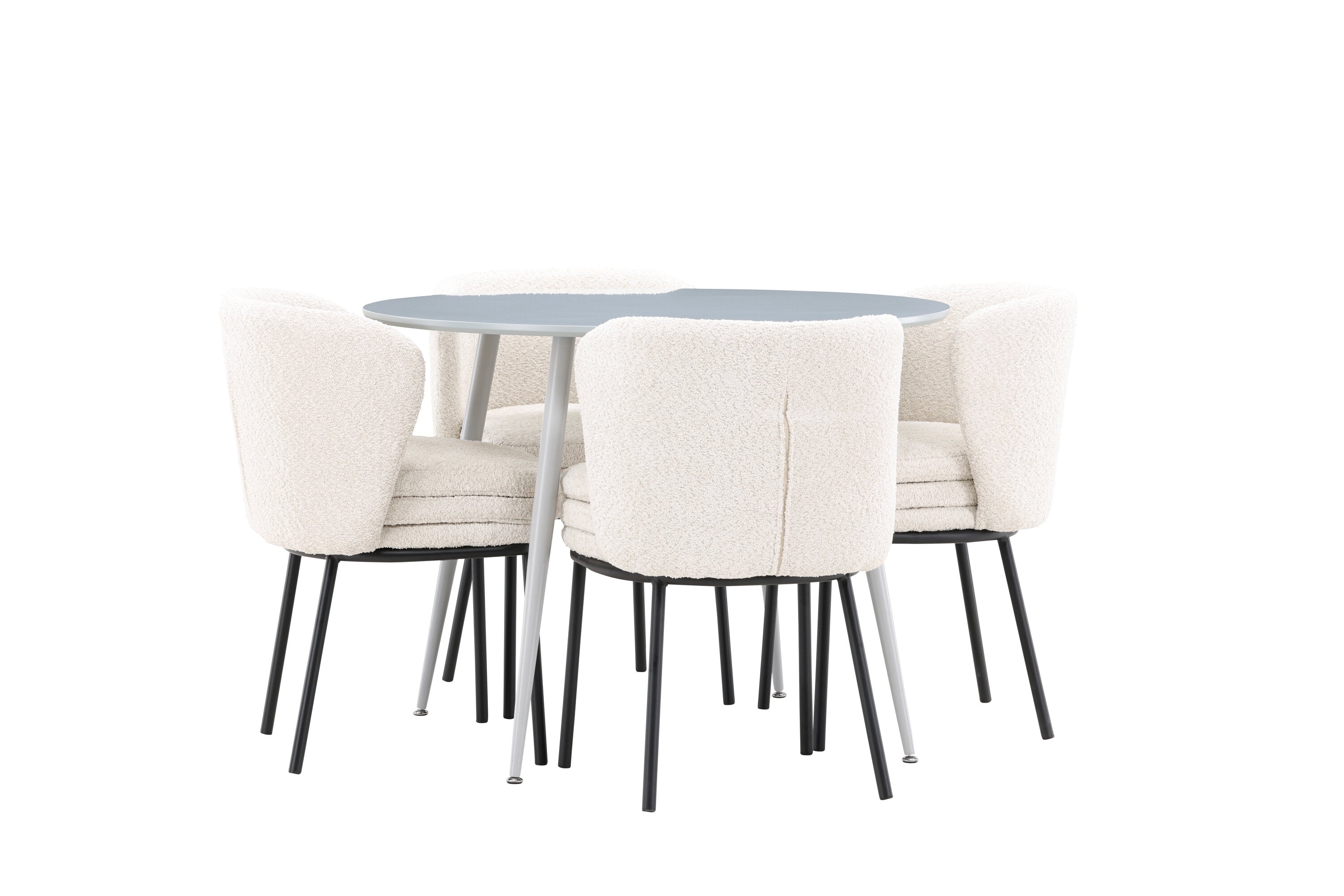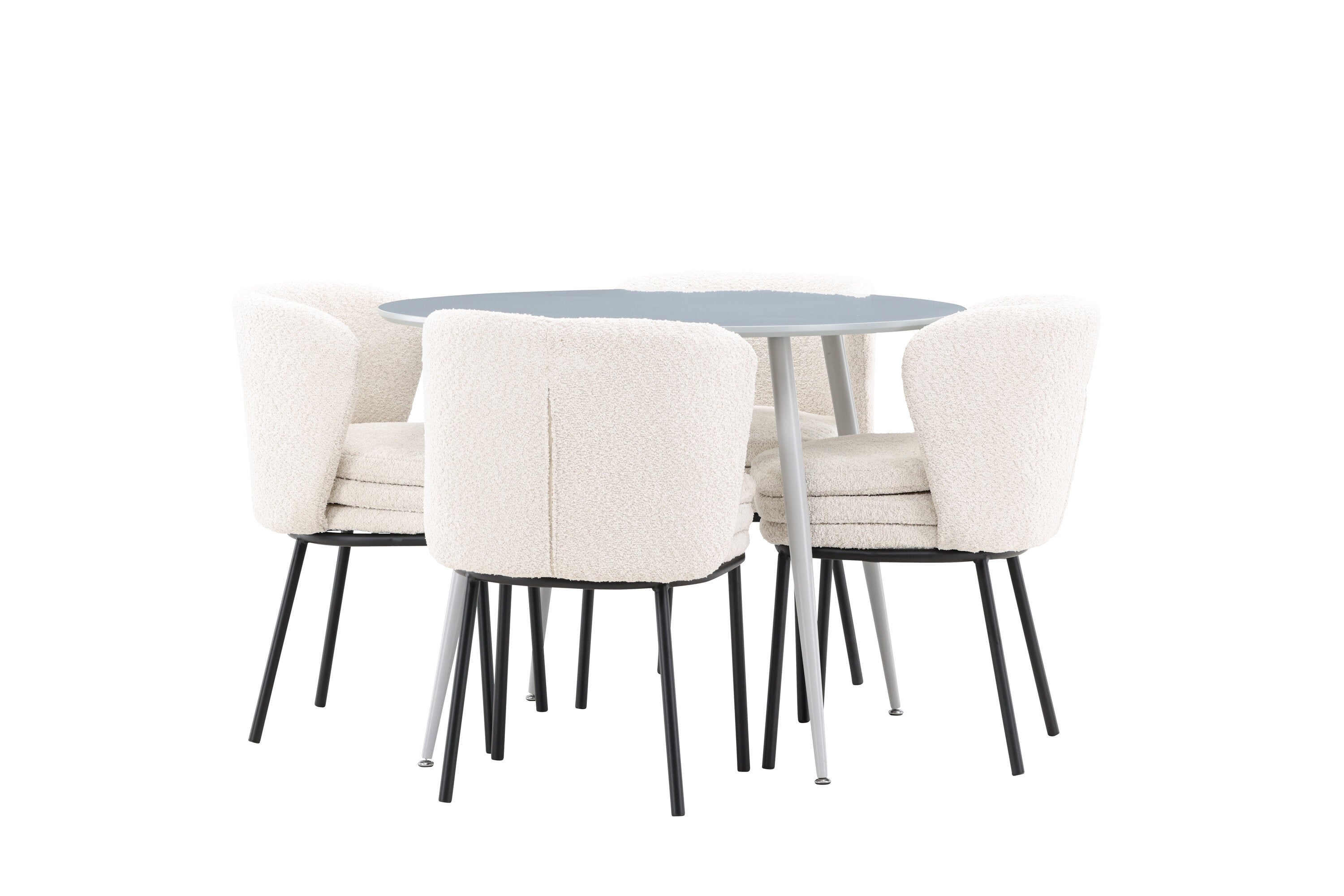 Obnovte svou jídelnu sofistikovaným a stylovým jídelním setem, který obsahuje stůl Plaza a židle Agnes. Tento jídelní set kombinuje moderní design s nejvyšším komfortem a je dokonalým doplňkem vašeho domova. Stůl Plaza zaujme elegantní šedou barvou a robustní MDF konstrukcí. S průměrem 100 cm nabízí velkorysou plochu pro stolování a posezení při zachování kompaktní velikosti, která se perfektně hodí do malých i velkých místností. Šedý odstín dodává stolu moderní a sofistikovaný vzhled a jeho odolný povrch usnadňuje čištění a údržbu. Čtyři doprovodné židle Agnes se svým moderním a elegantním designem perfektně hodí ke stolu. Židle jsou čalouněny měkkým bílým buklem, který poskytuje luxusní a pohodlné sezení. Tkanina Boucle je známá svou texturou a měkkostí, což vám a vašim hostům umožňuje pohodlně sedět při dlouhých jídlech a příjemných rozhovorech. Bílé židle vytvářejí krásný kontrast proti šedému stolu a dodávají vaší jídelně svěží a příjemnou atmosféru. Jídelní set Plaza se židlemi Agnes je perfektní volbou pro ty, kteří chtějí spojit styl s funkčností. Vytvořte si místo, kde si můžete vychutnat jídlo, stýkat se s přáteli a rodinou a vytvářet trvalé vzpomínky. Vítejte na nové úrovni elegance a pohodlí u vás doma s Plaza a Agnes!