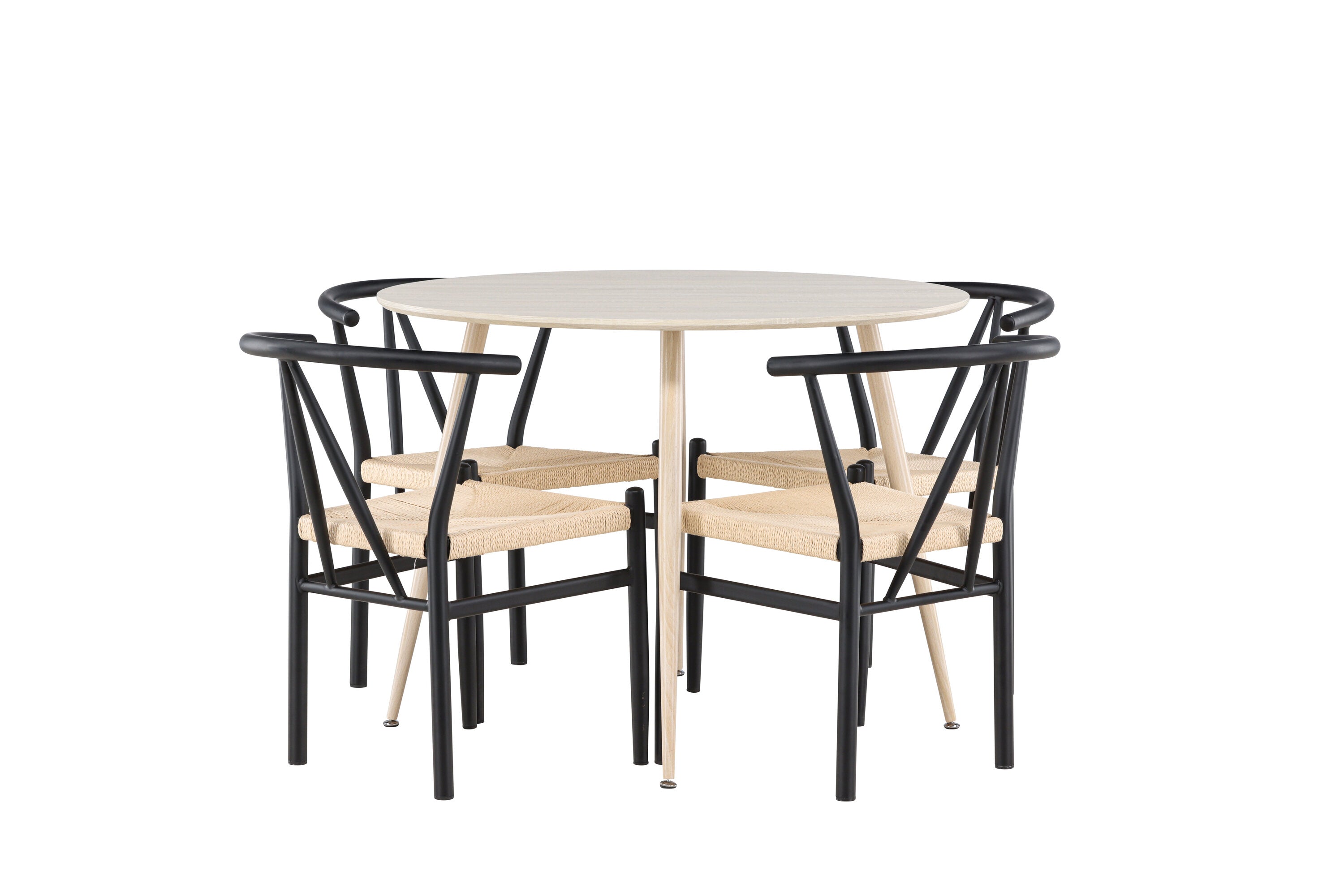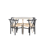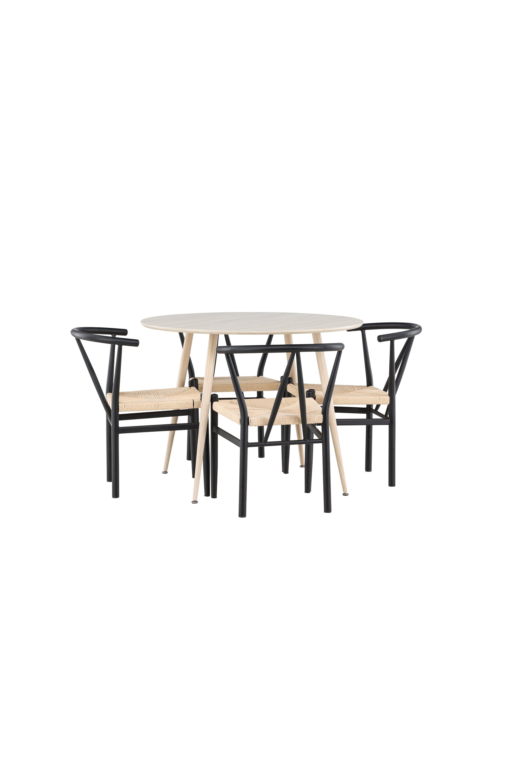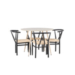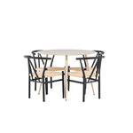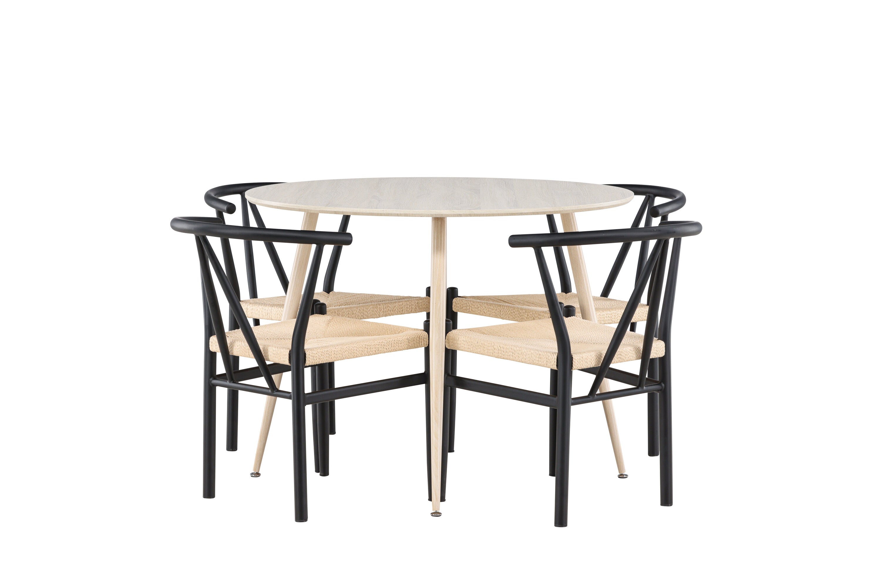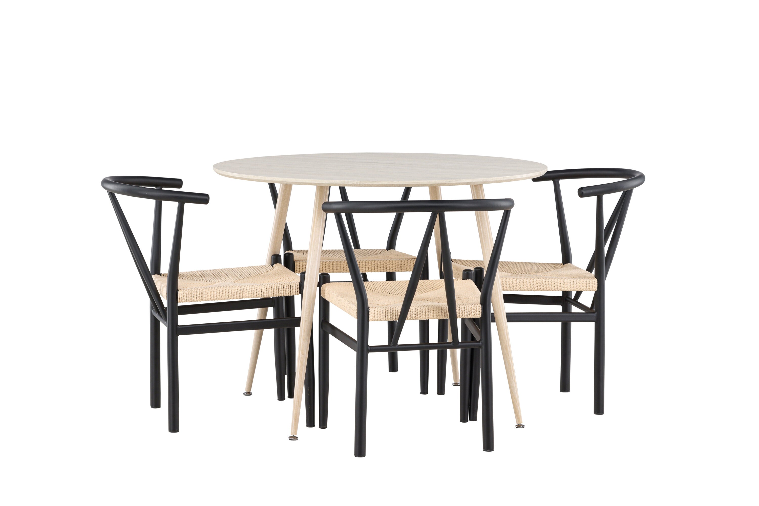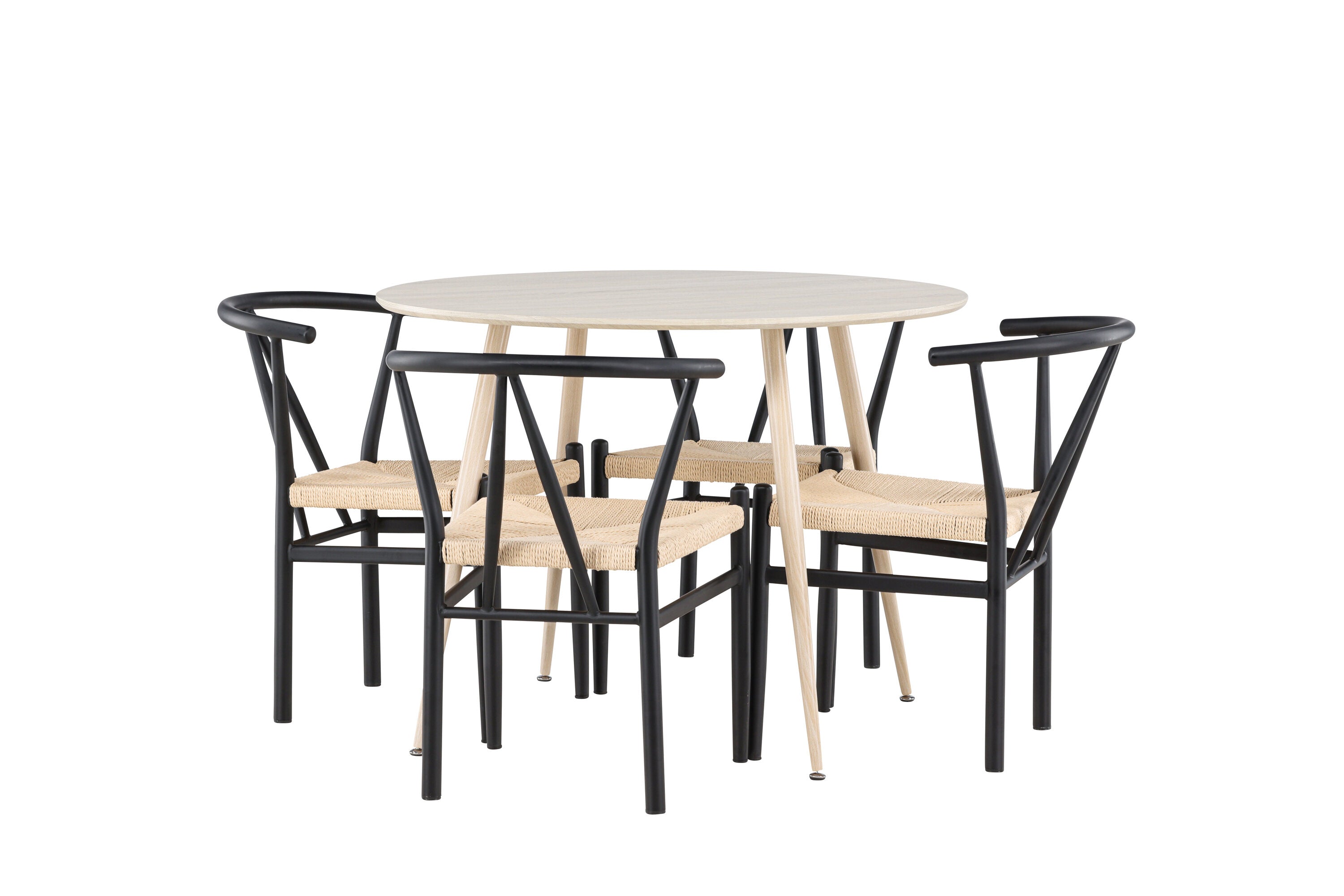Objevte perfektní jídelní set pro váš domov s jídelním stolem Plaza a jídelními židlemi Alfons. Jídelní stůl Plaza s velkorysým průměrem 100 cm je vyroben z odolného MDF materiálu a má bíle pigmentovanou barvu, která dodává místnosti hřejivý a příjemný pocit. Jeho moderní design a čisté linie vytvářejí klidnou a harmonickou atmosféru, díky níž je každé jídlo relaxačním zážitkem. Díky kompaktnímu formátu je Plaza ideální pro menší prostory a zároveň nabízí dostatek prostoru pro pohodlné jídlo s rodinou a přáteli. Doplňte svůj jídelní stůl o naše stylové jídelní židle Alfons, které elegantním způsobem spojují styl a funkčnost. Se sedákem z béžového ratanu a rámem z černé oceli dodají vašemu jídelnímu stolu nadčasový a klasický vzhled. Jídelní židle Alfons nabízejí nejen pohodlné místo k sezení a vychutnávání si jídla, ale také příležitost vytvořit komunitu kolem stolu. Díky robustní konstrukci a pevnému materiálu je Alfons připraven odolat mnoha večeřím a setkáním, které přijdou. Dodejte svému domovu moderní a stylový nádech s jídelním stolem Plaza a jídelními židlemi Alfons – dokonalá kombinace pro každého, kdo si cení stylu i funkce ve svém zařízení.