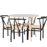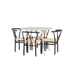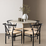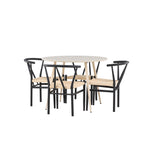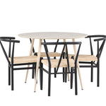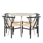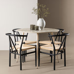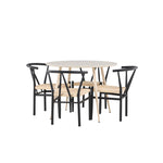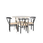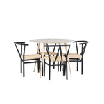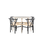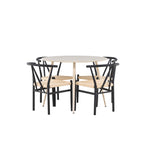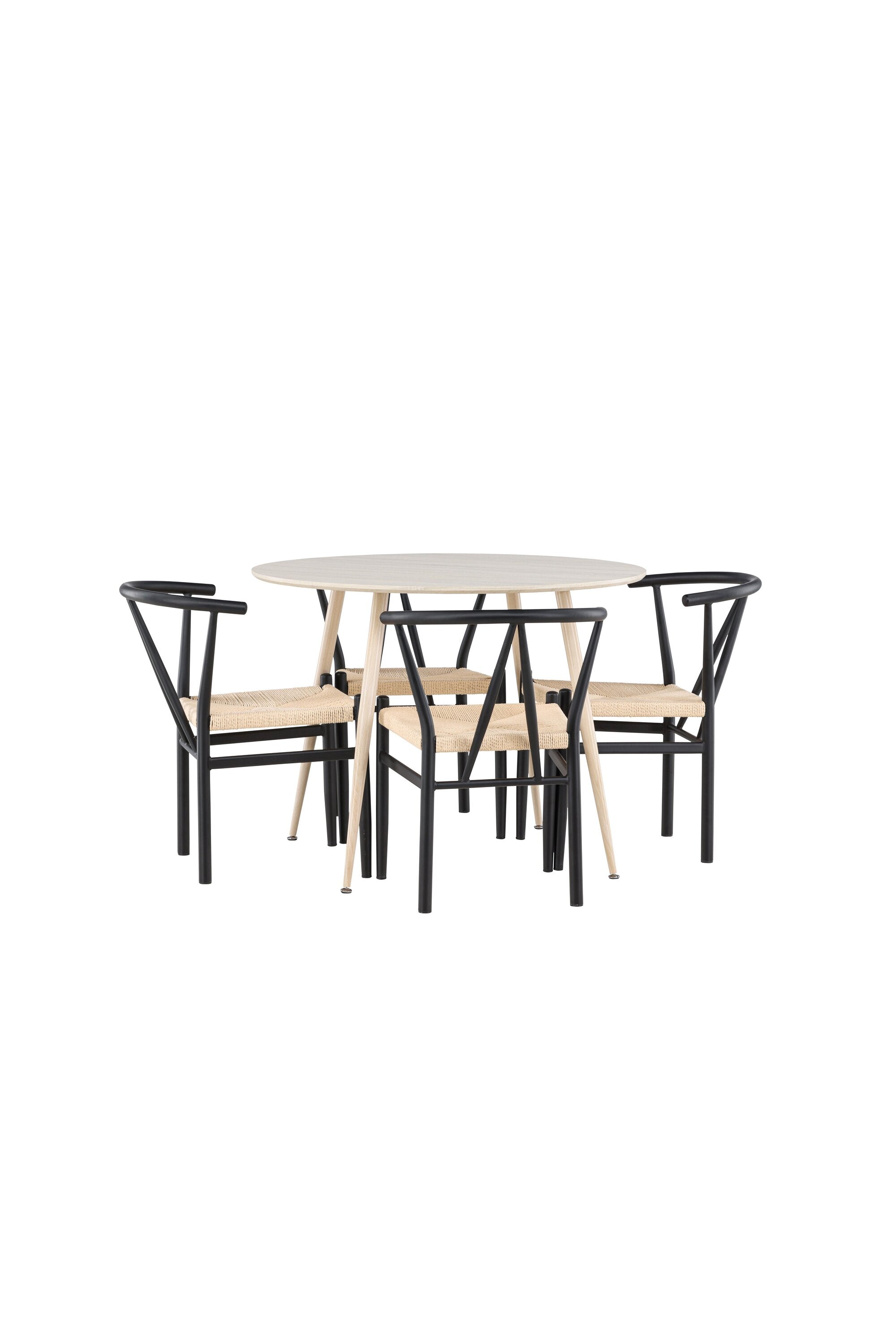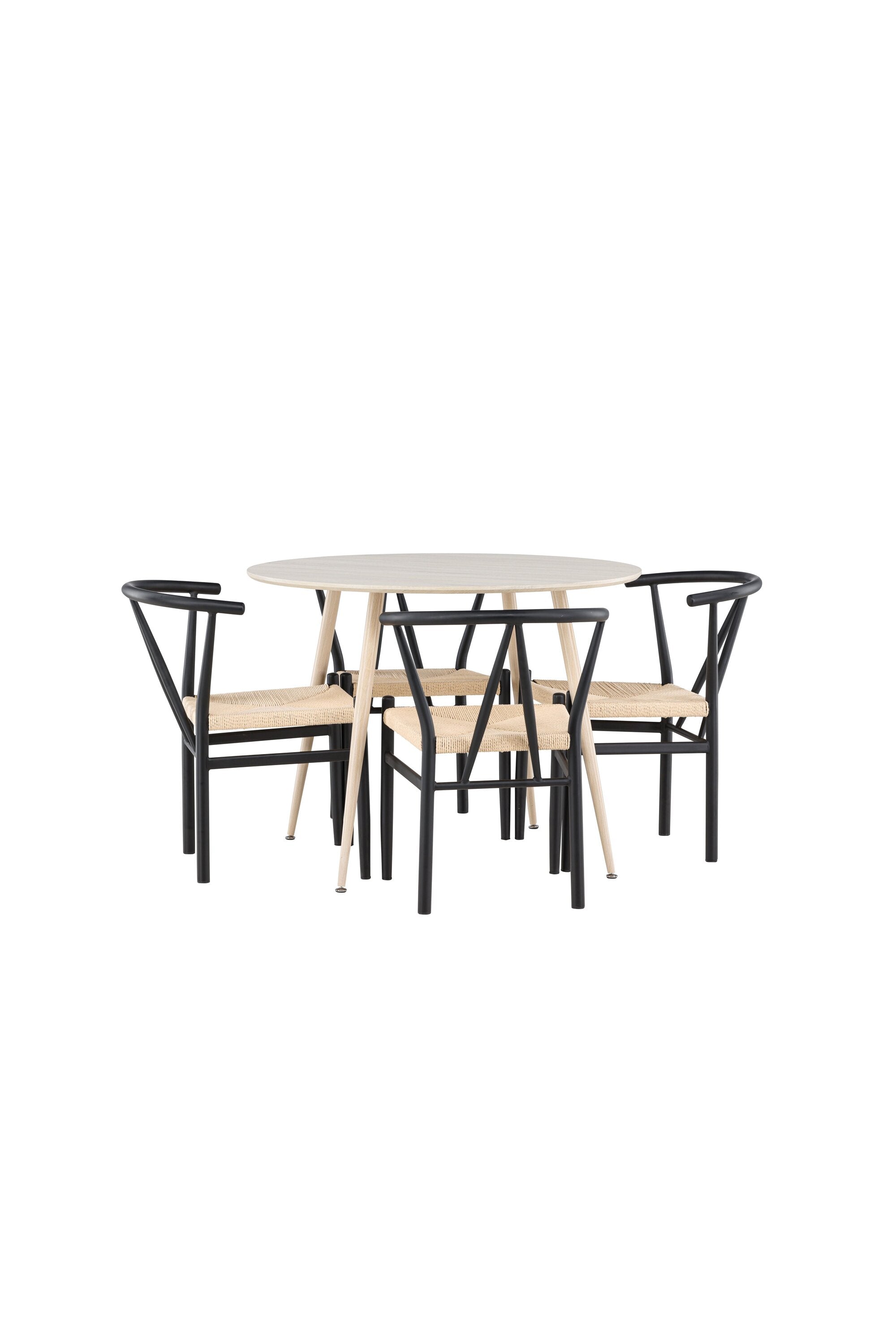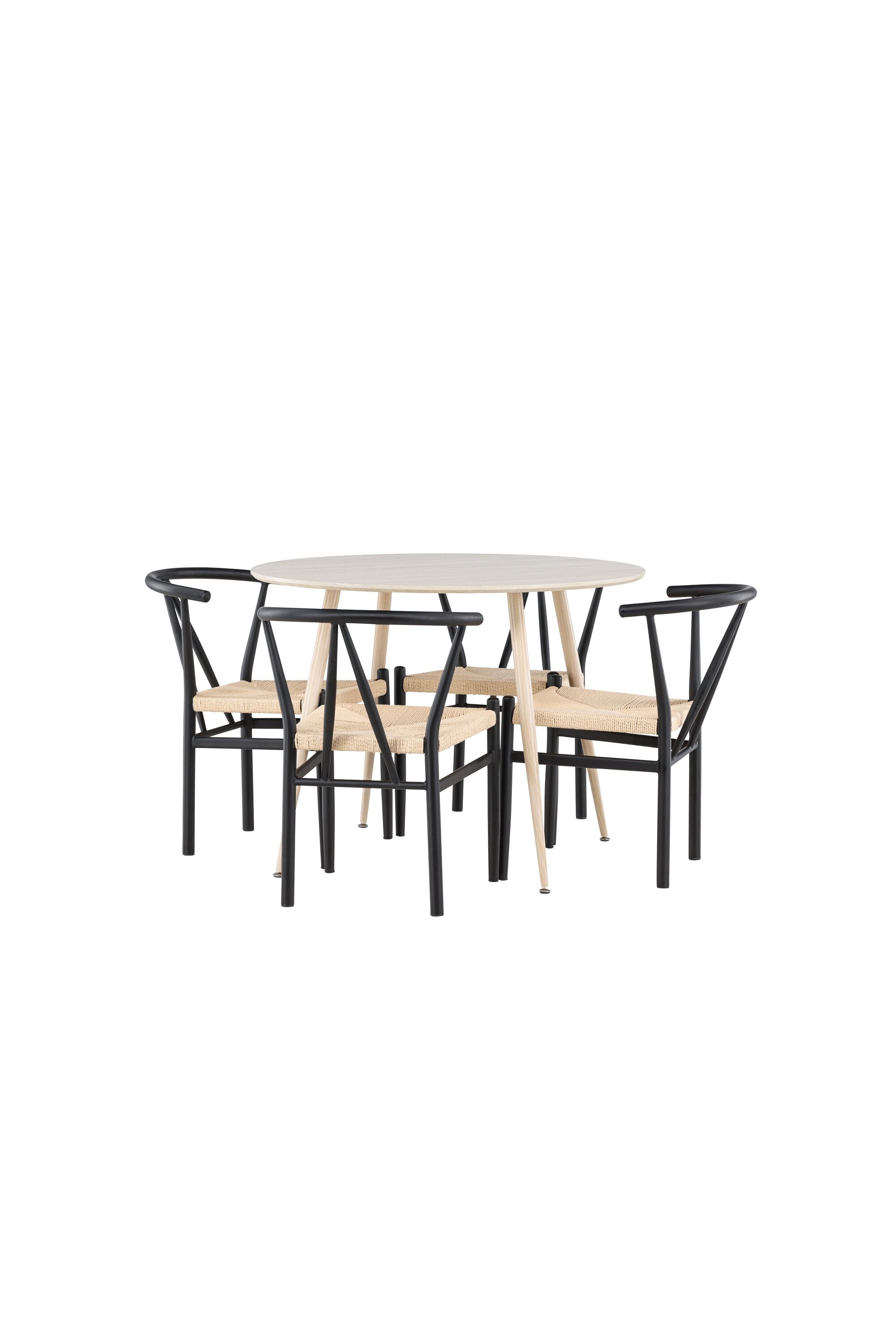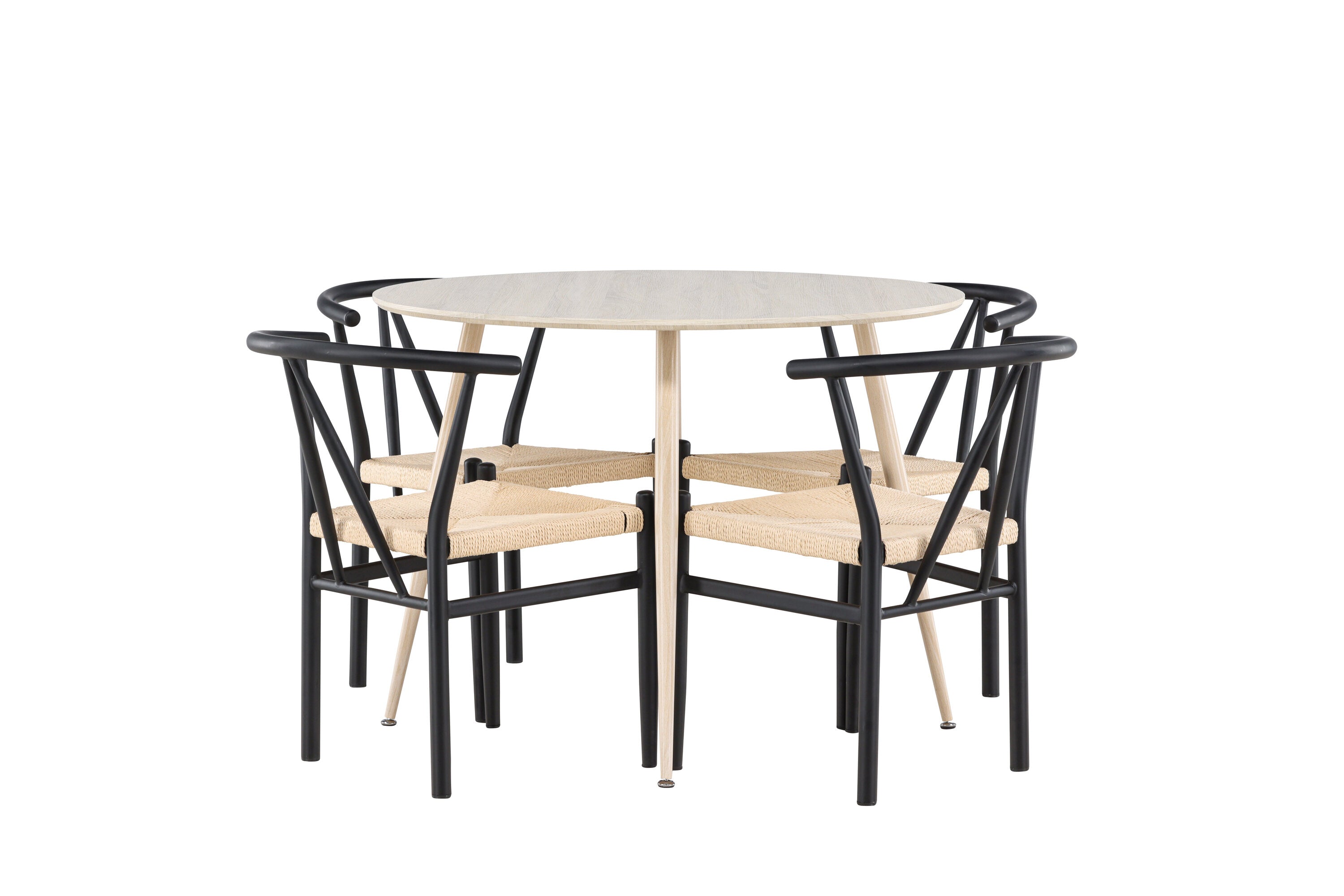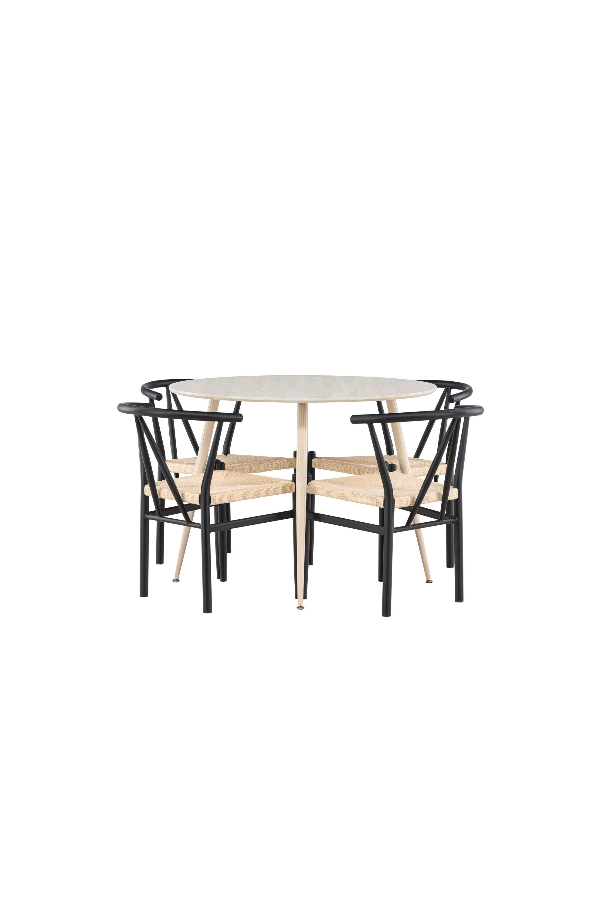 Objevte perfektní jídelní set pro váš domov s jídelním stolem Plaza a jídelními židlemi Alfons. Jídelní stůl Plaza s velkorysým průměrem 100 cm je vyroben z odolného MDF materiálu a má bíle pigmentovanou barvu, která dodává místnosti hřejivý a příjemný pocit. Jeho moderní design a čisté linie vytvářejí klidnou a harmonickou atmosféru, díky níž je každé jídlo relaxačním zážitkem. Díky kompaktnímu formátu je Plaza ideální pro menší prostory a zároveň nabízí dostatek prostoru pro pohodlné jídlo s rodinou a přáteli. Doplňte svůj jídelní stůl o naše stylové jídelní židle Alfons, které elegantním způsobem spojují styl a funkčnost. Se sedákem z béžového ratanu a rámem z černé oceli dodají vašemu jídelnímu stolu nadčasový a klasický vzhled. Jídelní židle Alfons nabízejí nejen pohodlné místo k sezení a vychutnávání si jídla, ale také příležitost vytvořit komunitu kolem stolu. Díky robustní konstrukci a pevnému materiálu je Alfons připraven odolat mnoha večeřím a setkáním, které přijdou. Dodejte svému domovu moderní a stylový nádech s jídelním stolem Plaza a jídelními židlemi Alfons – dokonalá kombinace pro každého, kdo si cení stylu i funkce ve svém zařízení.