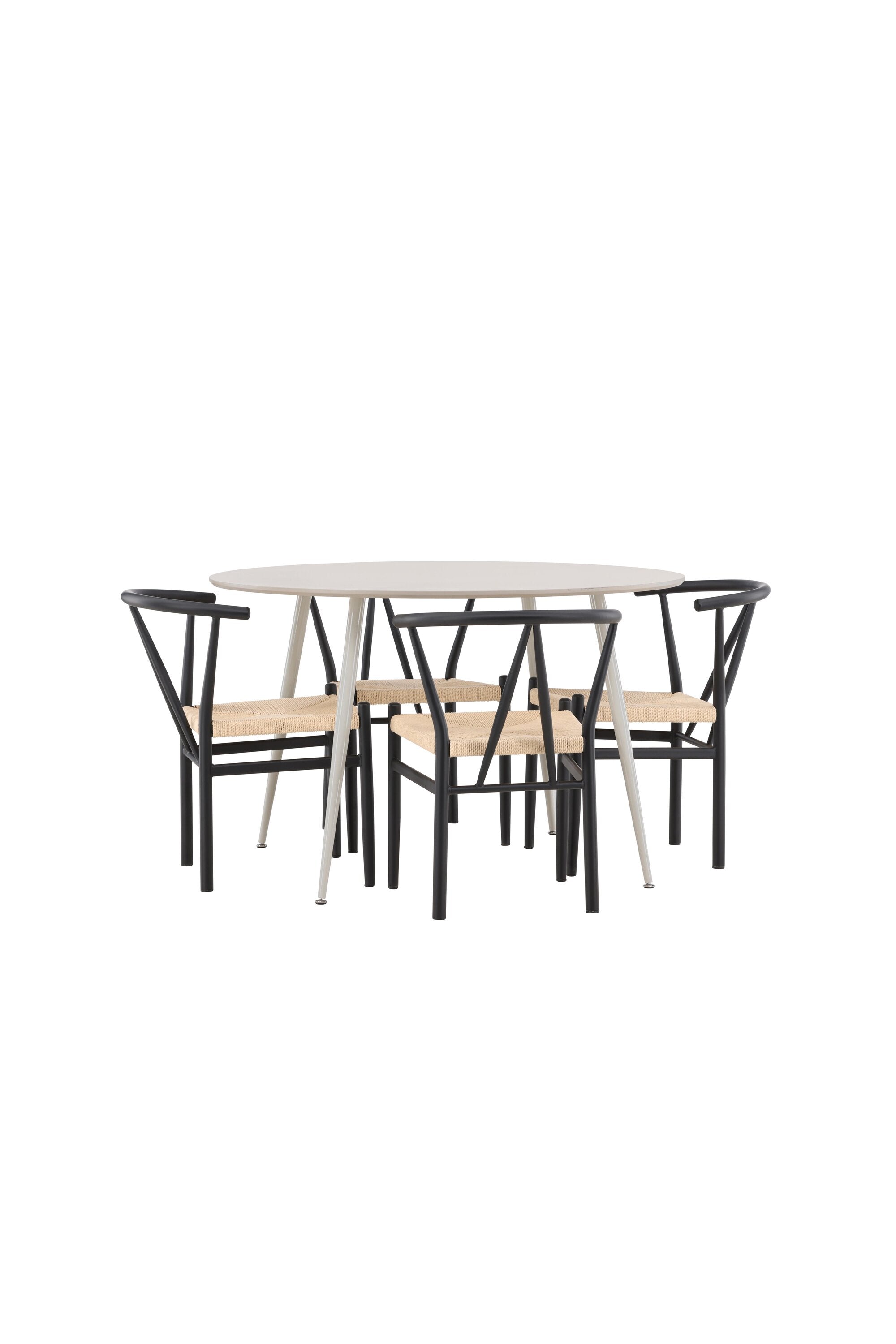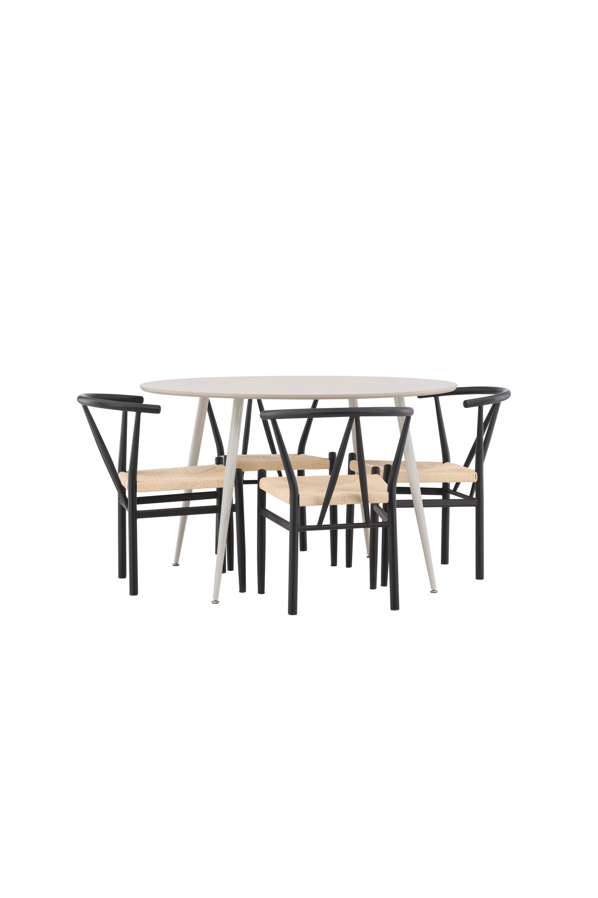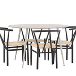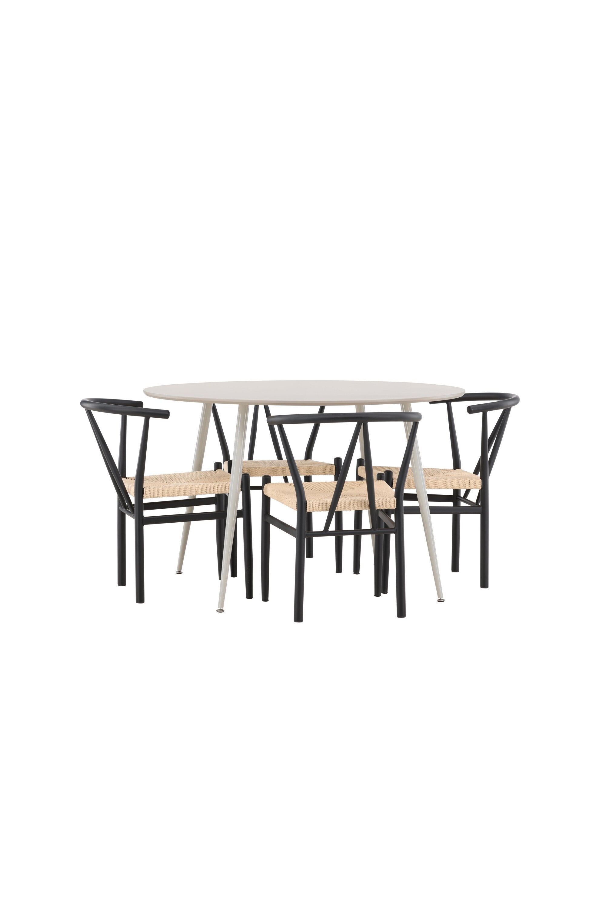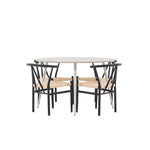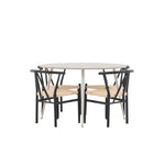 Vytvořte si příjemný a stylový jídelní kout s naší elegantní jídelní sadou, která kombinuje sofistikovaný stůl Plaza s okouzlujícími židlemi Alfons. Tato jídelní souprava je ideální jak pro každodenní jídla, tak pro slavnostní příležitosti a dodá vaší jídelně moderní a vzdušný nádech. Stůl Plaza je vyroben z MDF a má krásnou světle béžovou barvu. S velkorysým průměrem 120 cm nabízí dostatek prostoru pro jídlo i rozhovory, přičemž jeho kulatý tvar navodí harmonickou atmosféru ve vaší jídelně. Robustní konstrukce stolu zajišťuje dlouhodobé používání a stabilitu. Čtyři židle Alfons skvěle doplňují stůl s elegantními béžovými ratanovými sedáky a elegantními černými kovovými nohami. Tyto židle nabízejí pohodlí i styl, díky čemuž jsou ideální pro dlouhé, relaxační večeře s rodinou a přáteli. Jejich moderní design s přírodními materiály dodá vaší jídelně sofistikovaný a přesto zemitý nádech. Tento jídelní set je dokonalou kombinací estetiky a funkčnosti, takže je vynikající volbou pro ty, kteří hledají elegantní a pohodlný jídelní kout. Vylepšete svou jídelnu stylovou kombinací stolu Plaza a židlí Alfons a vytvořte si místo, kde se budou sdílet vzpomínky a radost.