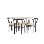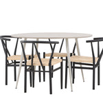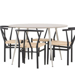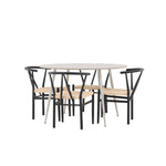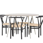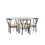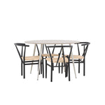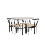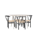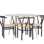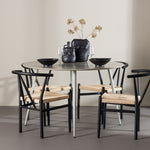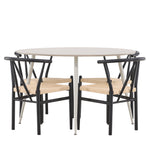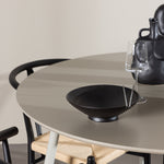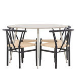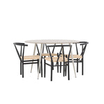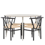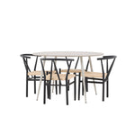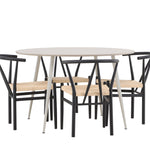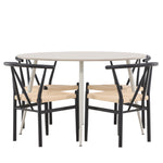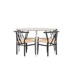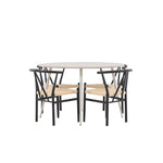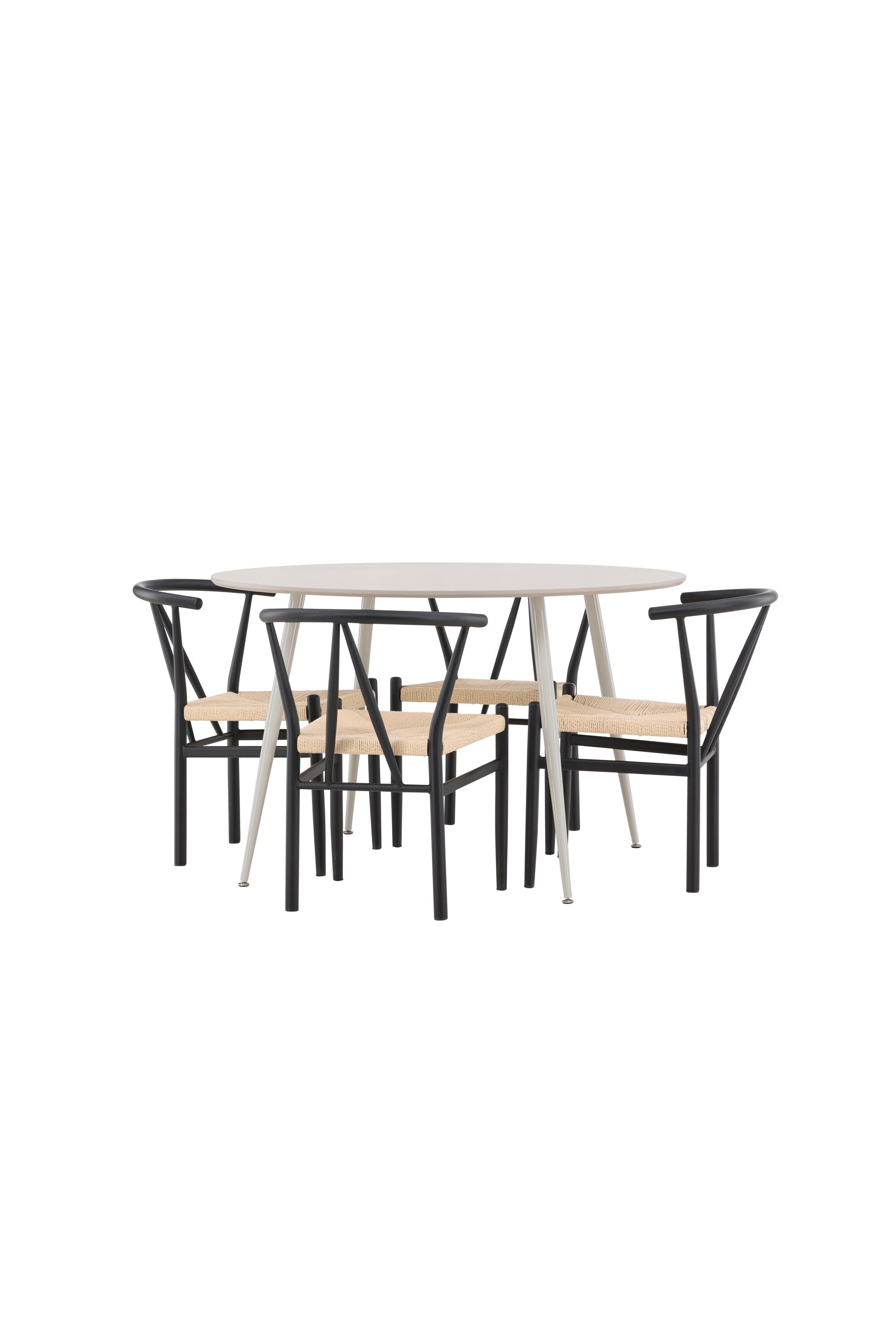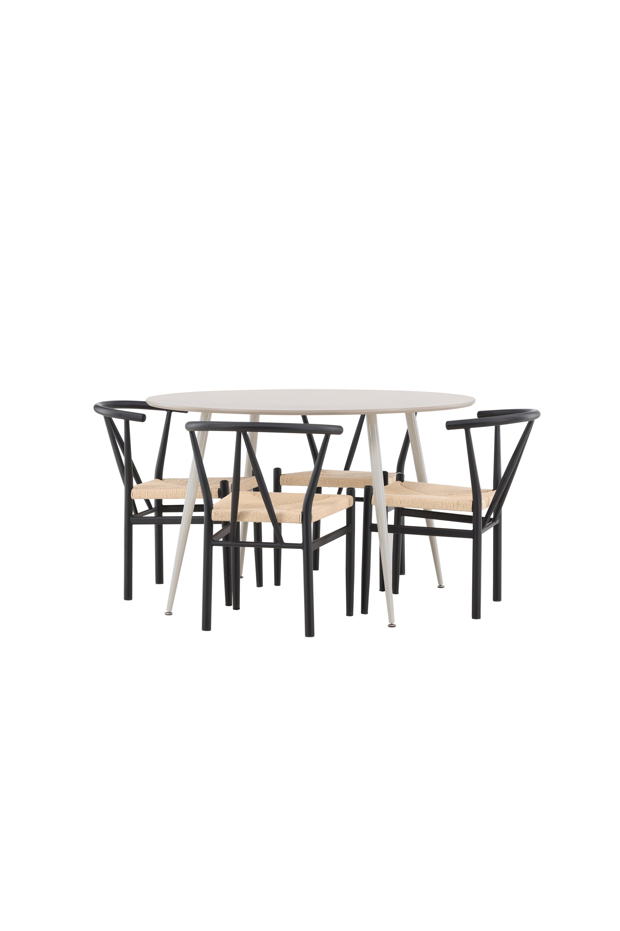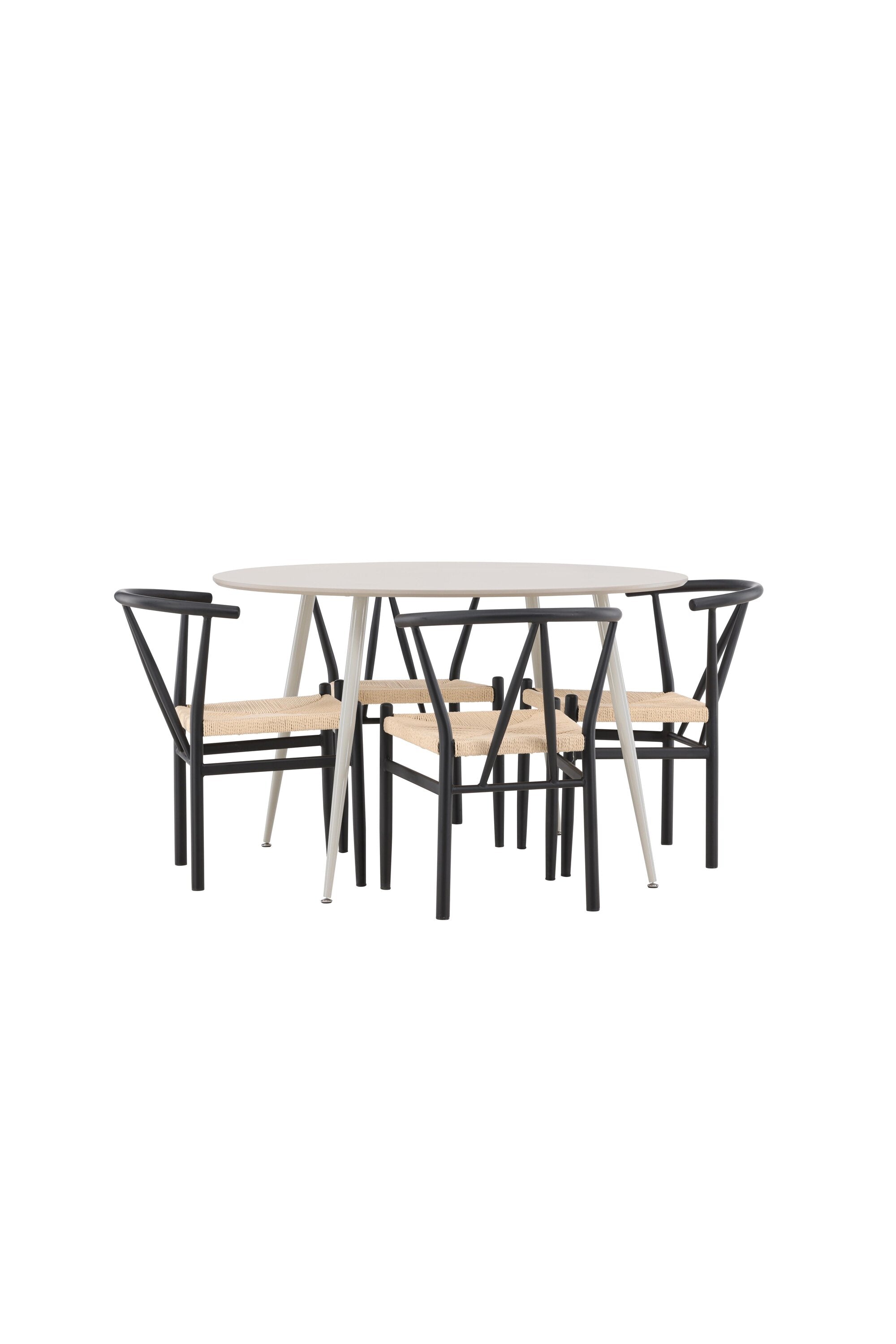 Vytvořte si příjemný a stylový jídelní kout s naší elegantní jídelní sadou, která kombinuje sofistikovaný stůl Plaza s okouzlujícími židlemi Alfons. Tato jídelní souprava je ideální jak pro každodenní jídla, tak pro slavnostní příležitosti a dodá vaší jídelně moderní a vzdušný nádech. Stůl Plaza je vyroben z MDF a má krásnou světle béžovou barvu. S velkorysým průměrem 120 cm nabízí dostatek prostoru pro jídlo i rozhovory, přičemž jeho kulatý tvar navodí harmonickou atmosféru ve vaší jídelně. Robustní konstrukce stolu zajišťuje dlouhodobé používání a stabilitu. Čtyři židle Alfons skvěle doplňují stůl s elegantními béžovými ratanovými sedáky a elegantními černými kovovými nohami. Tyto židle nabízejí pohodlí i styl, díky čemuž jsou ideální pro dlouhé, relaxační večeře s rodinou a přáteli. Jejich moderní design s přírodními materiály dodá vaší jídelně sofistikovaný a přesto zemitý nádech. Tento jídelní set je dokonalou kombinací estetiky a funkčnosti, takže je vynikající volbou pro ty, kteří hledají elegantní a pohodlný jídelní kout. Vylepšete svou jídelnu stylovou kombinací stolu Plaza a židlí Alfons a vytvořte si místo, kde se budou sdílet vzpomínky a radost.