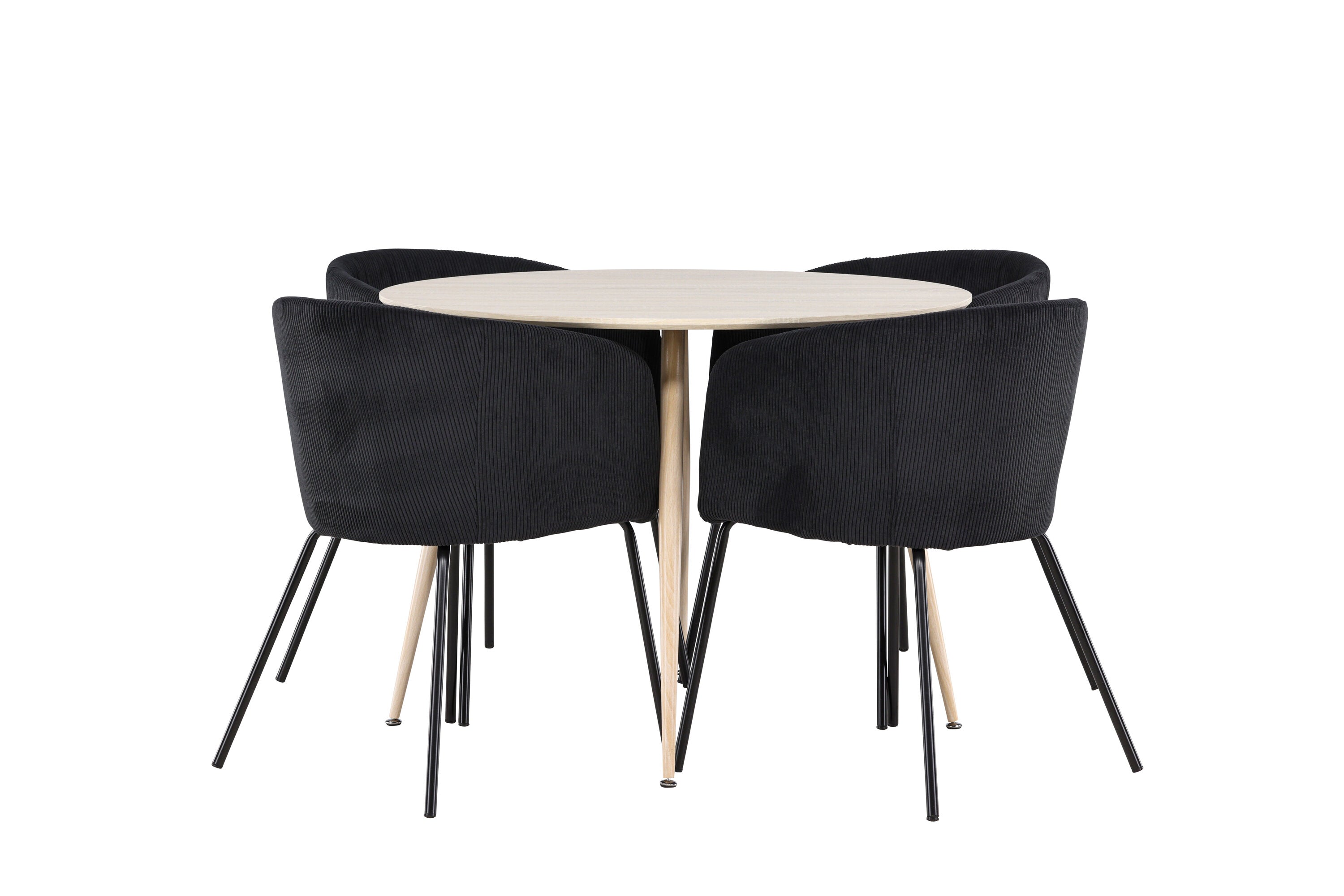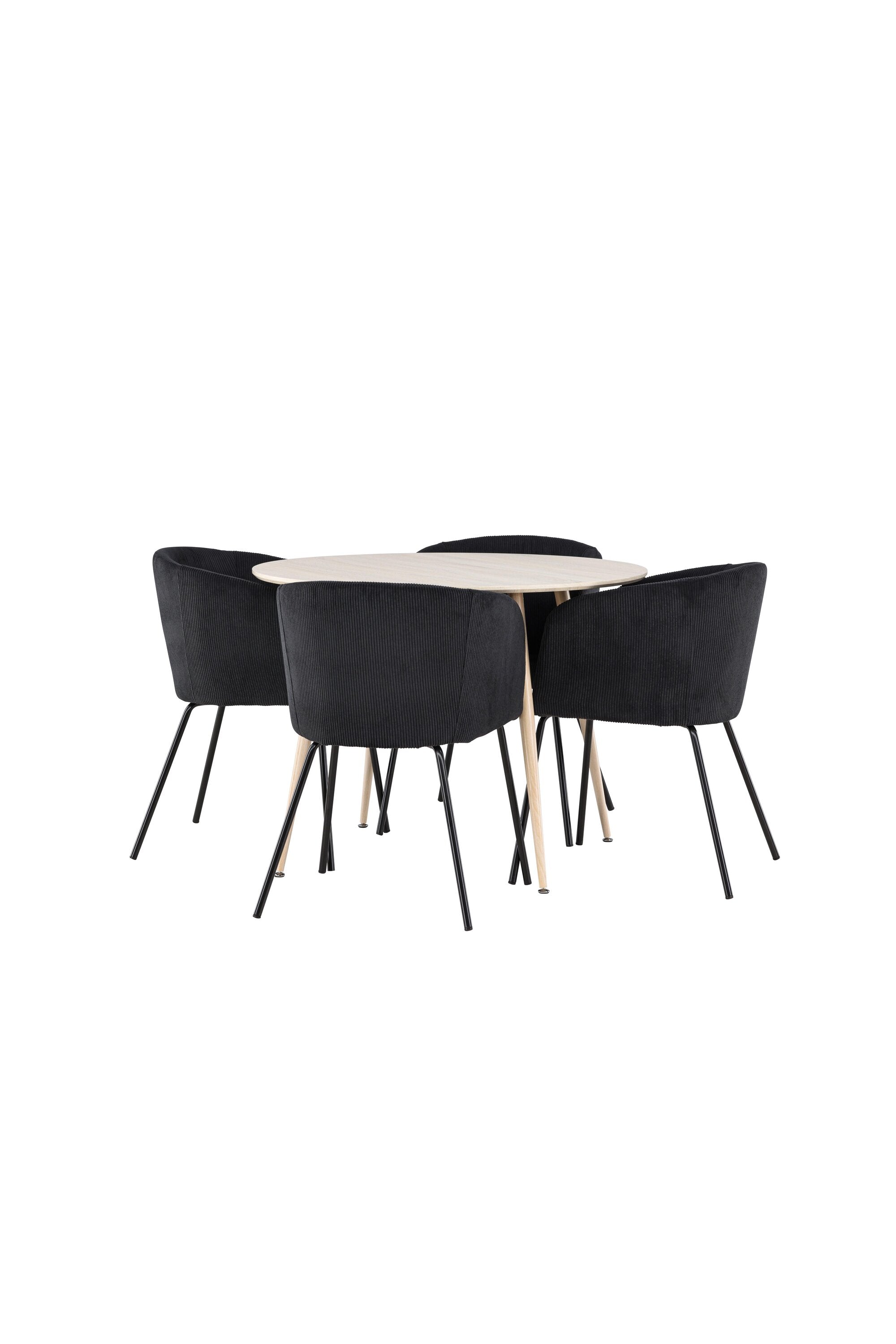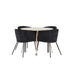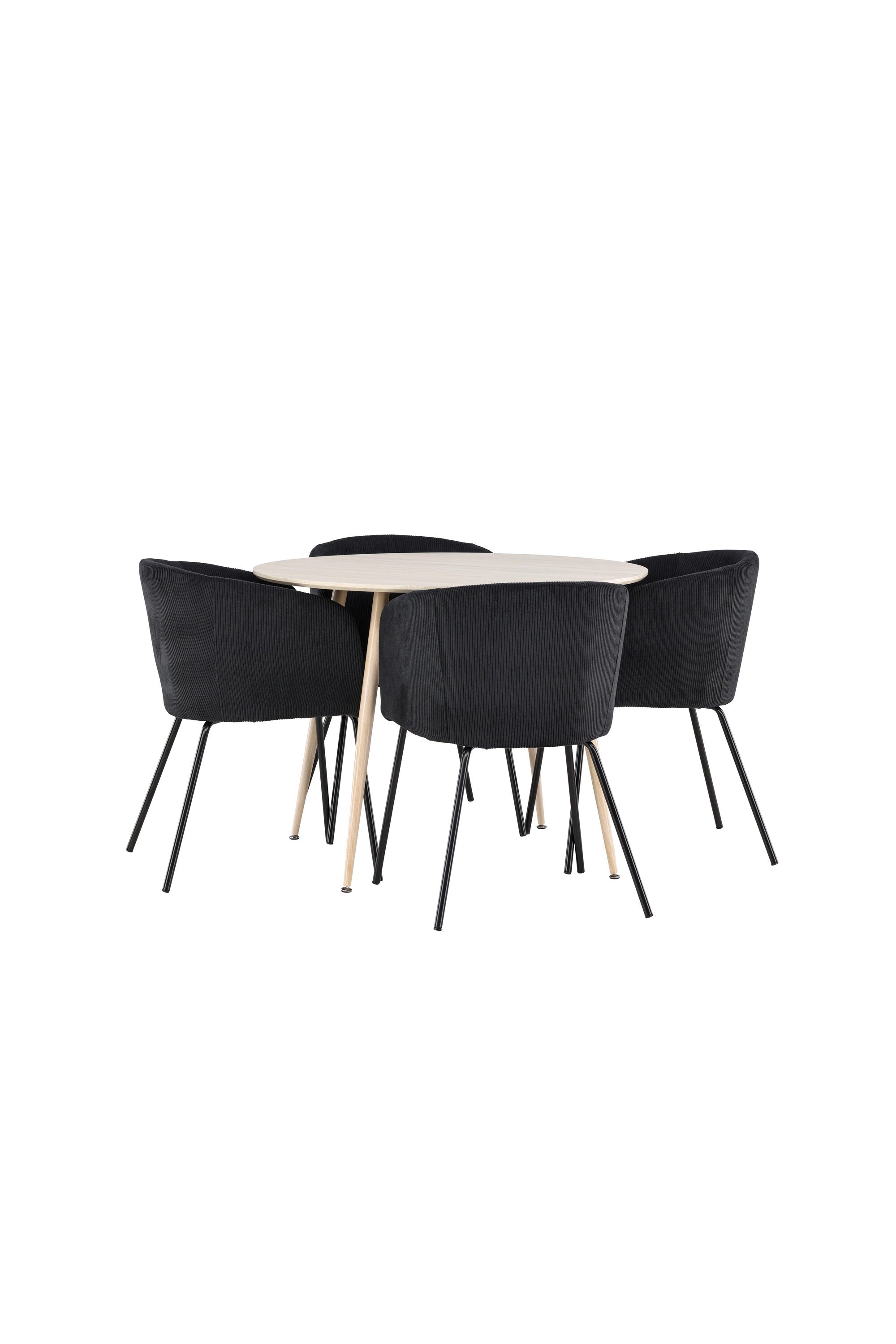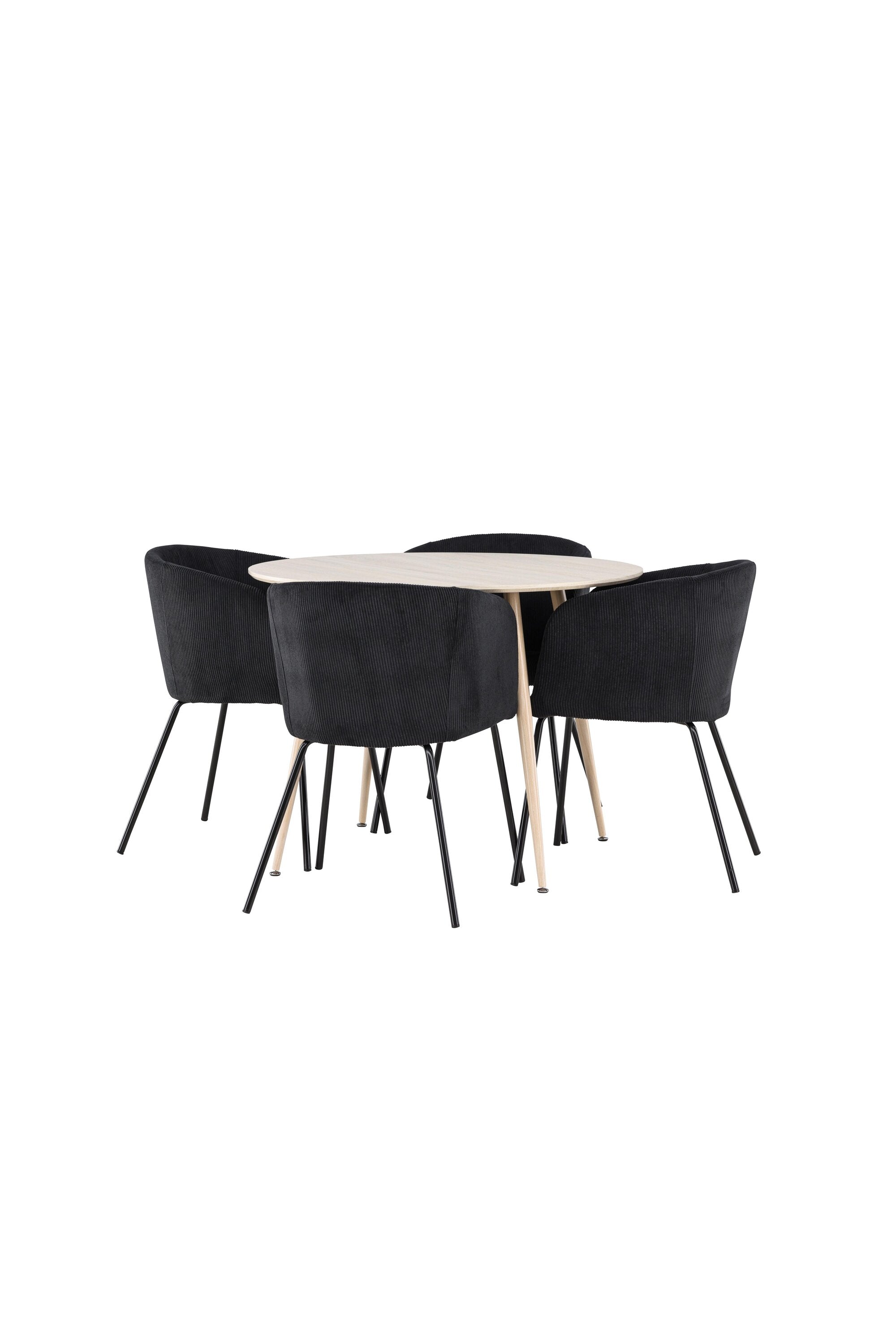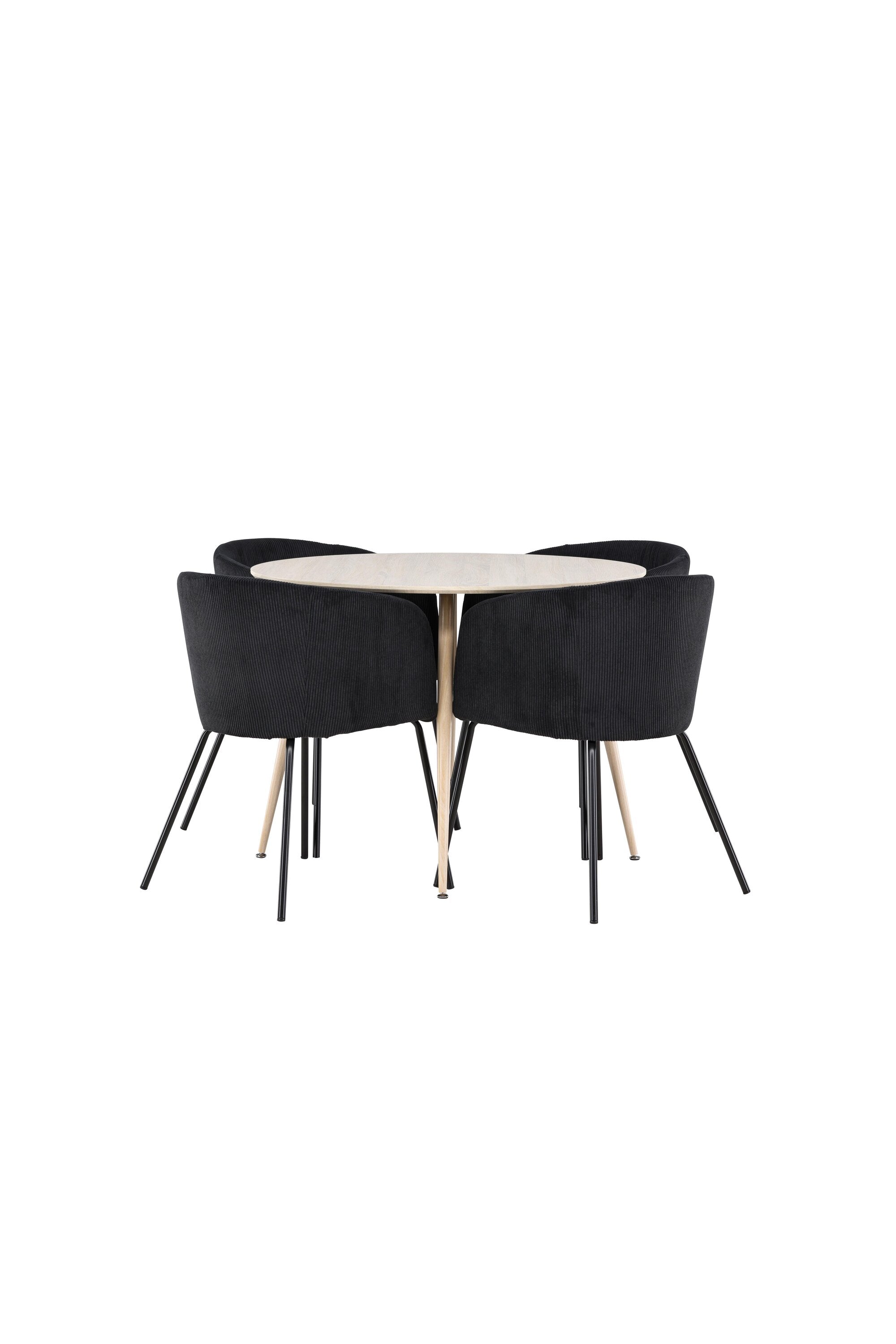 Objevte perfektní jídelní set pro váš domov s jídelním stolem Plaza a jídelními židlemi Berit. Jídelní stůl Plaza s velkorysým průměrem 100 cm je vyroben z odolného MDF materiálu a má bíle pigmentovanou barvu, která dodává místnosti hřejivý a příjemný pocit. Jeho moderní design a čisté linie vytvářejí klidnou a harmonickou atmosféru, díky níž je každé jídlo relaxačním zážitkem. Díky kompaktnímu formátu je Plaza ideální pro menší prostory a zároveň nabízí dostatek prostoru pro pohodlné jídlo s rodinou a přáteli. Doplňte svůj jídelní stůl jídelními židlemi Berit, které lákají k luxusnímu pohodlí a modernímu stylu. Se svým elegantním černým sametovým čalouněním a elegantními černými ocelovými nohami je Berit dokonalou kombinací sofistikovaného designu a pohodlí. Berit zaujme svým širokým sedákem, který poskytuje dostatek prostoru pro pohodlné sezení při jídle nebo dlouhých rozhovorech u jídelního stolu. Jeho moderní vzhled a stylové černé ocelové nohy dodávají Beritu osobitý a stylový charakter, který pozvedne každou jídelnu. Dodejte své jídelně pocit luxusu a modernosti s tímto jídelním setem, který kombinuje styl a funkčnost tím nejlepším způsobem. S jídelním stolem Plaza a jídelními židlemi Berit získáte elegantní a pohodlné řešení pro všechna vaše jídla.