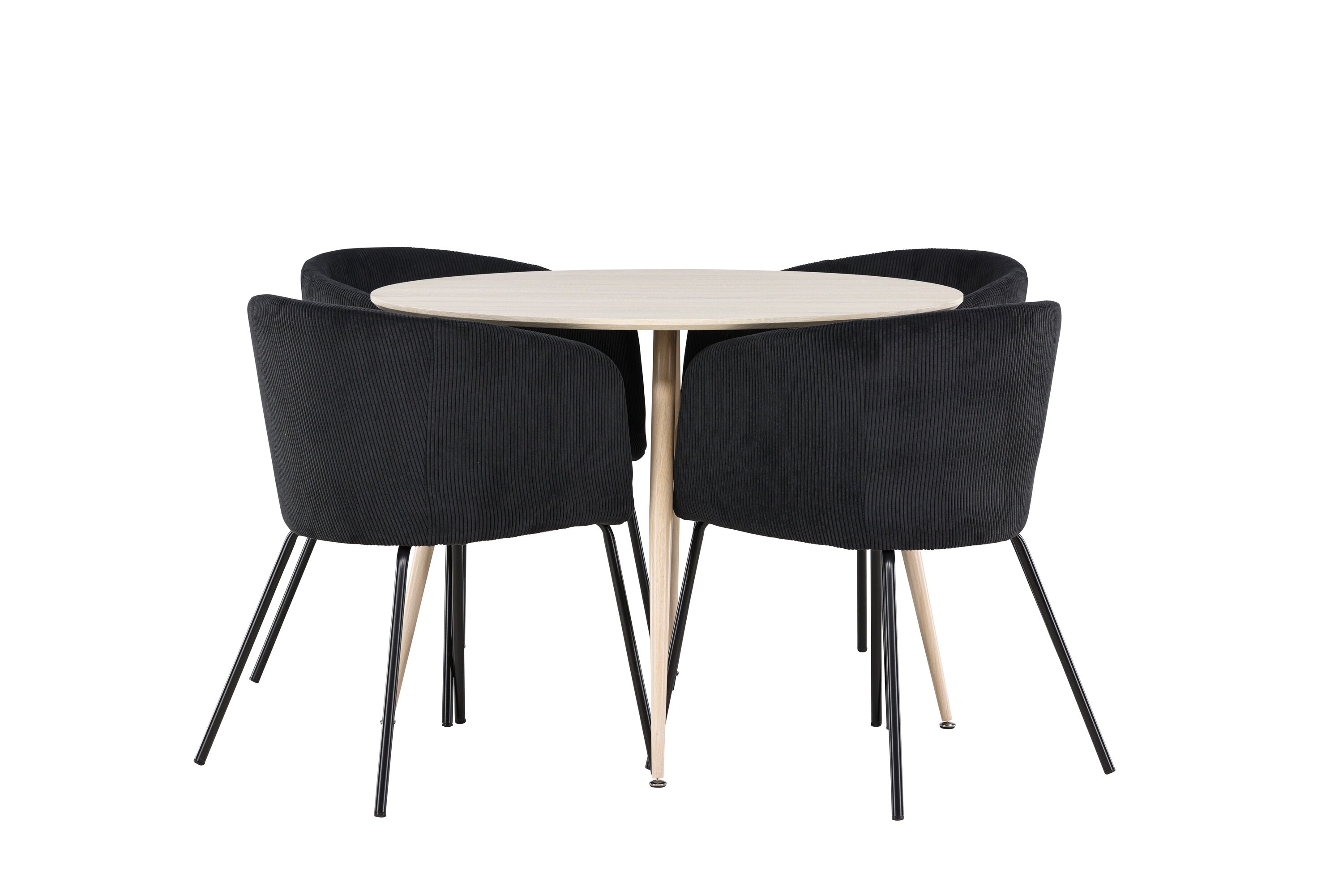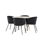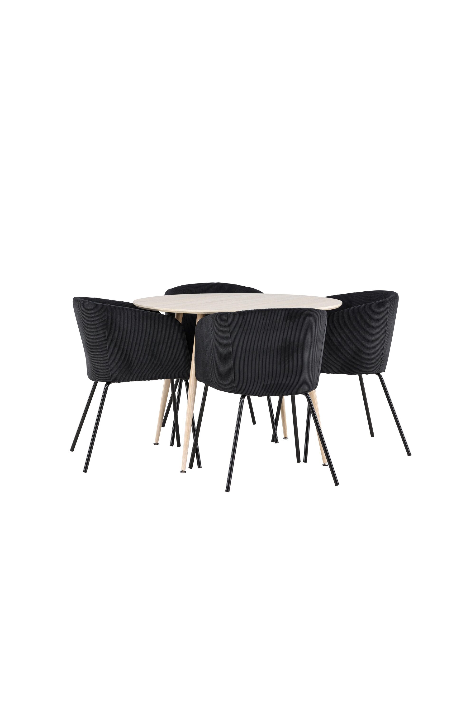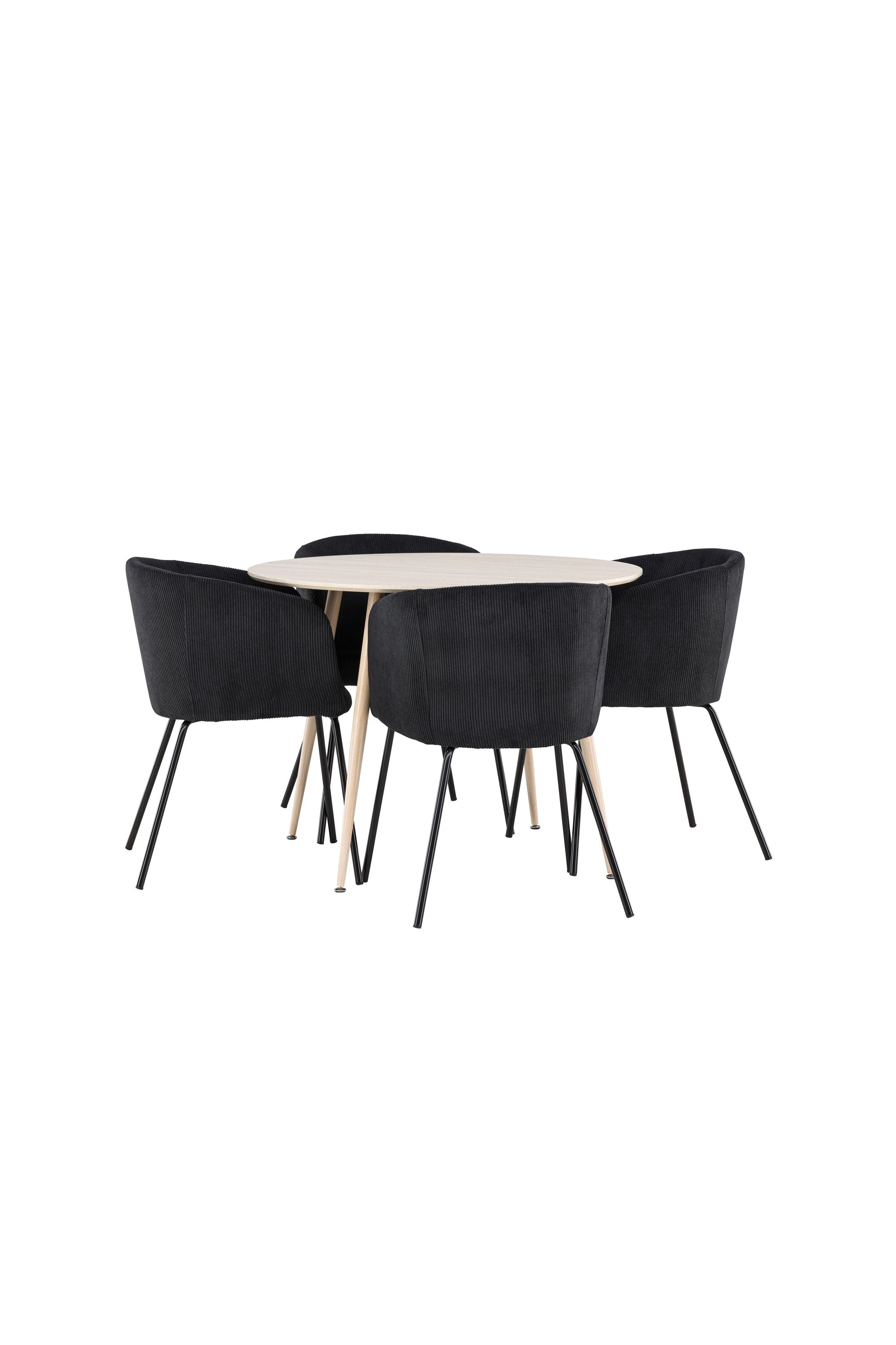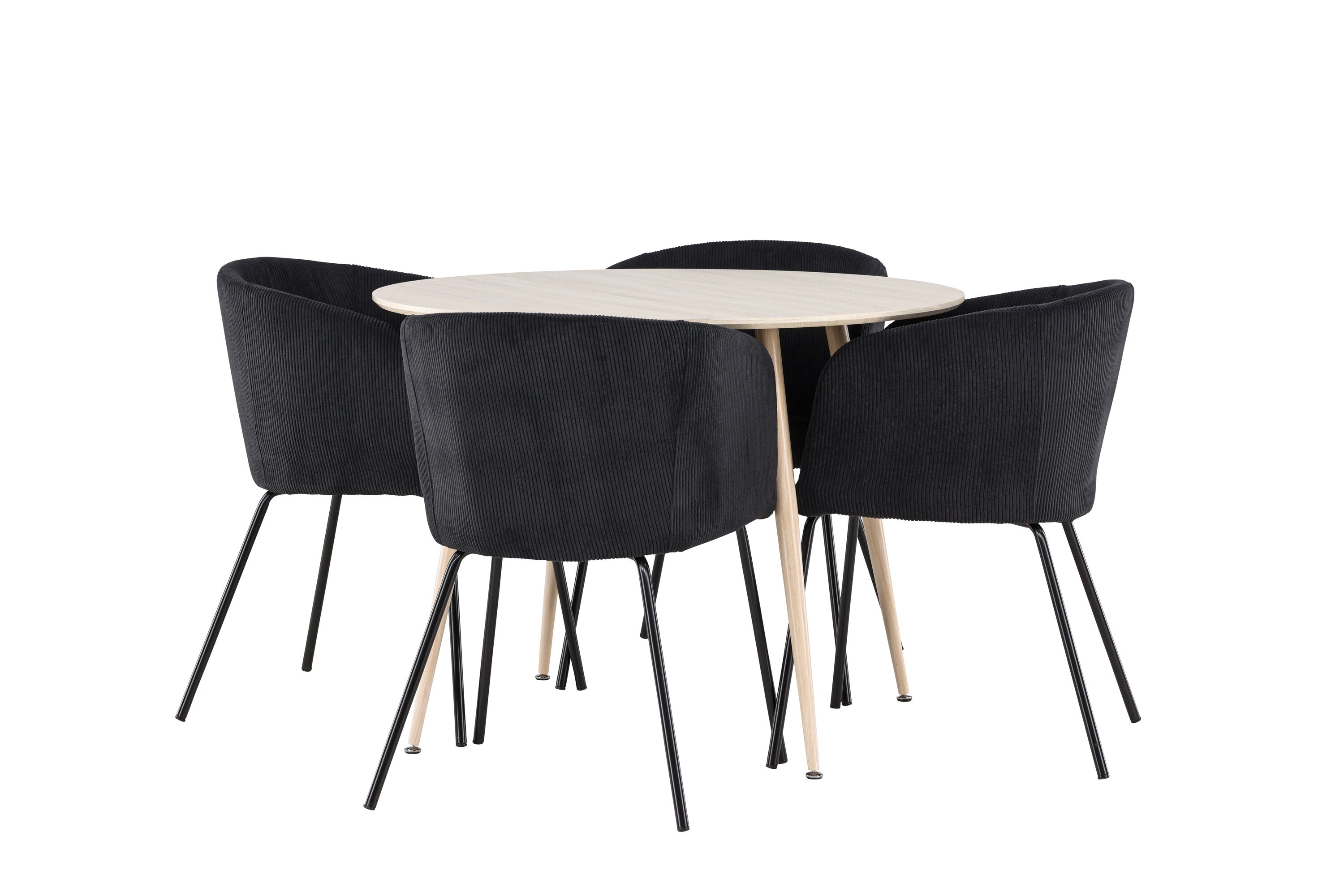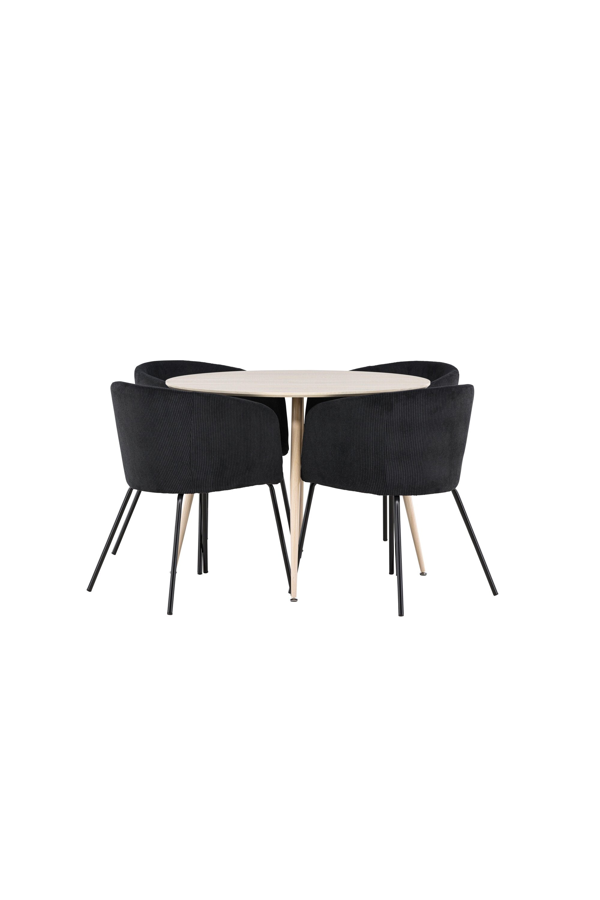 Objevte perfektní jídelní set pro váš domov s jídelním stolem Plaza a jídelními židlemi Berit. Jídelní stůl Plaza s velkorysým průměrem 100 cm je vyroben z odolného MDF materiálu a má bíle pigmentovanou barvu, která dodává místnosti hřejivý a příjemný pocit. Jeho moderní design a čisté linie vytvářejí klidnou a harmonickou atmosféru, díky níž je každé jídlo relaxačním zážitkem. Díky kompaktnímu formátu je Plaza ideální pro menší prostory a zároveň nabízí dostatek prostoru pro pohodlné jídlo s rodinou a přáteli. Doplňte svůj jídelní stůl jídelními židlemi Berit, které lákají k luxusnímu pohodlí a modernímu stylu. Se svým elegantním černým sametovým čalouněním a elegantními černými ocelovými nohami je Berit dokonalou kombinací sofistikovaného designu a pohodlí. Berit zaujme svým širokým sedákem, který poskytuje dostatek prostoru pro pohodlné sezení při jídle nebo dlouhých rozhovorech u jídelního stolu. Jeho moderní vzhled a stylové černé ocelové nohy dodávají Beritu osobitý a stylový charakter, který pozvedne každou jídelnu. Dodejte své jídelně pocit luxusu a modernosti s tímto jídelním setem, který kombinuje styl a funkčnost tím nejlepším způsobem. S jídelním stolem Plaza a jídelními židlemi Berit získáte elegantní a pohodlné řešení pro všechna vaše jídla.