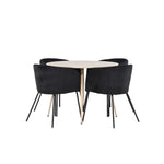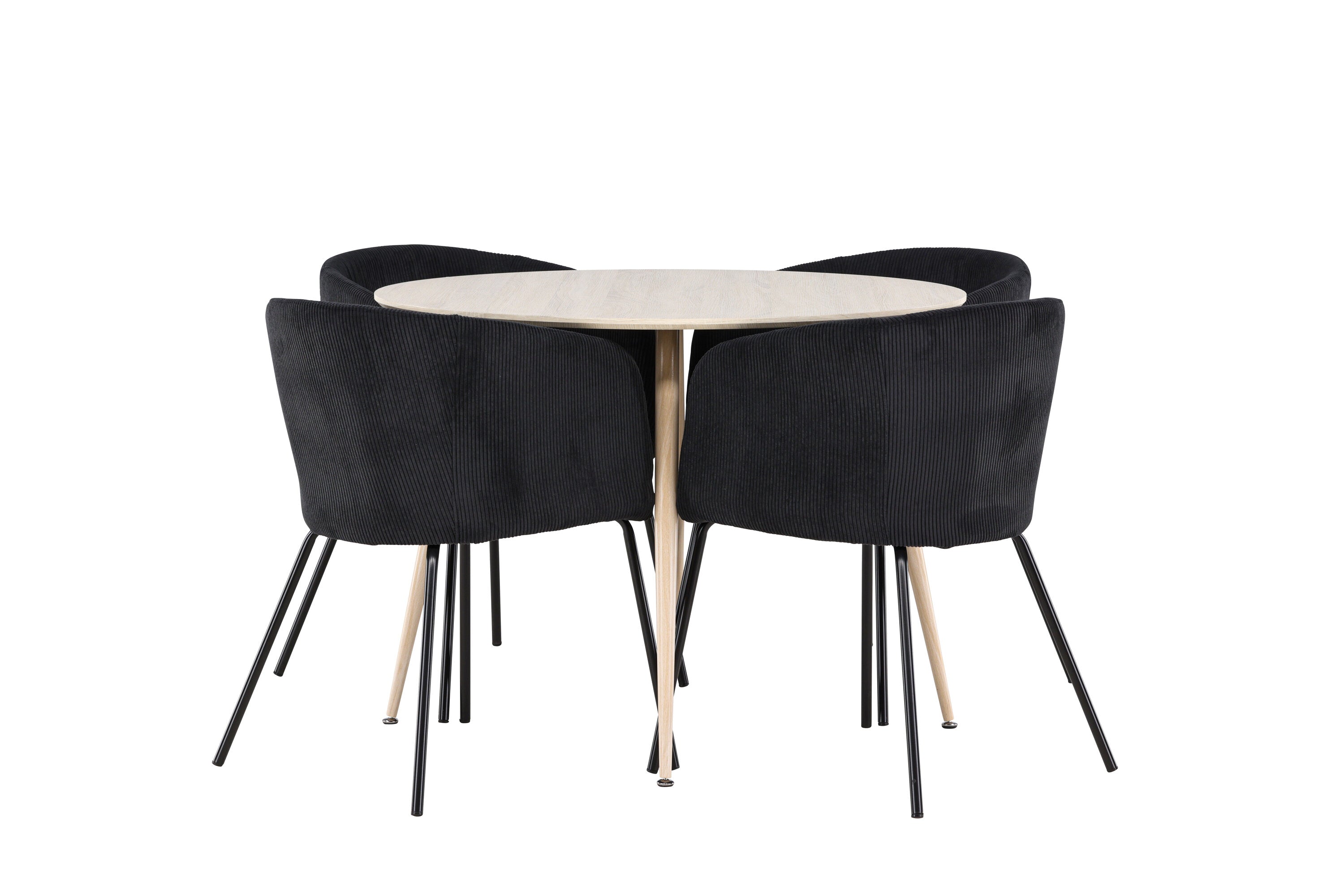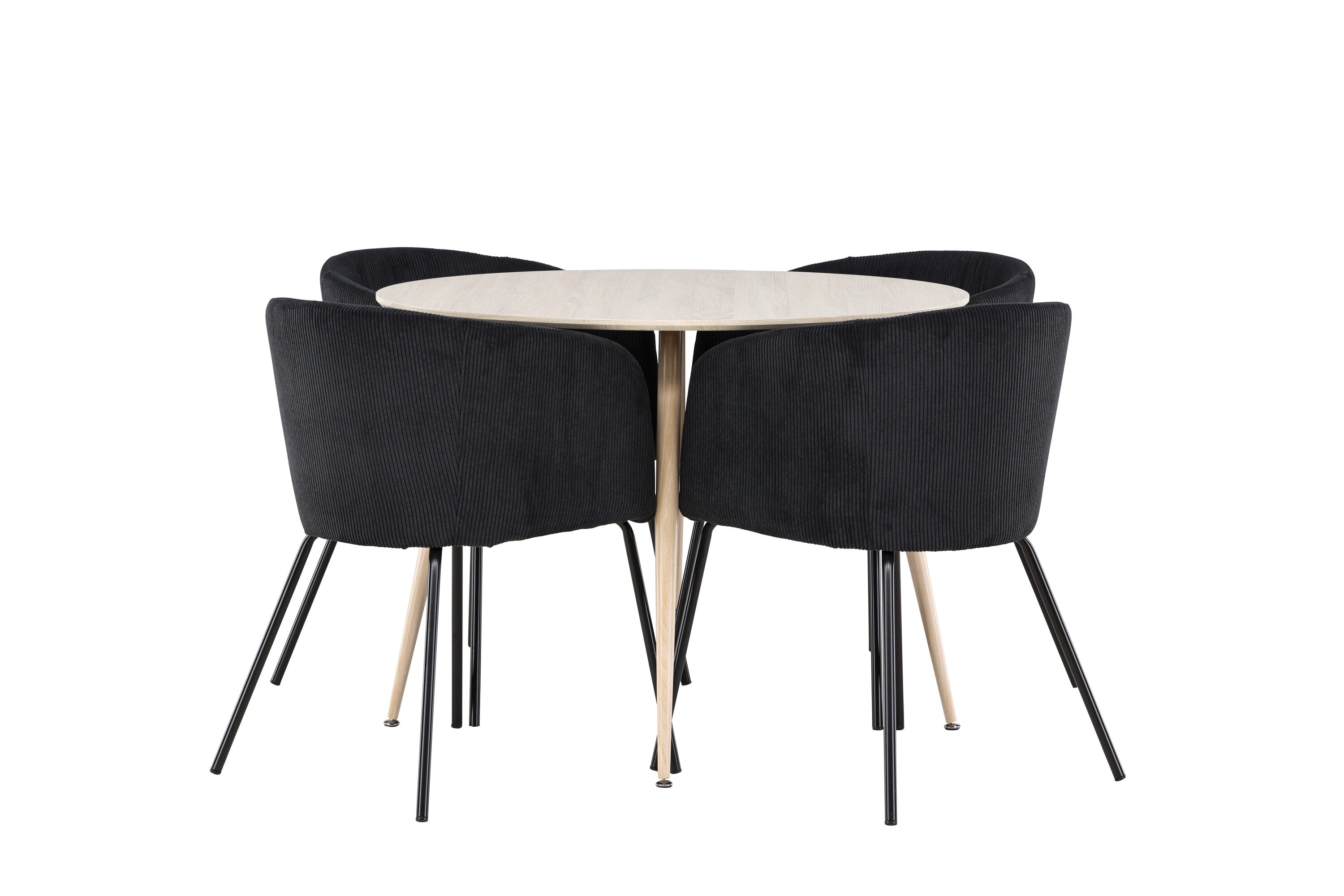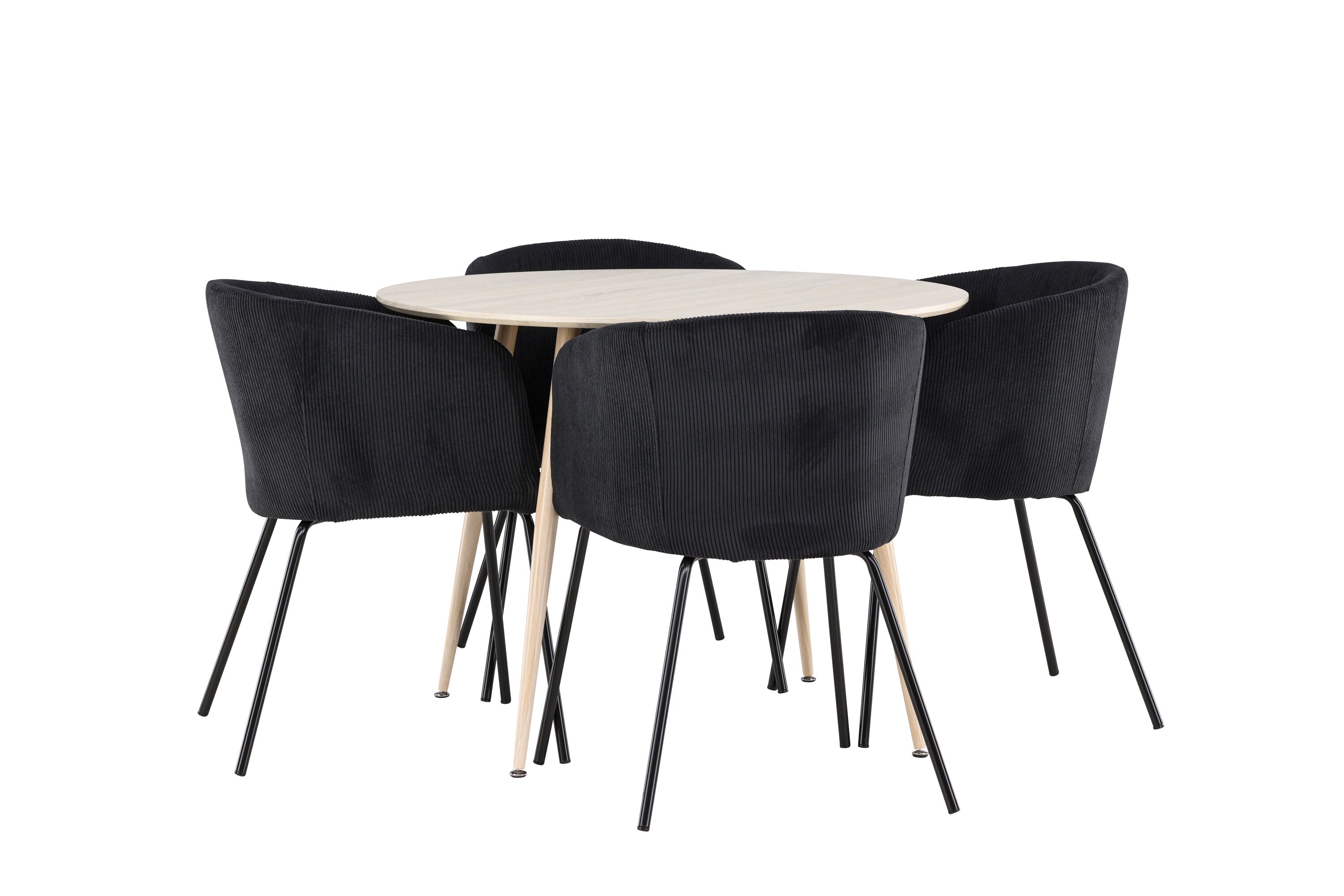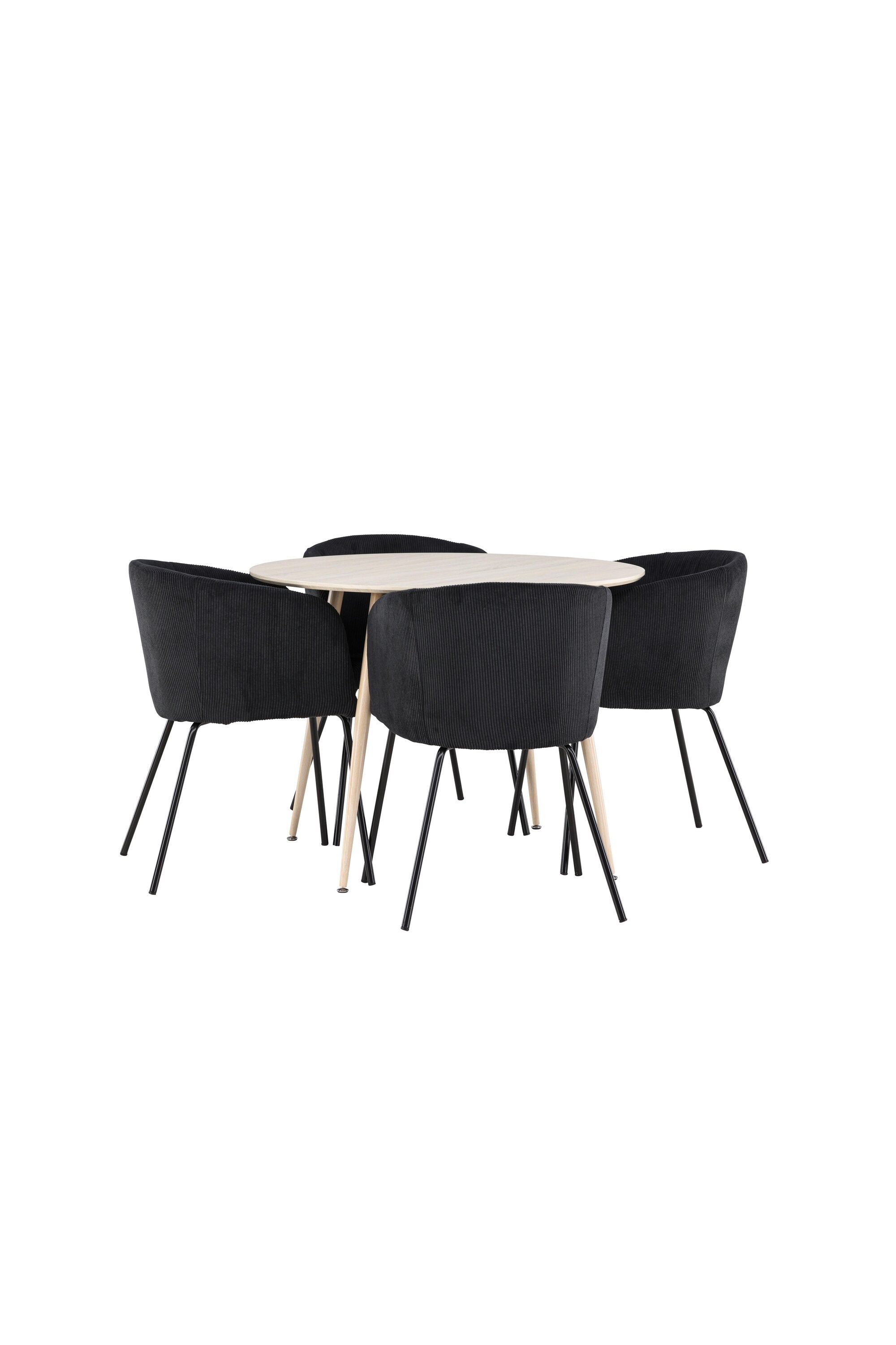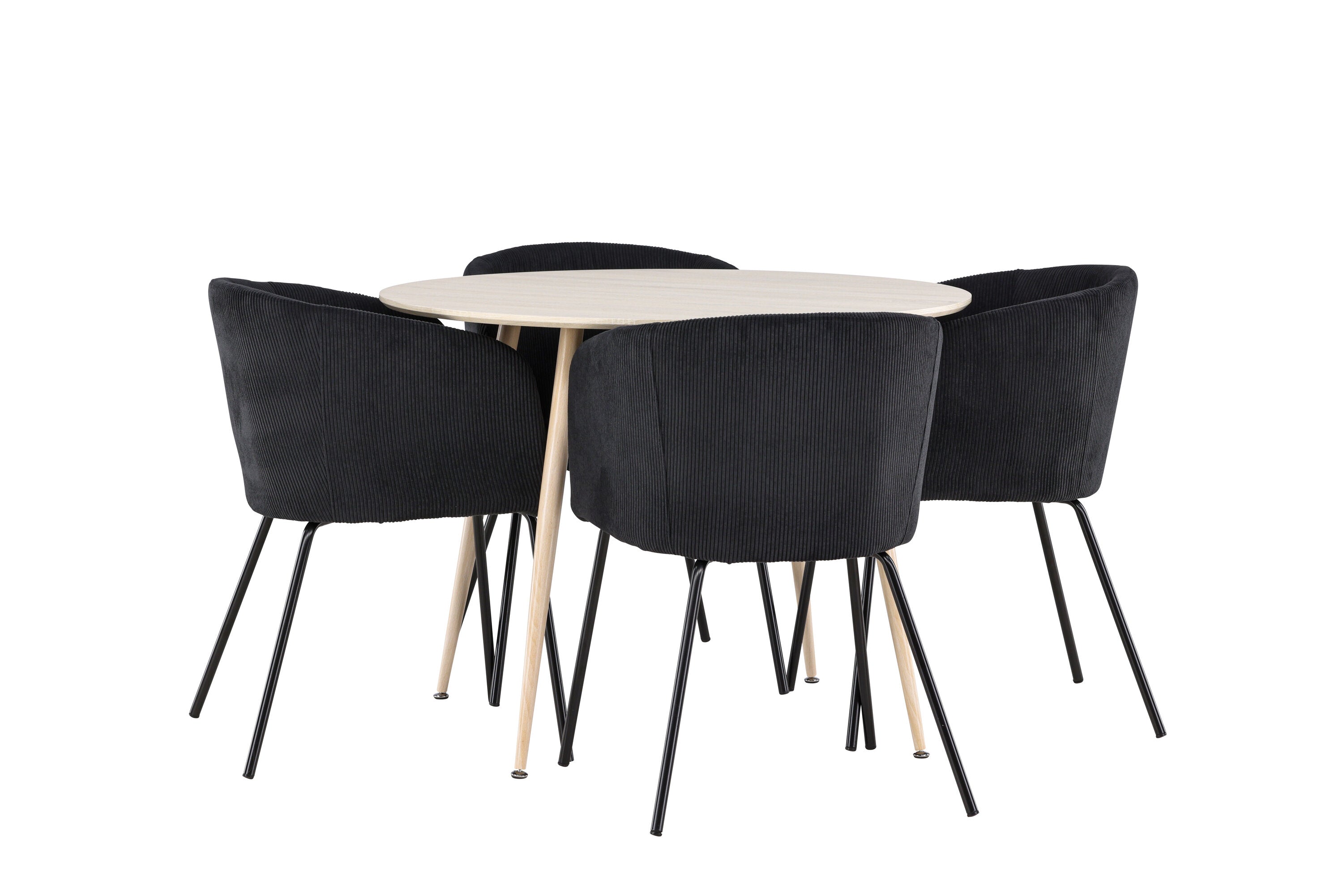 Objevte perfektní jídelní set pro váš domov s jídelním stolem Plaza a jídelními židlemi Berit. Jídelní stůl Plaza s velkorysým průměrem 100 cm je vyroben z odolného MDF materiálu a má bíle pigmentovanou barvu, která dodává místnosti hřejivý a příjemný pocit. Jeho moderní design a čisté linie vytvářejí klidnou a harmonickou atmosféru, díky níž je každé jídlo relaxačním zážitkem. Díky kompaktnímu formátu je Plaza ideální pro menší prostory a zároveň nabízí dostatek prostoru pro pohodlné jídlo s rodinou a přáteli. Doplňte svůj jídelní stůl jídelními židlemi Berit, které lákají k luxusnímu pohodlí a modernímu stylu. Se svým elegantním černým sametovým čalouněním a elegantními černými ocelovými nohami je Berit dokonalou kombinací sofistikovaného designu a pohodlí. Berit zaujme svým širokým sedákem, který poskytuje dostatek prostoru pro pohodlné sezení při jídle nebo dlouhých rozhovorech u jídelního stolu. Jeho moderní vzhled a stylové černé ocelové nohy dodávají Beritu osobitý a stylový charakter, který pozvedne každou jídelnu. Dodejte své jídelně pocit luxusu a modernosti s tímto jídelním setem, který kombinuje styl a funkčnost tím nejlepším způsobem. S jídelním stolem Plaza a jídelními židlemi Berit získáte elegantní a pohodlné řešení pro všechna vaše jídla.