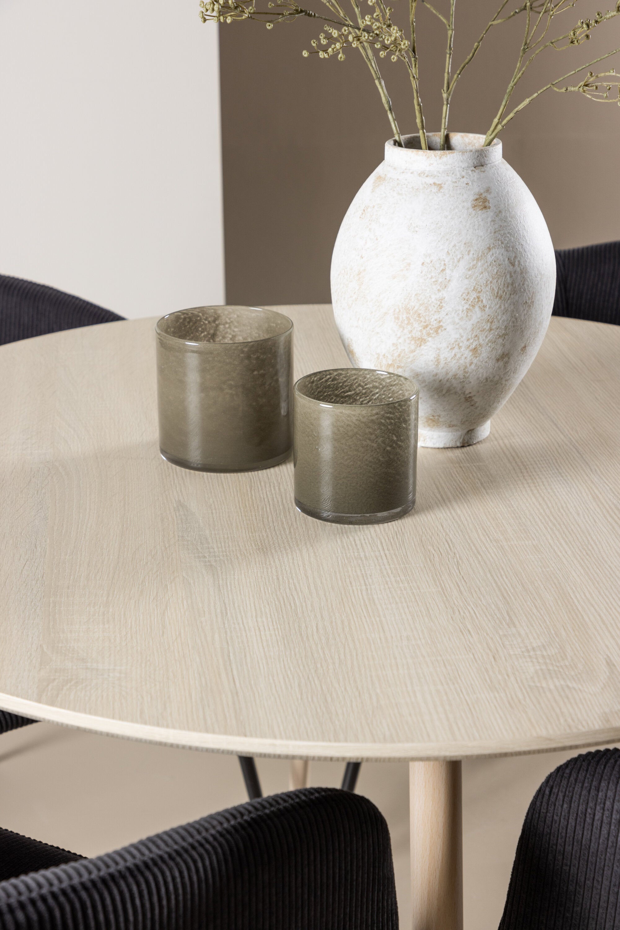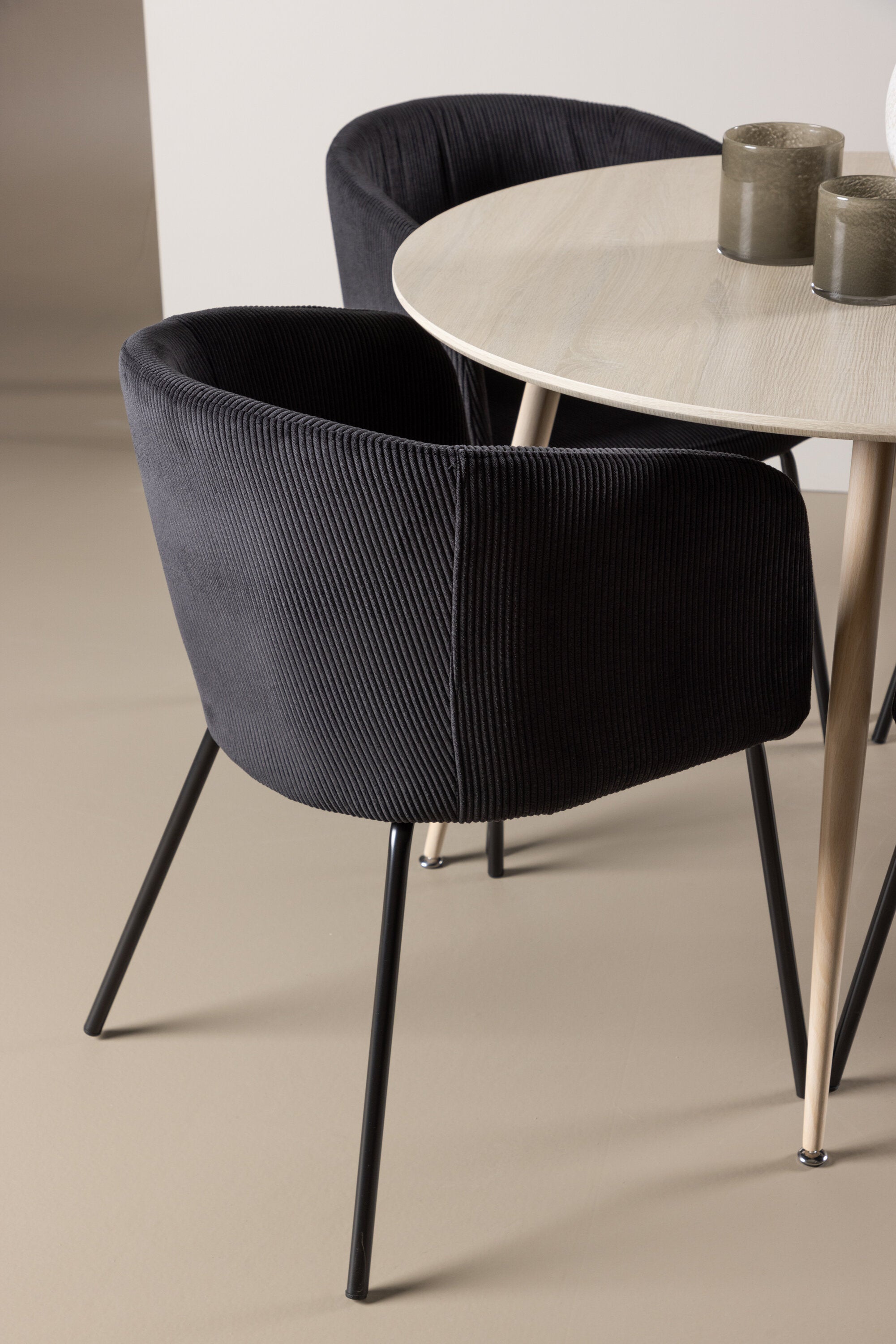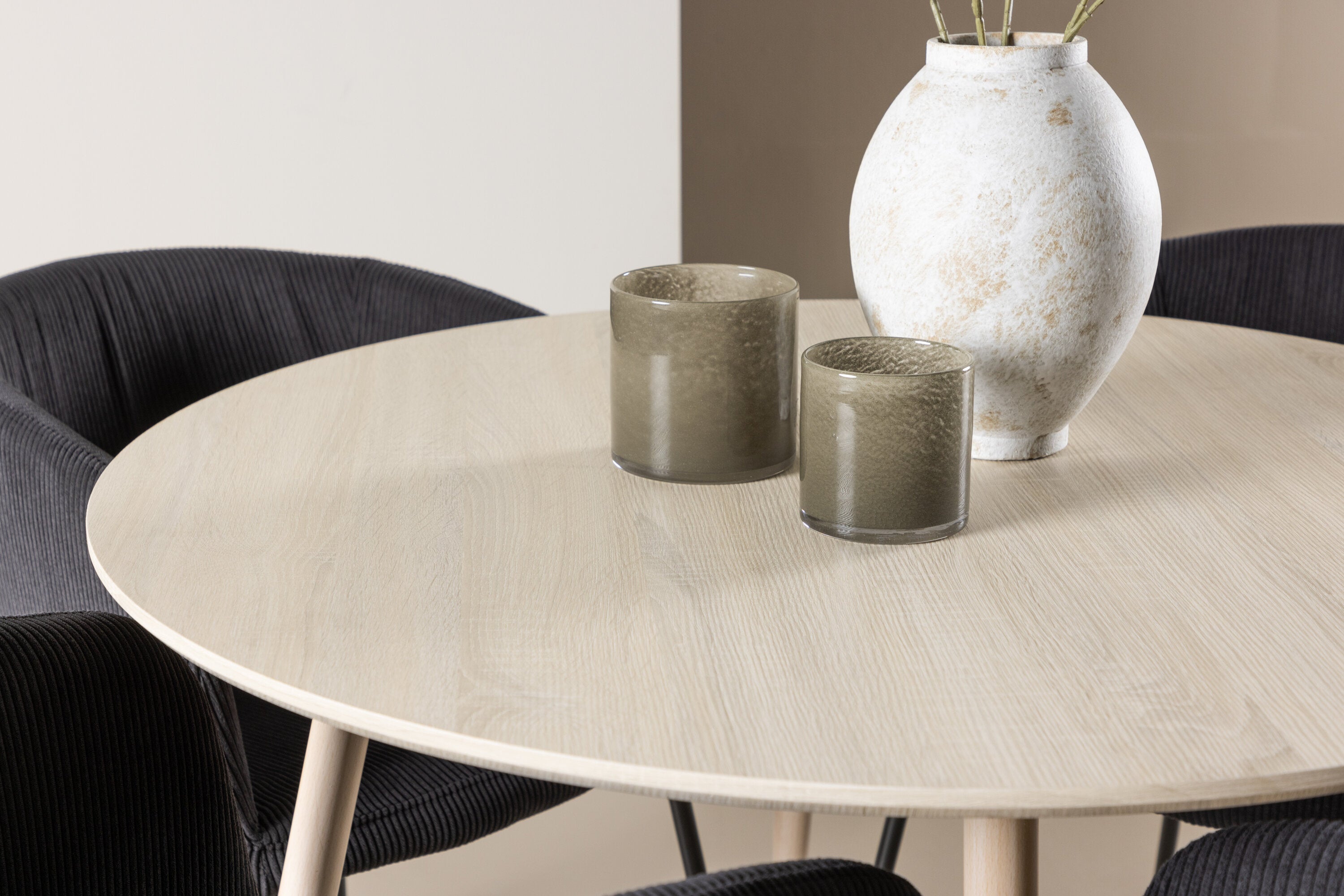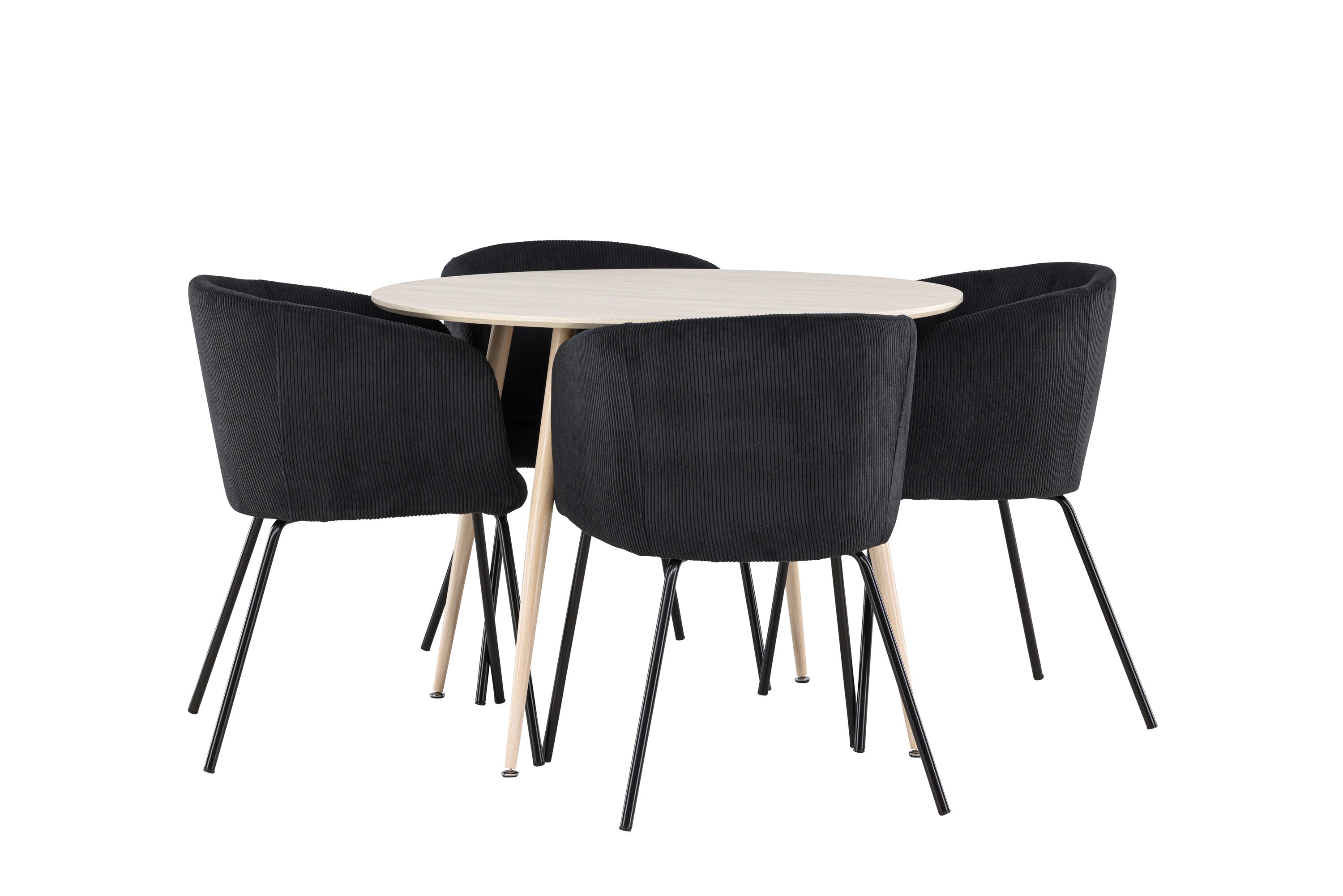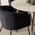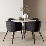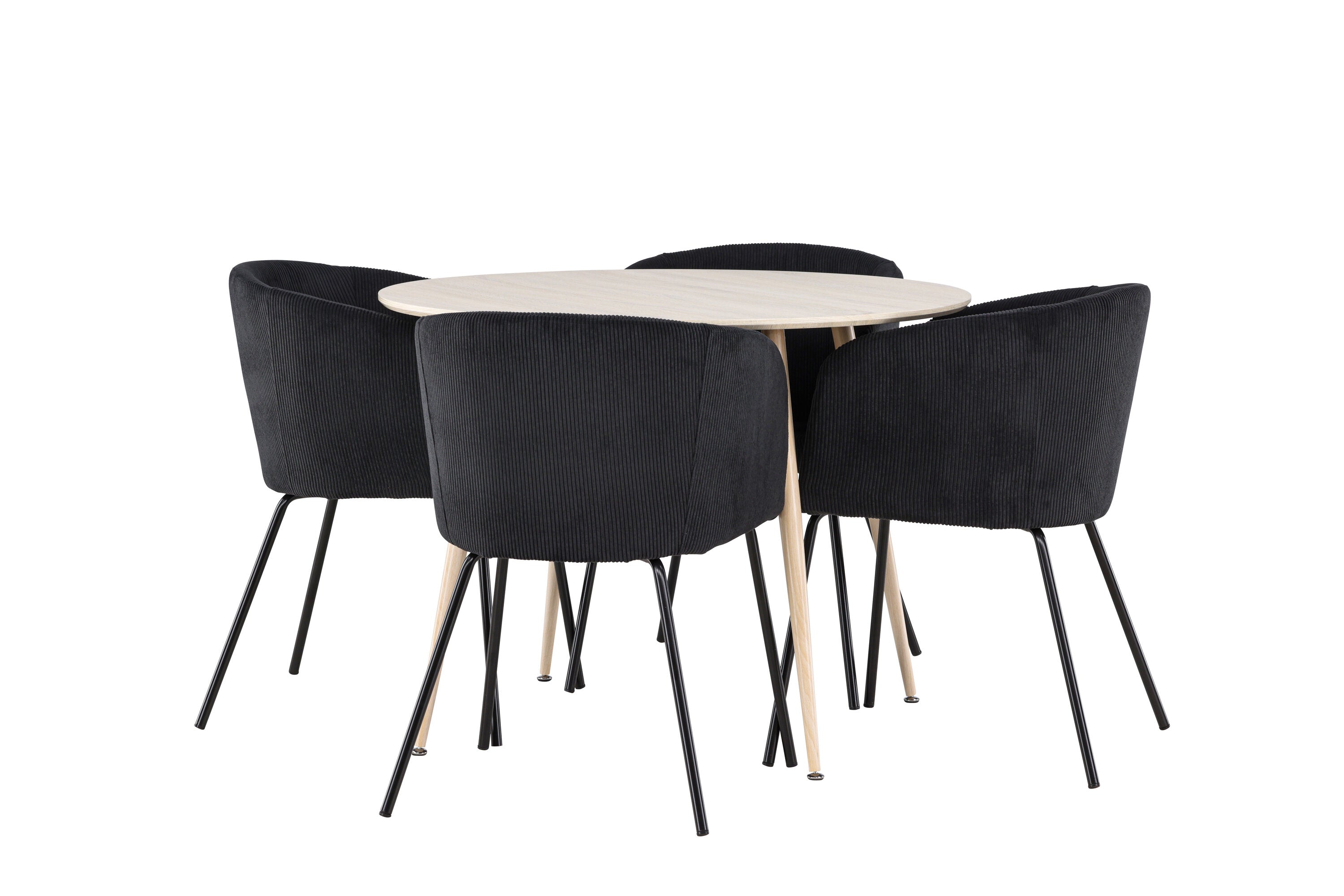 Objevte perfektní jídelní set pro váš domov s jídelním stolem Plaza a jídelními židlemi Berit. Jídelní stůl Plaza s velkorysým průměrem 100 cm je vyroben z odolného MDF materiálu a má bíle pigmentovanou barvu, která dodává místnosti hřejivý a příjemný pocit. Jeho moderní design a čisté linie vytvářejí klidnou a harmonickou atmosféru, díky níž je každé jídlo relaxačním zážitkem. Díky kompaktnímu formátu je Plaza ideální pro menší prostory a zároveň nabízí dostatek prostoru pro pohodlné jídlo s rodinou a přáteli. Doplňte svůj jídelní stůl jídelními židlemi Berit, které lákají k luxusnímu pohodlí a modernímu stylu. Se svým elegantním černým sametovým čalouněním a elegantními černými ocelovými nohami je Berit dokonalou kombinací sofistikovaného designu a pohodlí. Berit zaujme svým širokým sedákem, který poskytuje dostatek prostoru pro pohodlné sezení při jídle nebo dlouhých rozhovorech u jídelního stolu. Jeho moderní vzhled a stylové černé ocelové nohy dodávají Beritu osobitý a stylový charakter, který pozvedne každou jídelnu. Dodejte své jídelně pocit luxusu a modernosti s tímto jídelním setem, který kombinuje styl a funkčnost tím nejlepším způsobem. S jídelním stolem Plaza a jídelními židlemi Berit získáte elegantní a pohodlné řešení pro všechna vaše jídla.