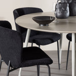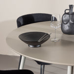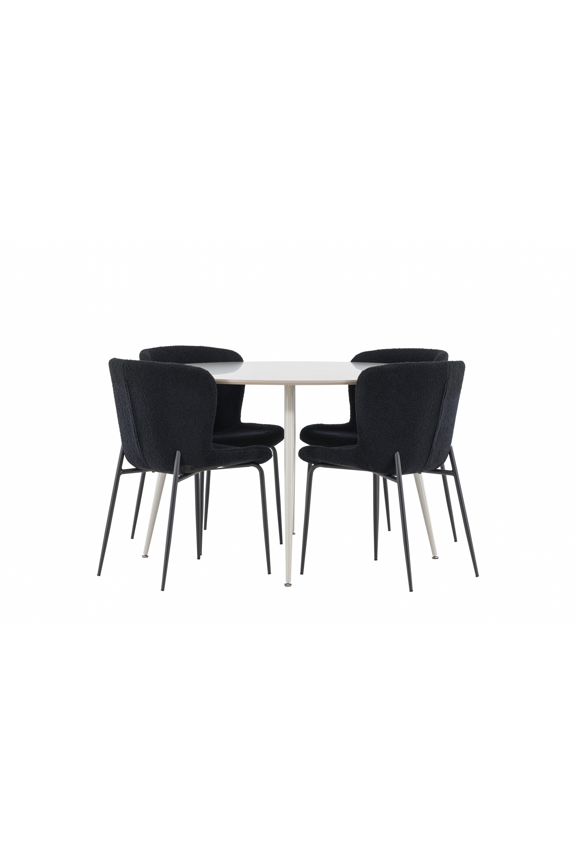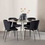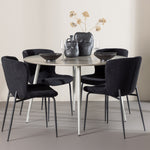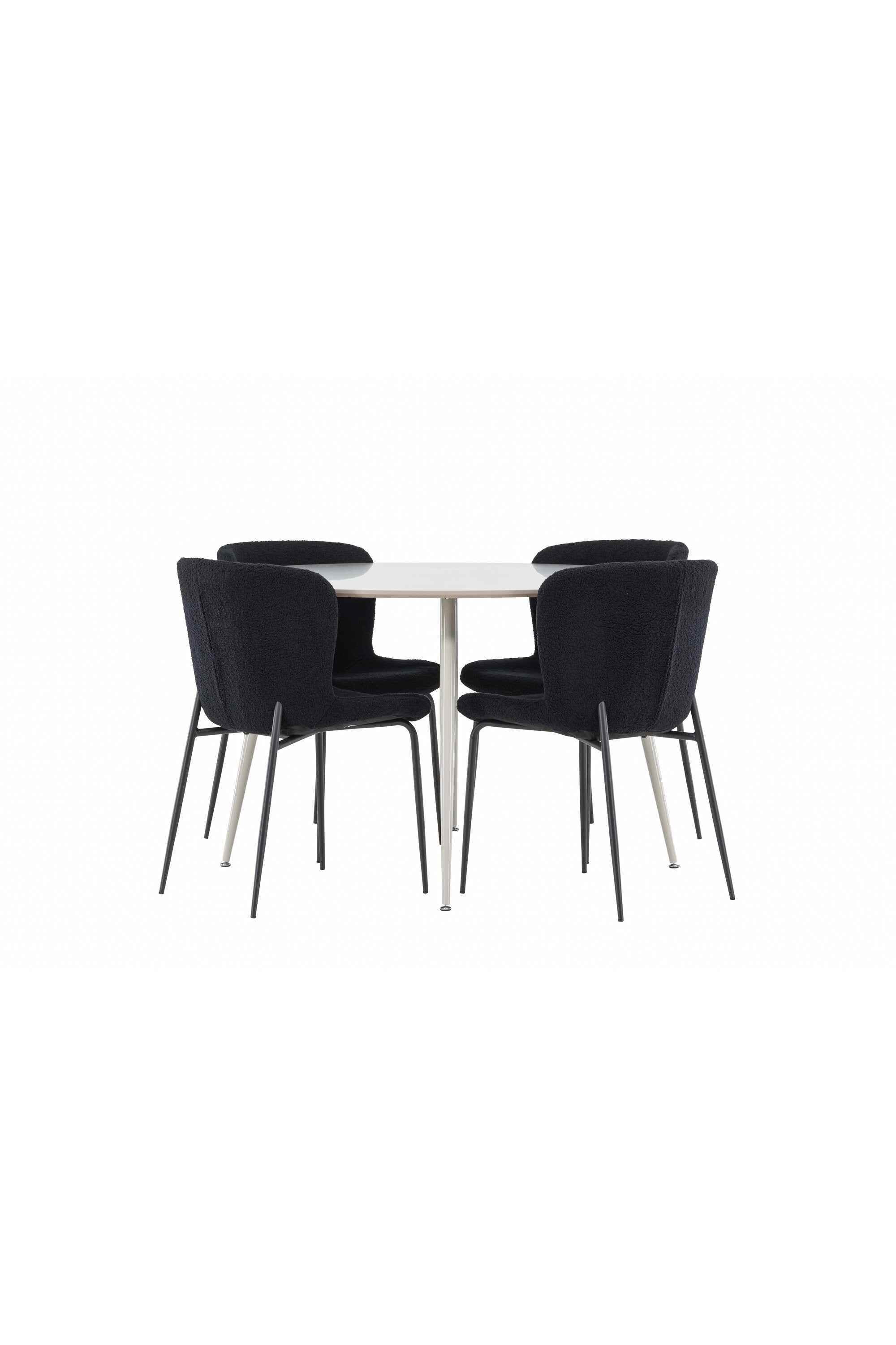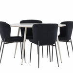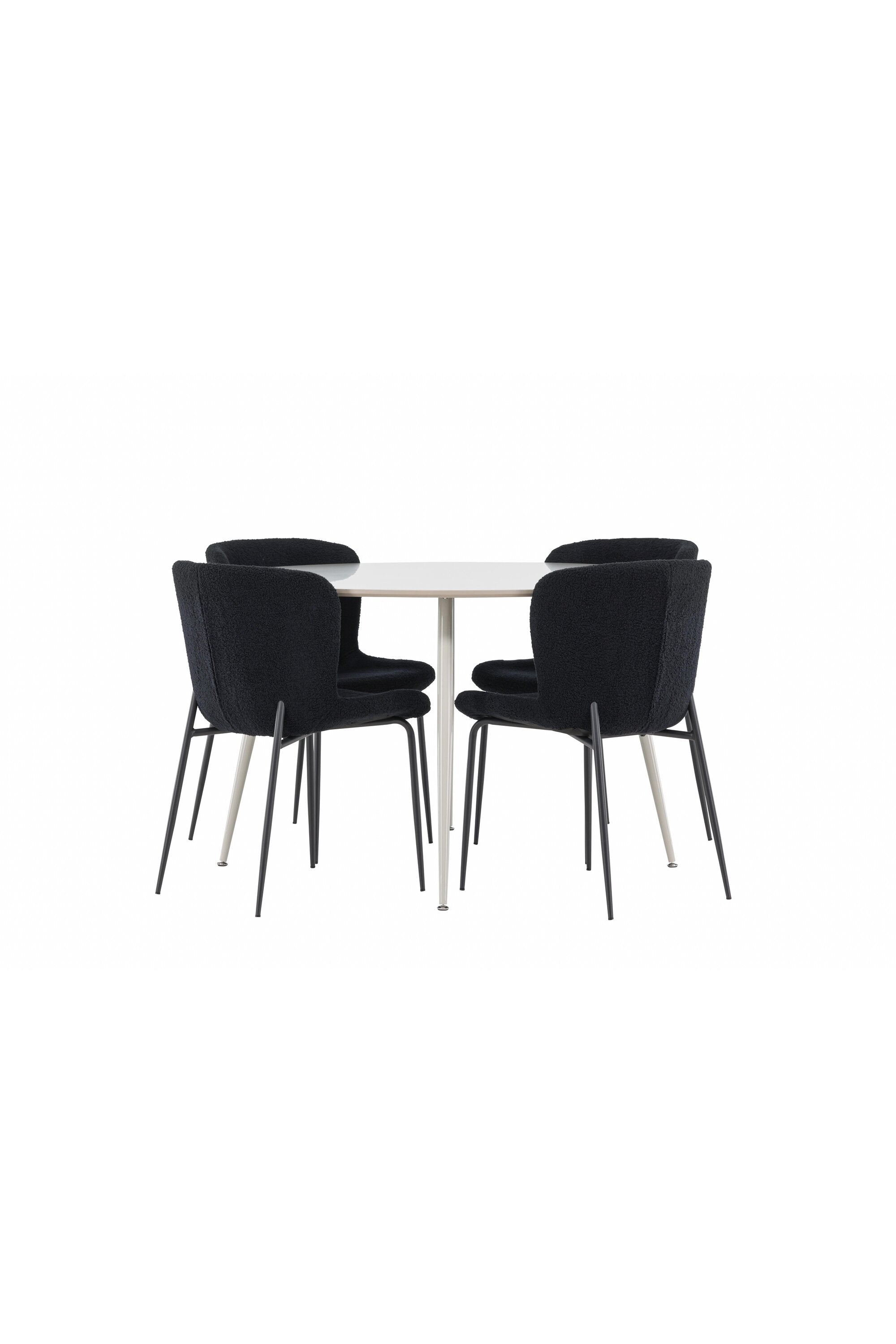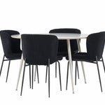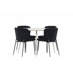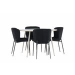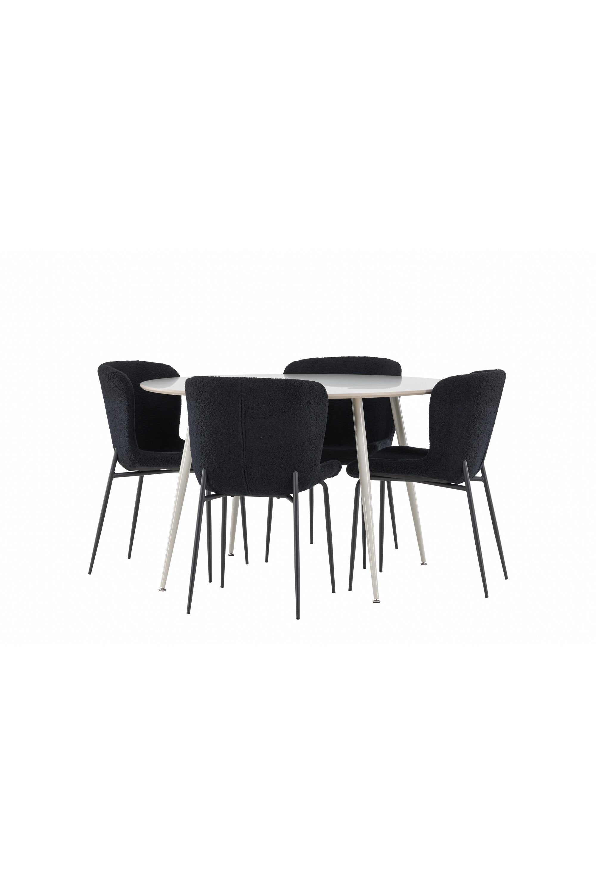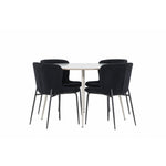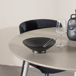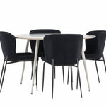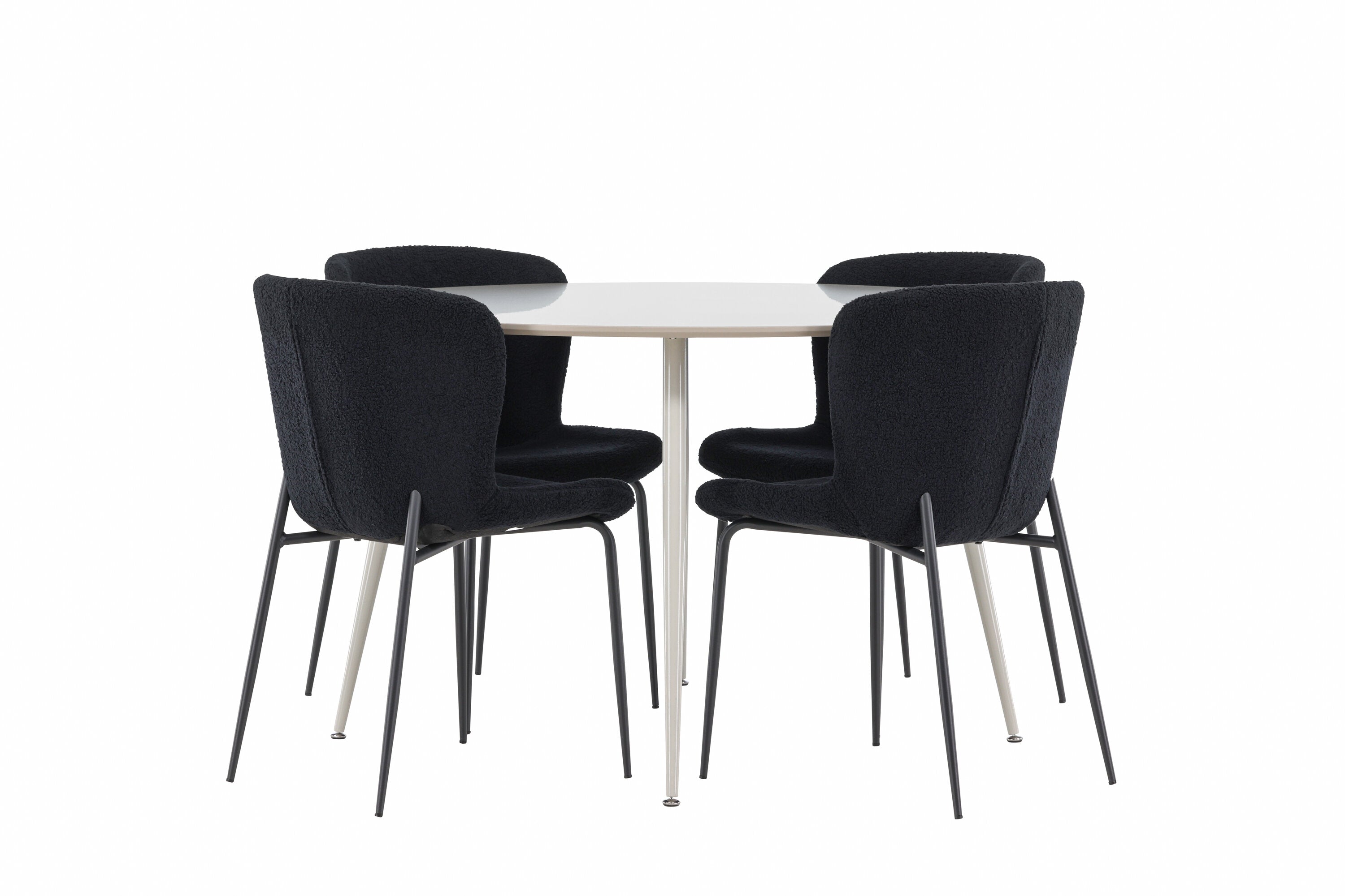 Dopřejte své jídelně moderní a sofistikovaný upgrade s naší elegantní jídelní sadou, která kombinuje stylový stůl Plaza s luxusními židlemi Modesto. Tato jídelní souprava je ideální jak pro každodenní večeři, tak pro zvláštní příležitosti, vytváří příjemnou a elegantní atmosféru ve vašem domově. Stůl Plaza, vyrobený z MDF, má světle béžovou barvu, která dodá vaší jídelně měkký a hřejivý pocit. Stůl s velkorysým průměrem 120 cm nabízí dostatek prostoru pro jídlo i rozhovory, přičemž jeho kulatý tvar přispívá k harmonickému a vyváženému prostředí. Robustní konstrukce stolu zajišťuje odolnost a stabilitu pro dlouhodobé používání. Čtyři židle Modesto jsou čalouněny měkkým a pohodlným polyesterovým plyšem v elegantní černé barvě. Tyto židle nabízejí kombinaci pohodlí a stylu, díky čemuž jsou ideální pro dlouhé a příjemné stolování s rodinou a přáteli. Jejich moderní design s vysokými opěradly a luxusními sedáky dodá vaší jídelně sofistikovaný a moderní nádech. Tento jídelní set je dokonalou kombinací estetiky a funkčnosti, takže je vynikající volbou pro ty, kteří hledají elegantní a pohodlný jídelní kout. Vylepšete svou jídelnu stylovou kombinací stolu Plaza a židlí Modesto a vytvořte si místo, kde se budou sdílet vzpomínky a radost.