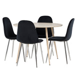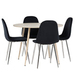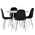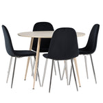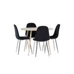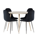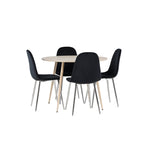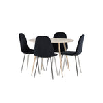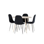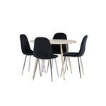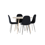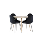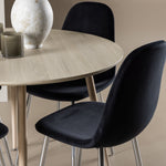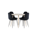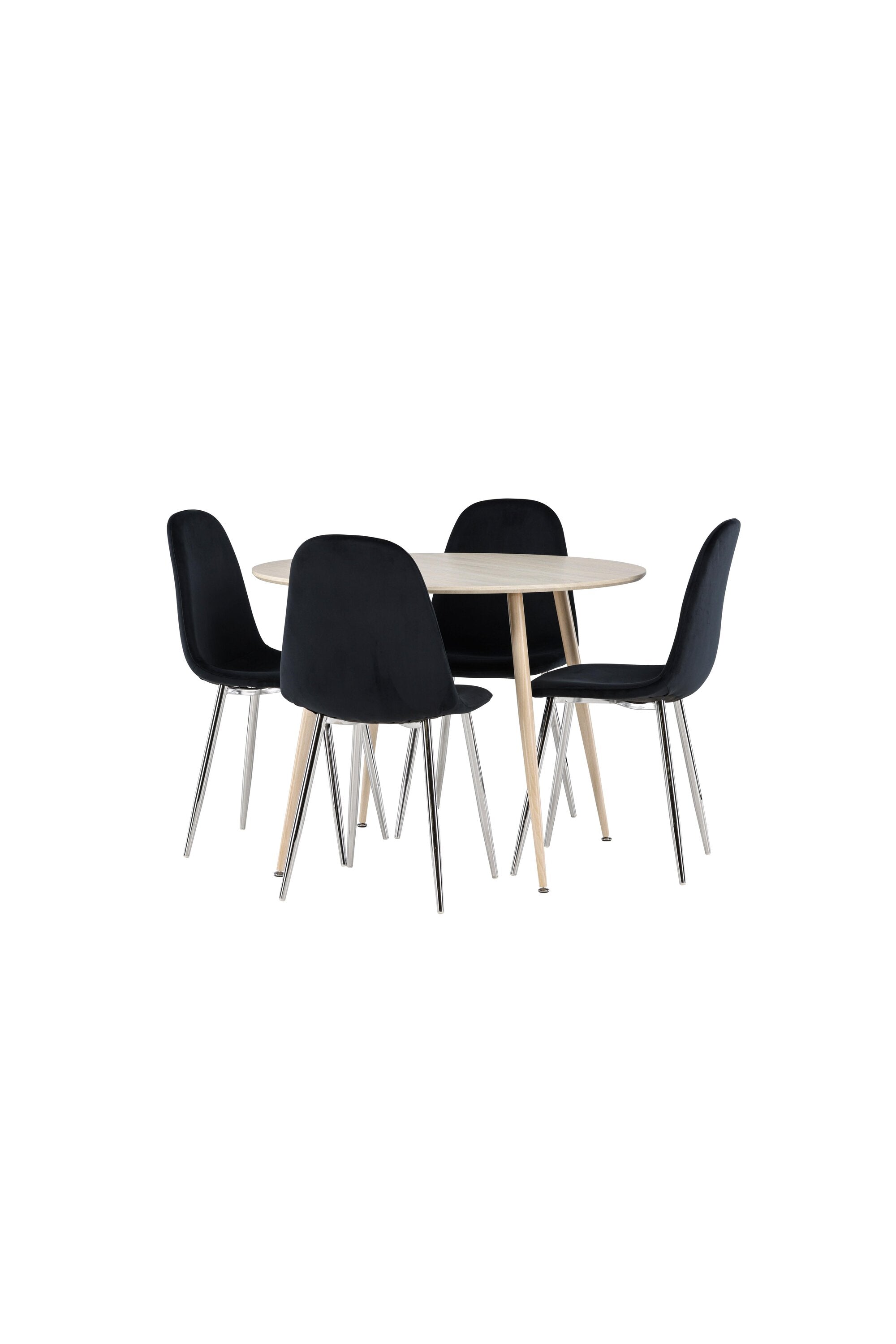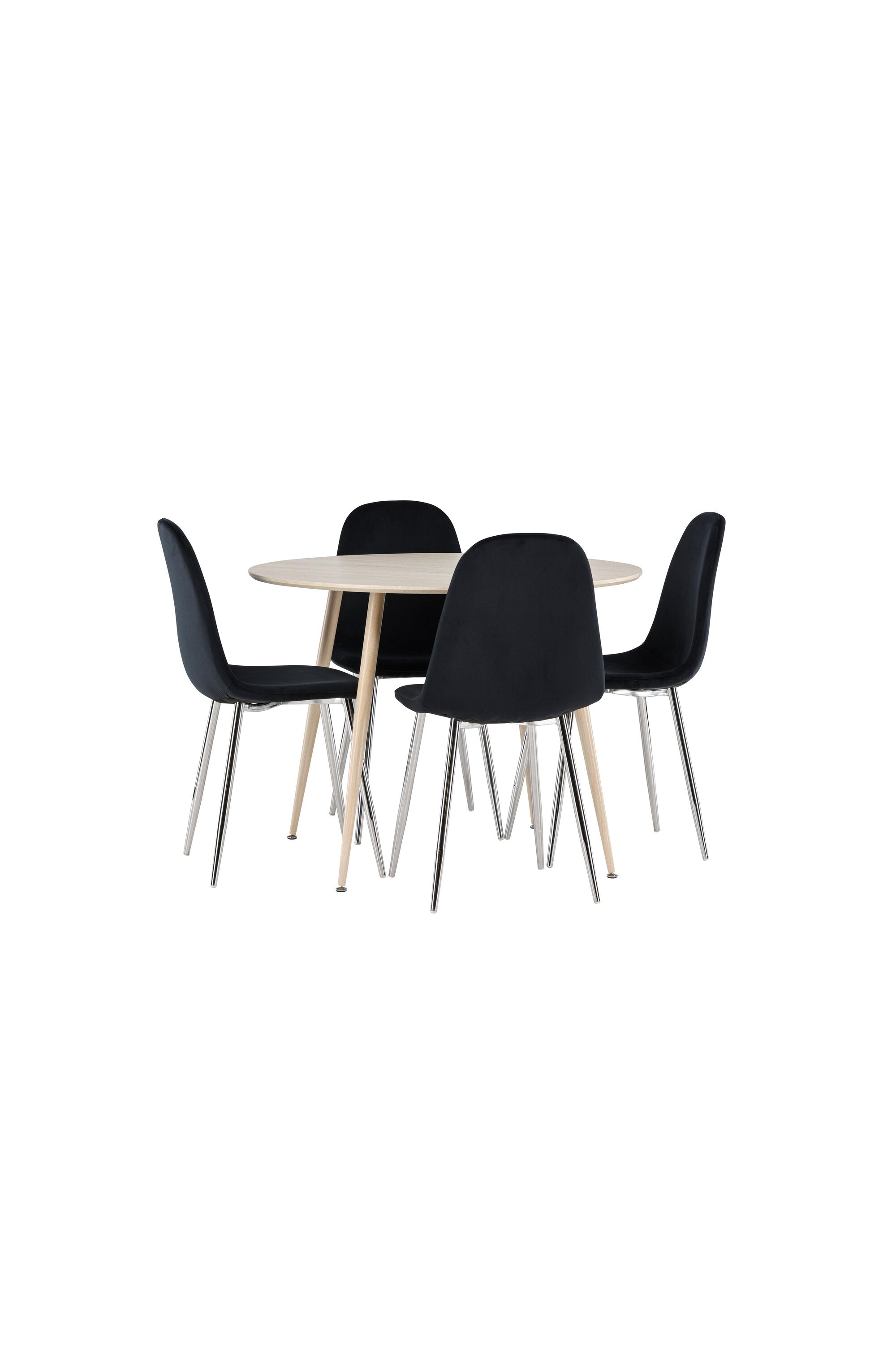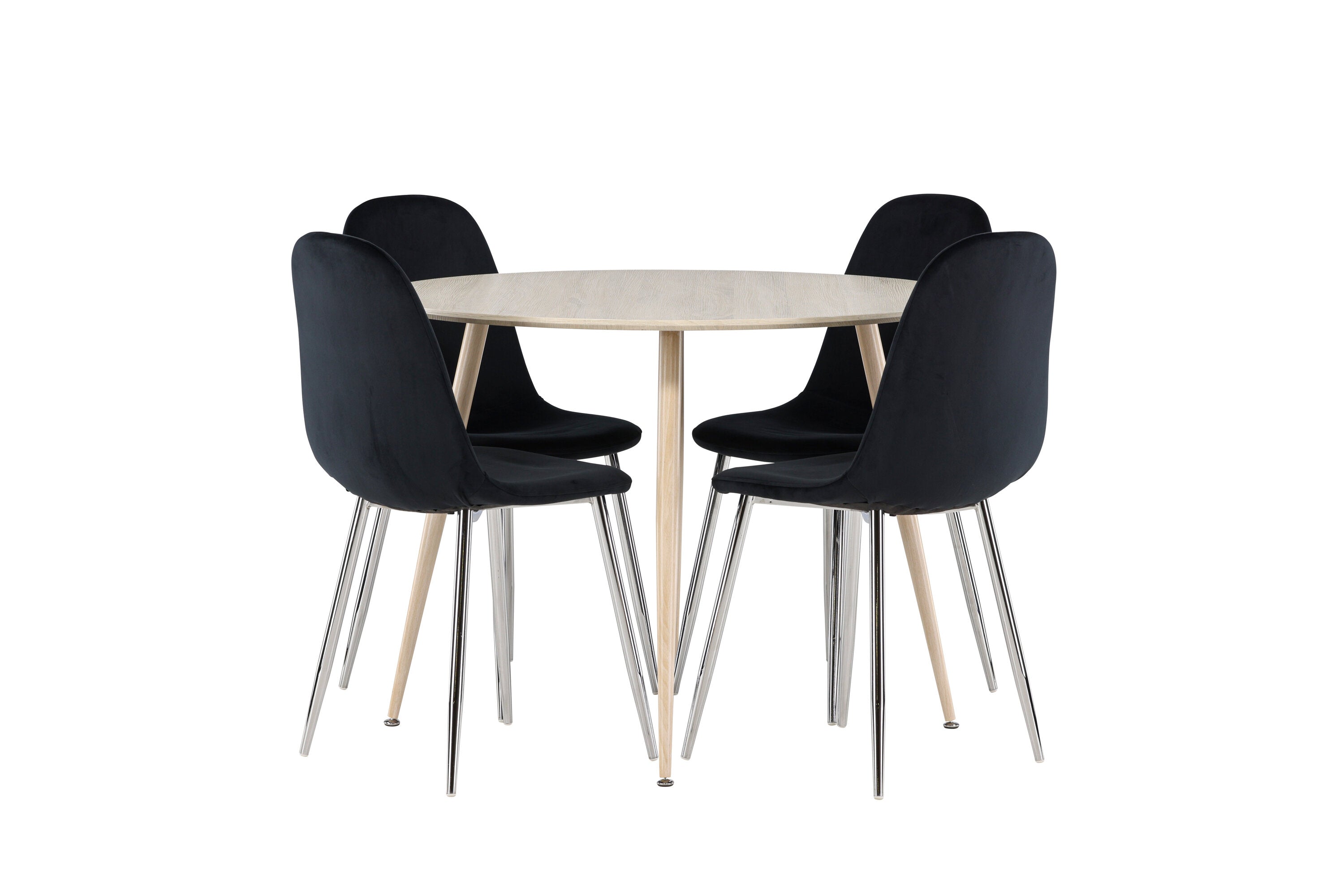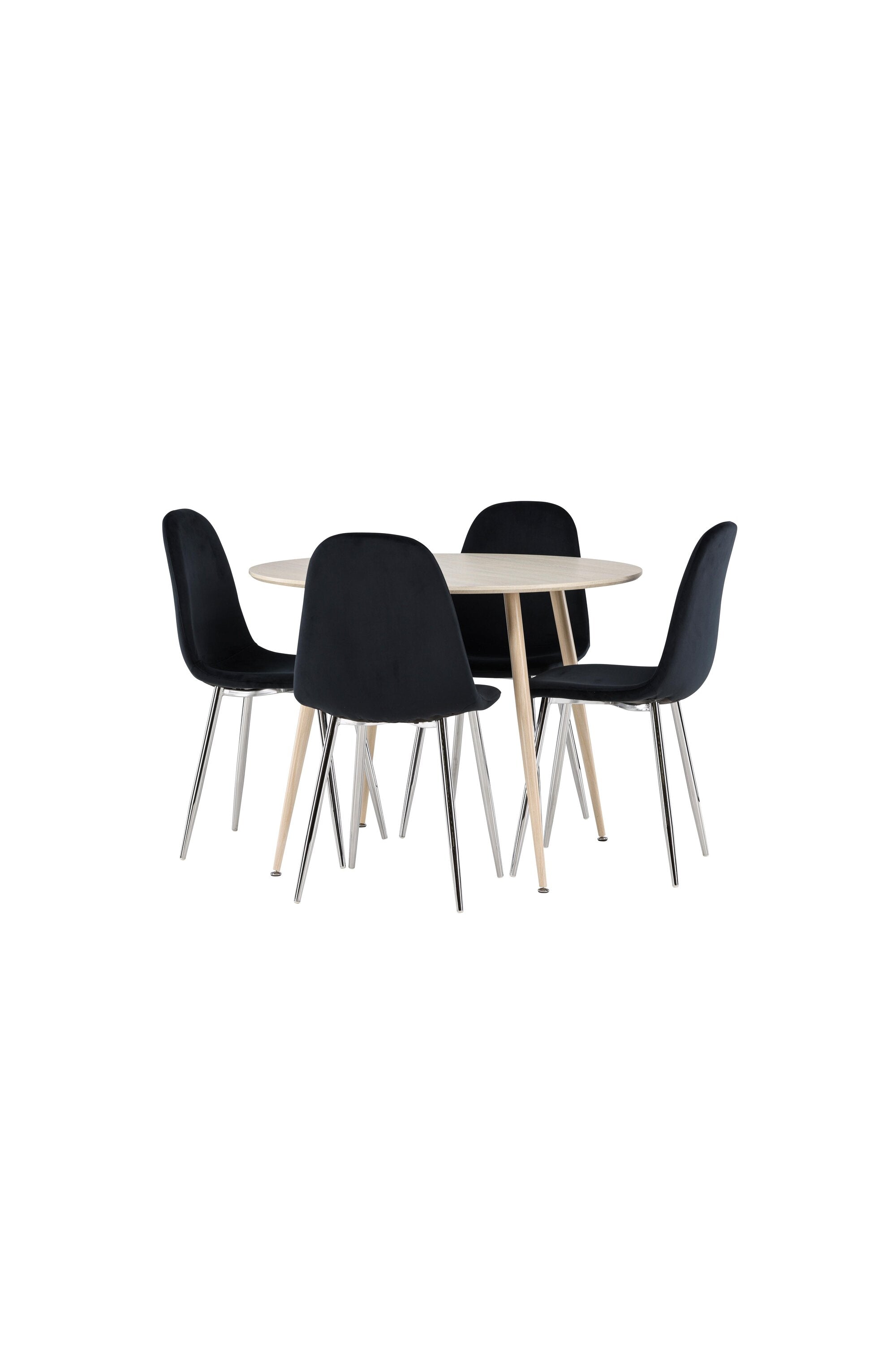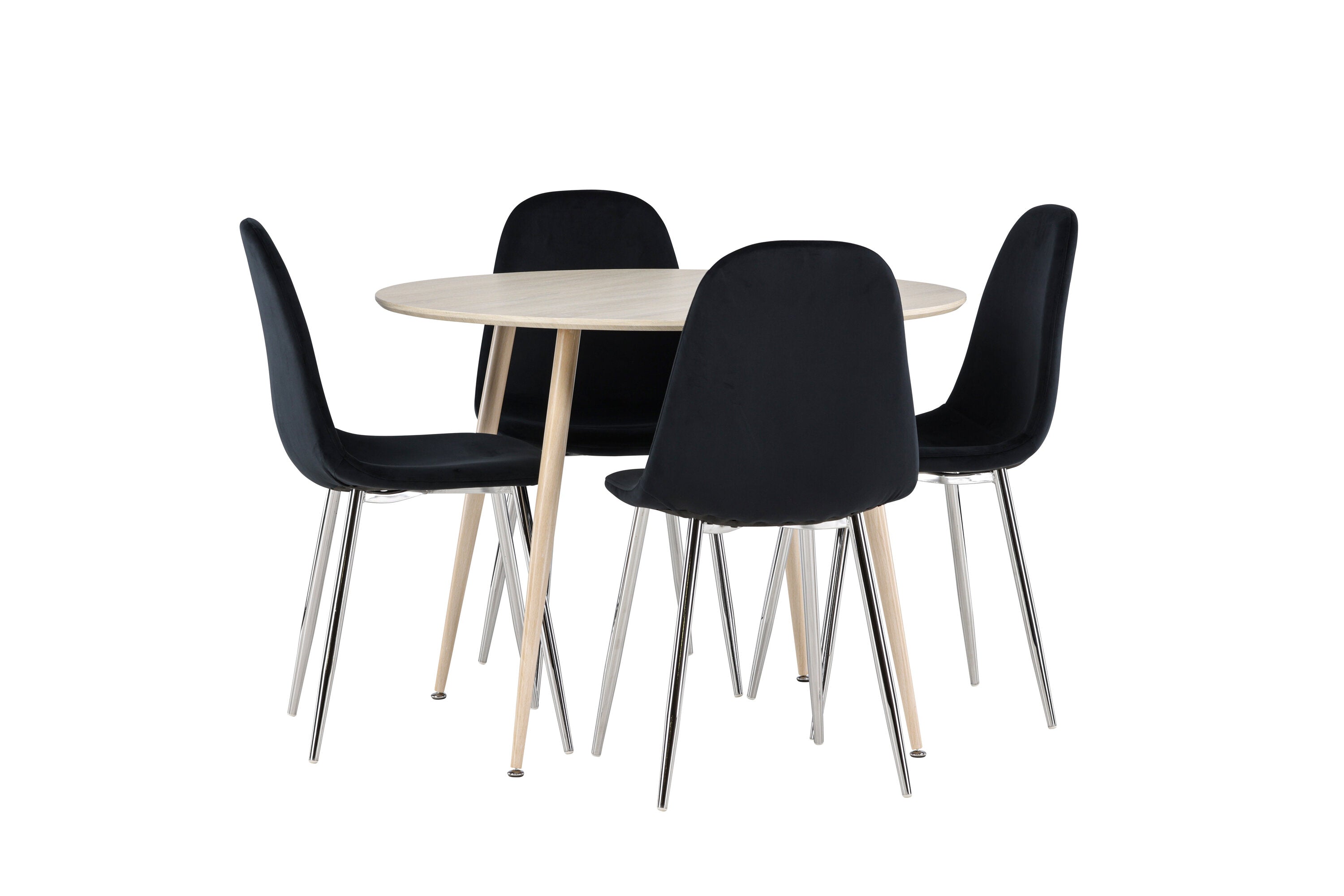 Objevte perfektní jídelní set pro váš domov s jídelním stolem Plaza a jídelními židlemi Polar. Jídelní stůl Plaza s velkorysým průměrem 100 cm je vyroben z odolného MDF materiálu a má bíle pigmentovanou barvu, která dodává místnosti hřejivý a příjemný pocit. Jeho moderní design a čisté linie vytvářejí klidnou a harmonickou atmosféru, díky níž je každé jídlo relaxačním zážitkem. Díky kompaktnímu formátu je Plaza ideální pro menší prostory a zároveň nabízí dostatek prostoru pro pohodlné jídlo s rodinou a přáteli. Doplňte svůj jídelní stůl elegantními jídelními židlemi Polar, které svým celočalouněným designem nabízejí luxusní pocit, nohy z chromovaného kovu, mírně zaoblené opěradlo a sedák z elegantní černé sametové látky s měkkým polstrováním pro extra pohodlí. Zde nemusíte dělat kompromisy mezi pohodlím a designem. Tyto židle dokonale ladí s jídelním stolem Plaza a vytvářejí kompletní a příjemnou jídelní soupravu pro srdce vašeho domova. Dodejte svému domovu moderní a stylový nádech s jídelním stolem Plaza a jídelními židlemi Polar – dokonalá kombinace pro ty, kteří oceňují styl i funkci ve svém interiéru. Užijte si lahodná jídla a příjemné chvíle s tímto stylovým jídelním setem.