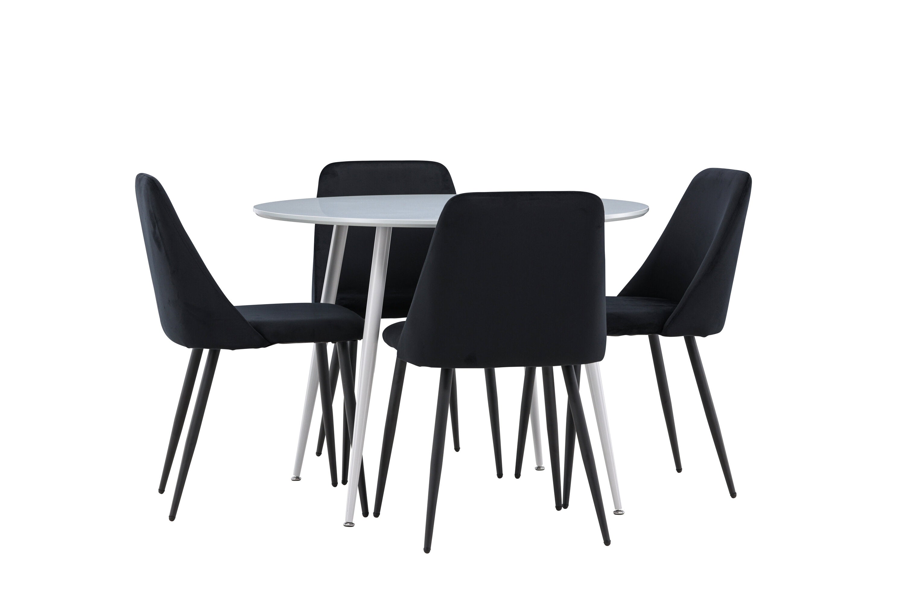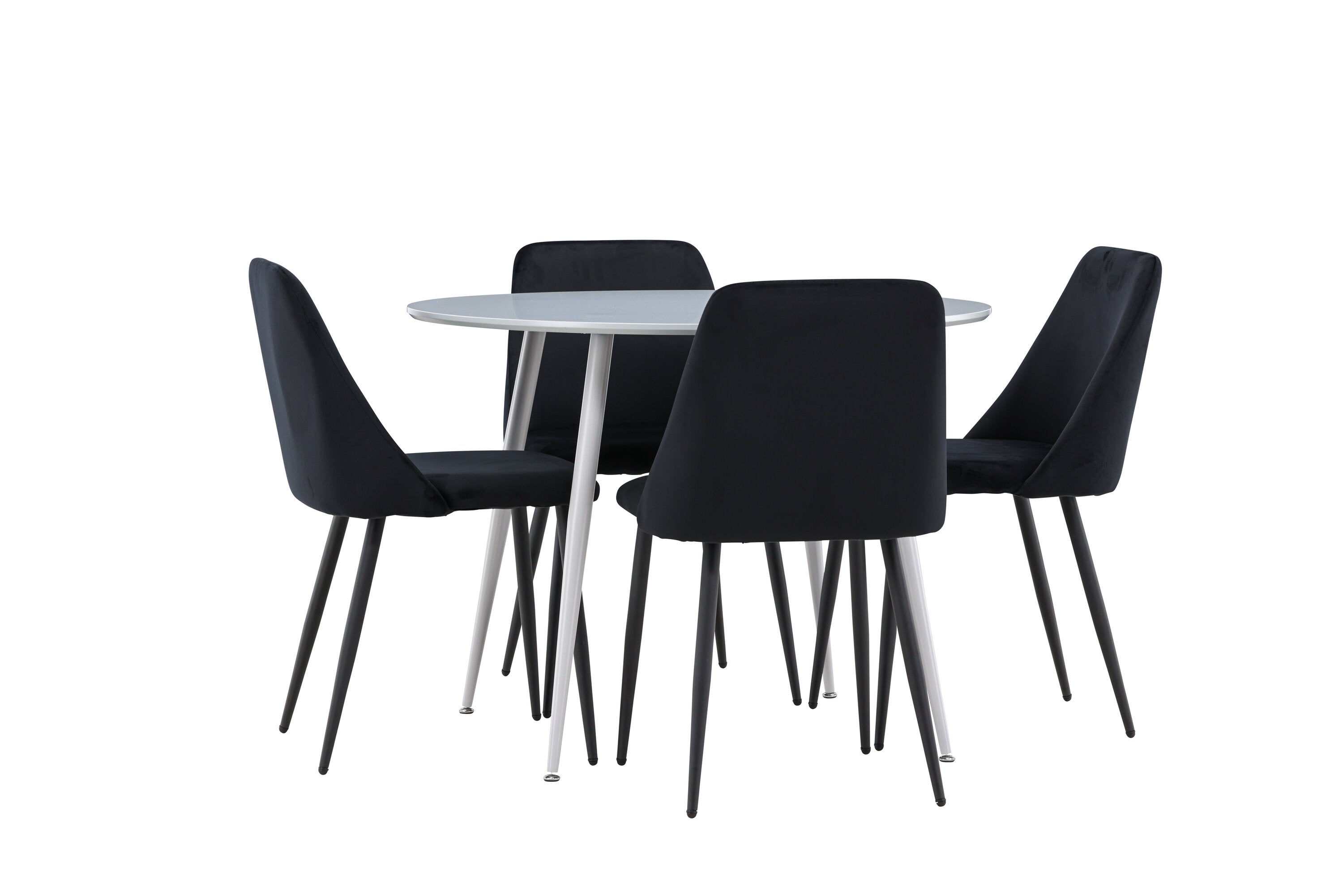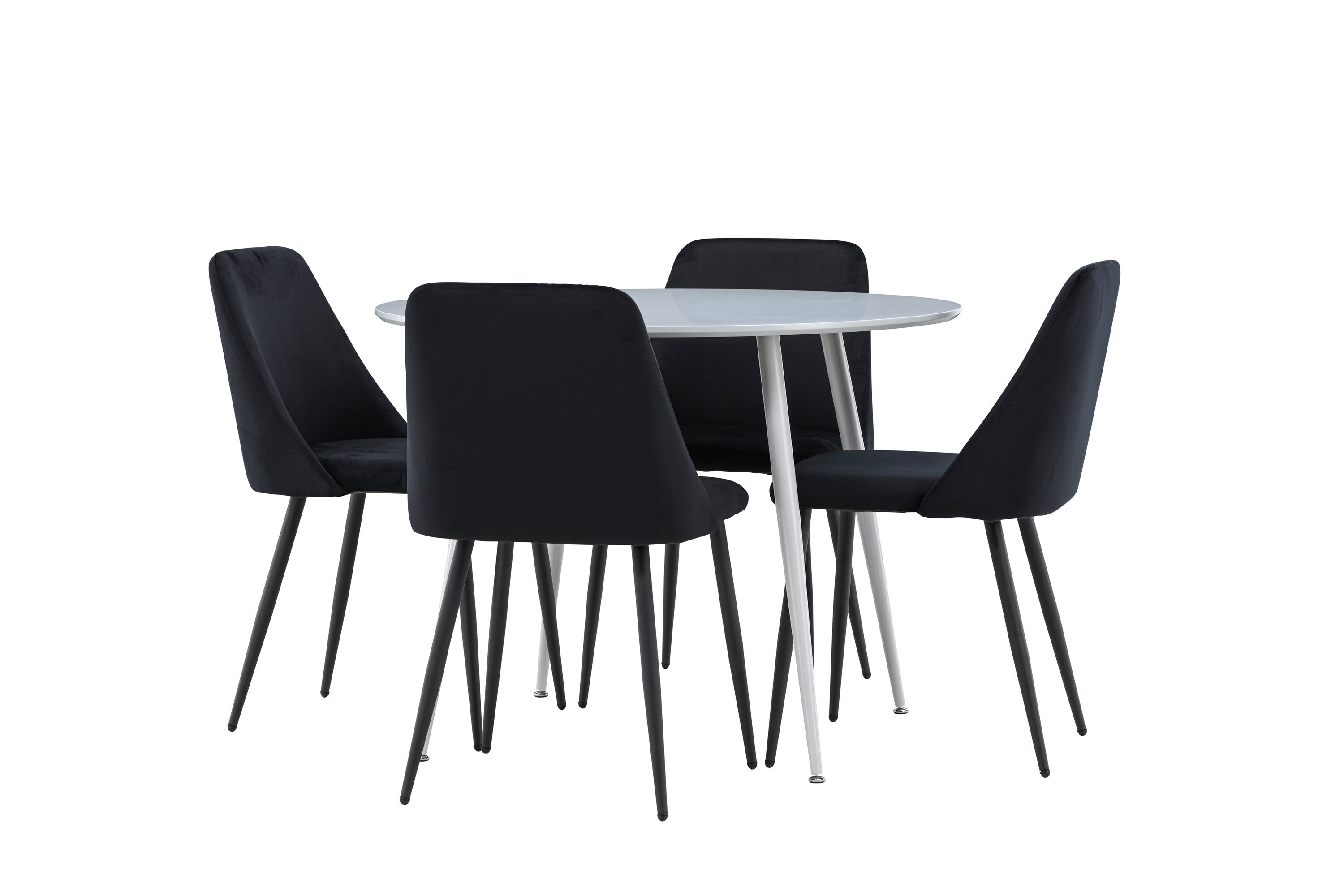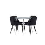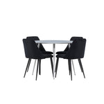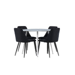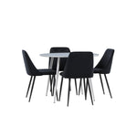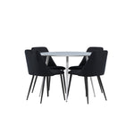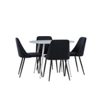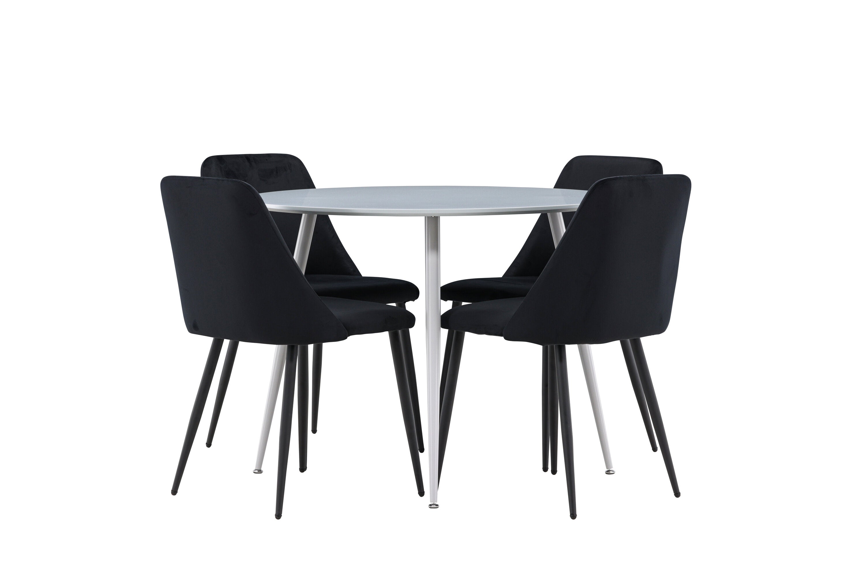 Dodejte své jídelně nádech moderní elegance s jídelním setem, který se skládá ze stolu Plaza a nočních židlí. Tento jídelní set nabízí dokonalou rovnováhu mezi stylem a pohodlím a je ideálním doplňkem vašeho domova. Stůl Plaza je se svou šedou barvou a MDF konstrukcí sofistikovaným středobodem. Stůl s průměrem 100 cm poskytuje dostatek prostoru pro stolování i společenská setkání, přičemž se svými kompaktními rozměry skvěle hodí do malých i velkých místností. Šedý odstín dodá vaší jídelně moderní a elegantní nádech a odolný povrch se snadno čistí a udržuje a zajišťuje dlouhotrvající krásu a funkčnost. Čtyři doprovodná noční křesla skvěle doplňují stůl svým elegantním designem a vysokým komfortem. Židle jsou čalouněny černým sametem, který poskytuje měkké a příjemné sezení. Sametová látka je známá svou elegancí a pohodlím, umožňuje vám i vašim hostům pohodlně sedět při dlouhých jídlech a příjemných rozhovorech. Černé židle vytvářejí stylový kontrast k šedému stolu a dodávají vaší jídelně moderní a sofistikovanou atmosféru. Jídelní set Plaza s nočními židlemi je perfektní volbou pro ty, kteří chtějí vytvořit elegantní a funkční jídelní prostředí. Kombinace moderního designu a vysokého komfortu dělá z každého jídla příjemný zážitek. Vítejte na nové úrovni stylu a pohodlí u vás doma s Plaza and Night!