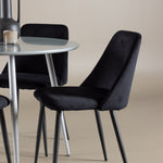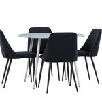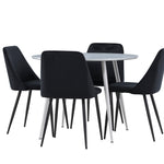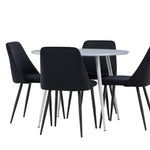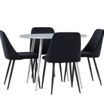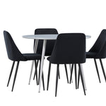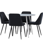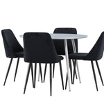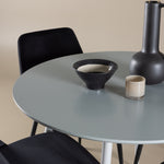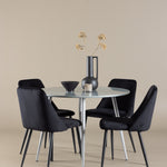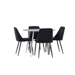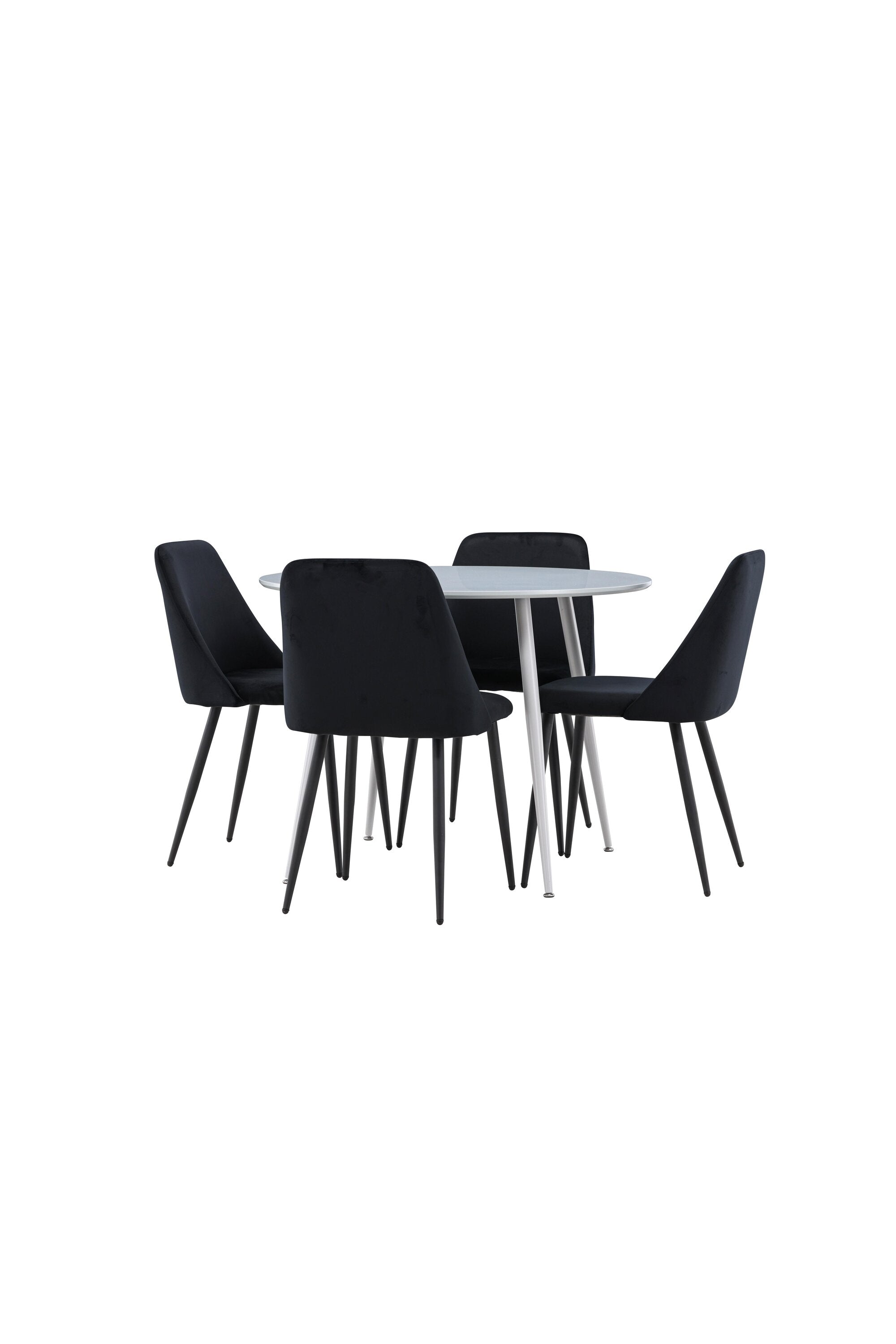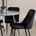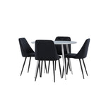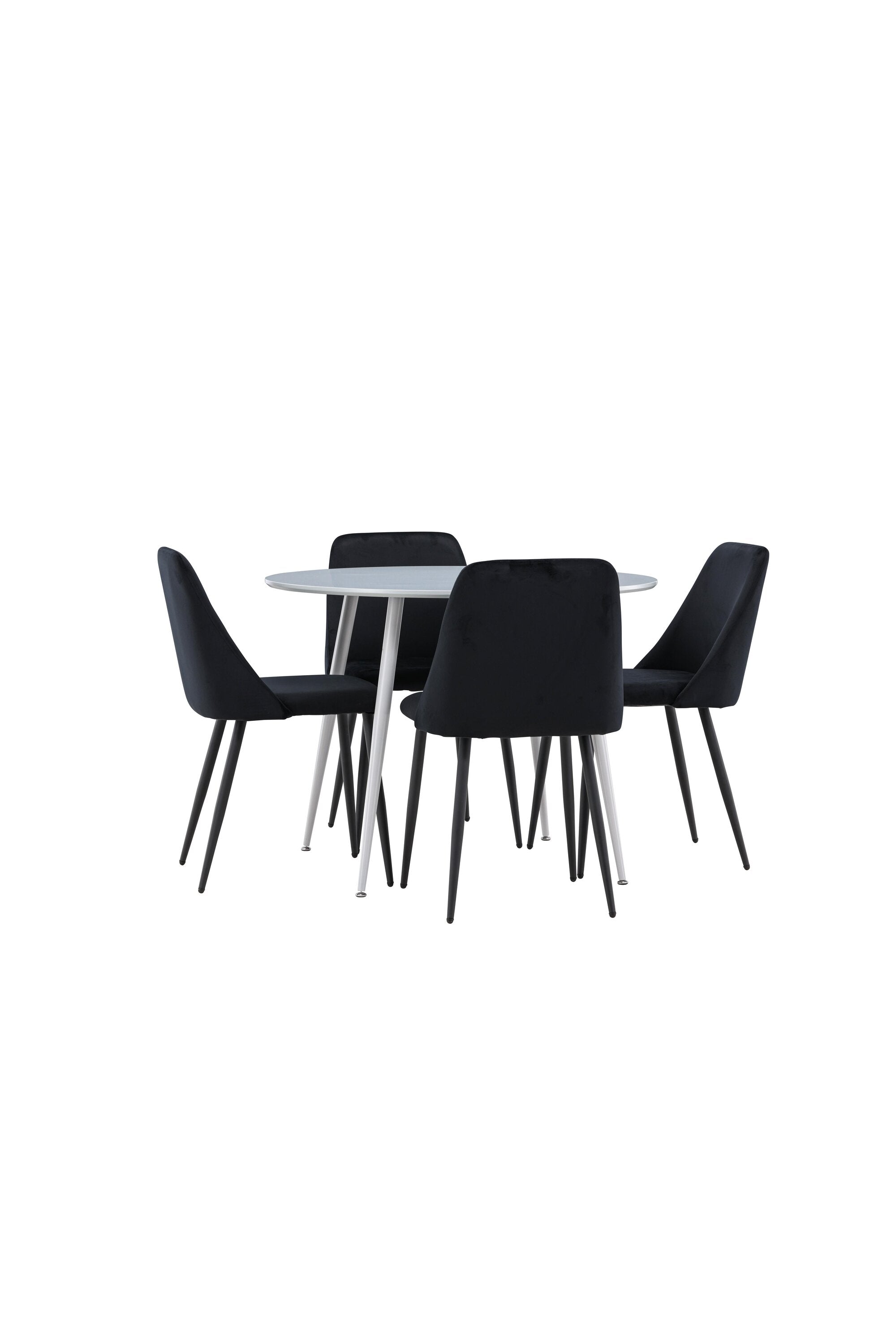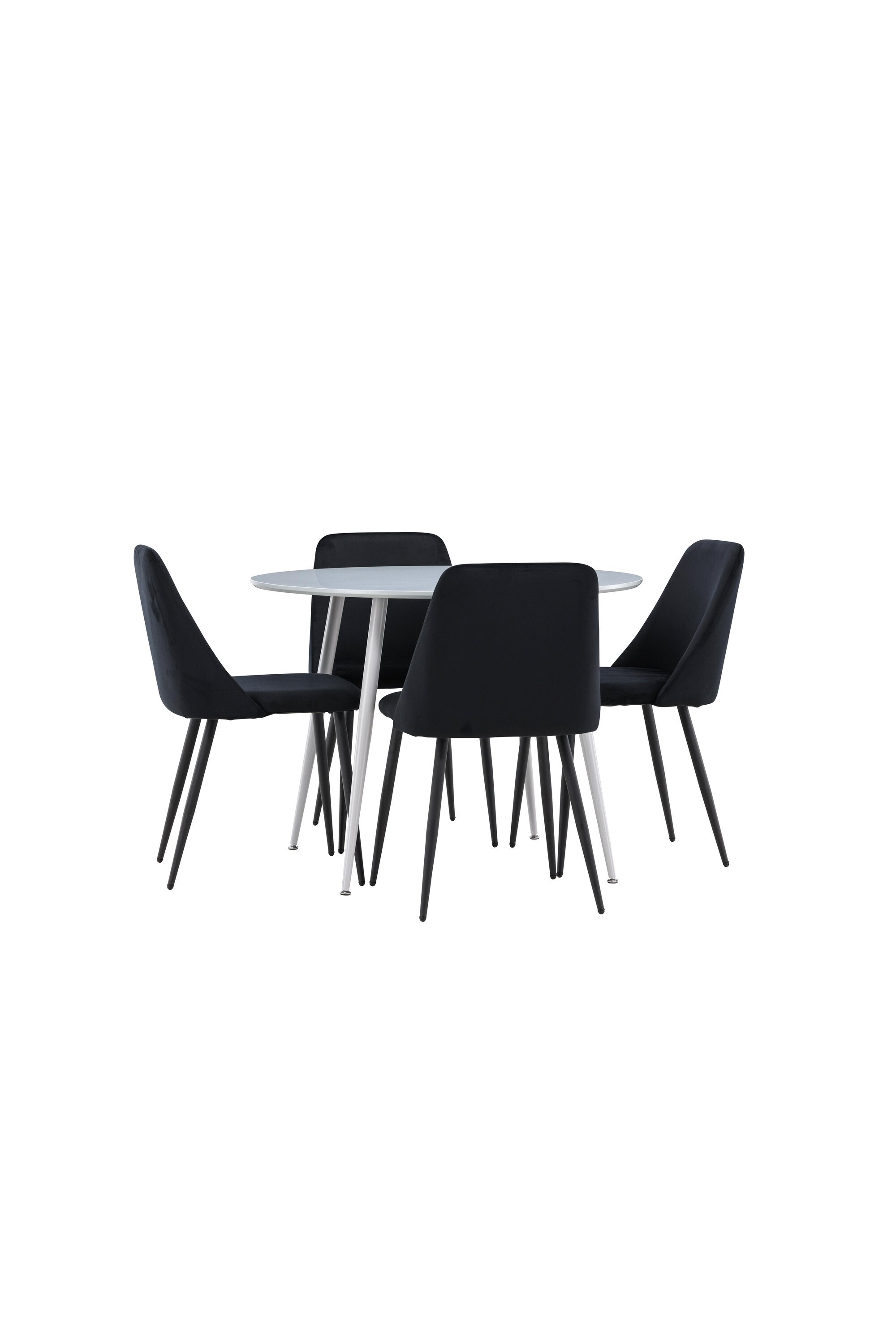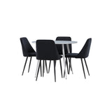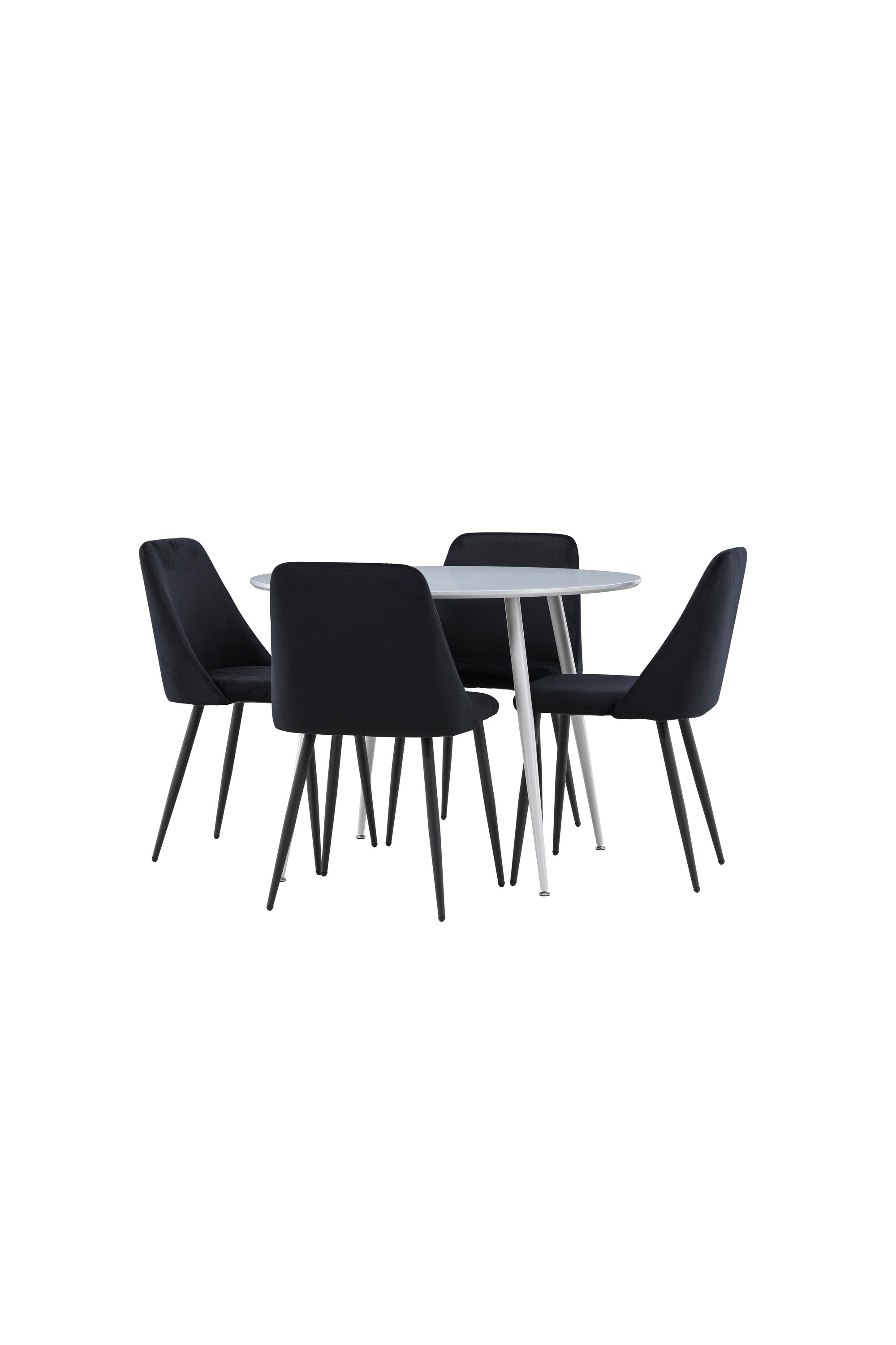Dodejte své jídelně nádech moderní elegance s jídelním setem, který se skládá ze stolu Plaza a nočních židlí. Tento jídelní set nabízí dokonalou rovnováhu mezi stylem a pohodlím a je ideálním doplňkem vašeho domova. Stůl Plaza je se svou šedou barvou a MDF konstrukcí sofistikovaným středobodem. Stůl s průměrem 100 cm poskytuje dostatek prostoru pro stolování i společenská setkání, přičemž se svými kompaktními rozměry skvěle hodí do malých i velkých místností. Šedý odstín dodá vaší jídelně moderní a elegantní nádech a odolný povrch se snadno čistí a udržuje a zajišťuje dlouhotrvající krásu a funkčnost. Čtyři doprovodná noční křesla skvěle doplňují stůl svým elegantním designem a vysokým komfortem. Židle jsou čalouněny černým sametem, který poskytuje měkké a příjemné sezení. Sametová látka je známá svou elegancí a pohodlím, umožňuje vám i vašim hostům pohodlně sedět při dlouhých jídlech a příjemných rozhovorech. Černé židle vytvářejí stylový kontrast k šedému stolu a dodávají vaší jídelně moderní a sofistikovanou atmosféru. Jídelní set Plaza s nočními židlemi je perfektní volbou pro ty, kteří chtějí vytvořit elegantní a funkční jídelní prostředí. Kombinace moderního designu a vysokého komfortu dělá z každého jídla příjemný zážitek. Vítejte na nové úrovni stylu a pohodlí u vás doma s Plaza and Night!