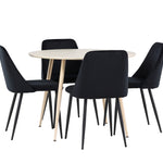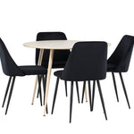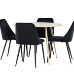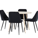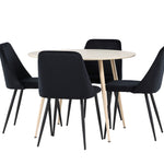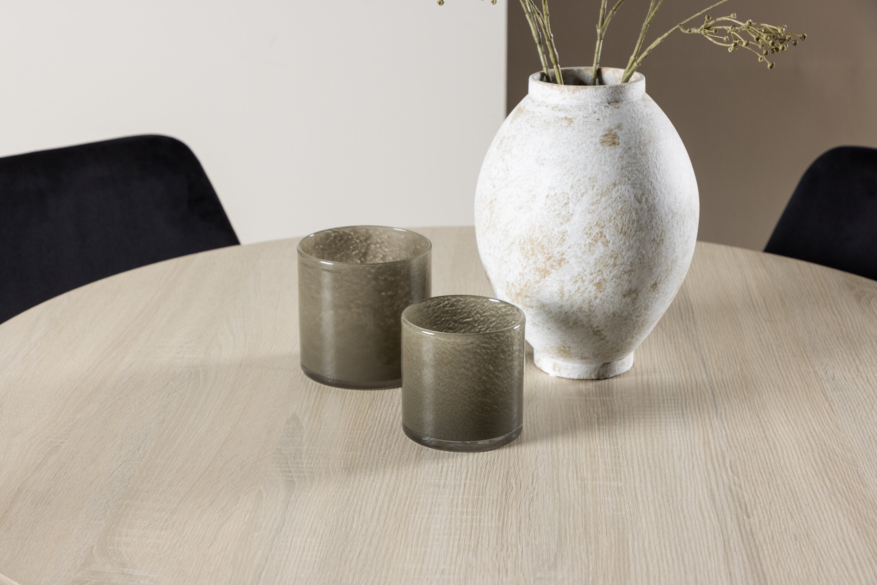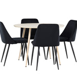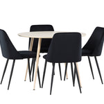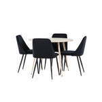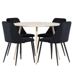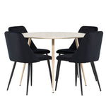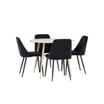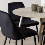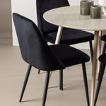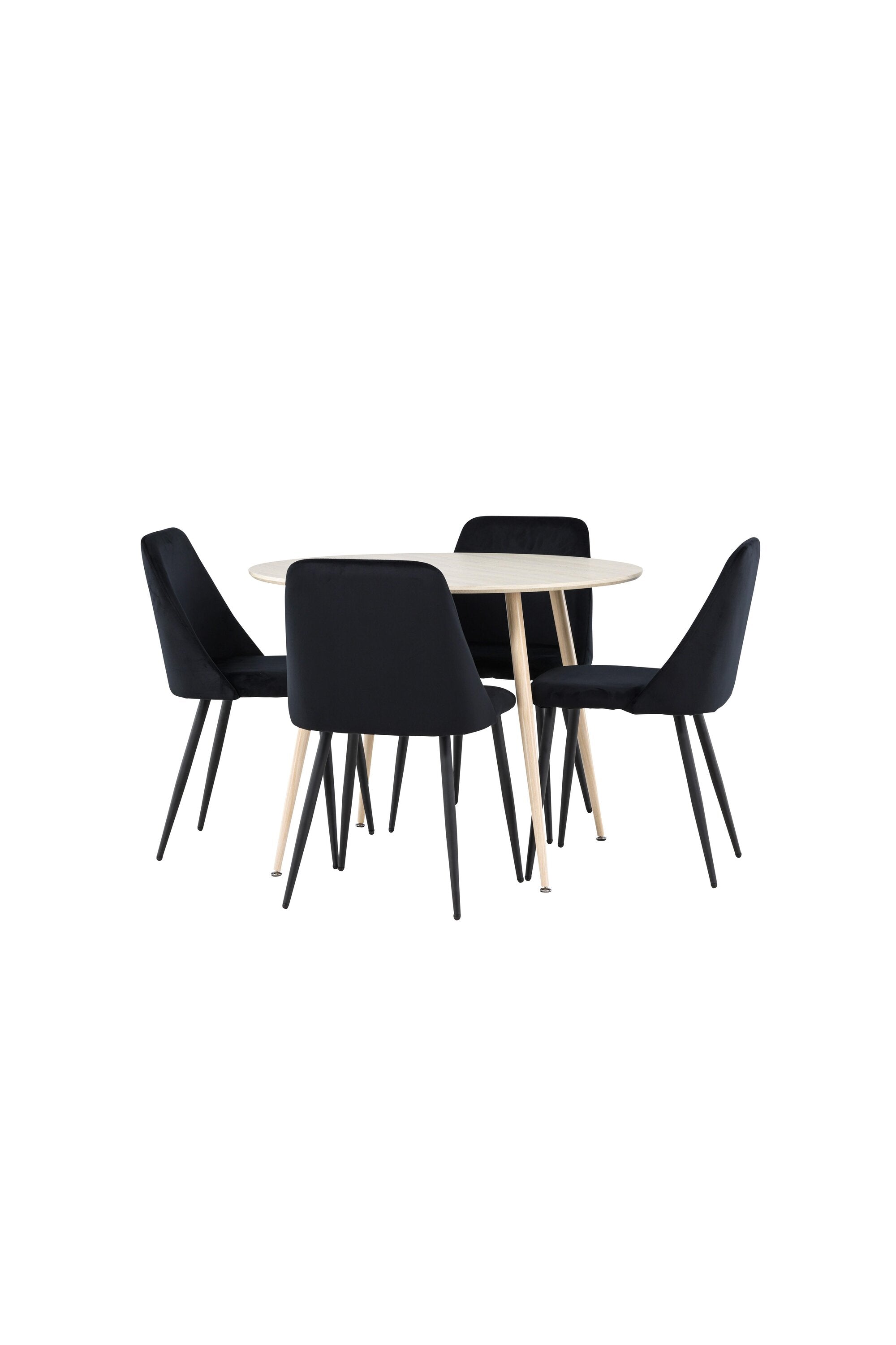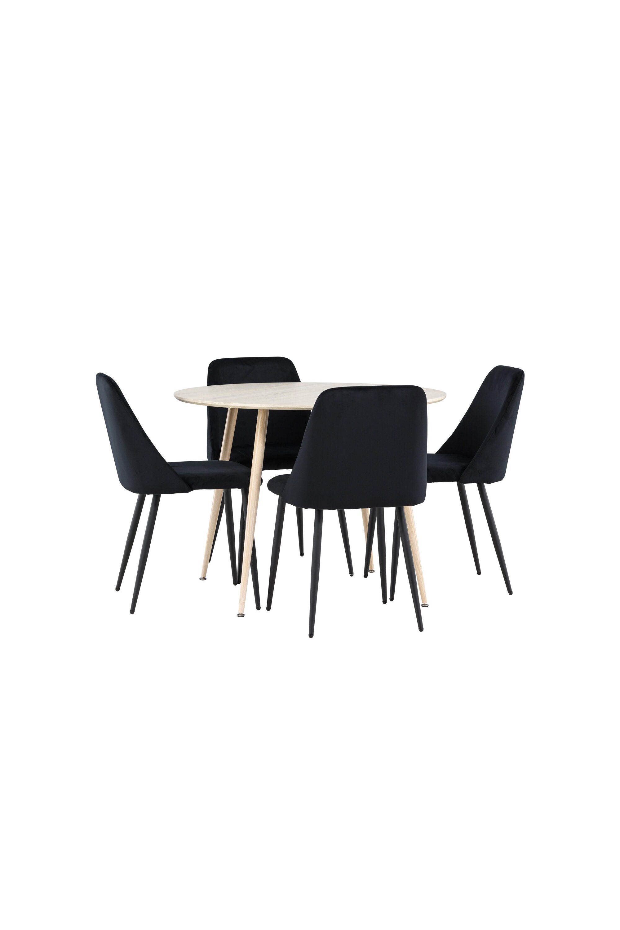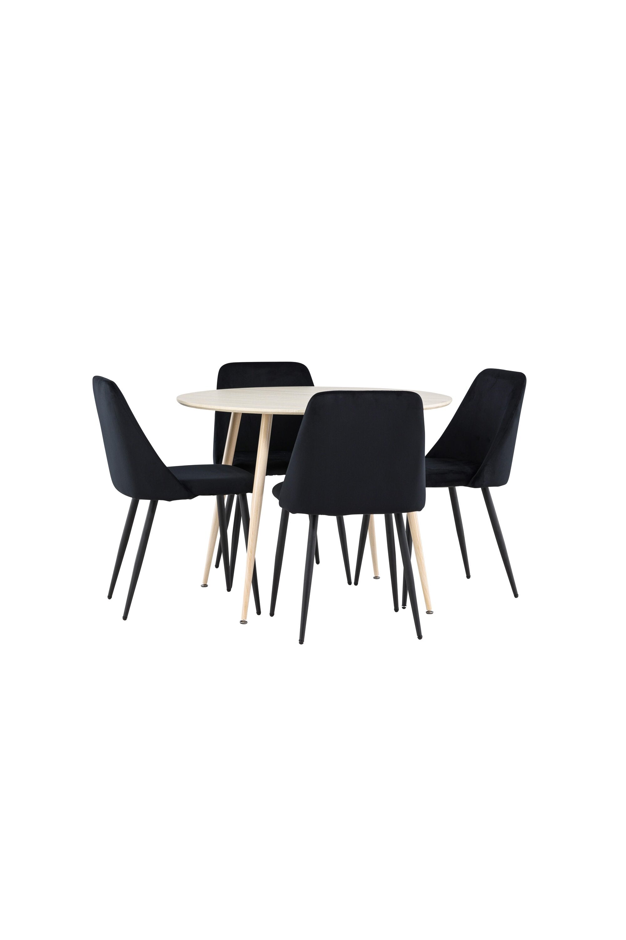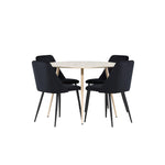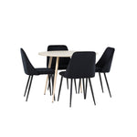 Objevte perfektní jídelní set pro váš domov s jídelním stolem Plaza a jídelními židlemi NIGHT. Jídelní stůl Plaza s velkorysým průměrem 100 cm je vyroben z odolného MDF materiálu a má bíle pigmentovanou barvu, která dodává místnosti hřejivý a příjemný pocit. Jeho moderní design a čisté linie vytvářejí klidnou a harmonickou atmosféru, díky níž je každé jídlo relaxačním zážitkem. Díky kompaktnímu formátu je Plaza ideální pro menší prostory a zároveň nabízí dostatek prostoru pro pohodlné jídlo s rodinou a přáteli. Doplňte svůj jídelní stůl jídelními židlemi NIGHT, které nabízejí pohodlí i styl. Křeslo má plně čalouněný sedák z černé sametové látky a nohy židle v odpovídající černé barvě, které dodávají místnosti luxusní třpyt. Jídelní židle NIGHT přispívají k příjemné a módní atmosféře, díky níž je posezení u lahodného jídla mimořádně příjemné. Sofistikovaný design a pohodlný materiál dělají z NIGHT perfektní volbu jak pro každodenní večeři, tak pro slavnostní příležitosti. Dodejte svému domovu nádech moderní elegance s jídelním stolem Plaza a jídelními židlemi NIGHT – ideální kombinace pro každého, kdo si cení stylu i funkce ve svém dekoru.