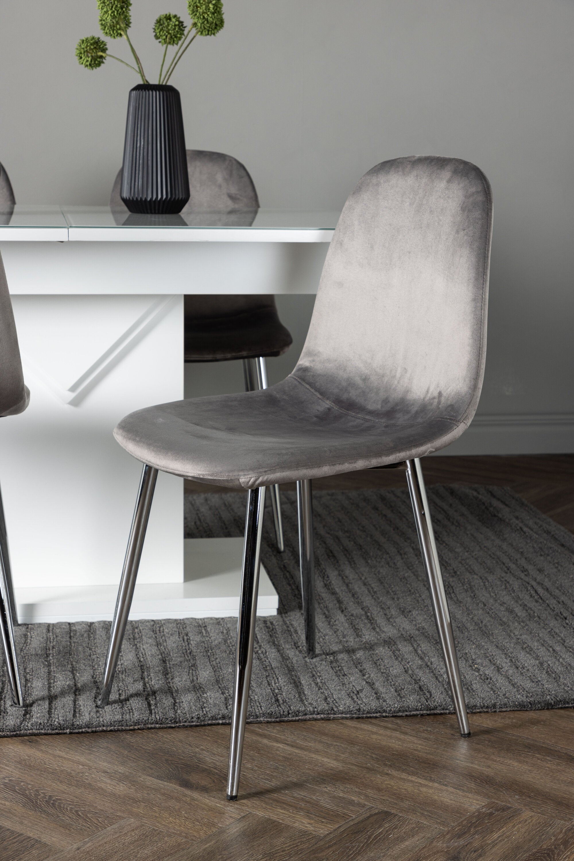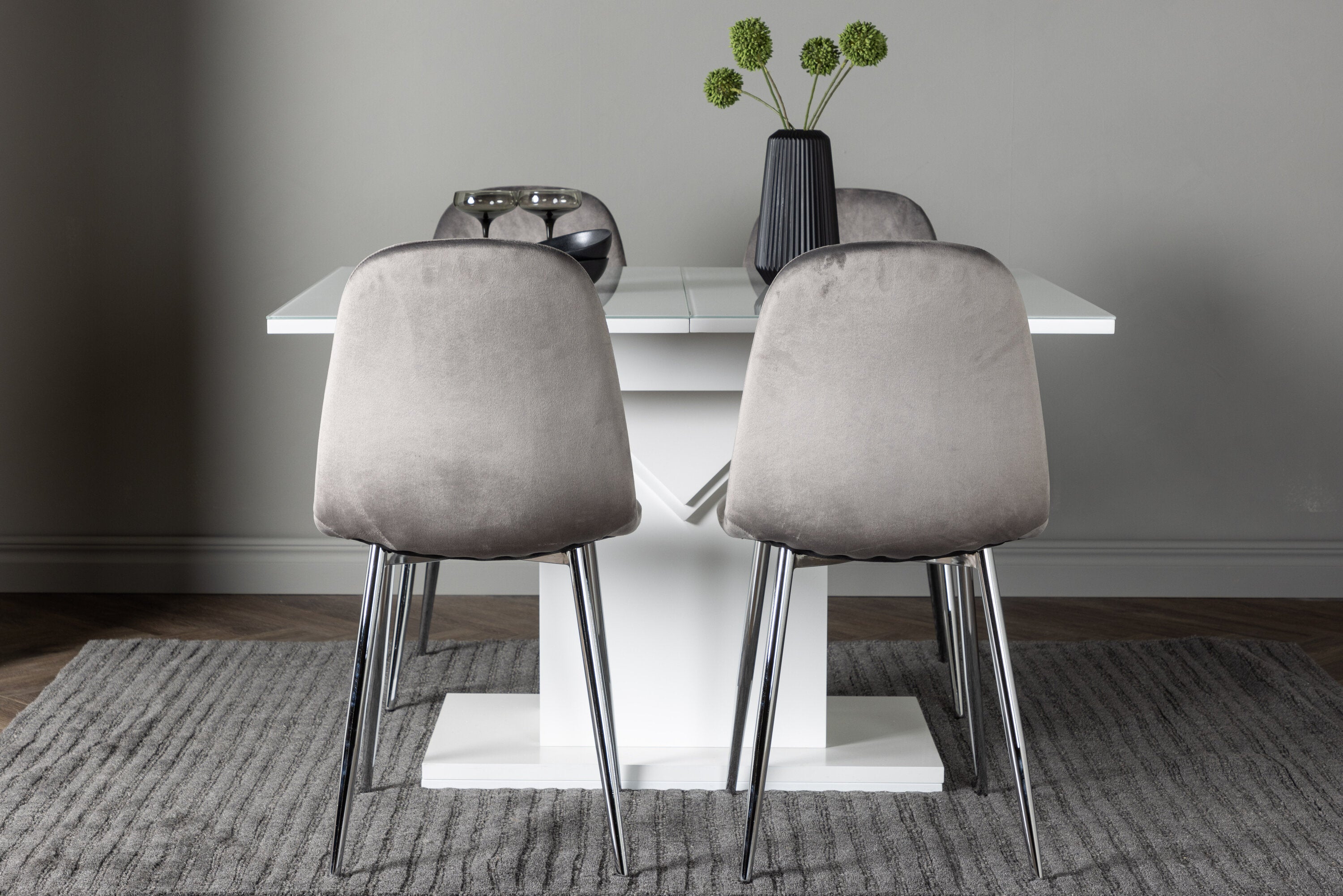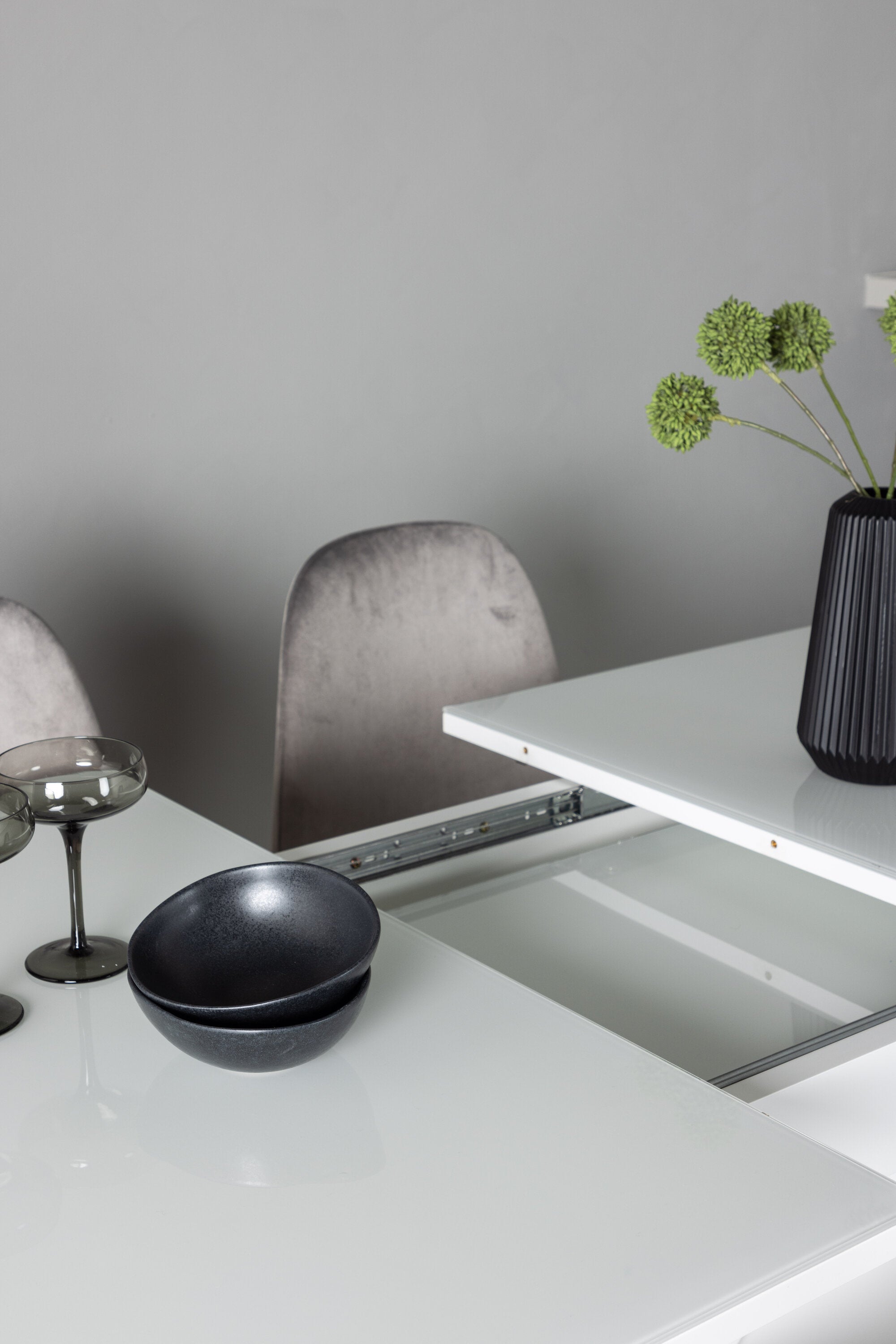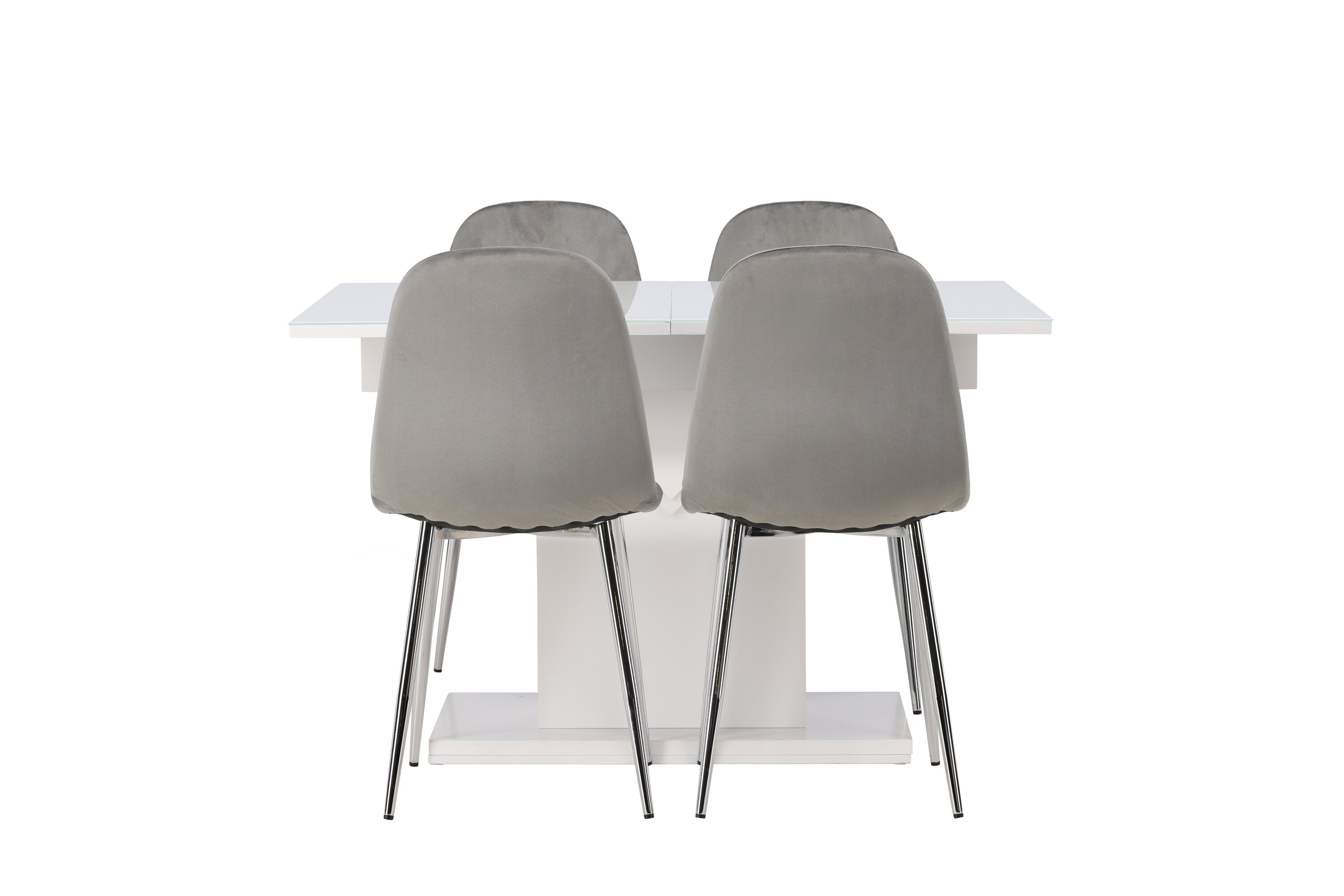 Jídelní stůl Pluto 120/160*90- Bílá / MDF sklo +Jídelní židle Eva - Světle šedá / Světle šedá Velvet _4