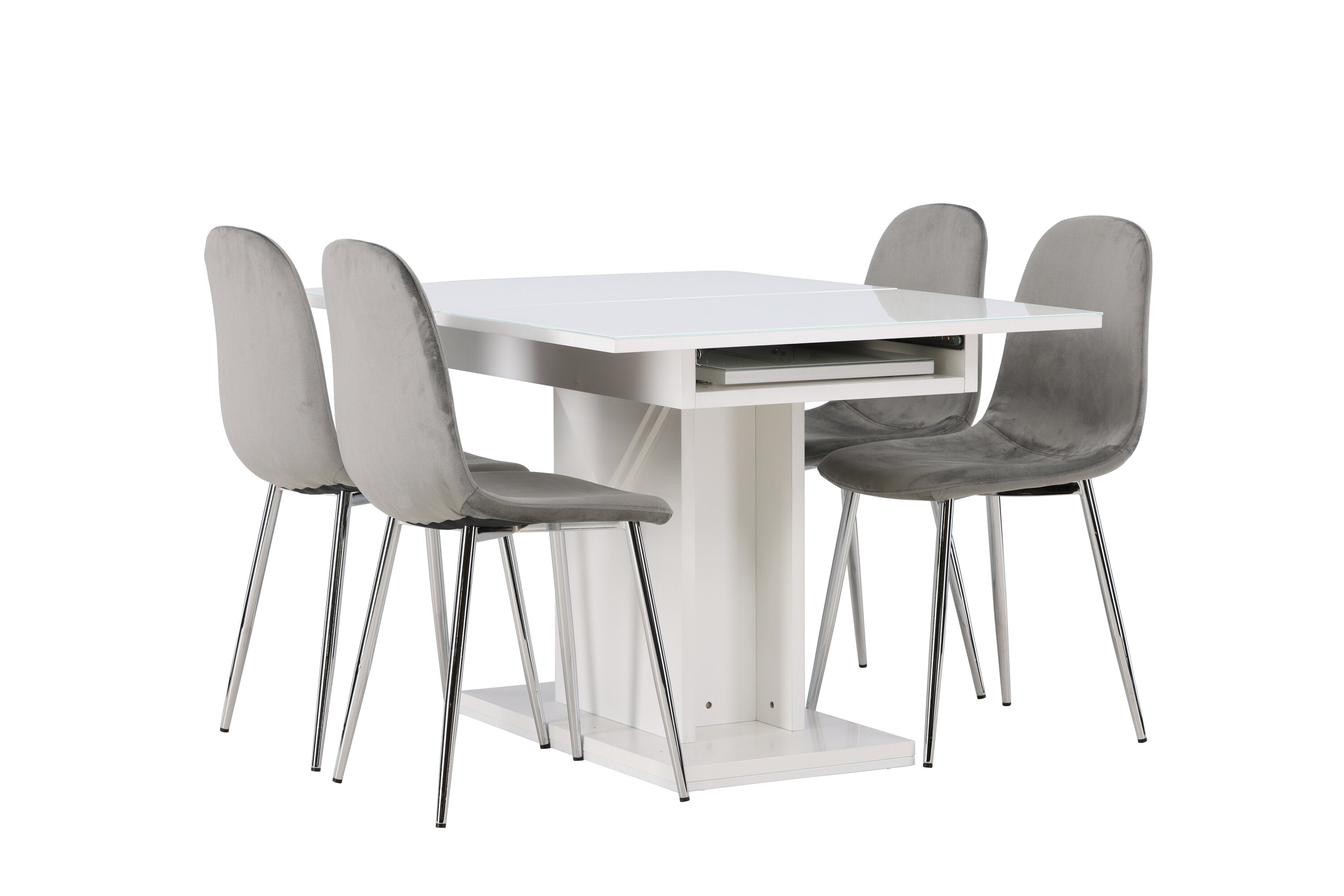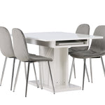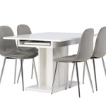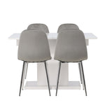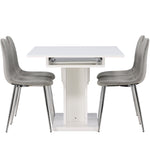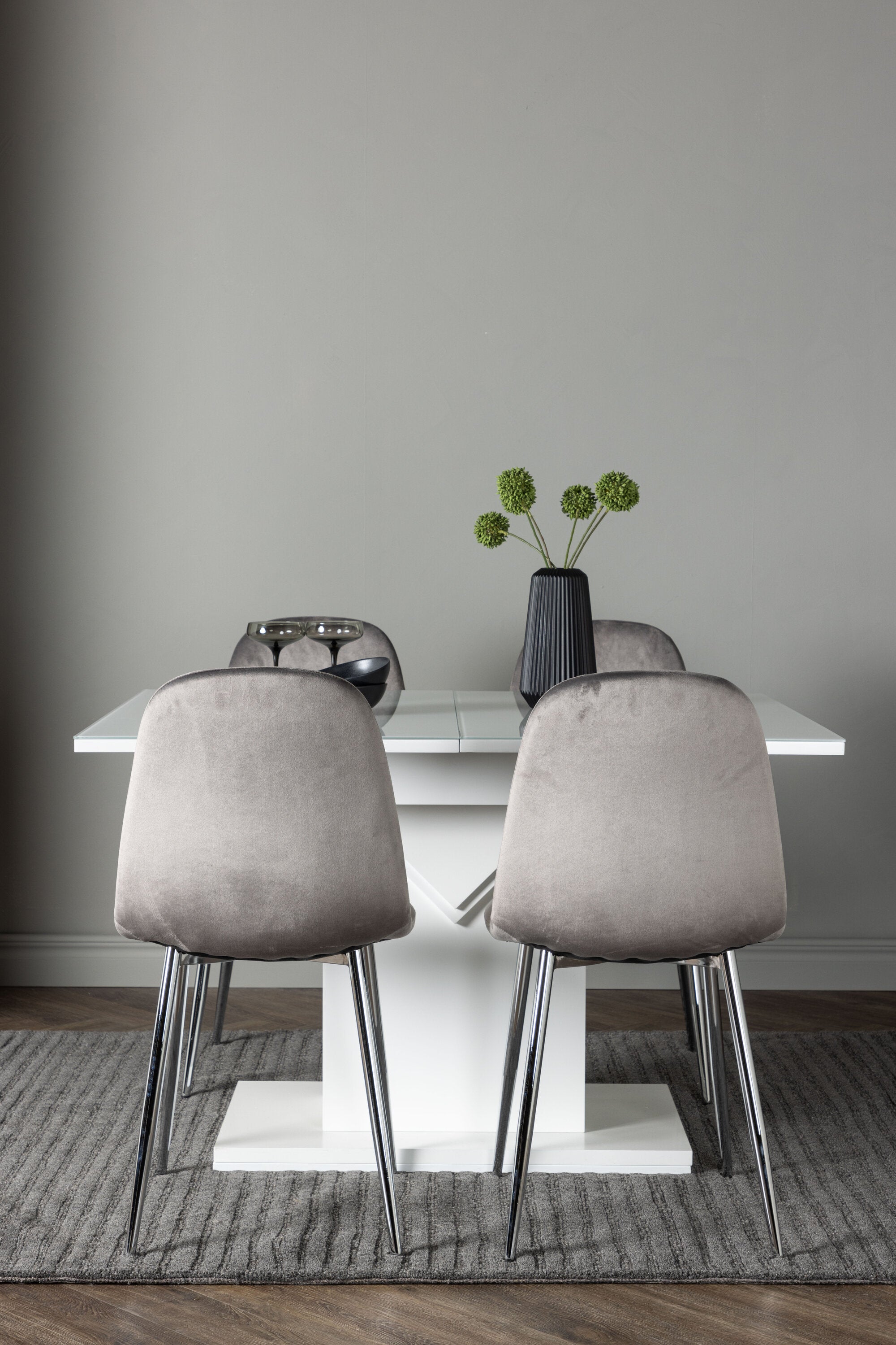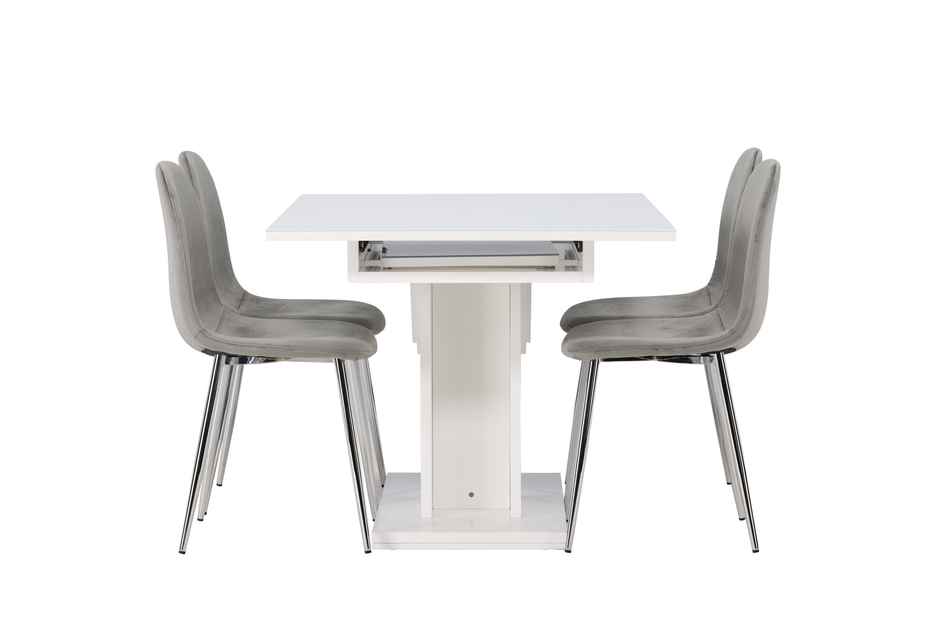 Jídelní stůl Pluto 120/160*90- Bílá / MDF sklo +Jídelní židle Eva - Světle šedá / Světle šedá Velvet _4