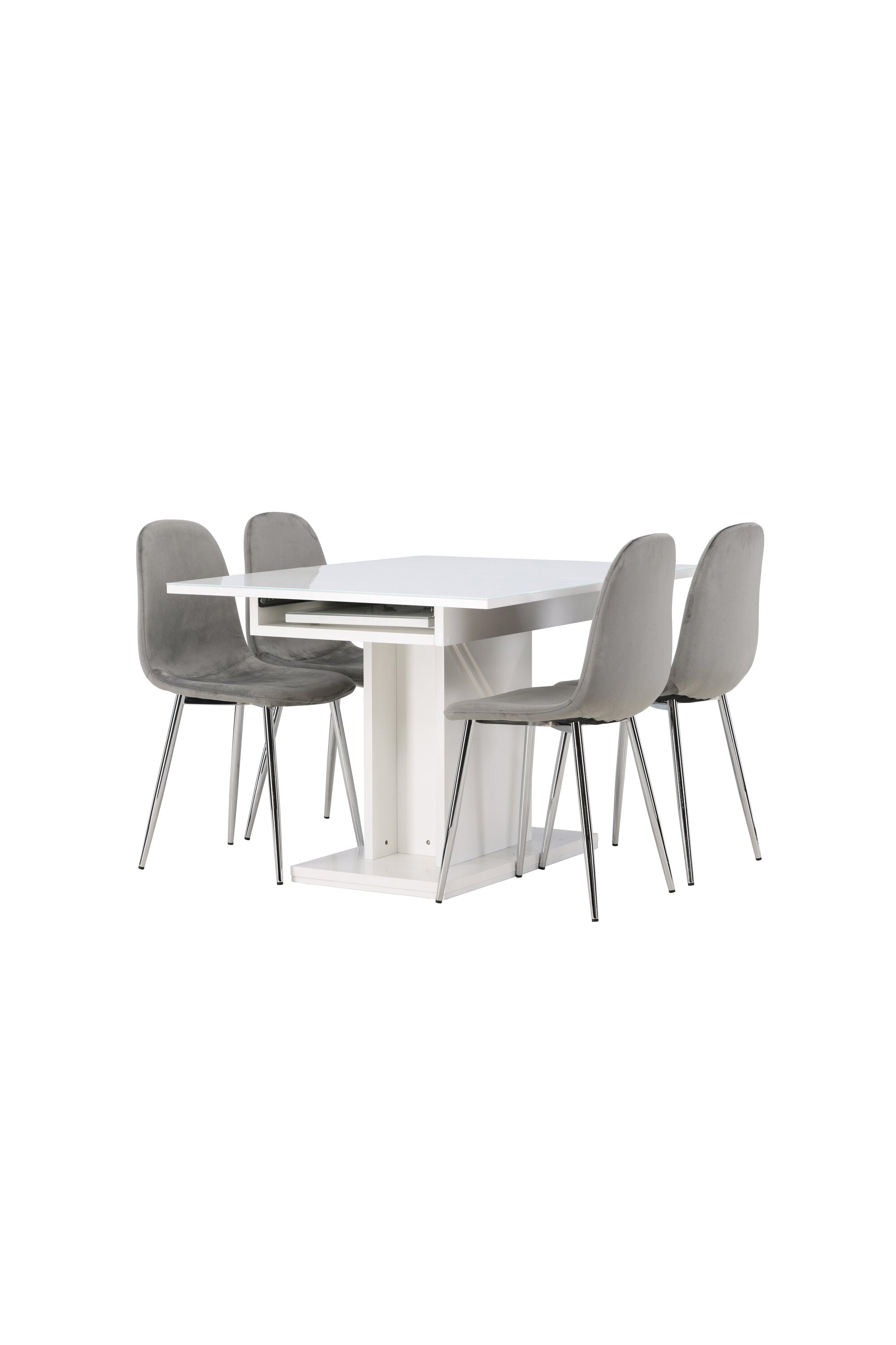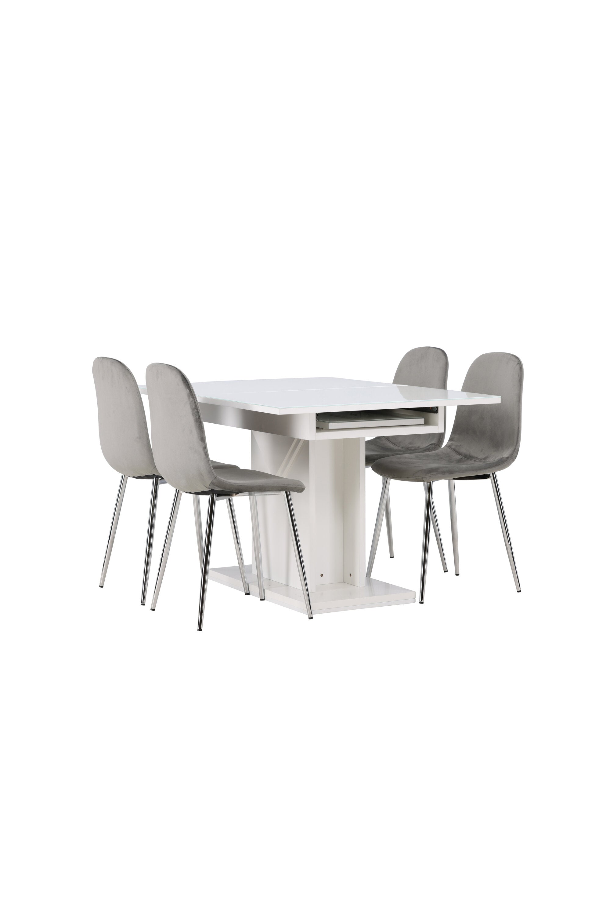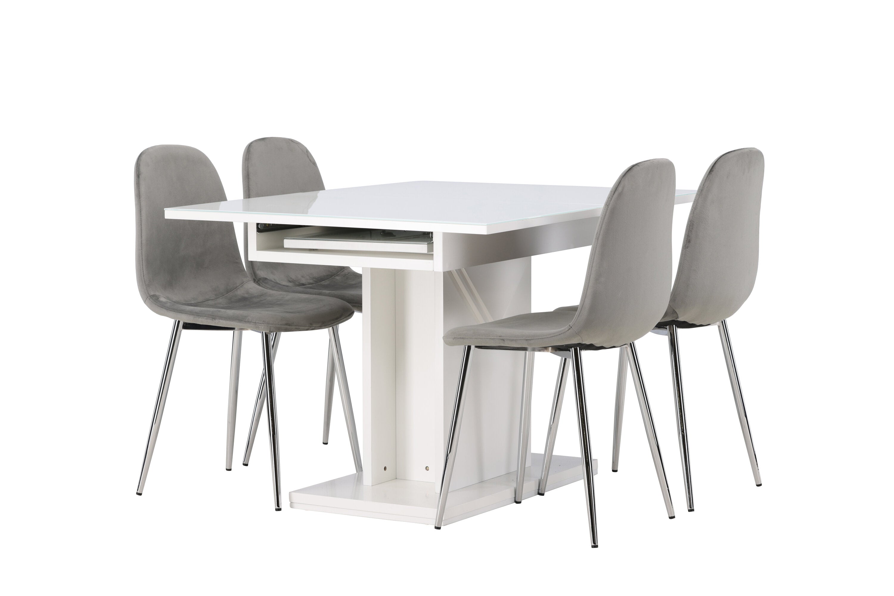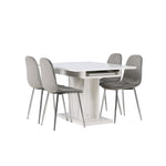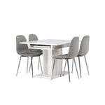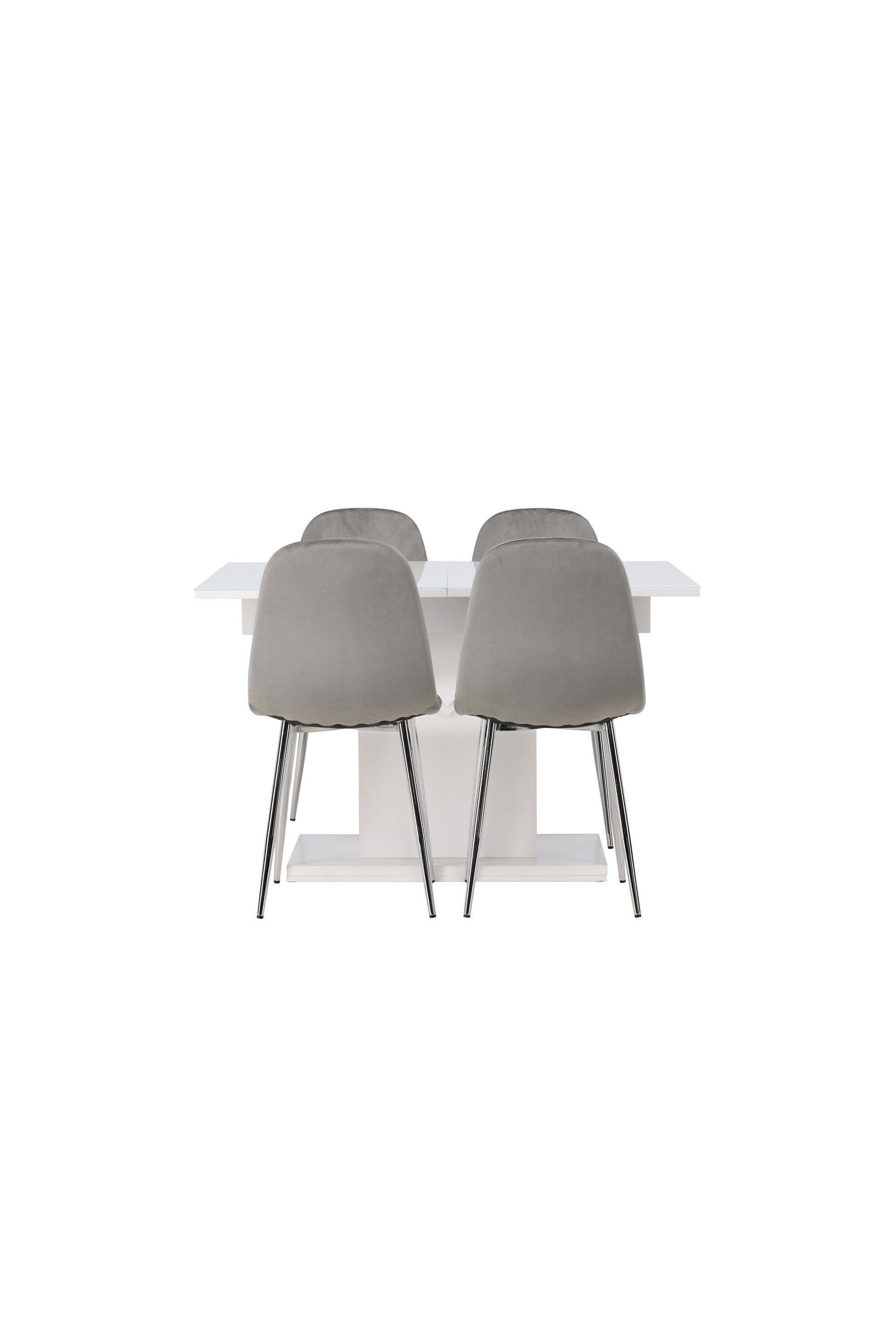 Jídelní stůl Pluto 120/160*90- Bílá / MDF sklo +Jídelní židle Eva - Světle šedá / Světle šedá Velvet _4
