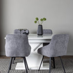 Společně s šedými židlemi ze série Rosie je jídelní set kompletní. Tyto nádherné židle ve skandinávském designu dodají vašemu jídelnímu stolu moderní nádech. Celočalouněný sedák v šedé látce a mírně rozšířené černé kovové nohy židle vytvářejí dokonalou rovnováhu mezi pohodlím a stylem. Měkké polstrování v sedadle zve vás a vaše hosty k odpočinku a vychutnání si dlouhých a příjemných večeří.
