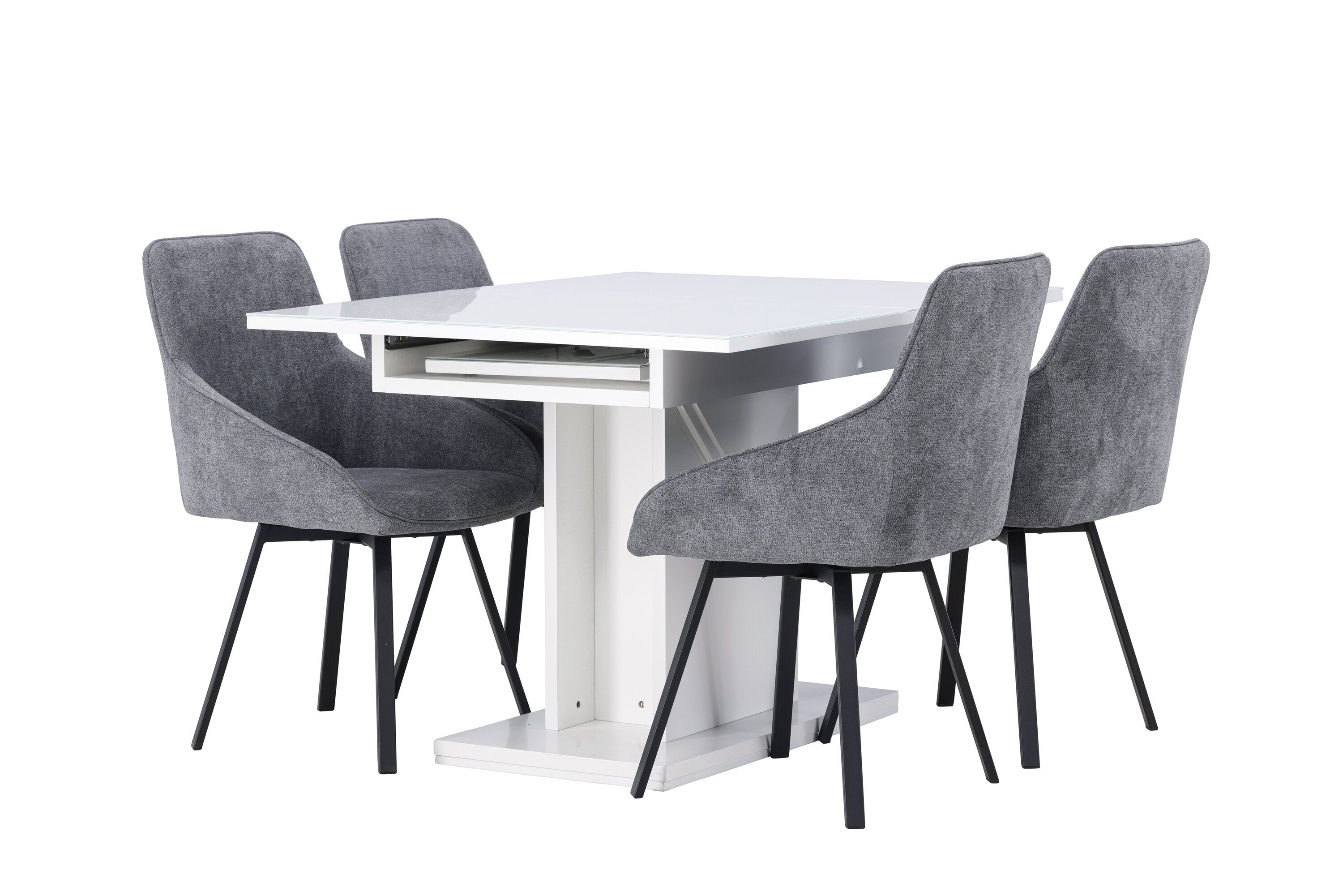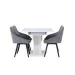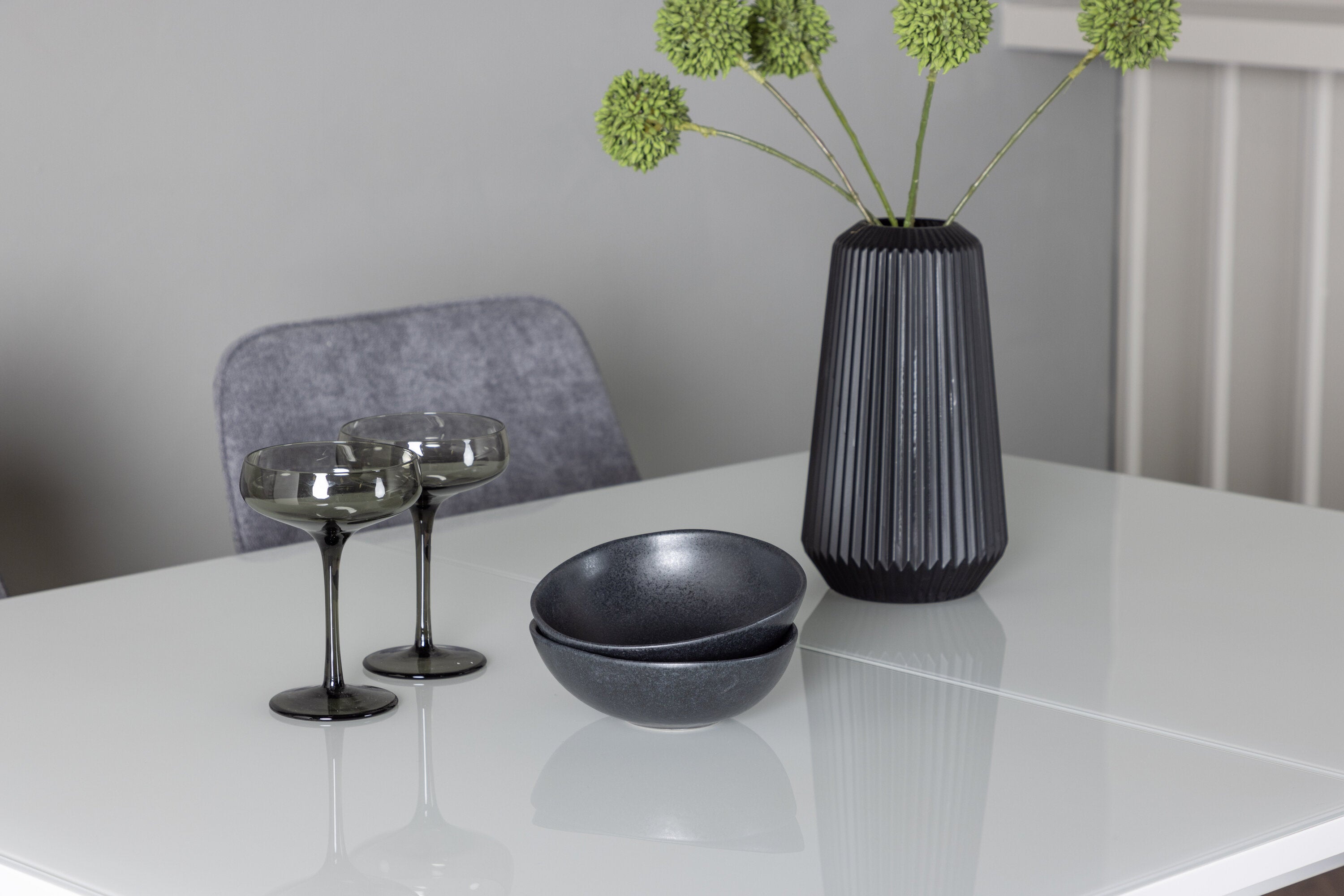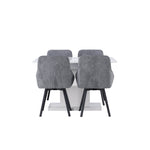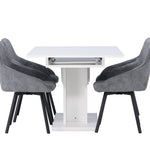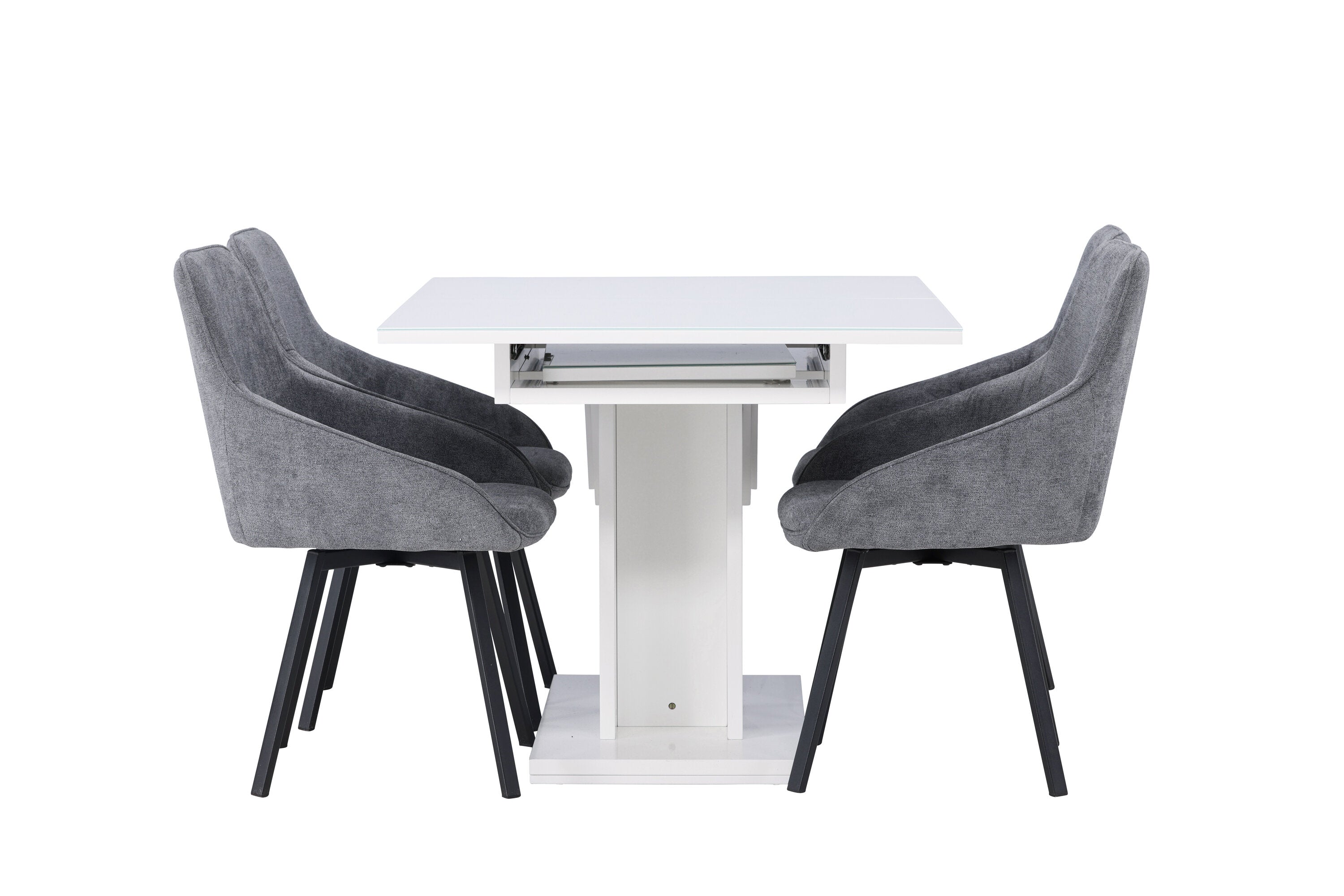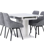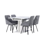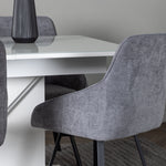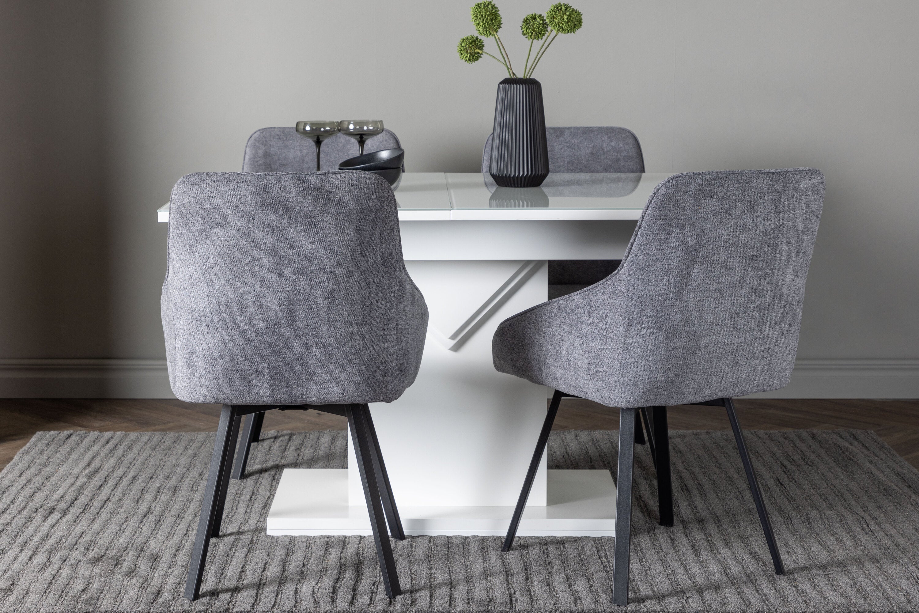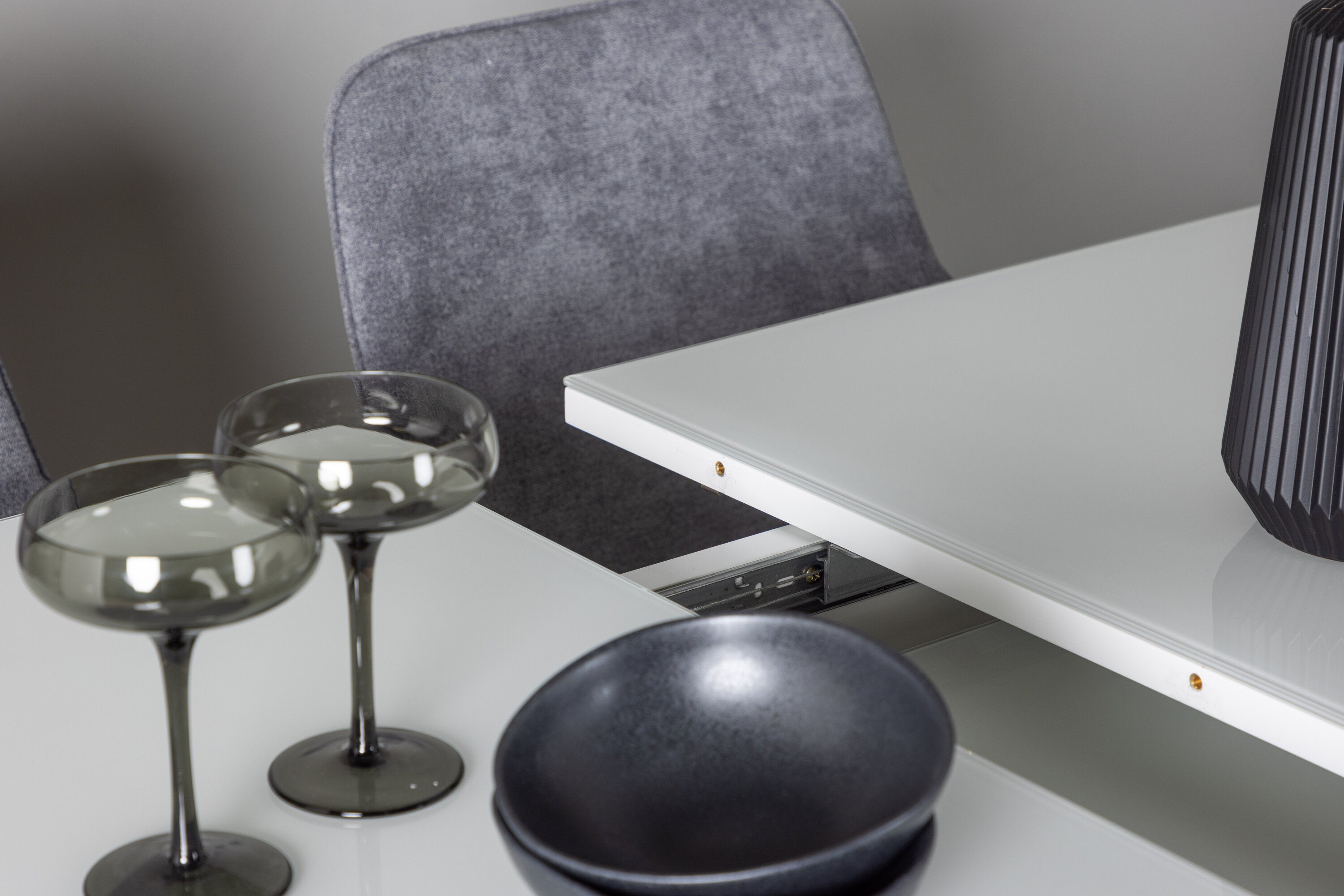 Jídelní stůl Pluto 120/160*90- Bílá / Sklo MDF + Jídelní židle Rosie - Černá / Tmavě šedá látka _4