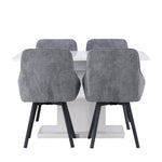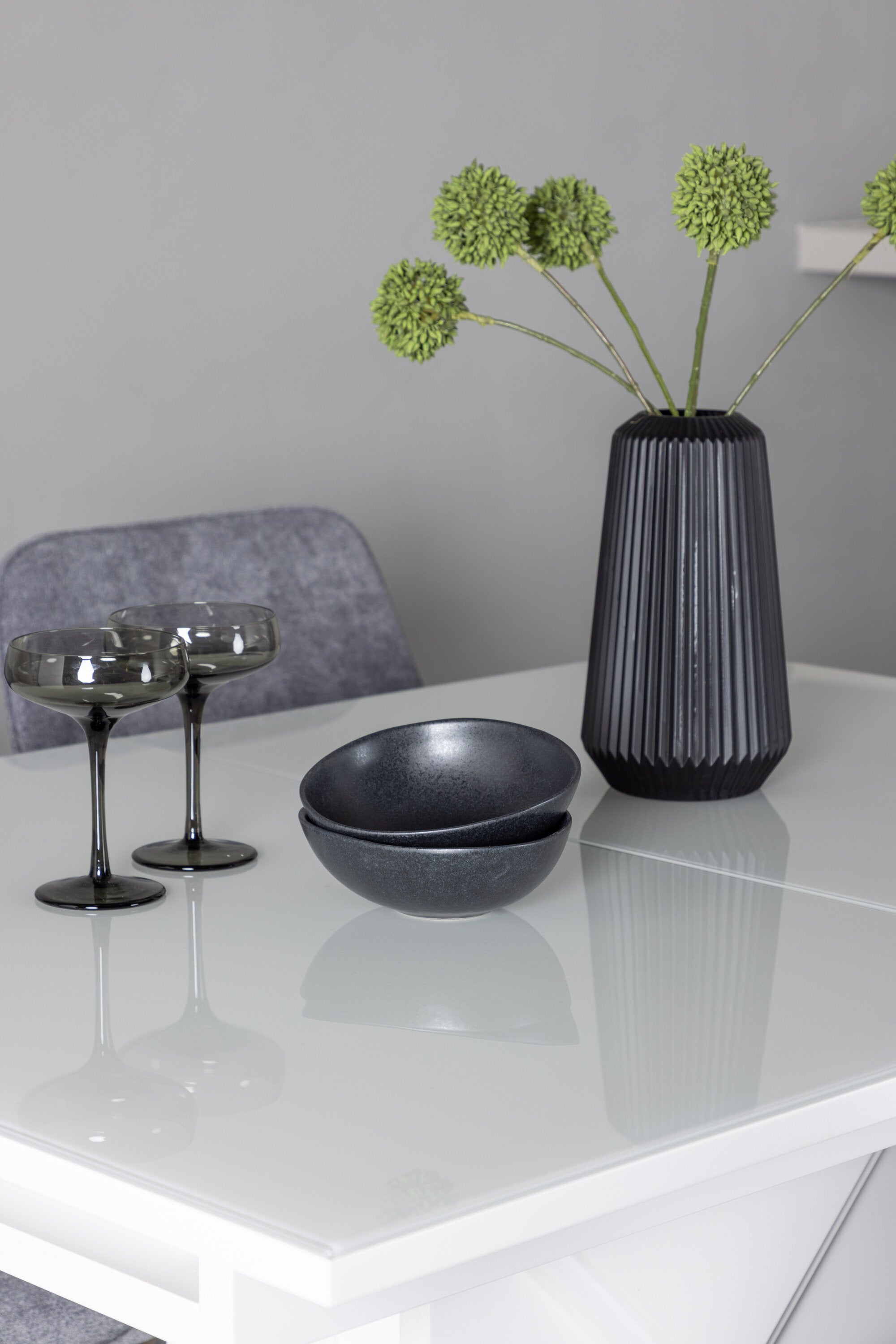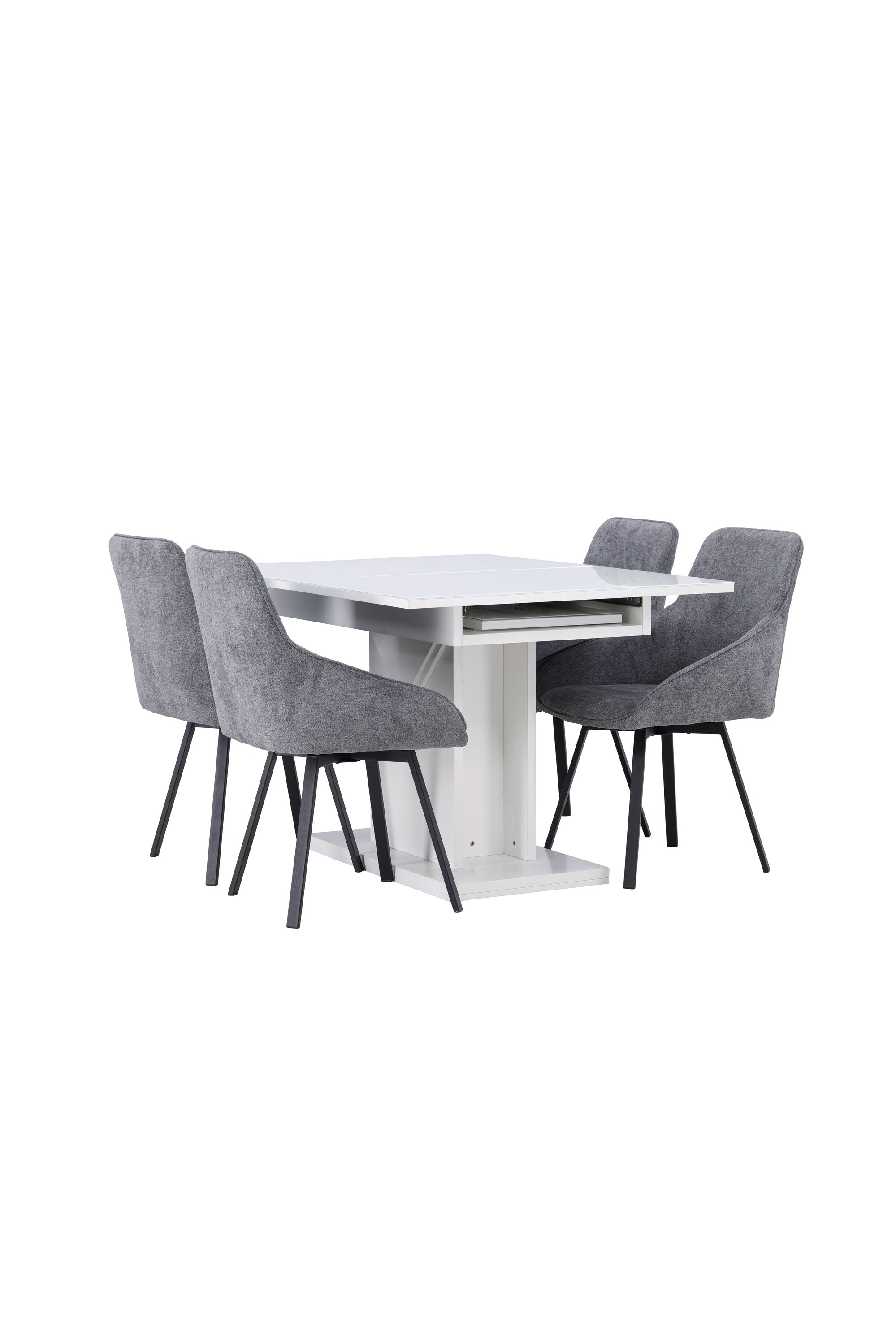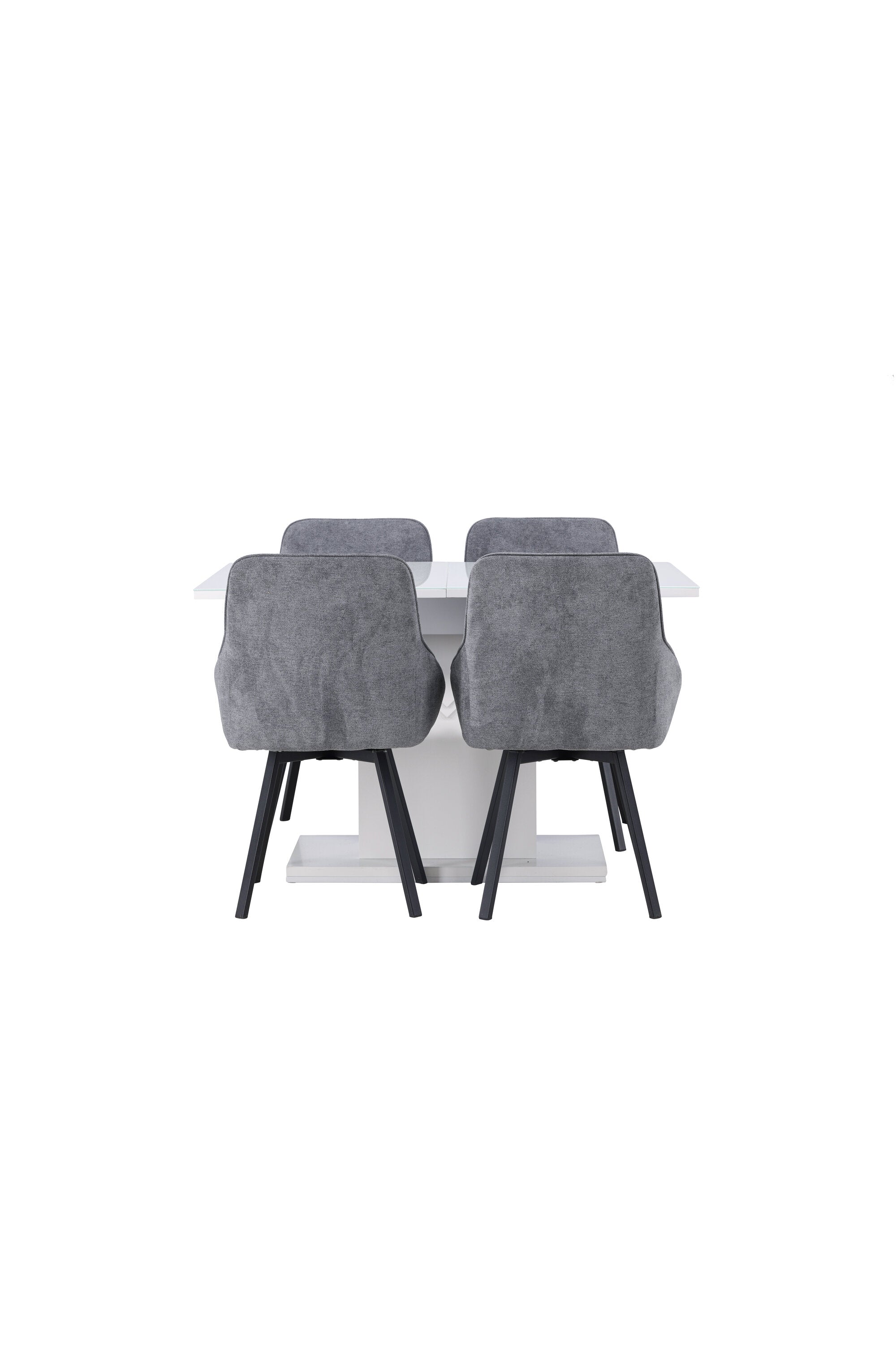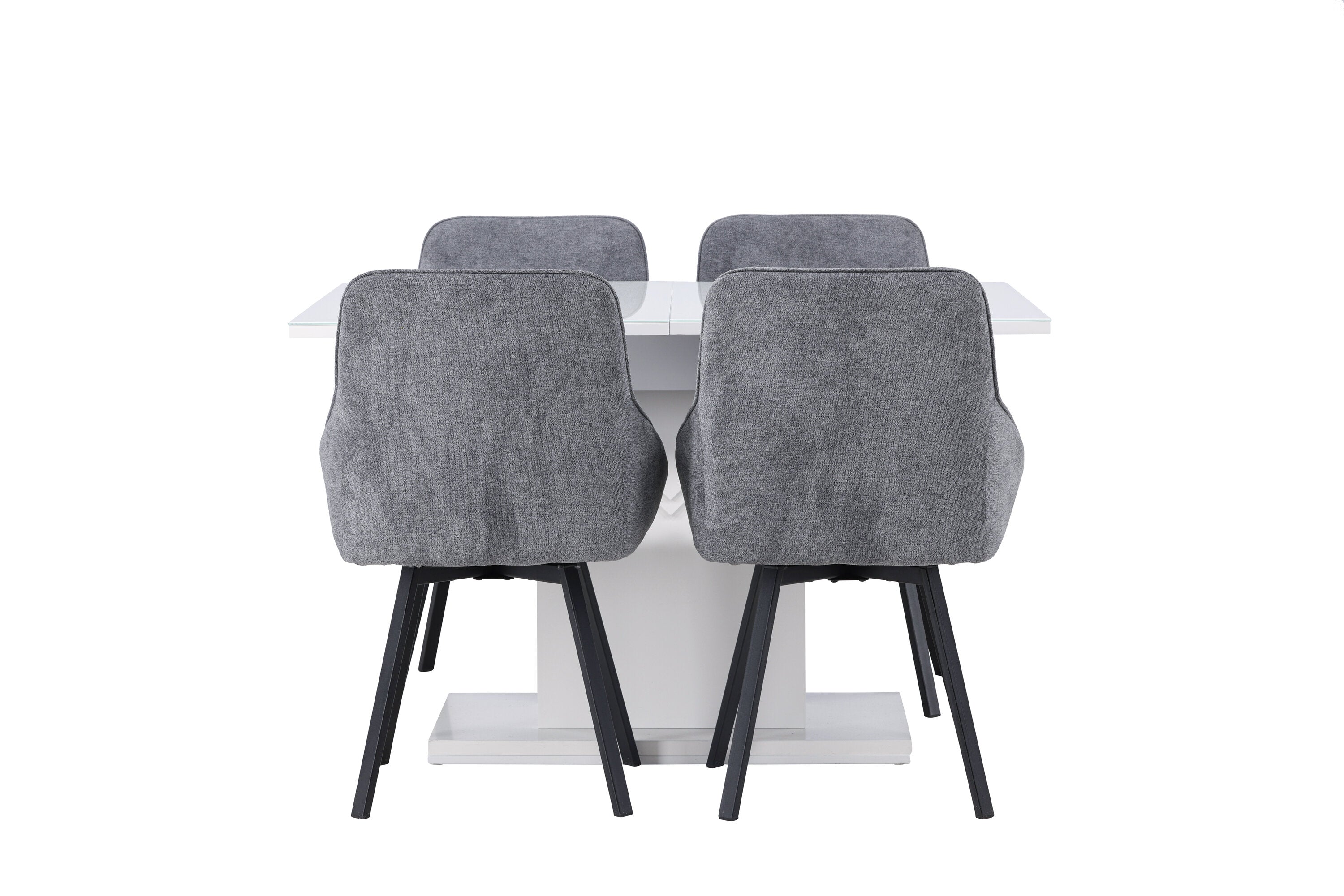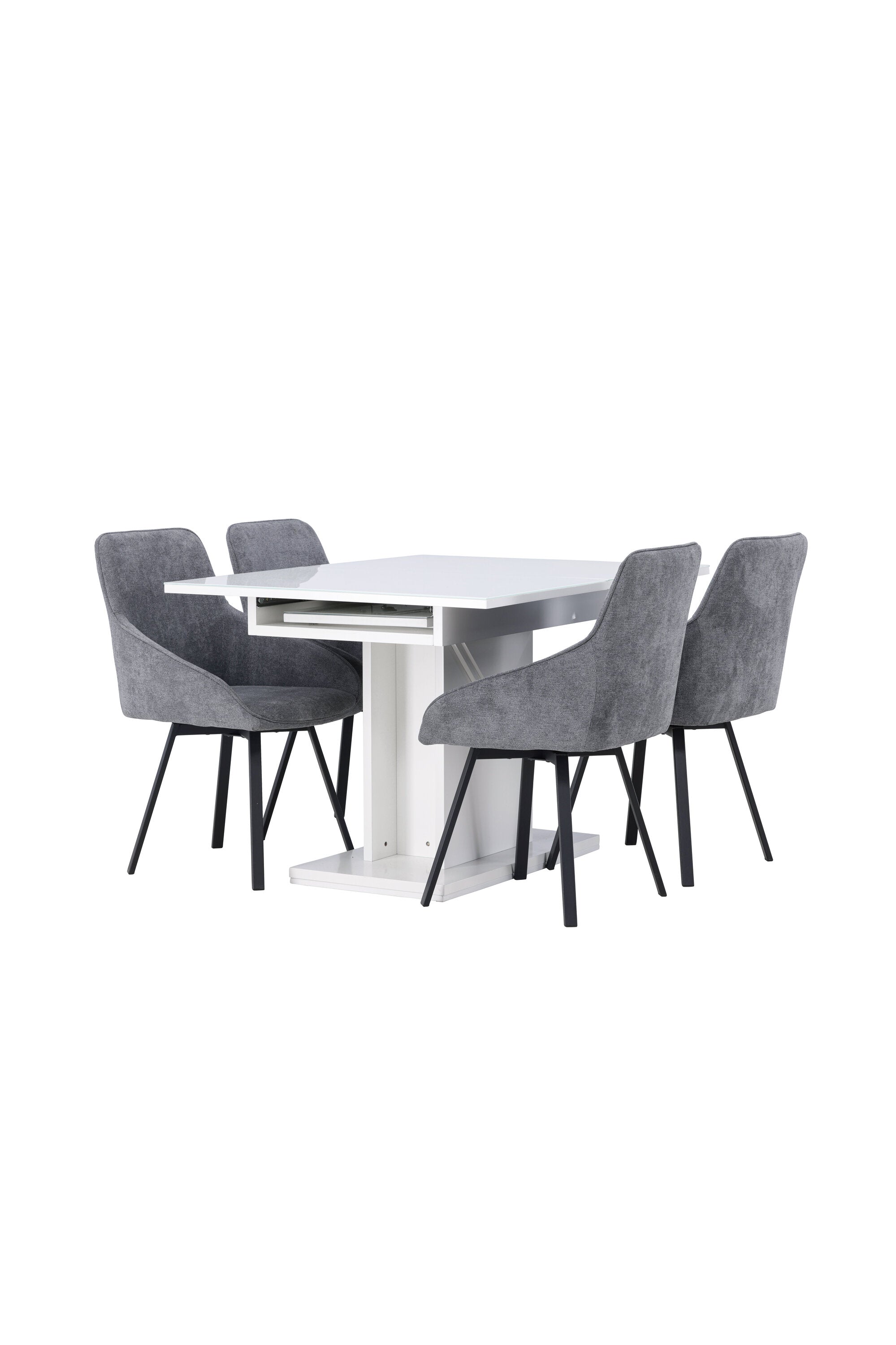 Jídelní stůl Pluto 120/160*90- Bílá / Sklo MDF + Jídelní židle Rosie - Černá / Tmavě šedá látka _4