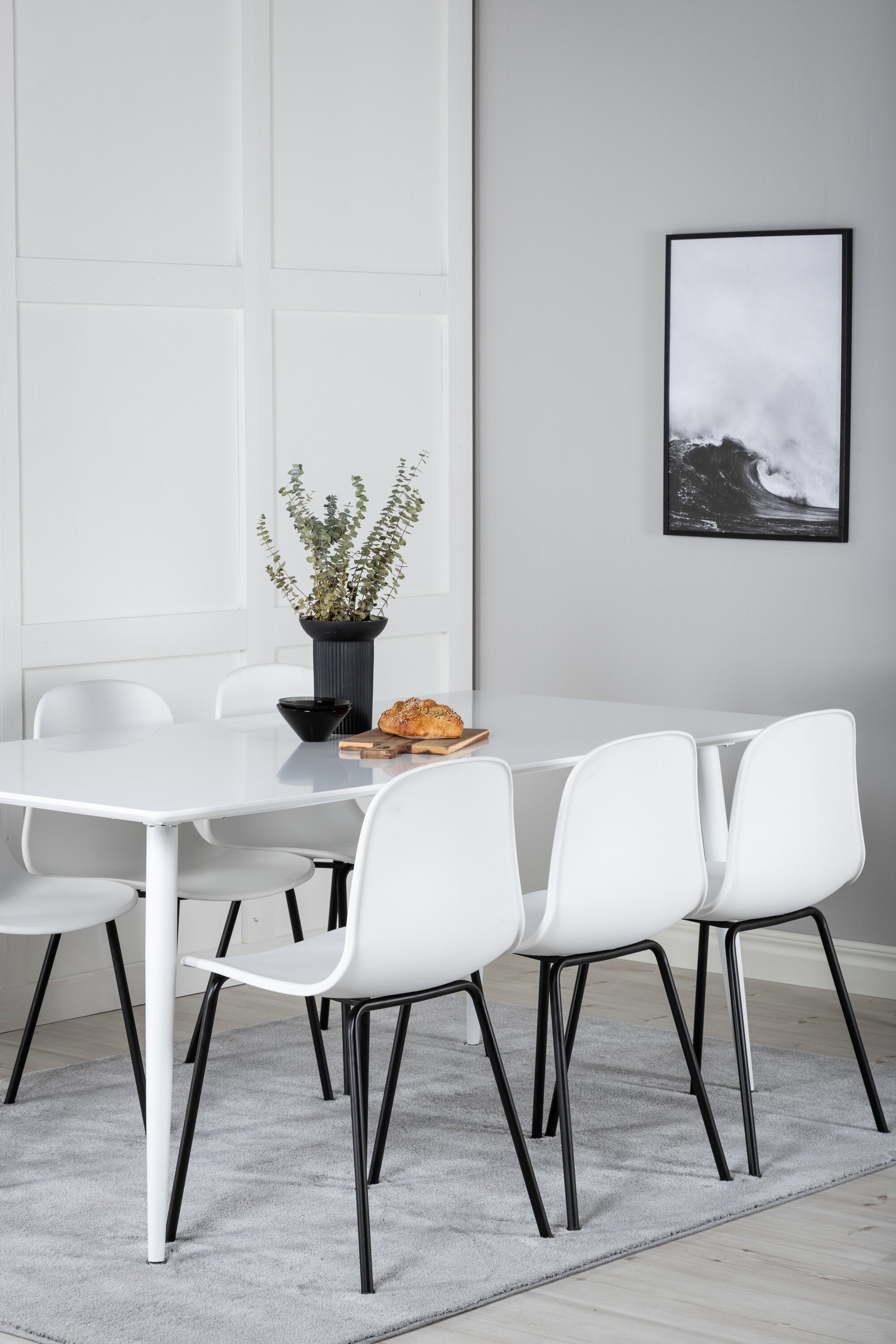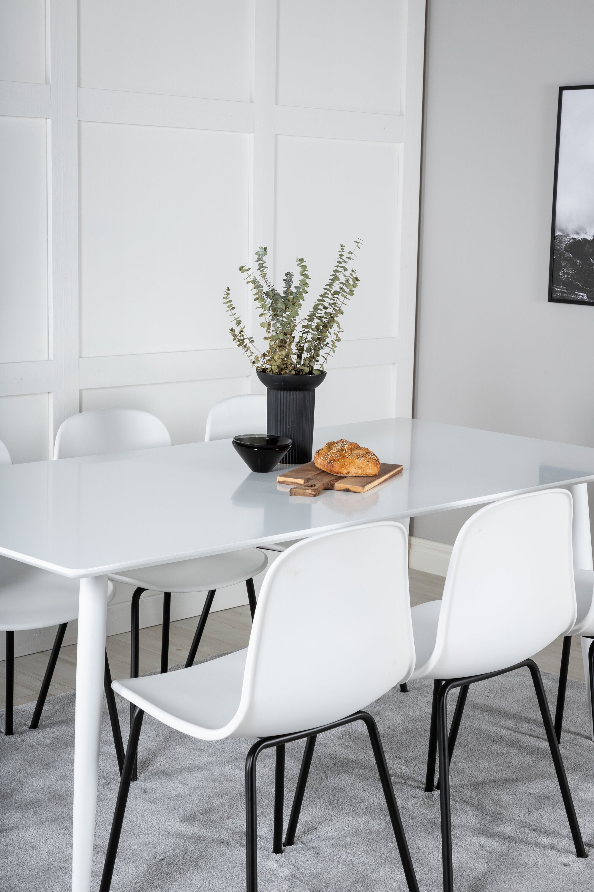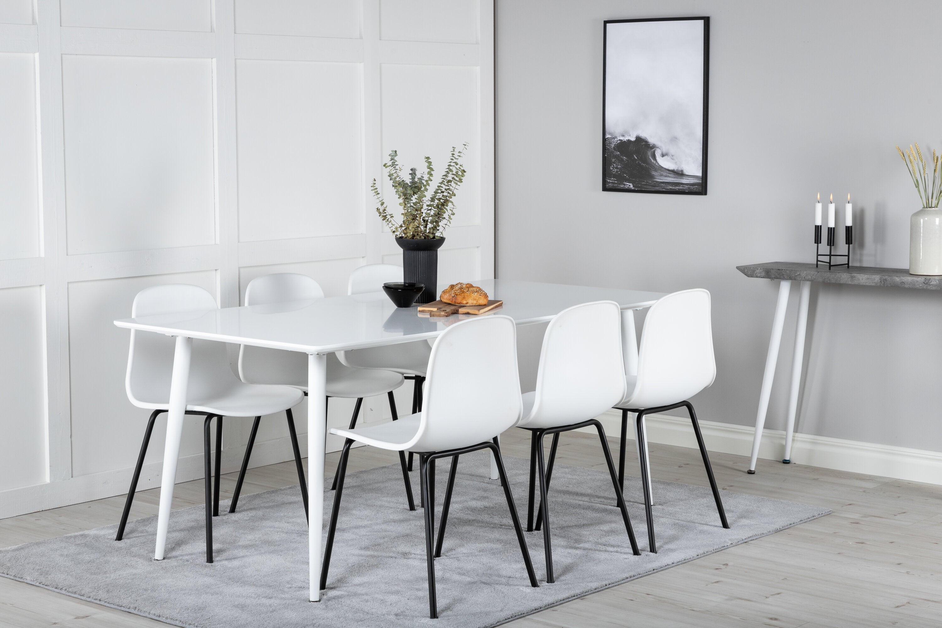 Jídelní stůl Polar 180 cm - Bílá deska / Bílé nohy+Arktická jídelní židle - Černé nohy - Bílý Plast_6