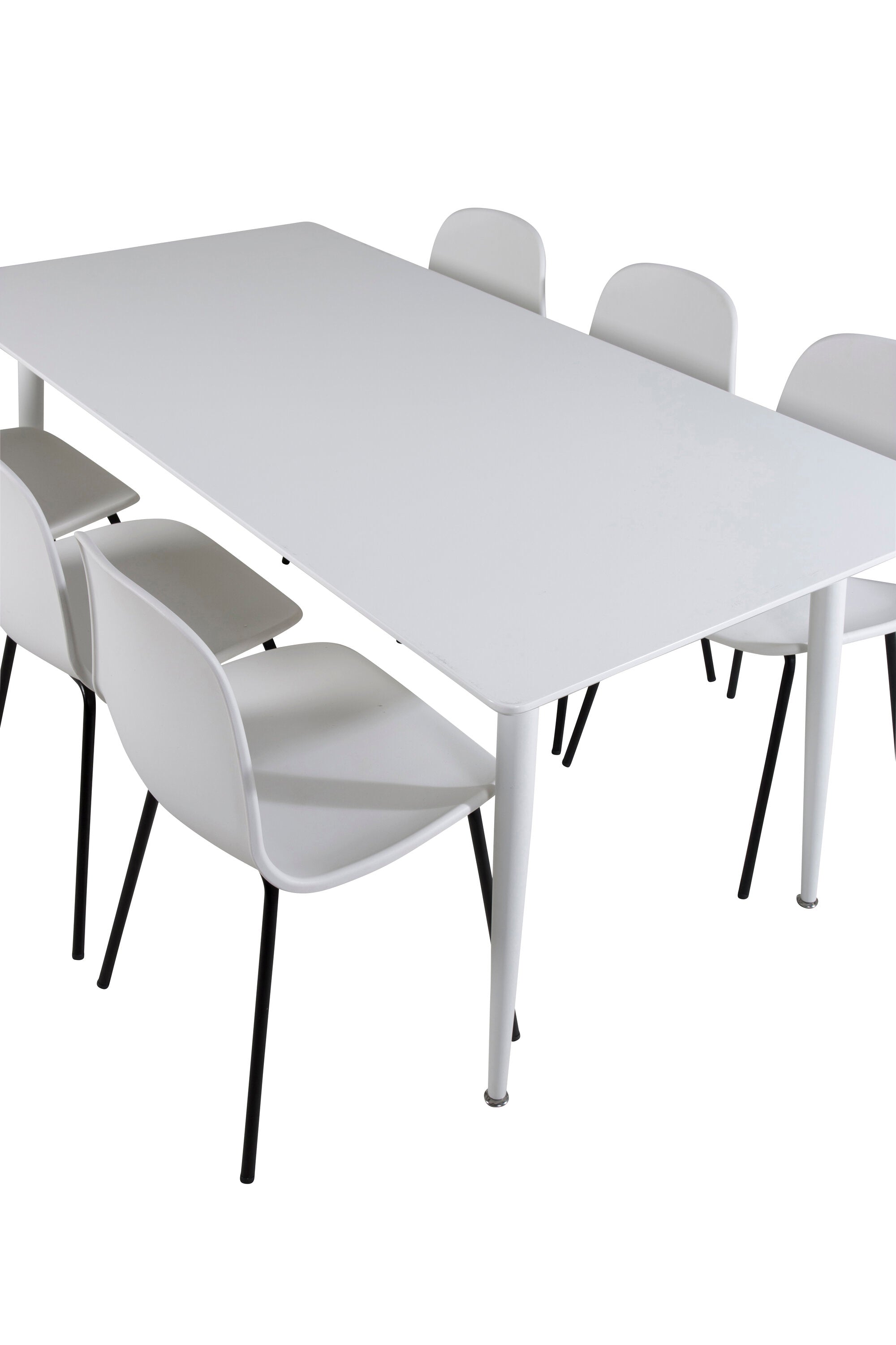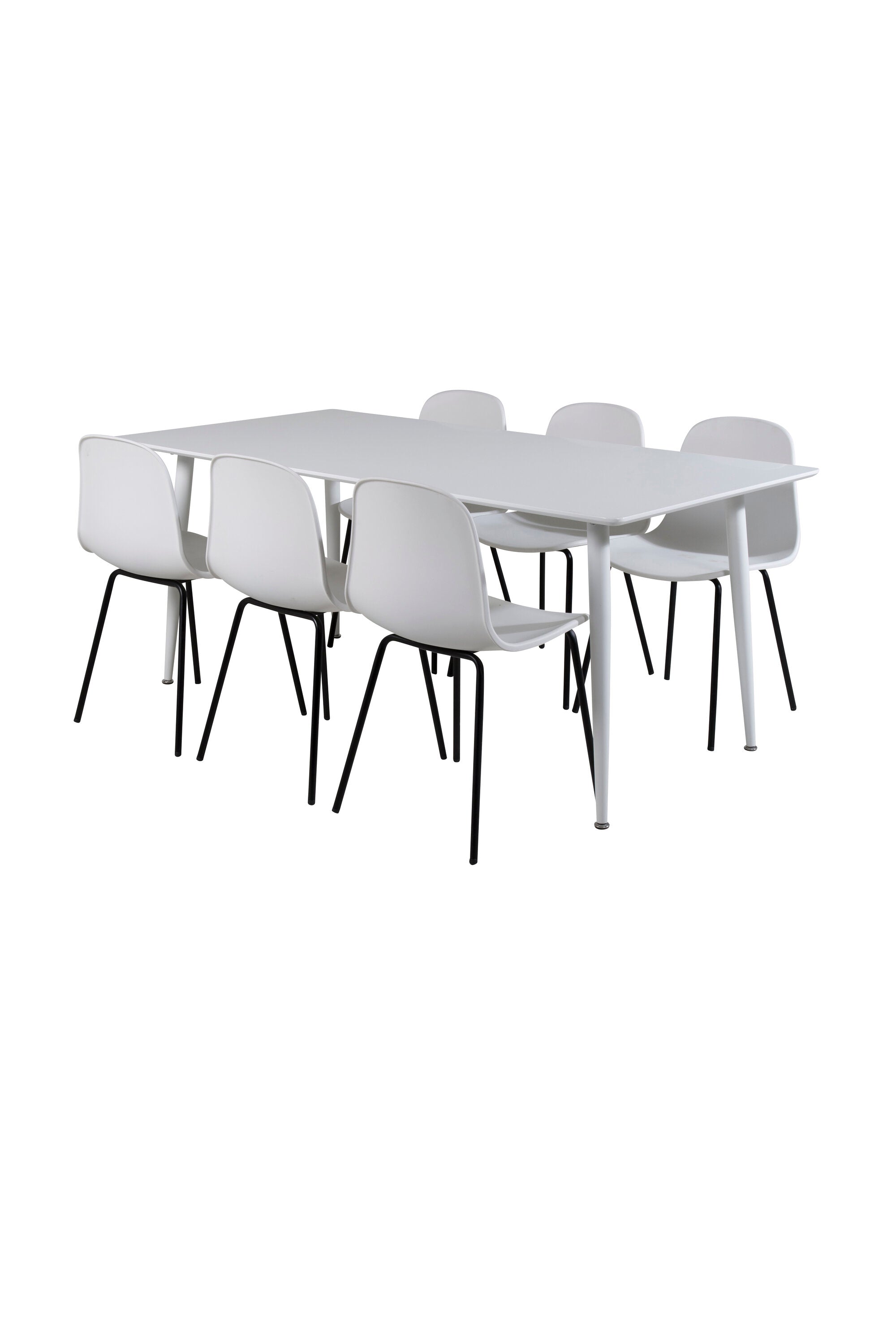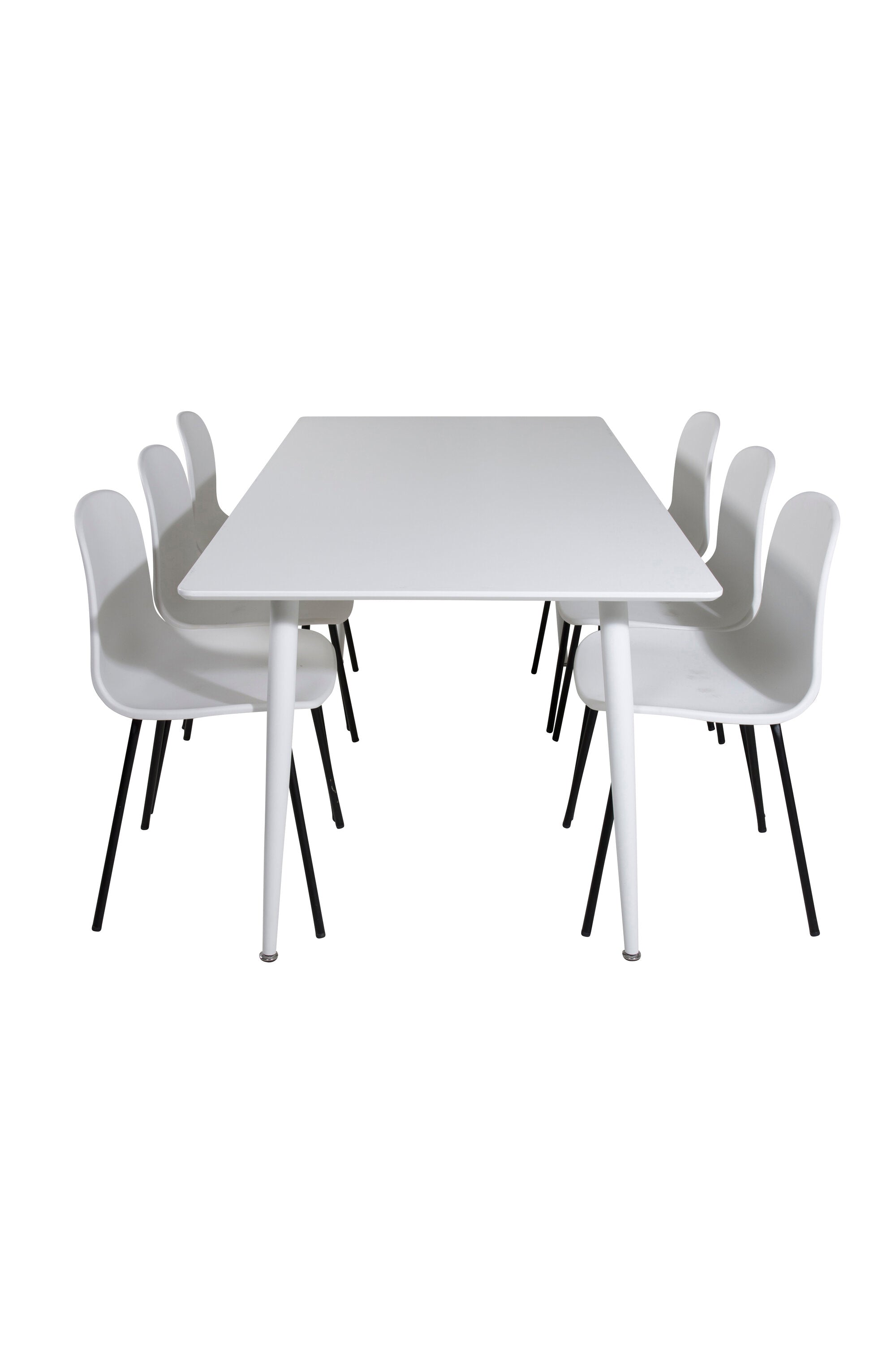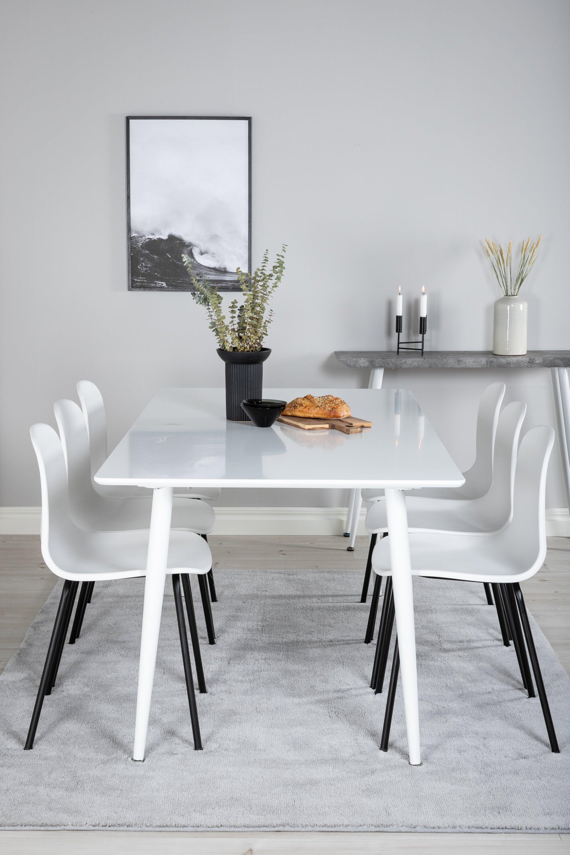 Jídelní stůl Polar 180 cm - Bílá deska / Bílé nohy+Arktická jídelní židle - Černé nohy - Bílý Plast_6