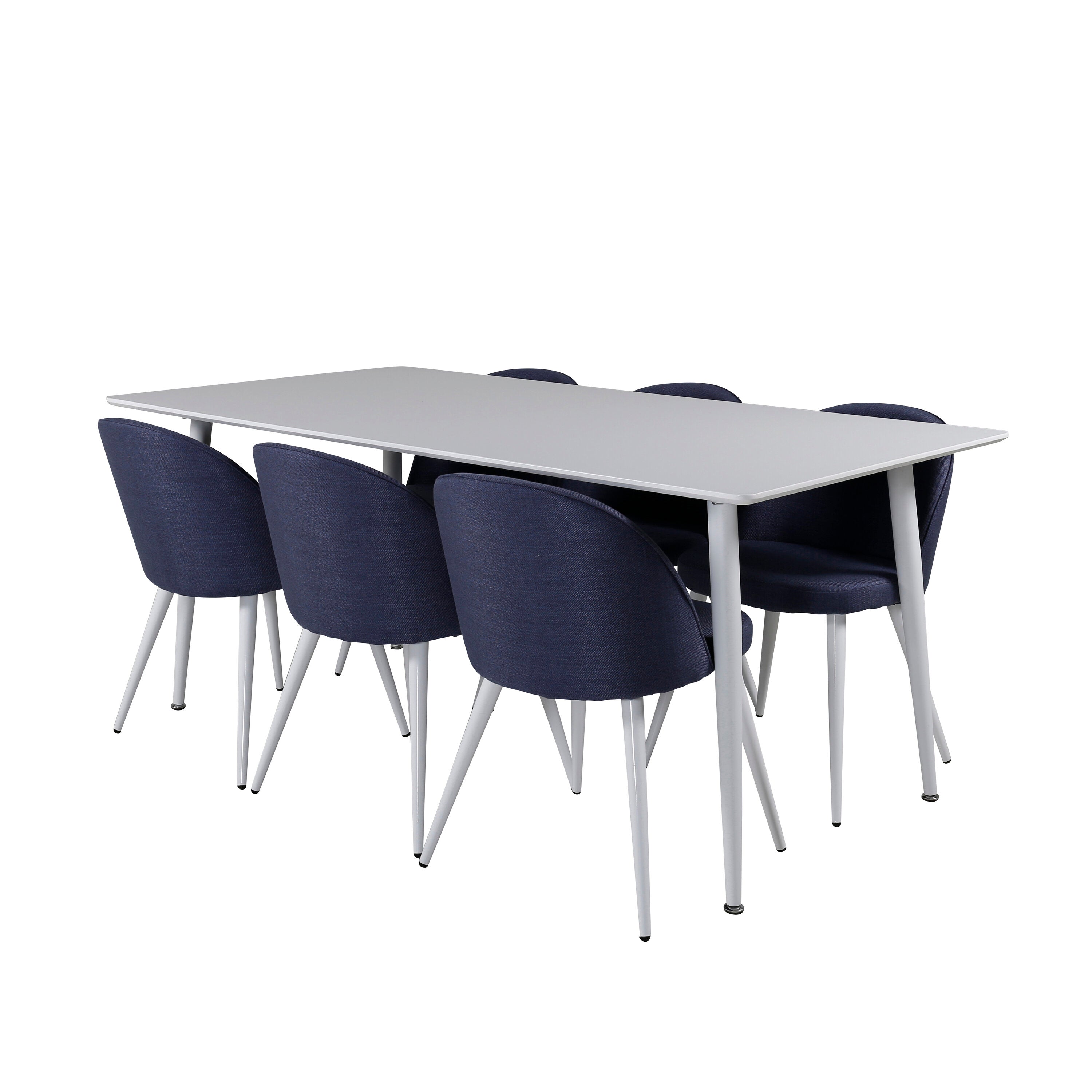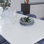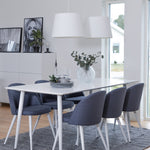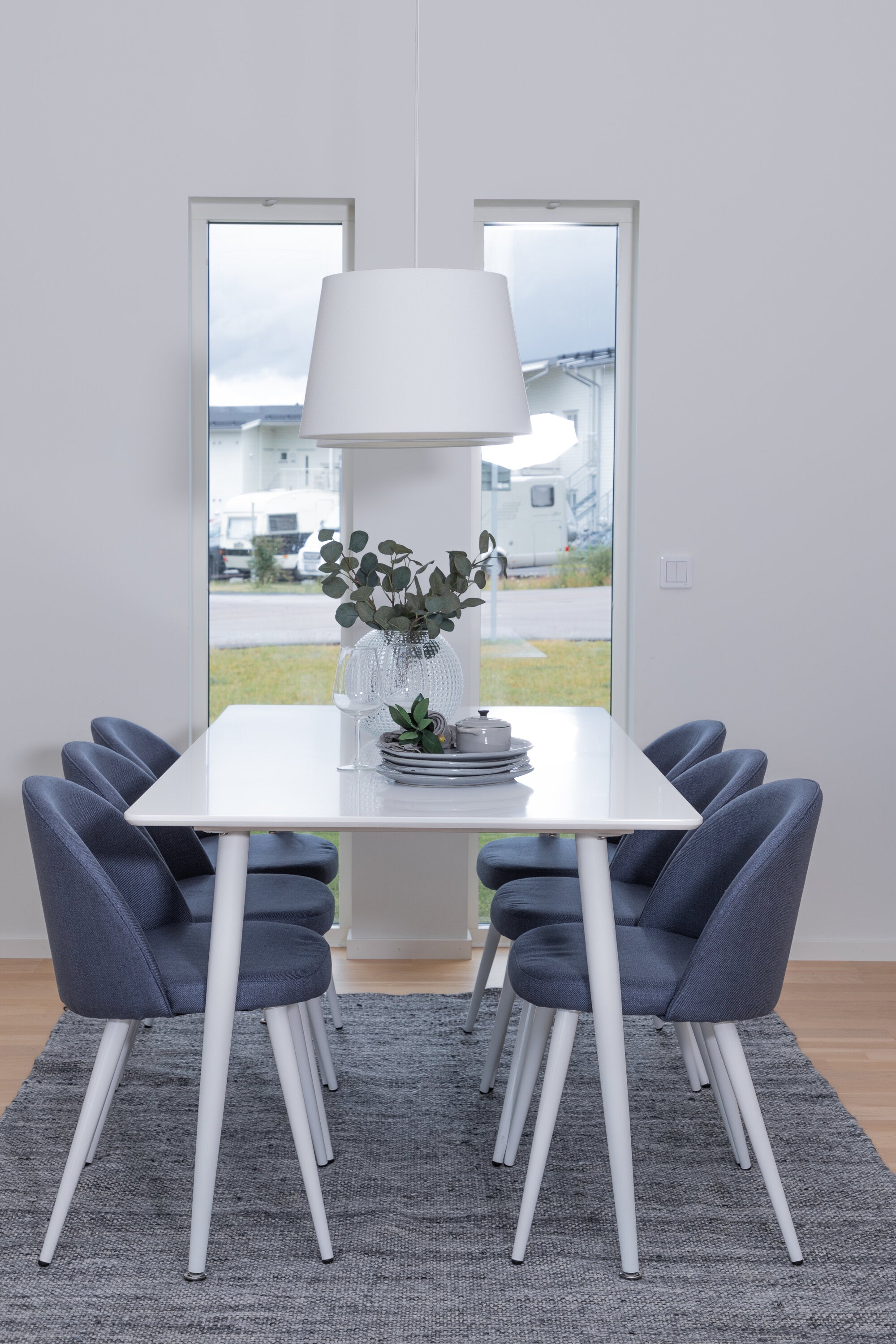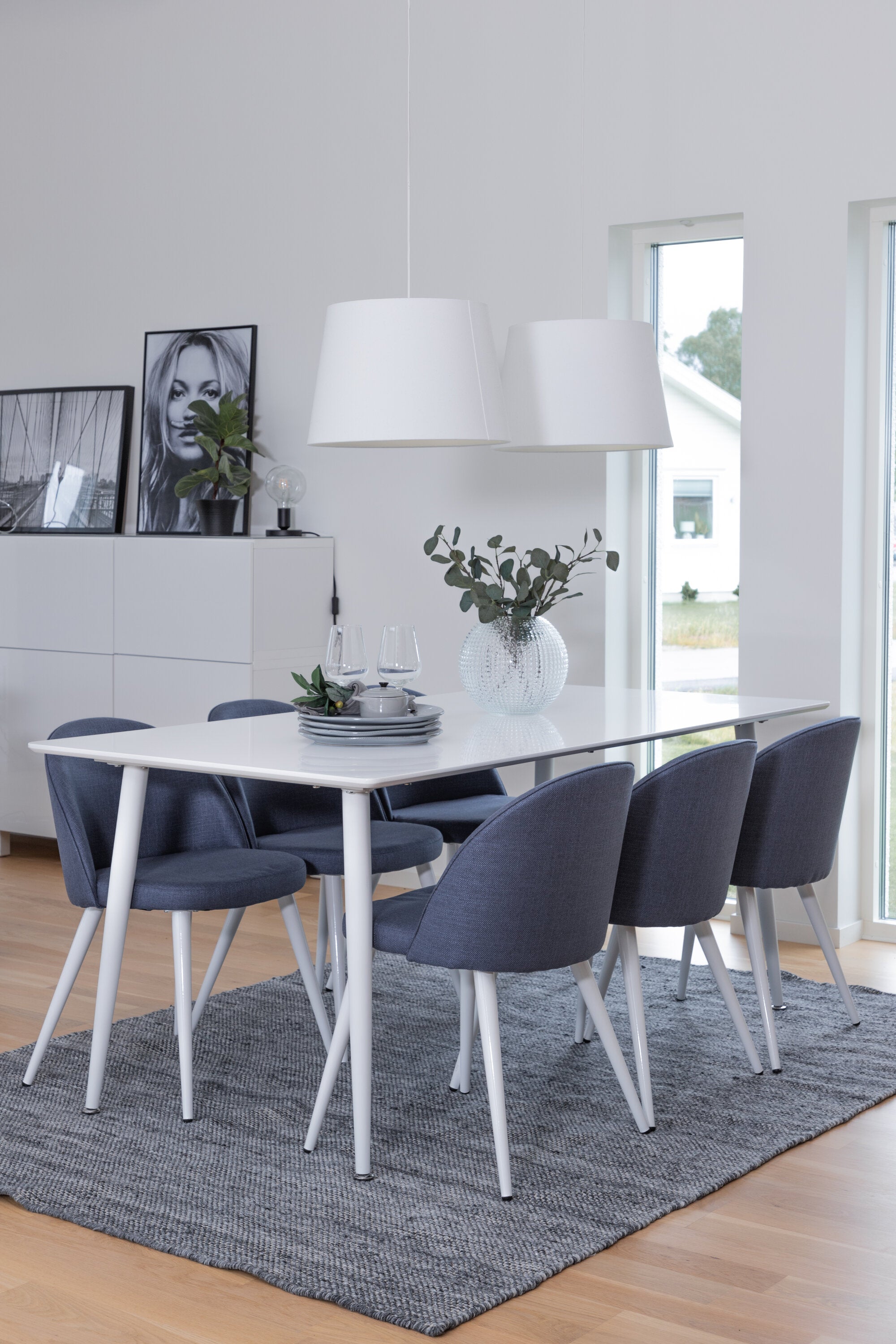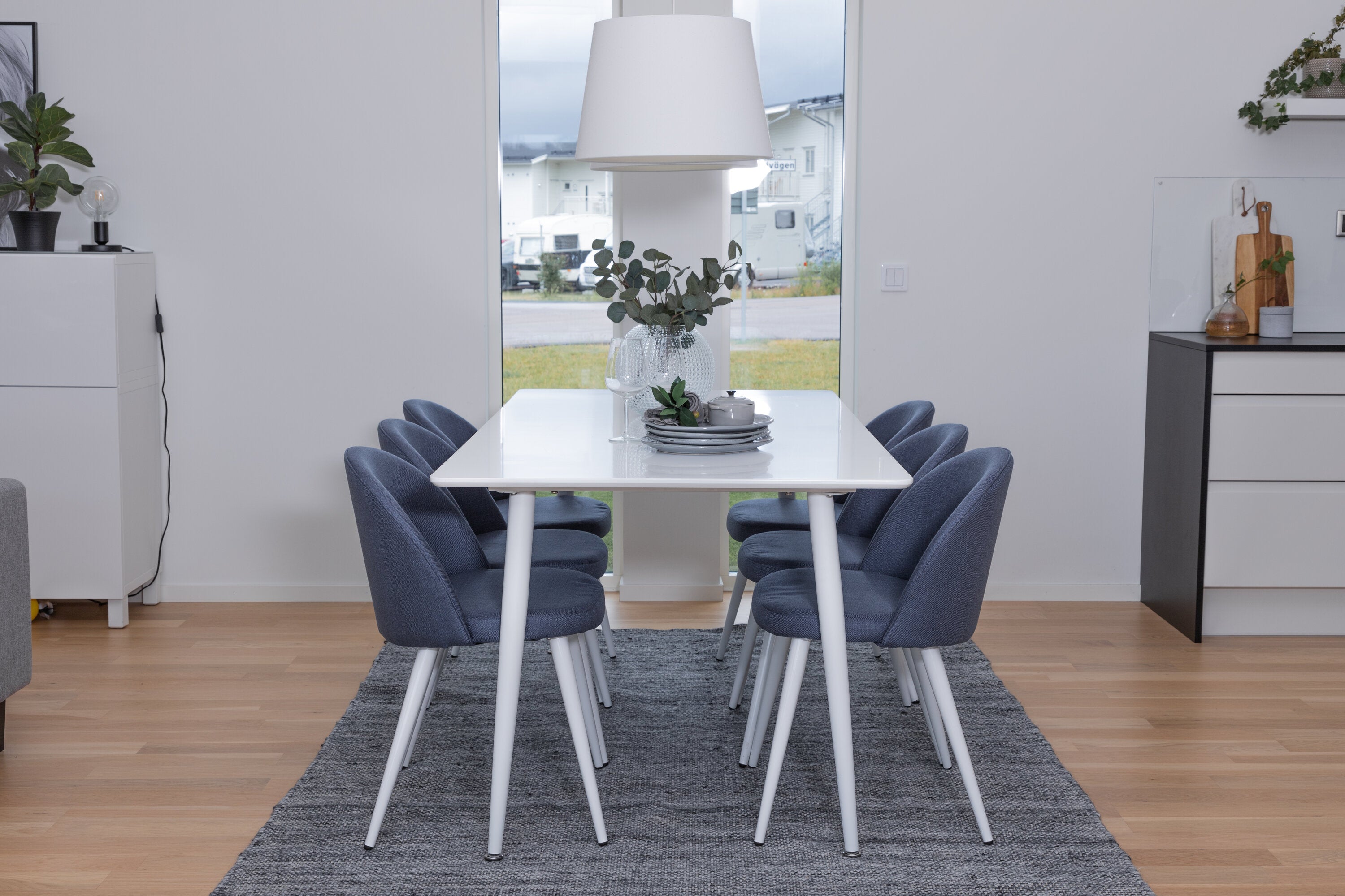 Nechte toto krásně sladěné jídlo s moderním nádechem stát se přirozeným místem setkávání u vás doma. Jídelní židle Velvet mají dobrý komfort a jídelní stůl Polar znamená, že se nemusíte bát, že všichni budou mít místo.