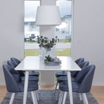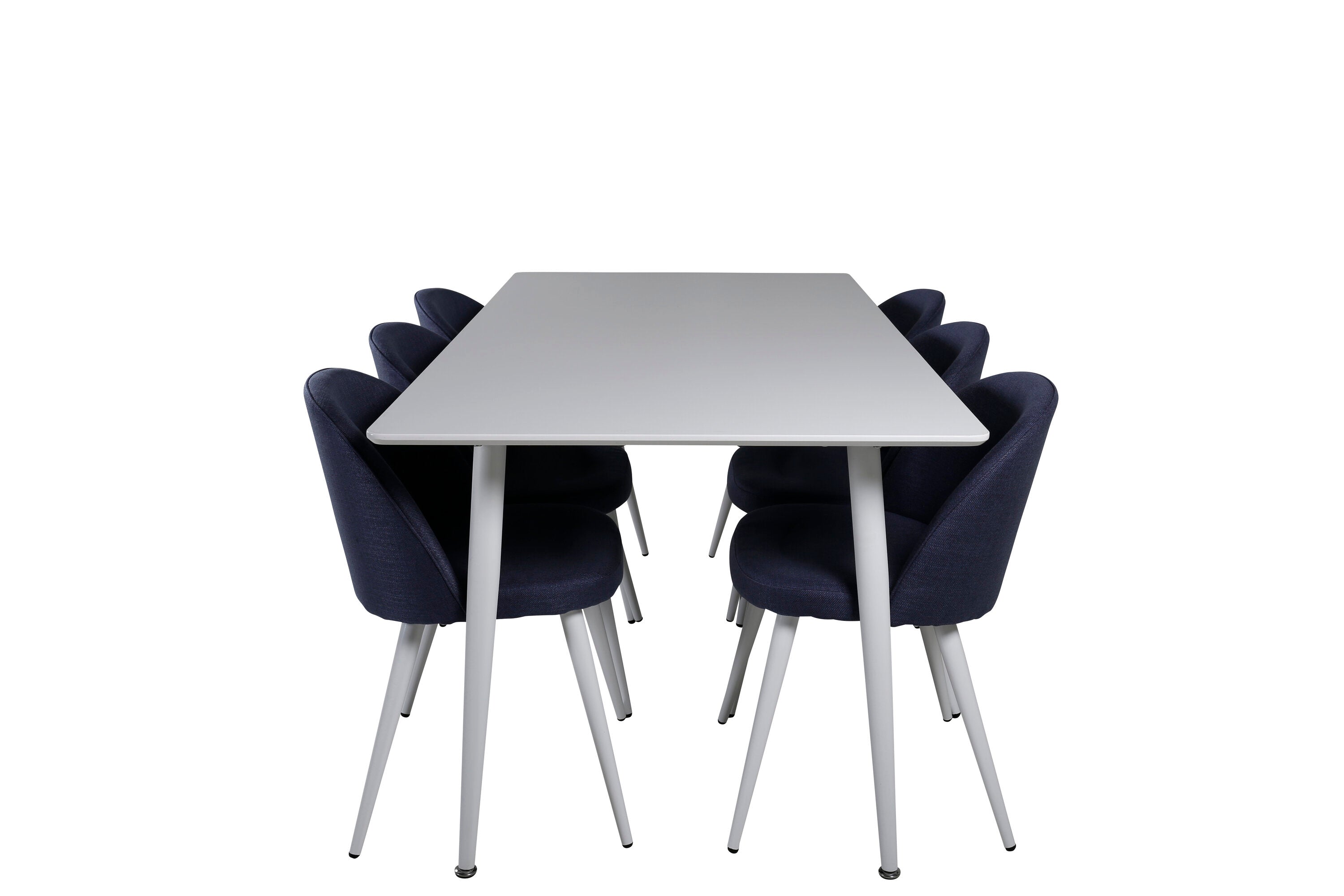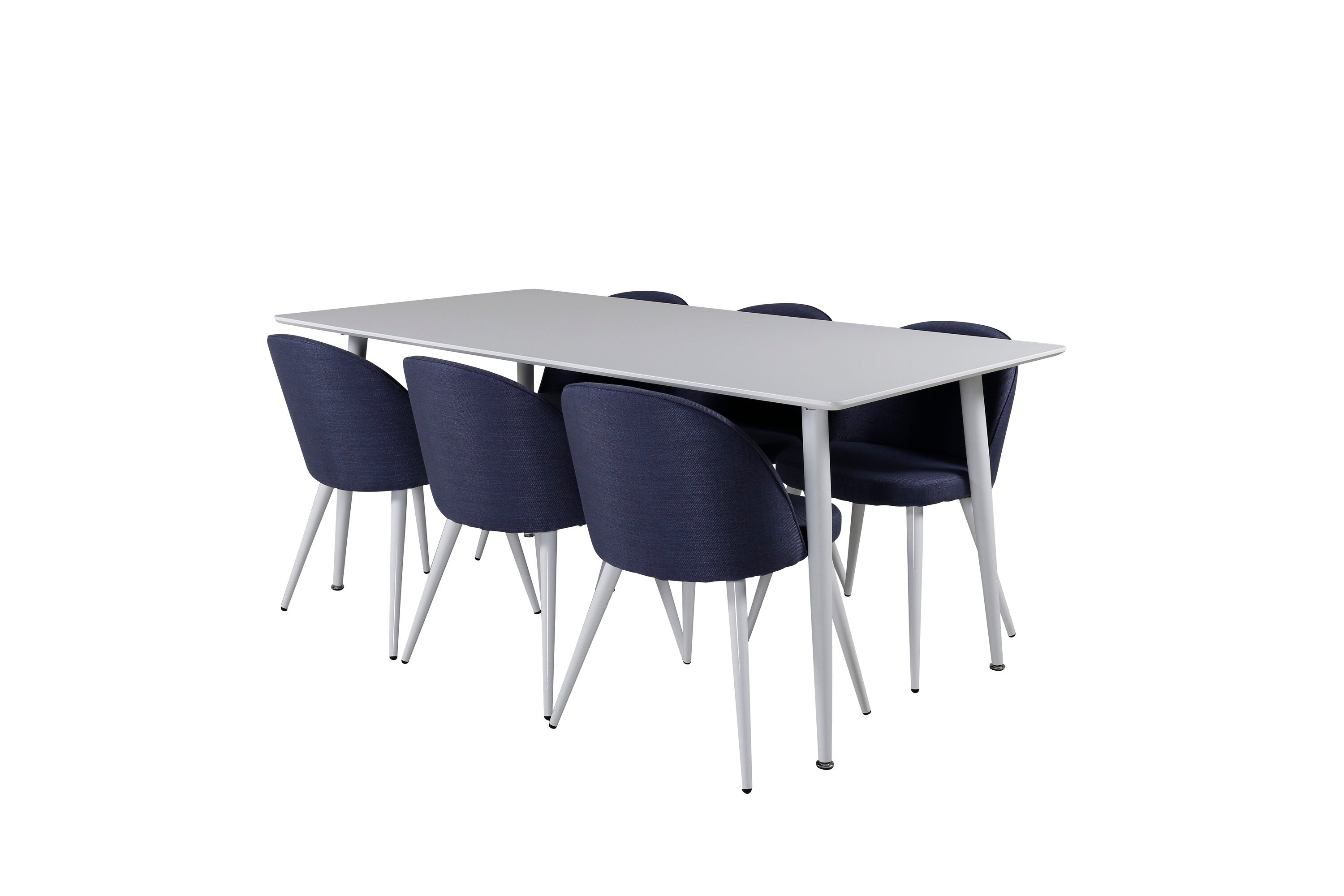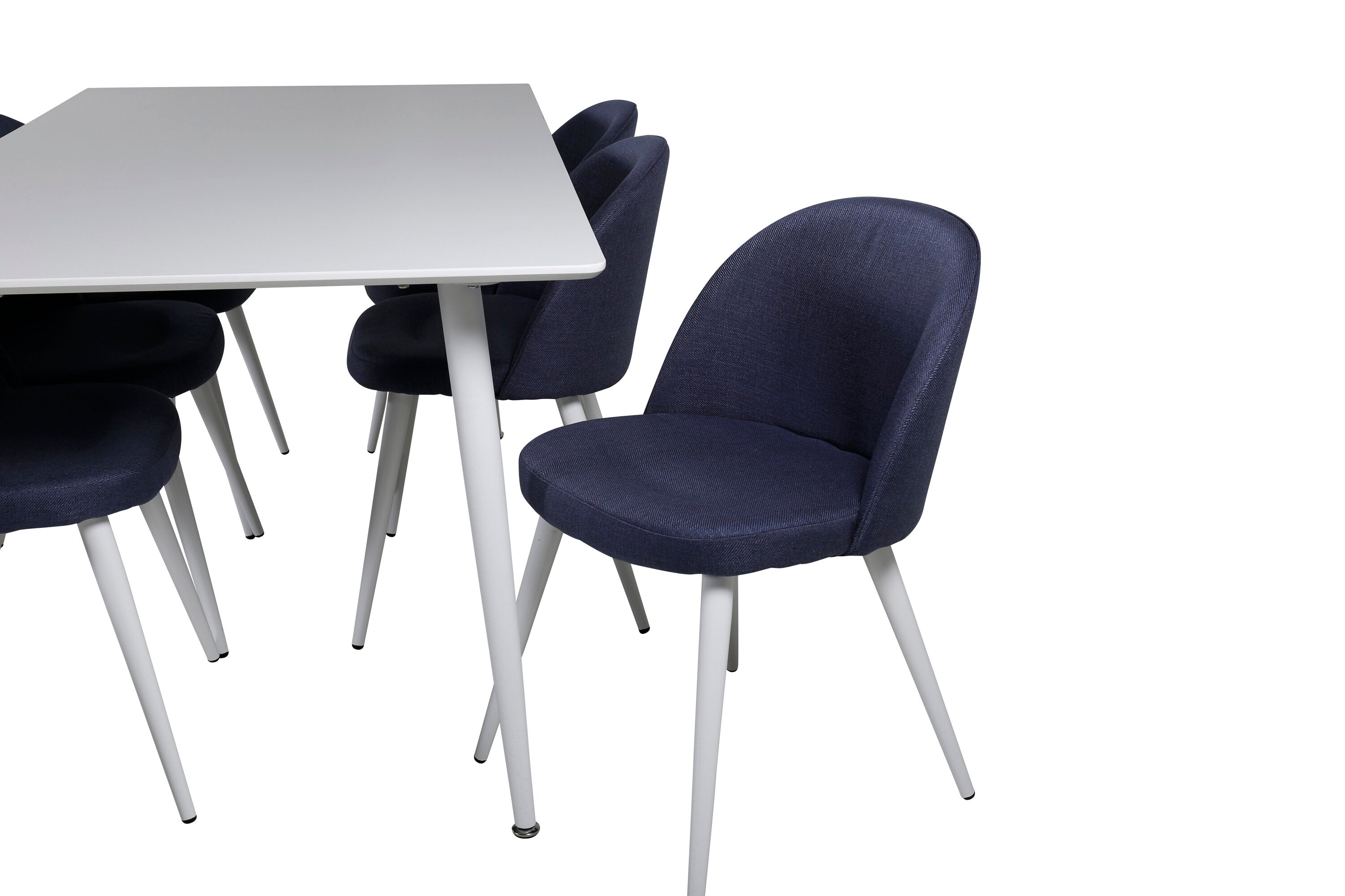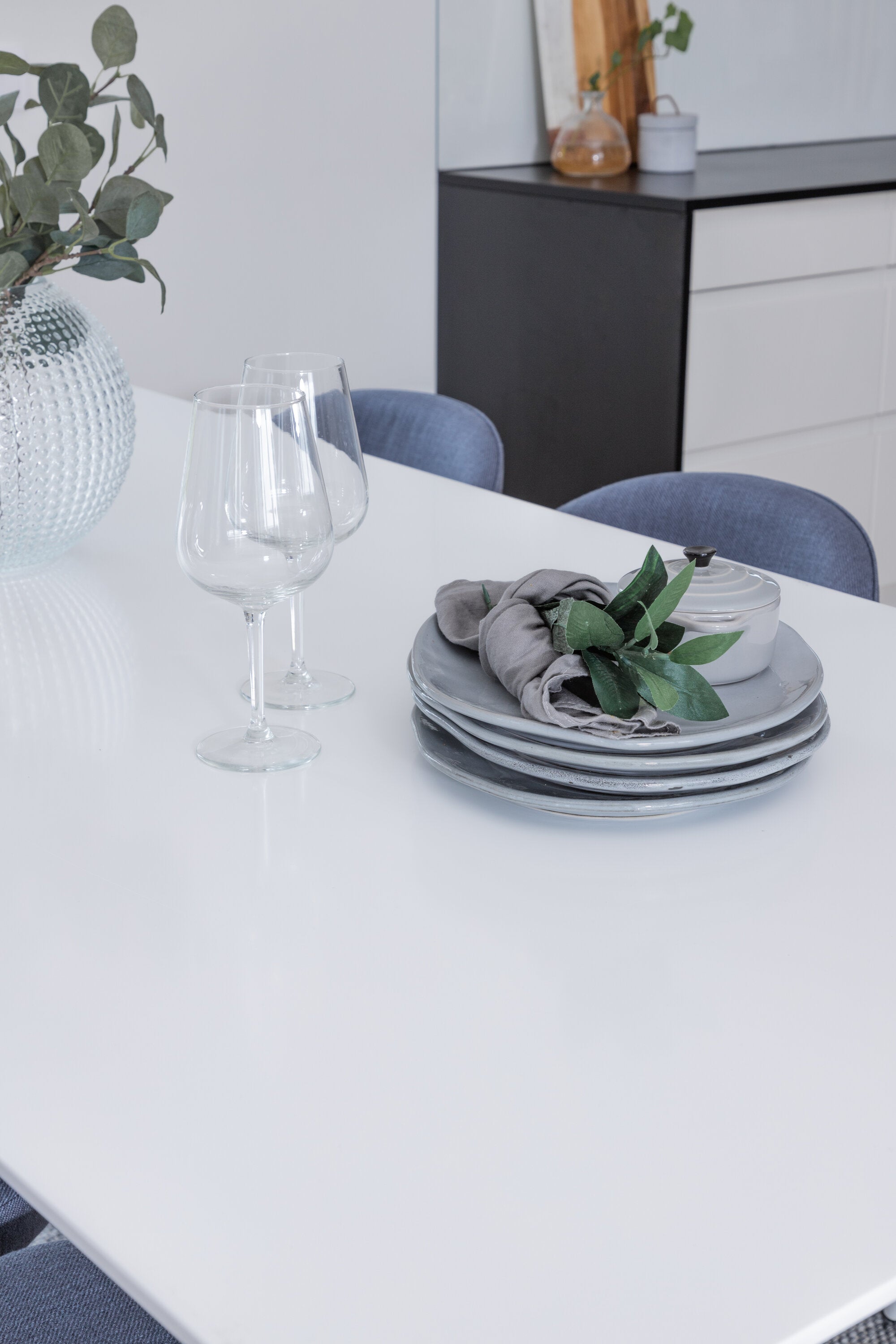 Nechte toto krásně sladěné jídlo s moderním nádechem stát se přirozeným místem setkávání u vás doma. Jídelní židle Velvet mají dobrý komfort a jídelní stůl Polar znamená, že se nemusíte bát, že všichni budou mít místo.