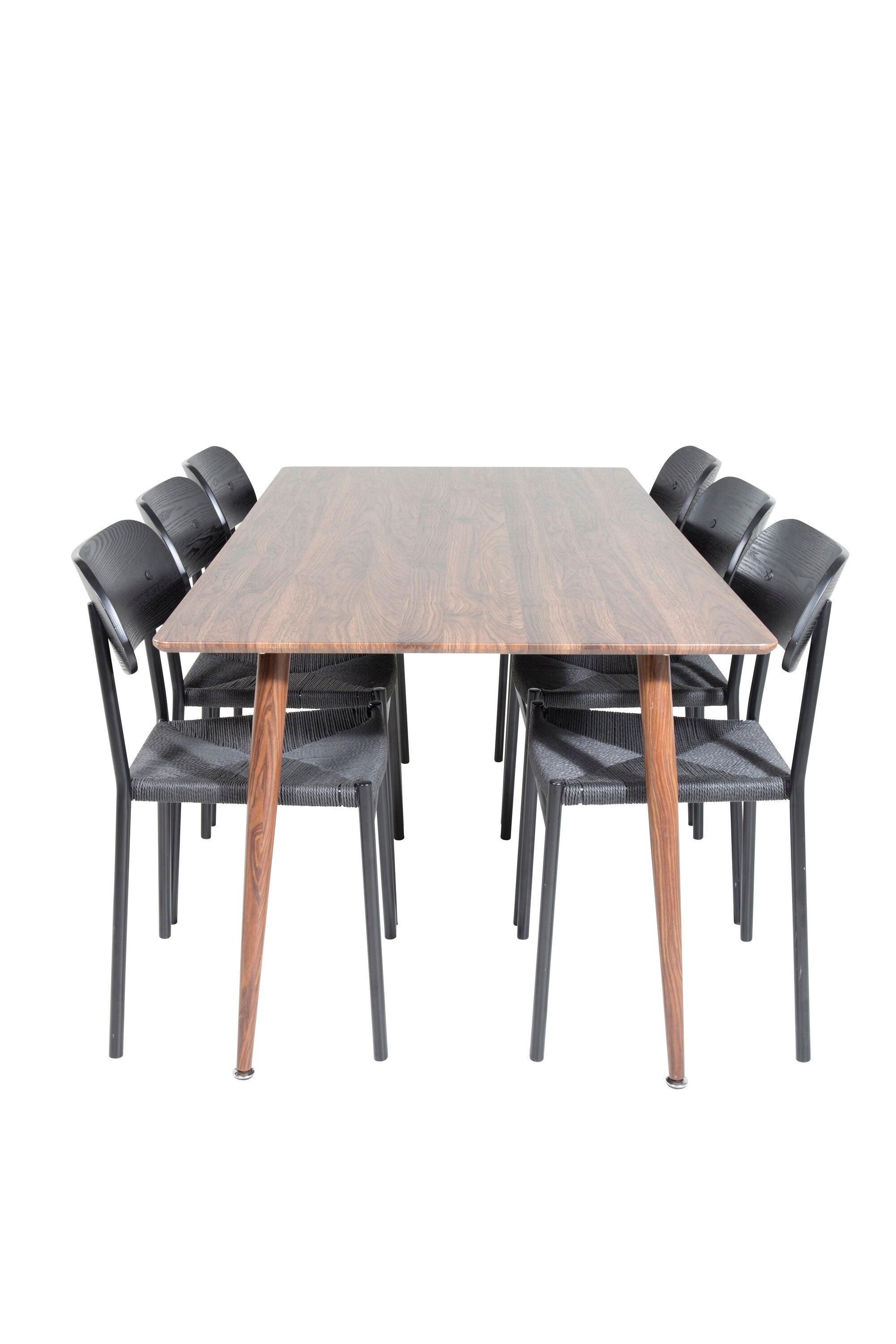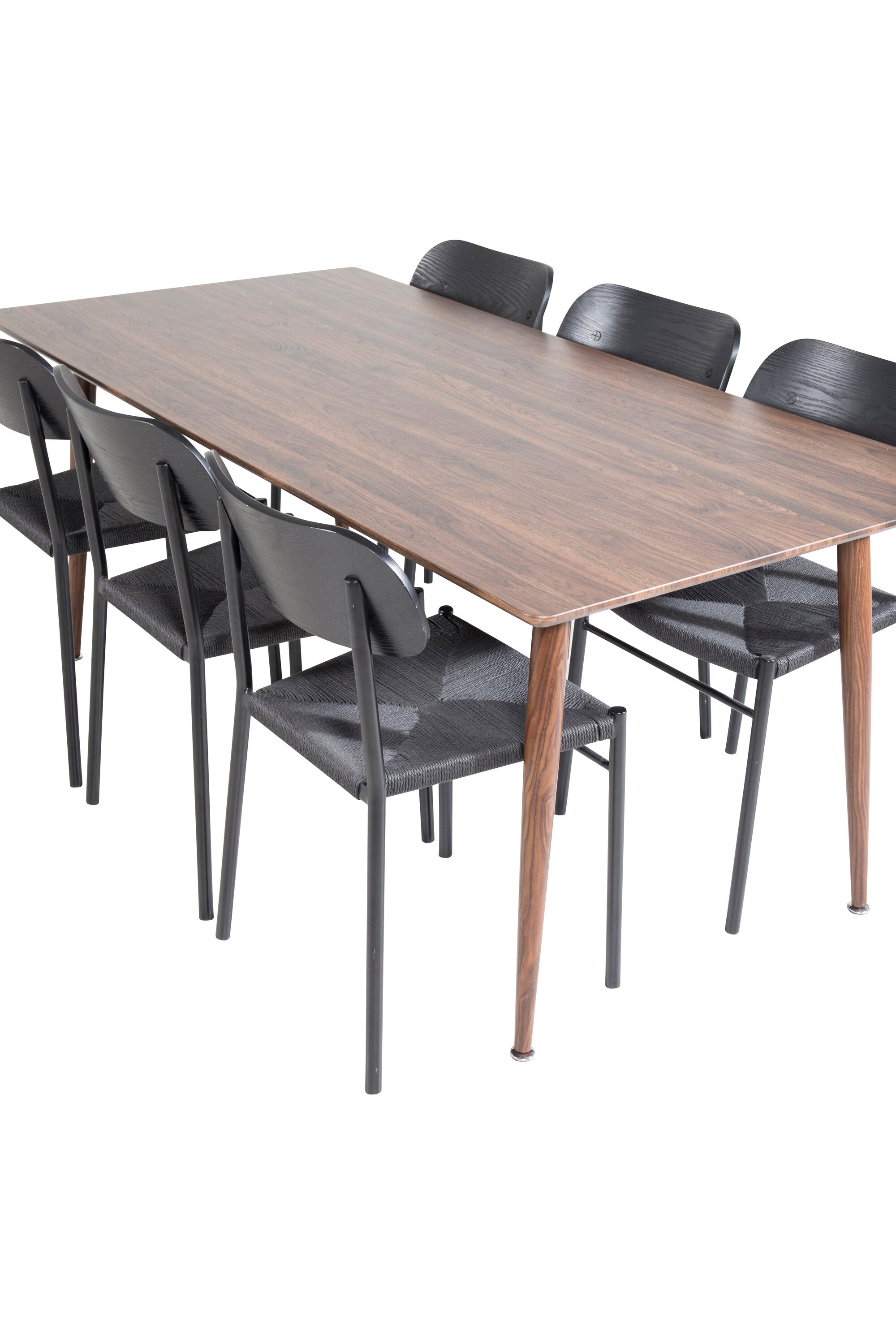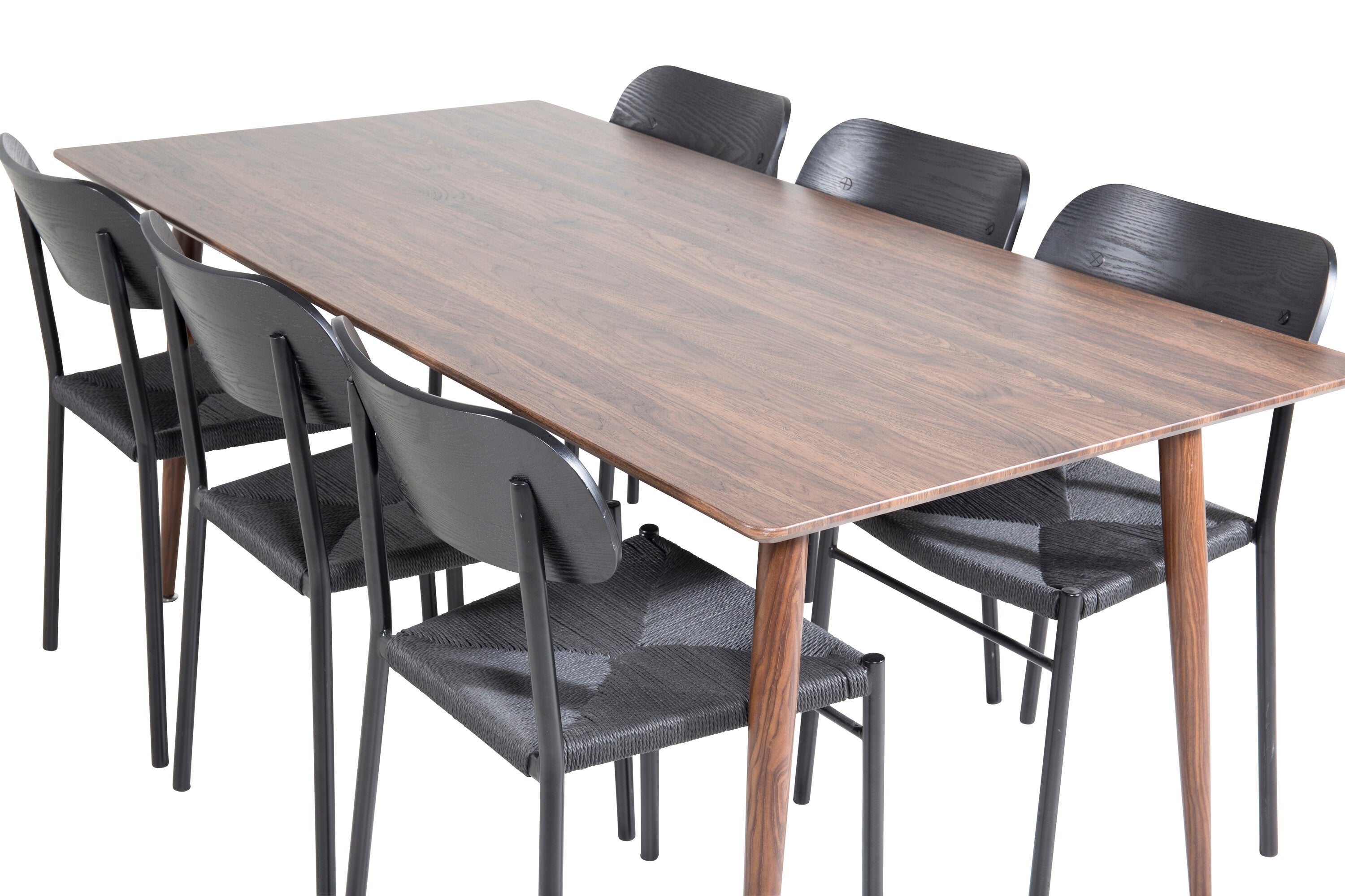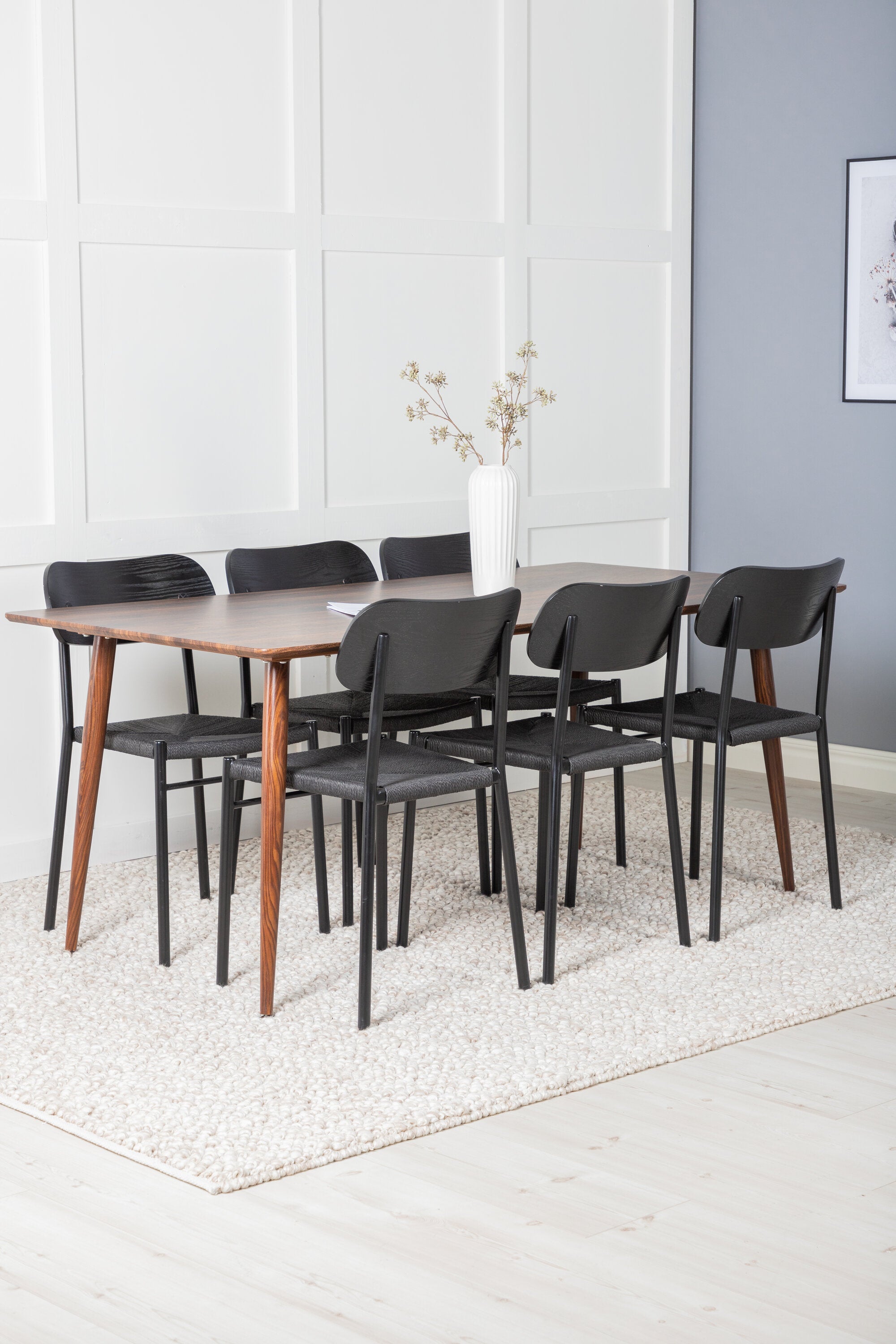 Jídelní stůl Polar 180 cm - Ořechová deska - Ořechové nohy + Jídelní židle Polly - Černá / Černá _6