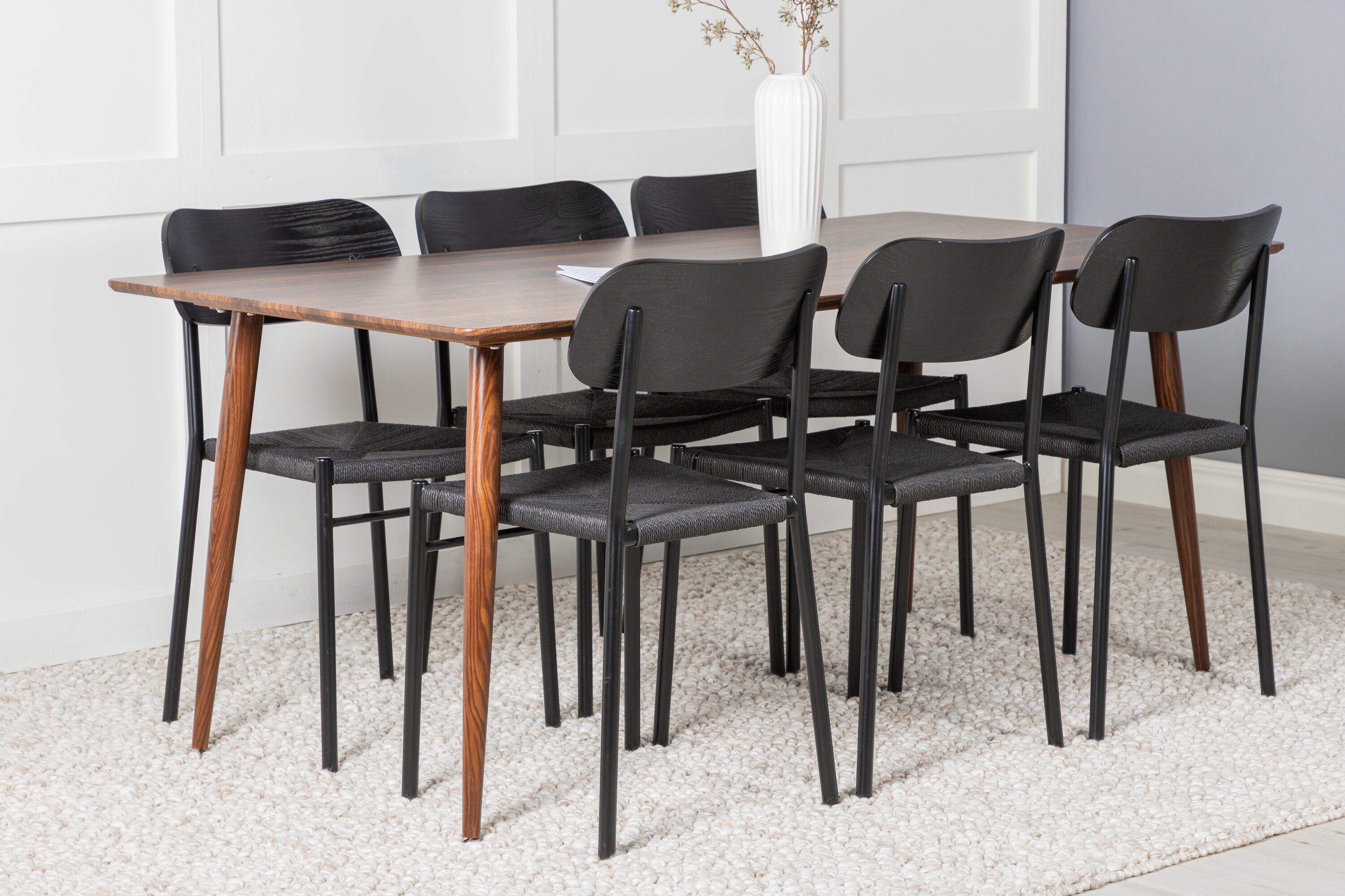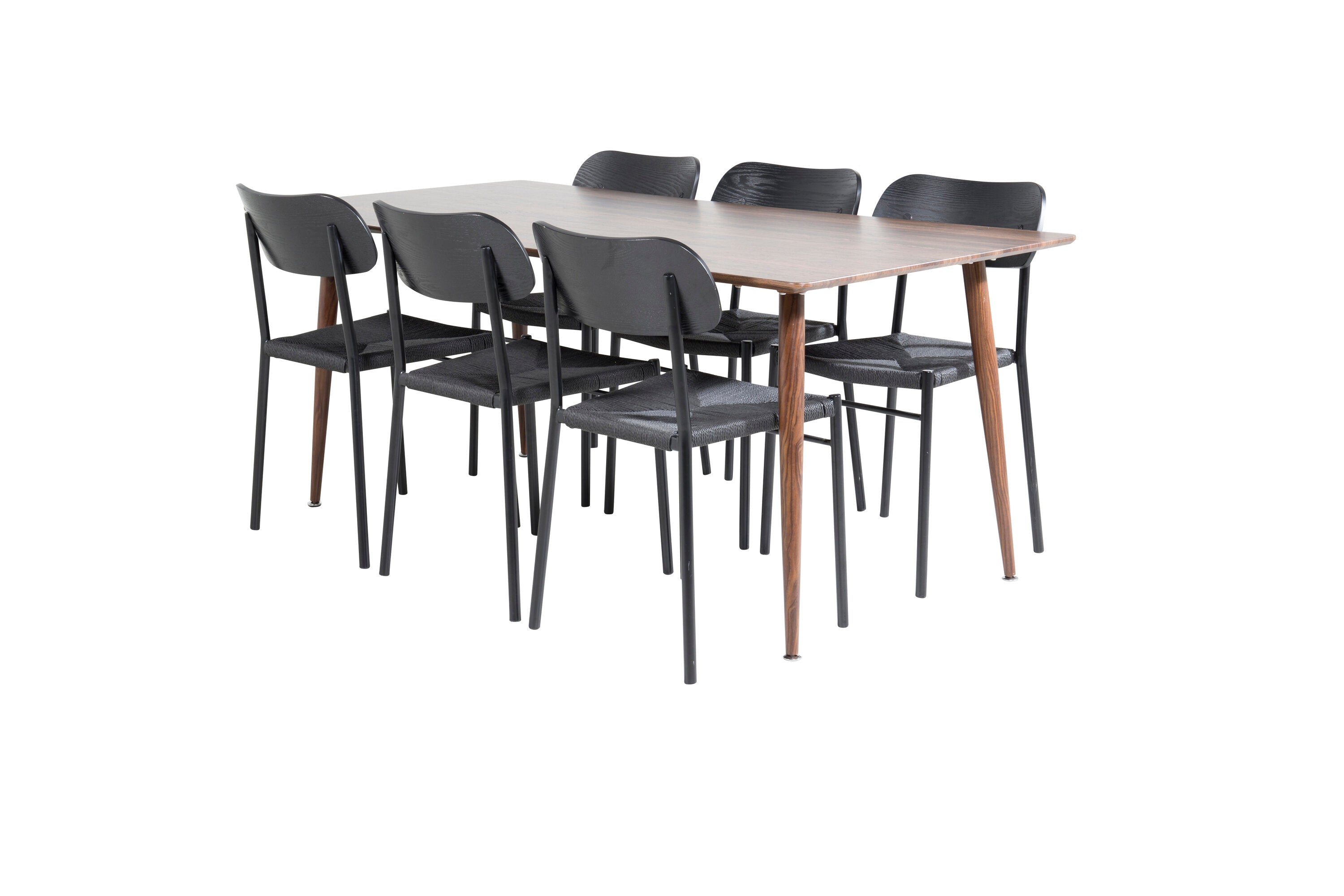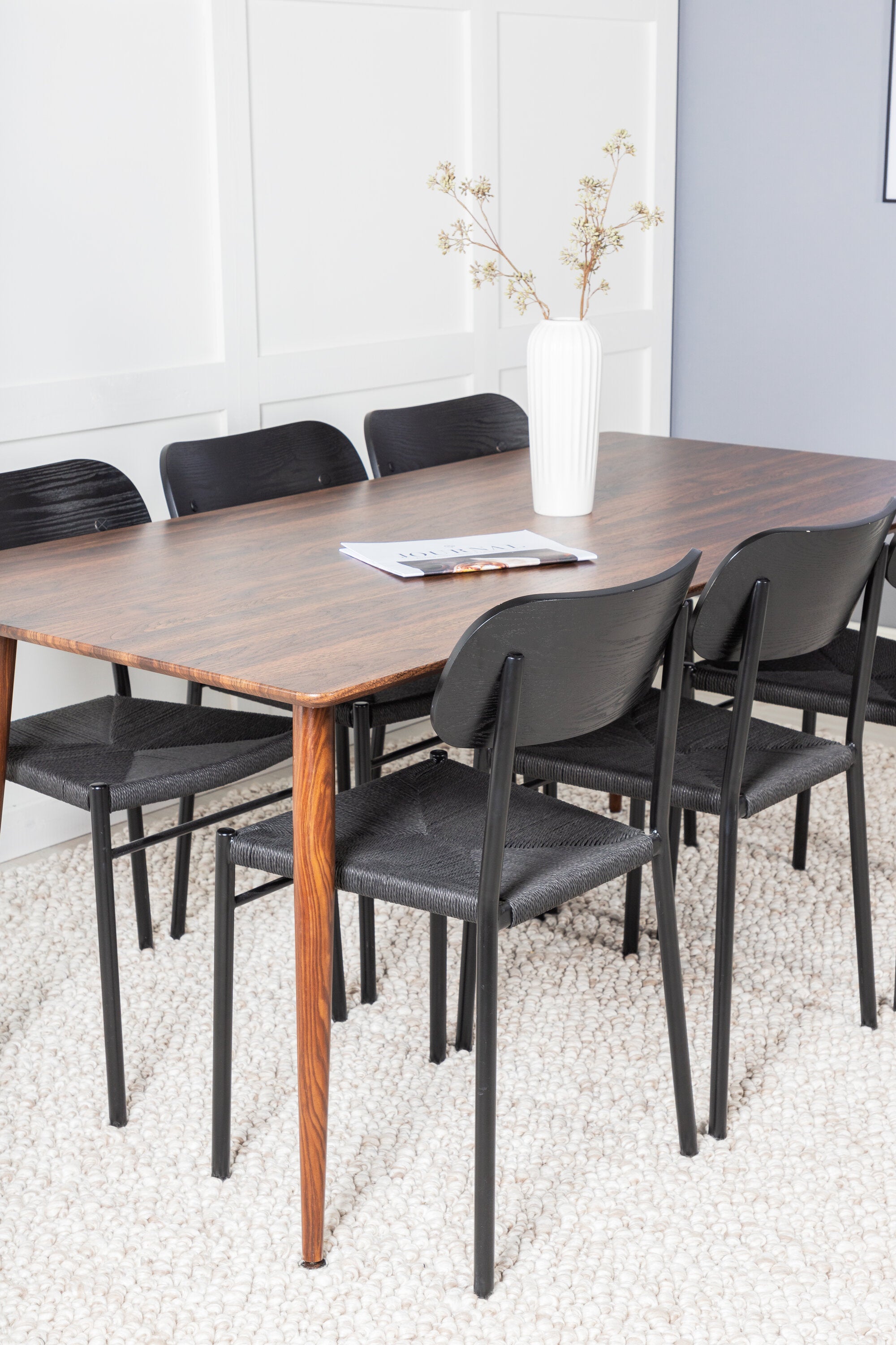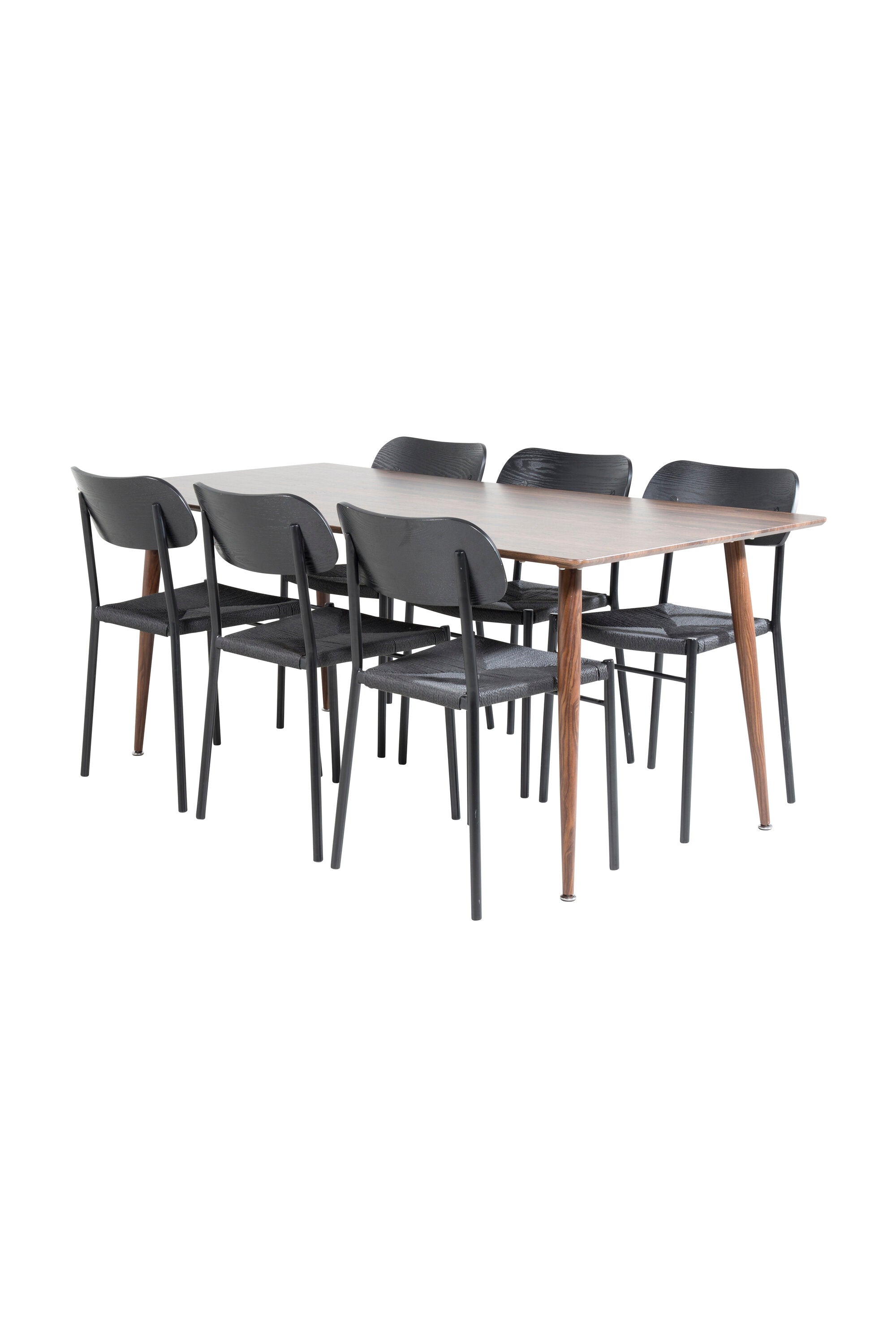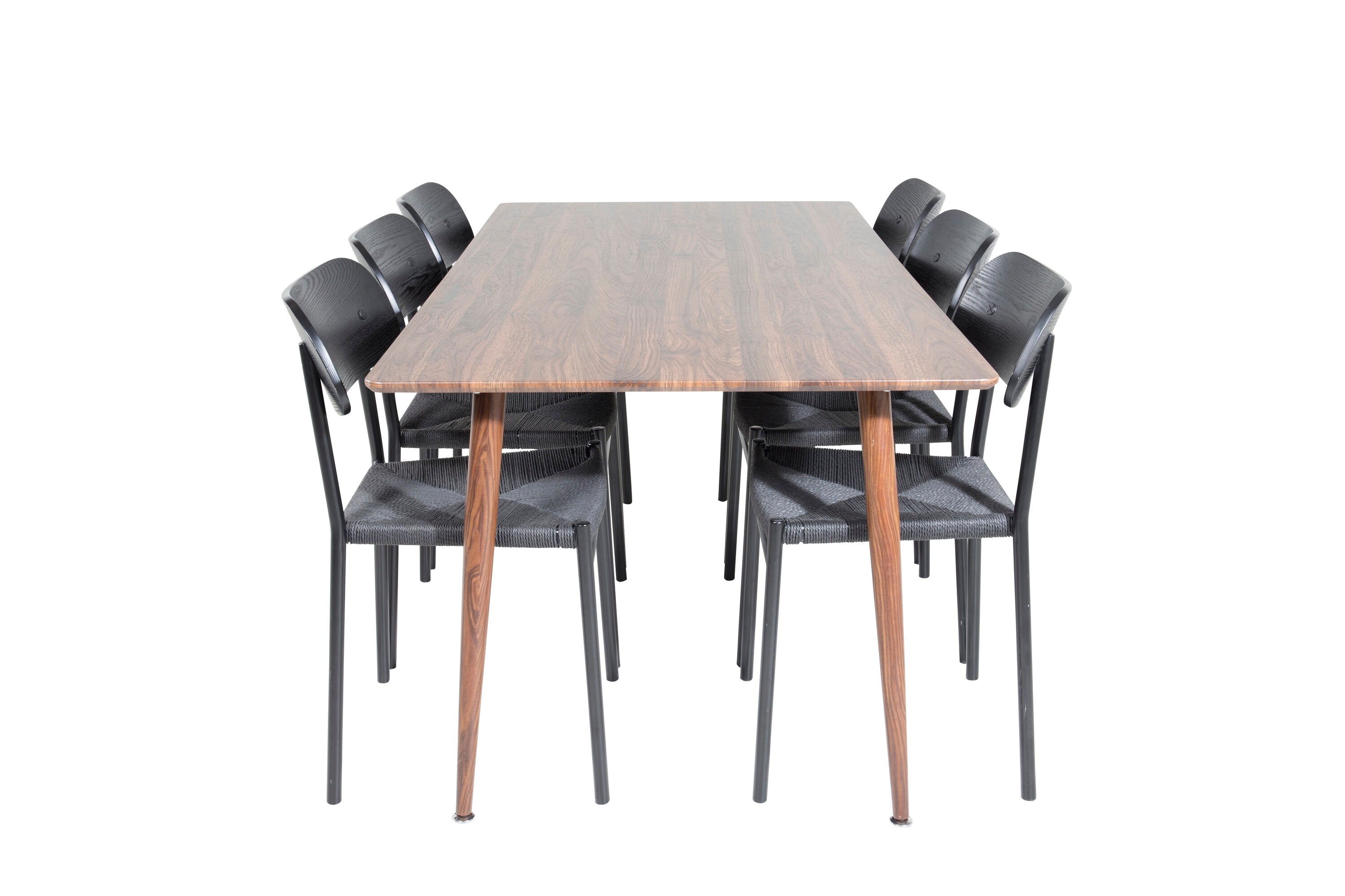 Jídelní stůl Polar 180 cm - Ořechová deska - Ořechové nohy + Jídelní židle Polly - Černá / Černá _6