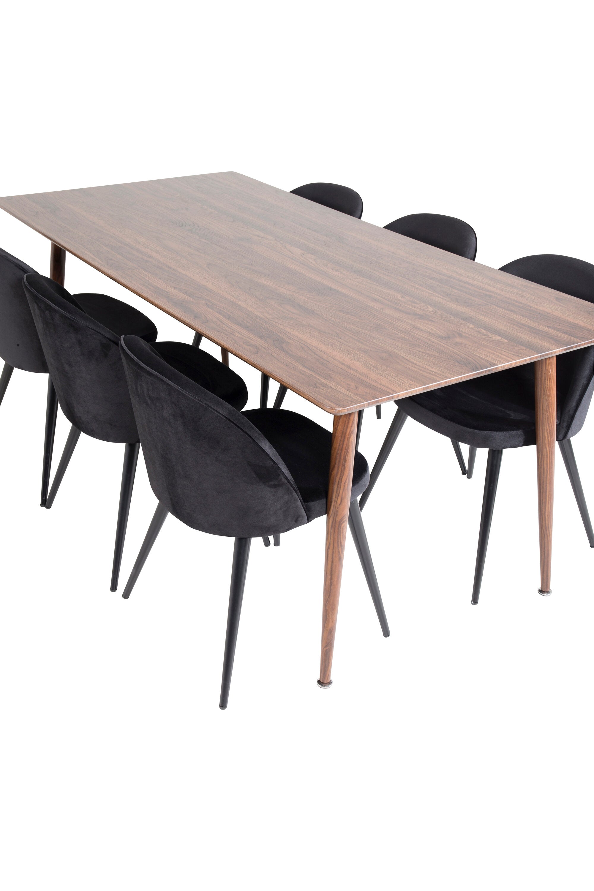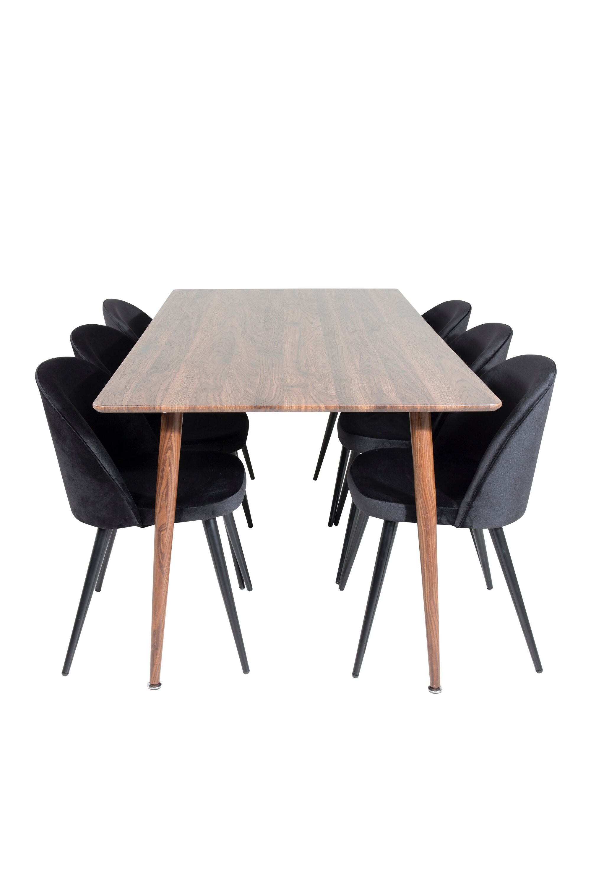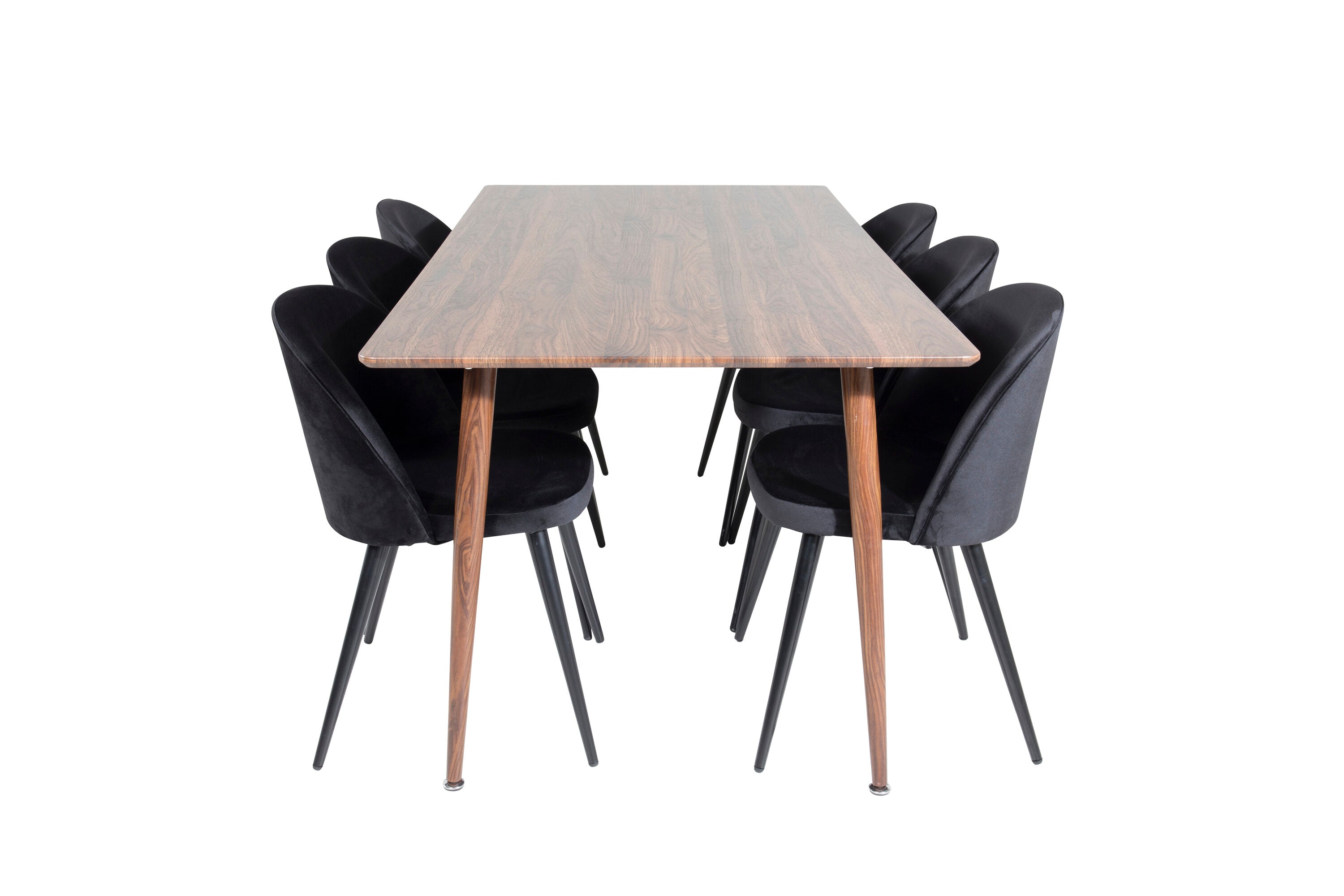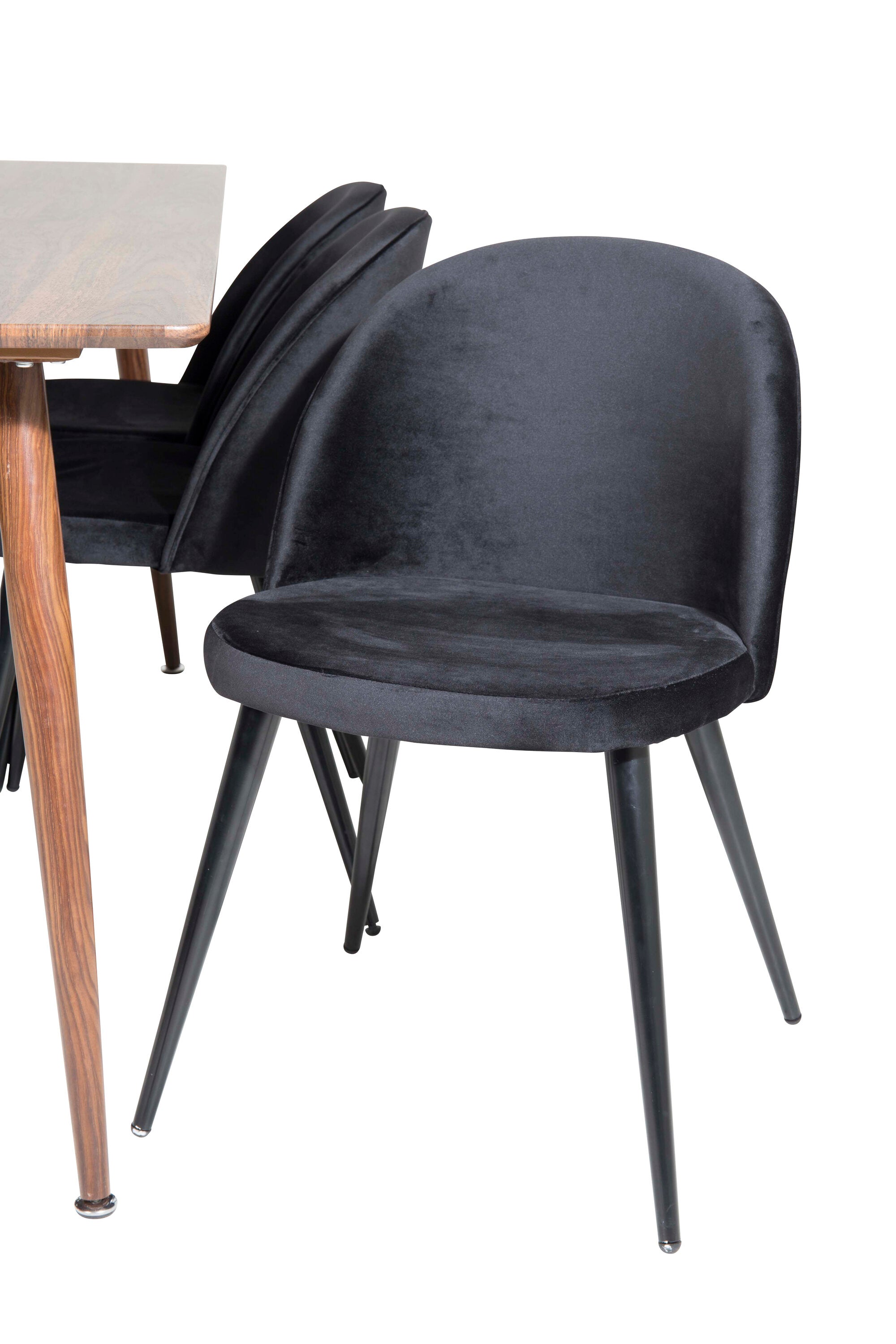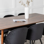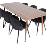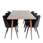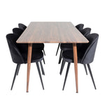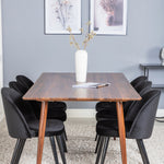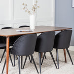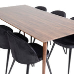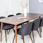 Jídelní stůl Polar 180 cm - Ořechová deska - Ořechové nohy+Sametová jídelní židle - Černá / Černá_6