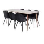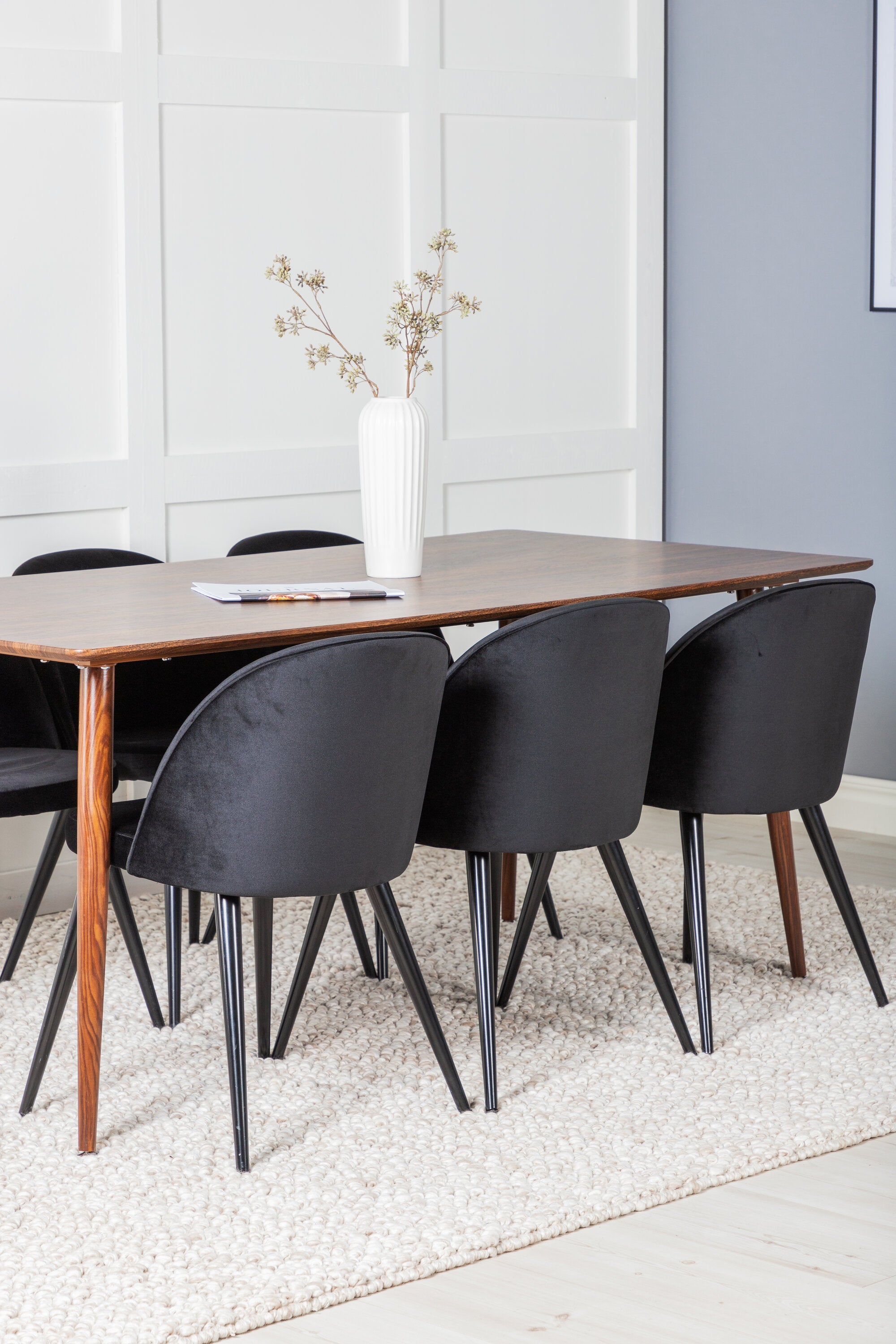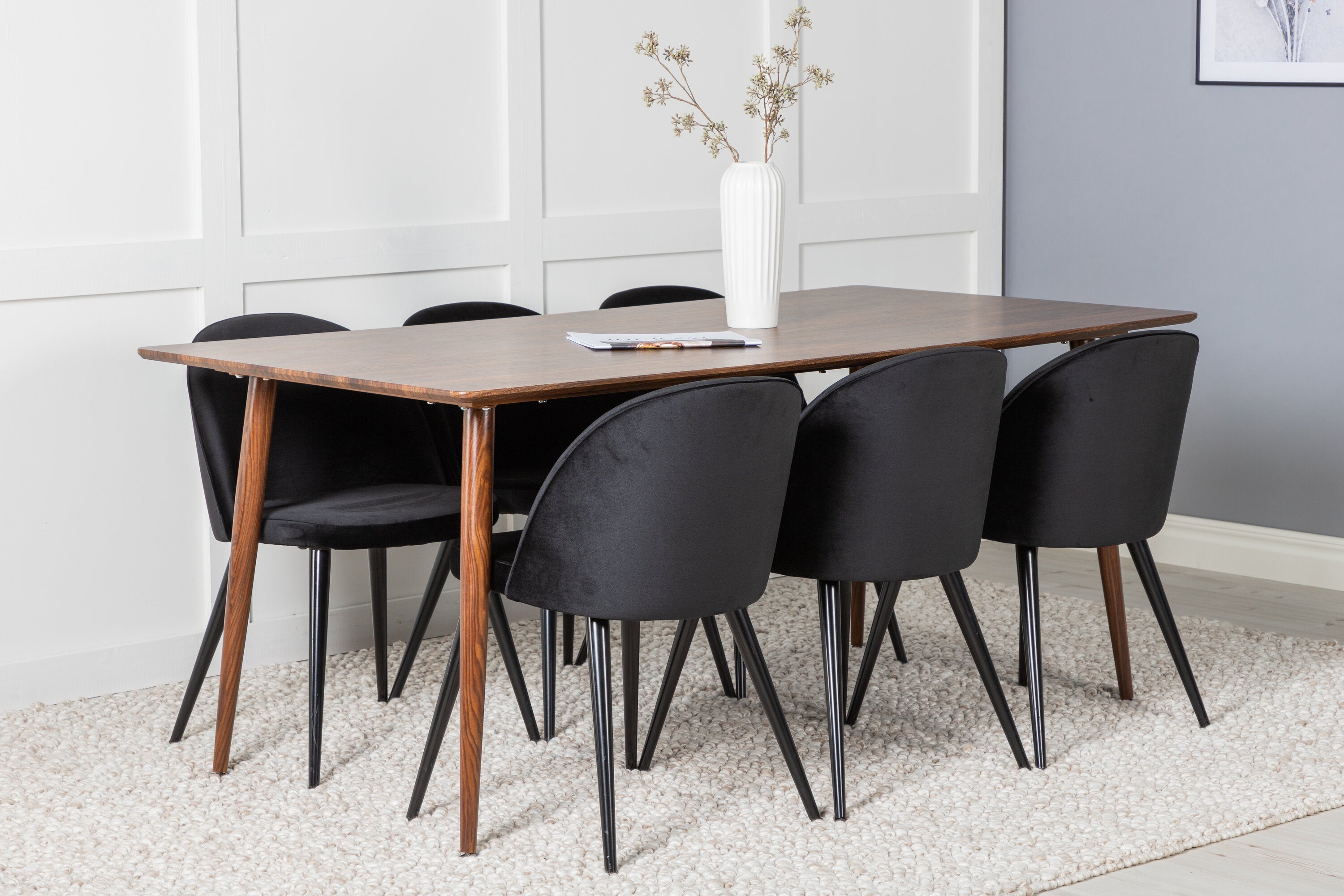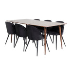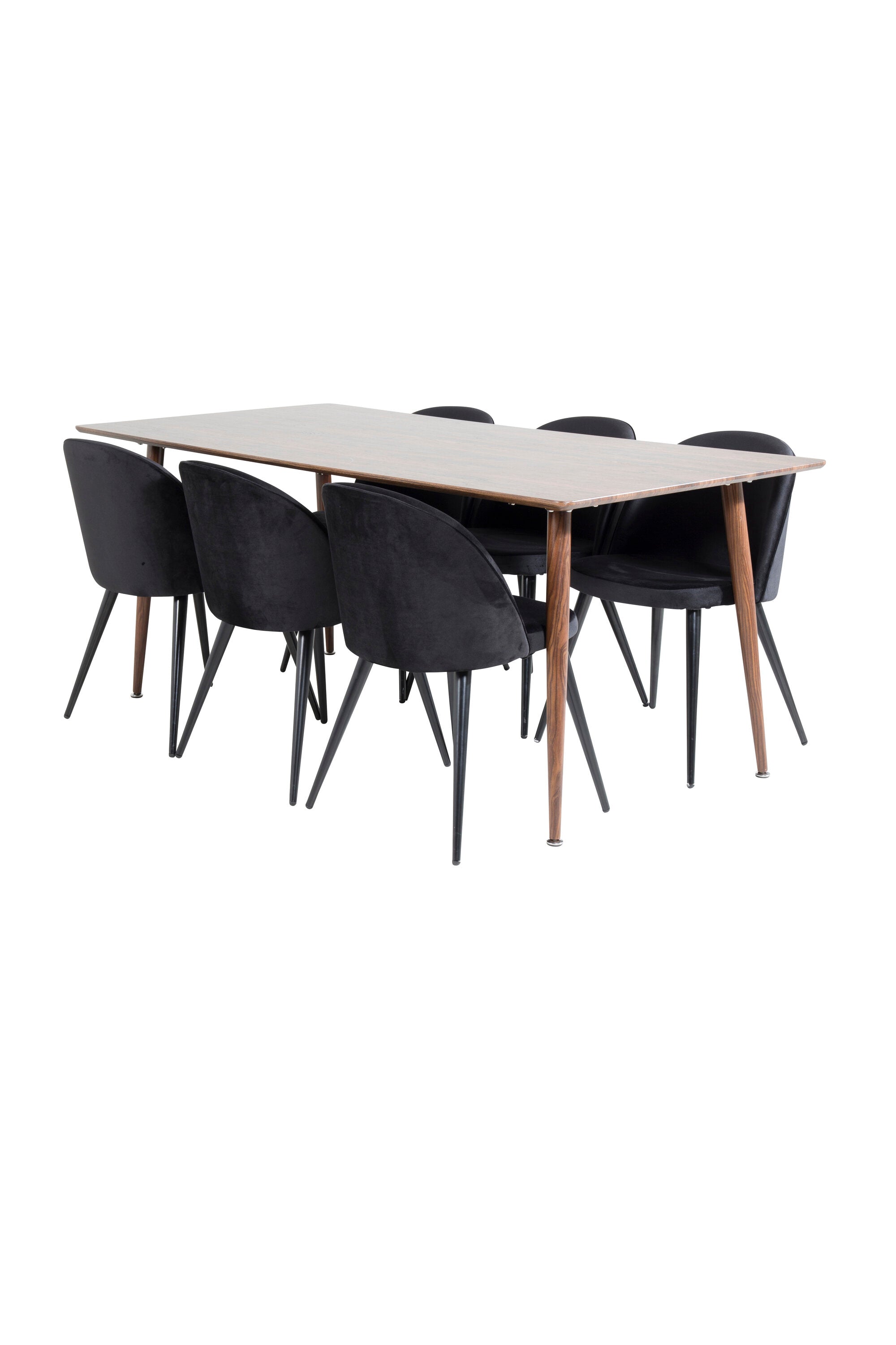 Jídelní stůl Polar 180 cm - Ořechová deska - Ořechové nohy+Sametová jídelní židle - Černá / Černá_6