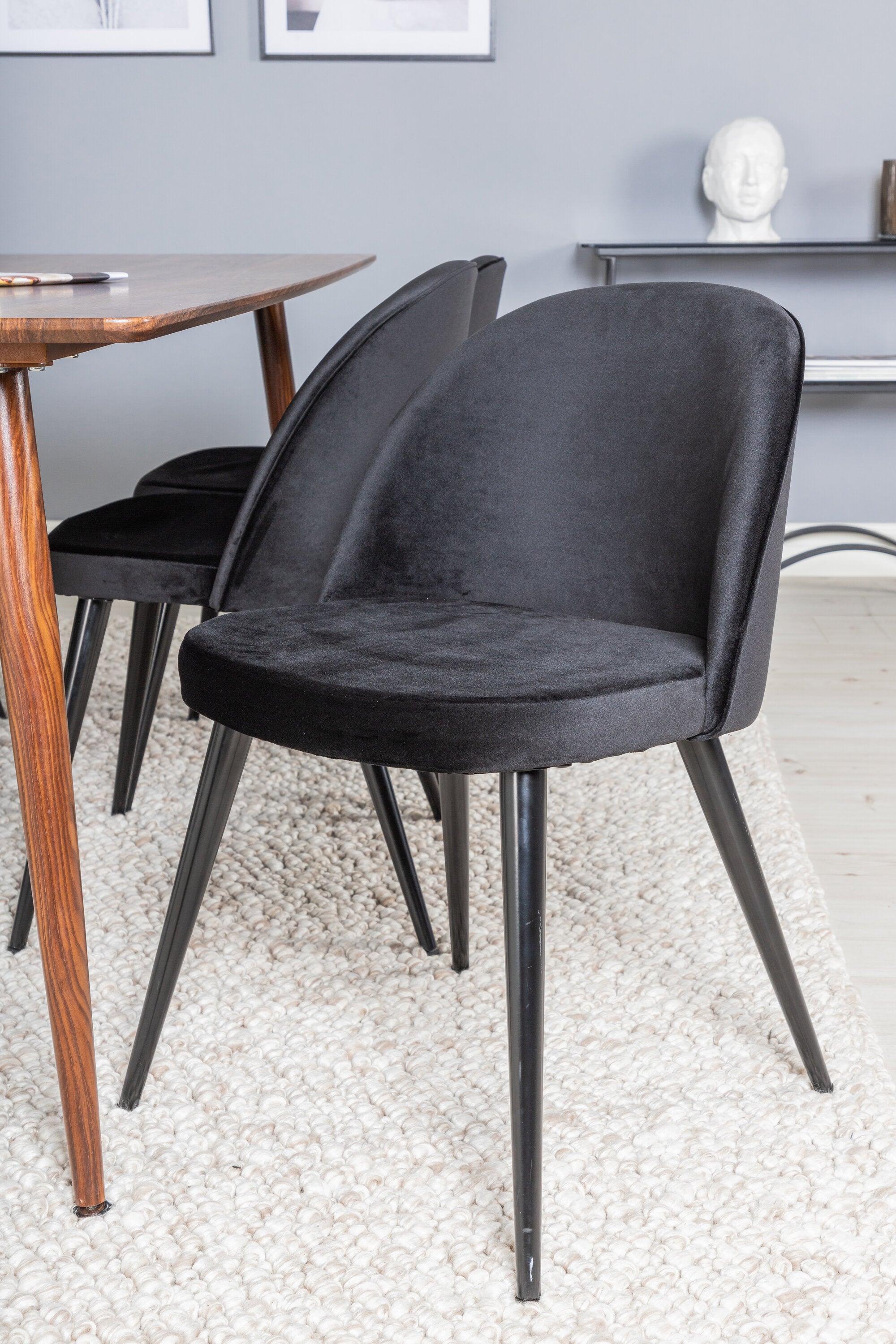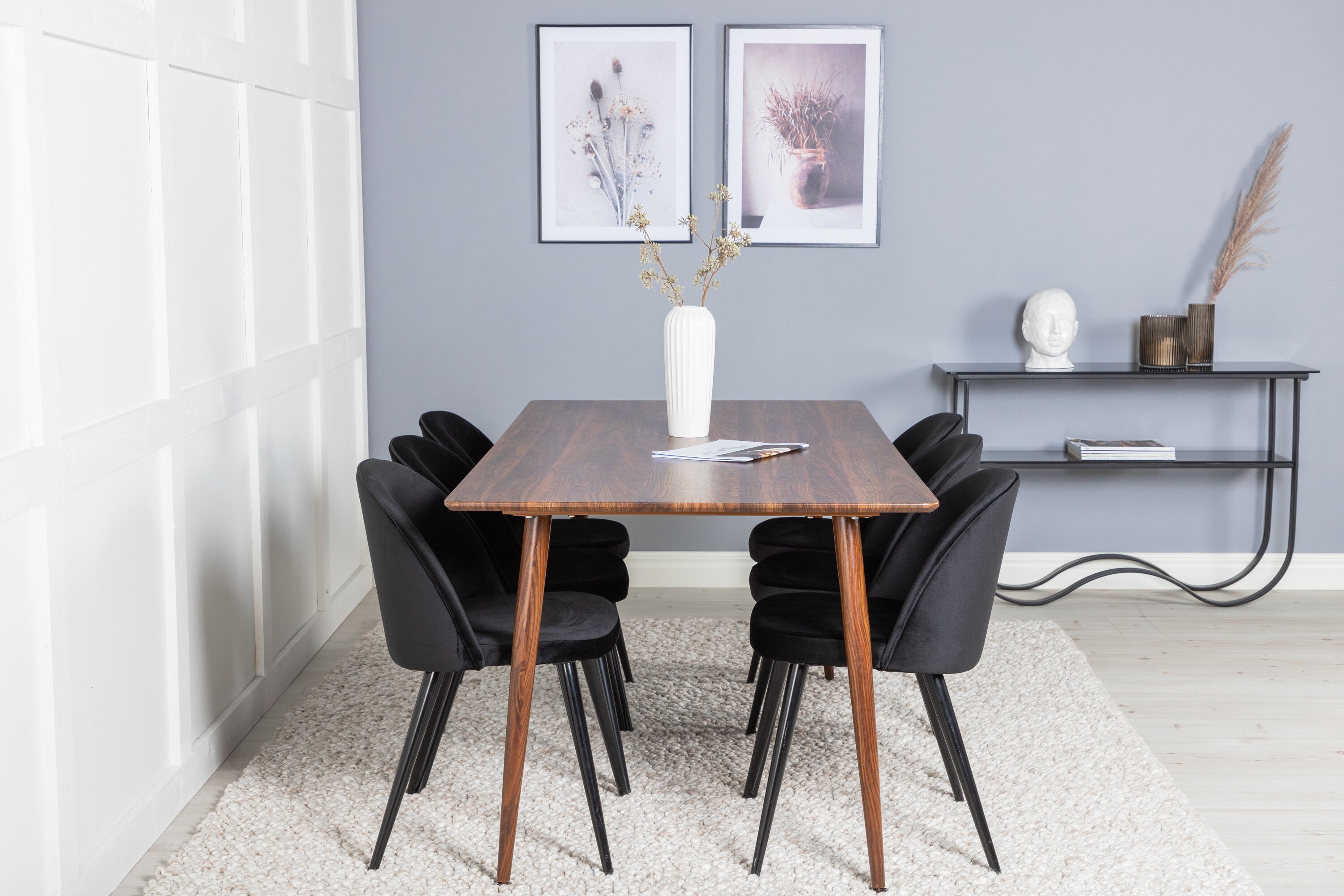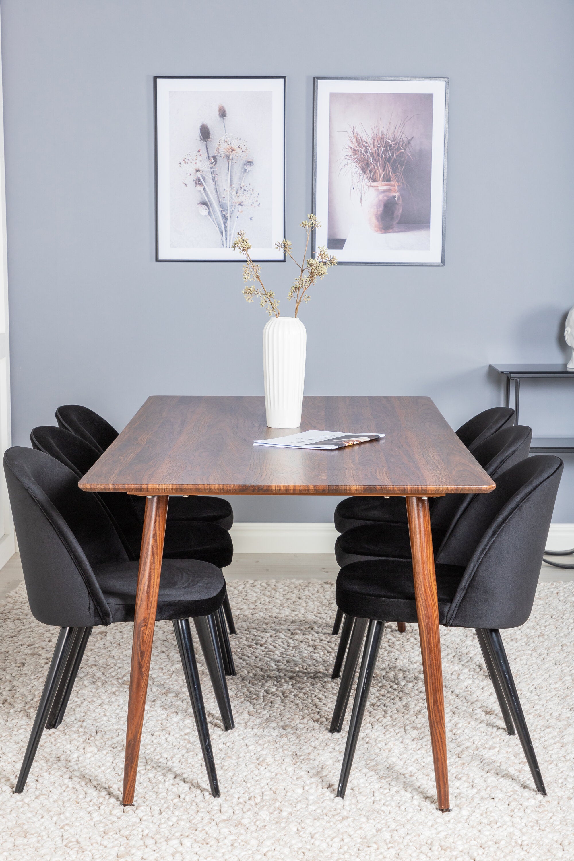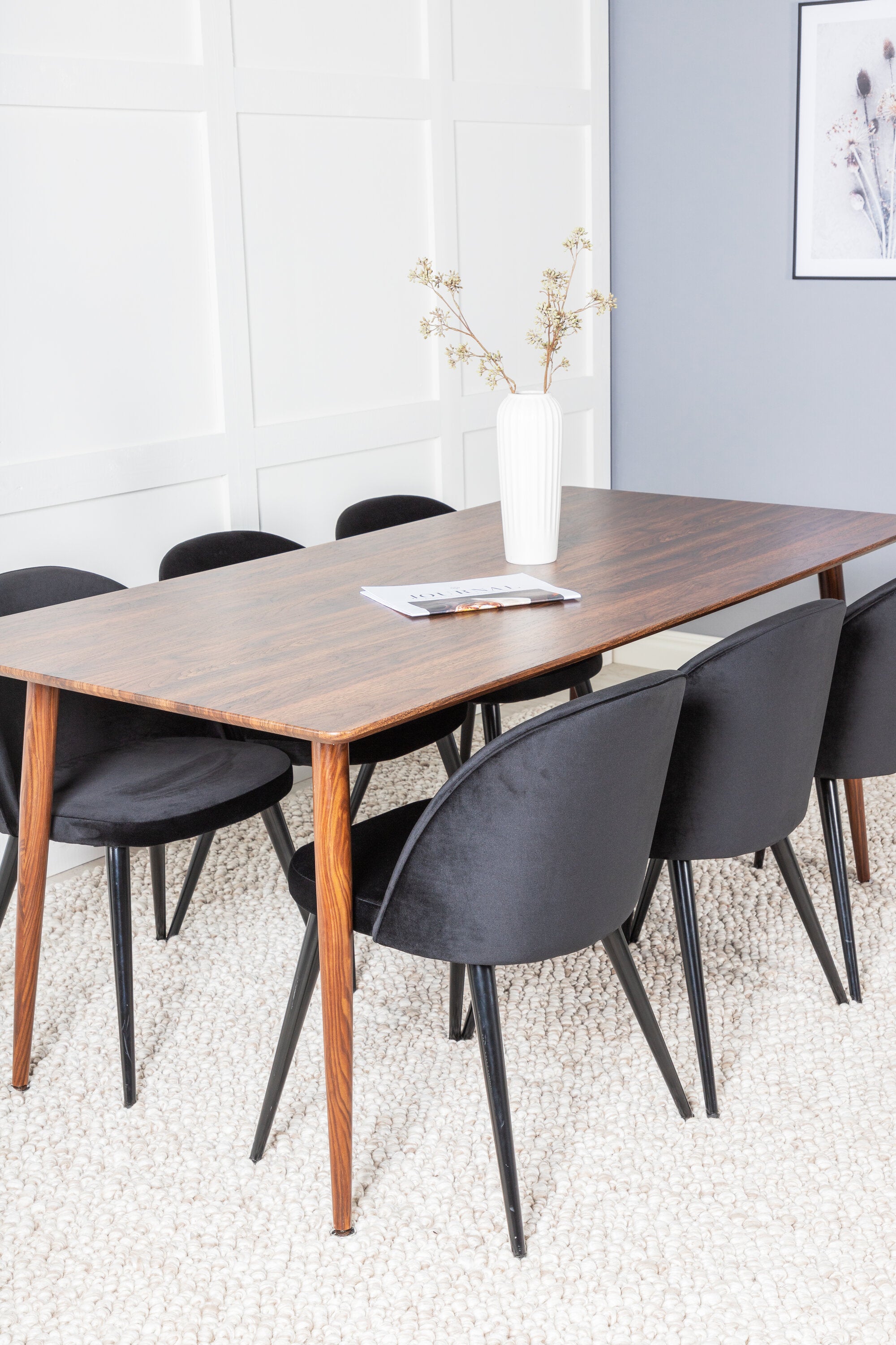 Jídelní stůl Polar 180 cm - Ořechová deska - Ořechové nohy+Sametová jídelní židle - Černá / Černá_6