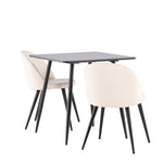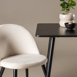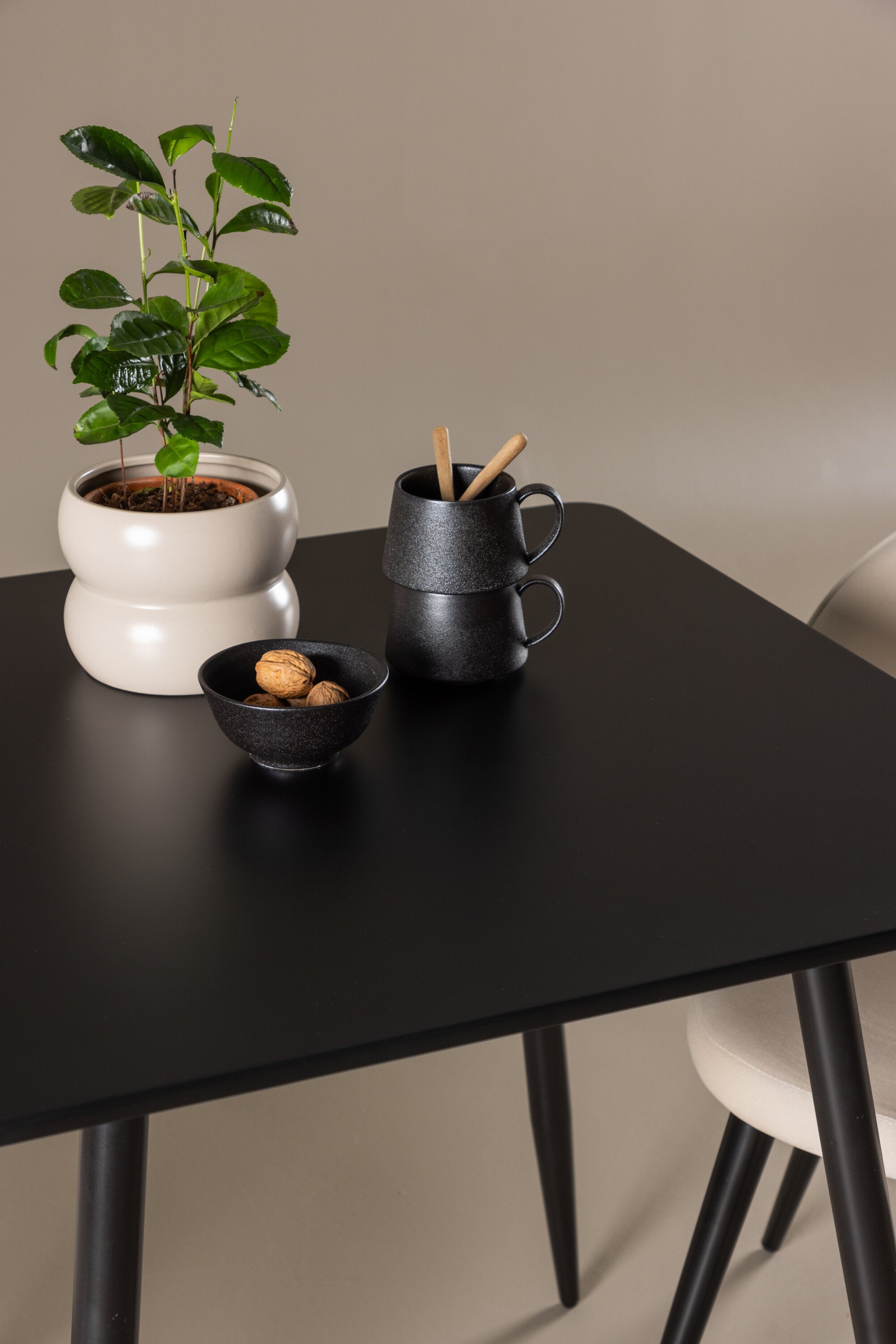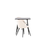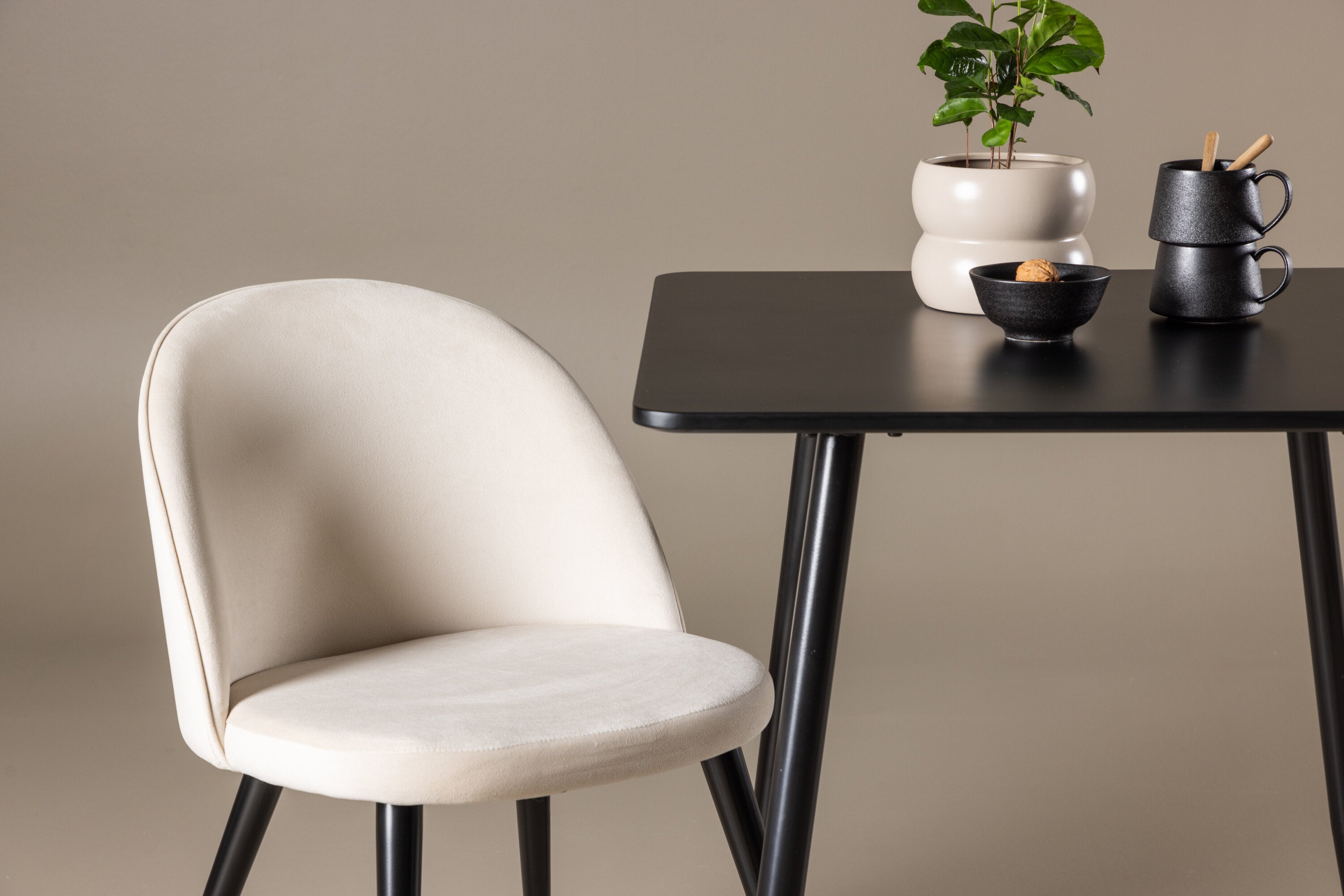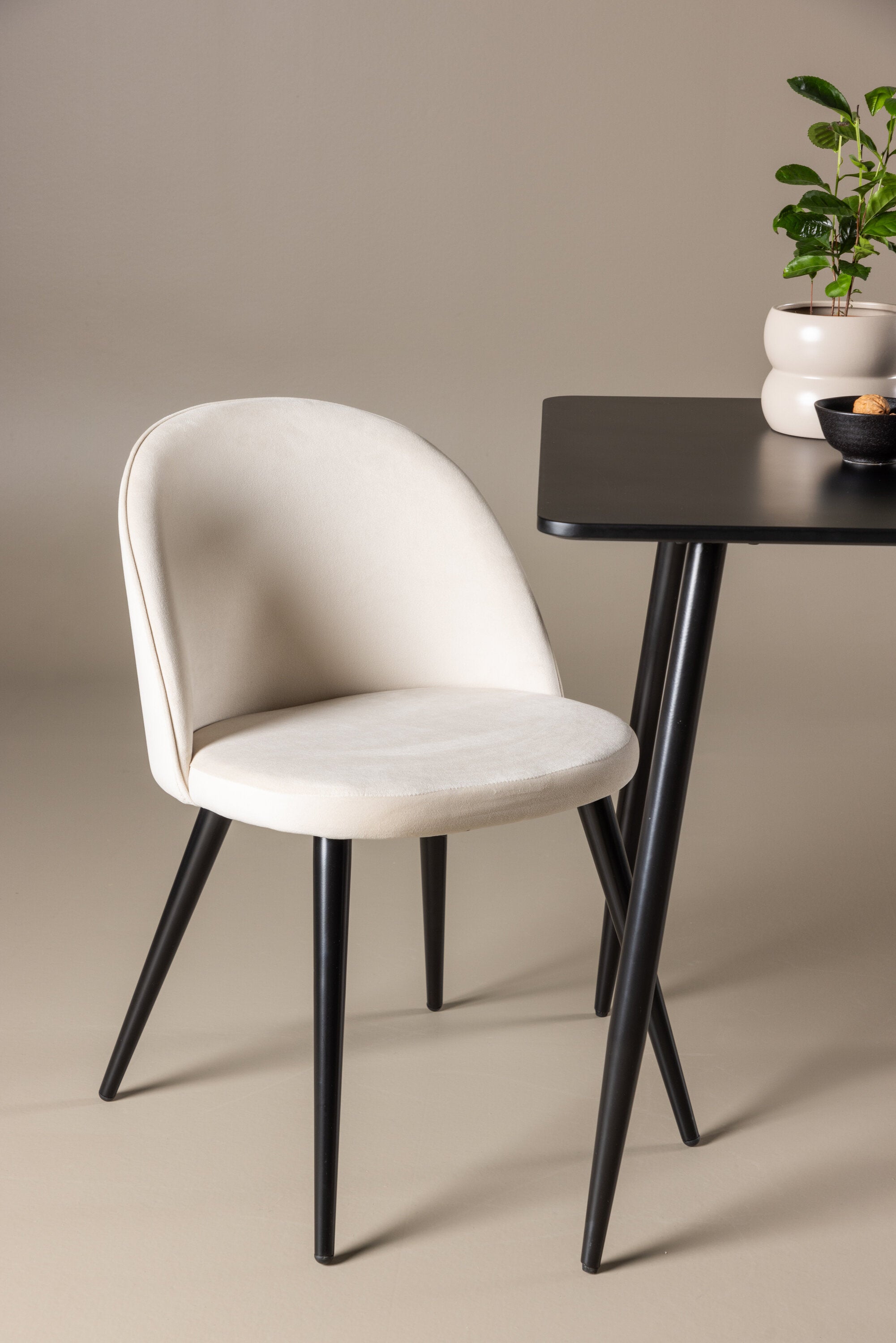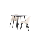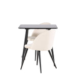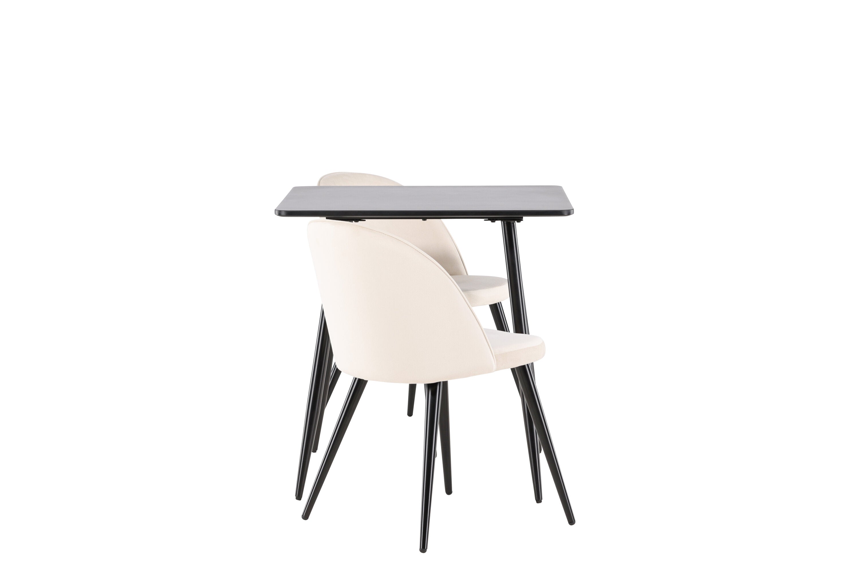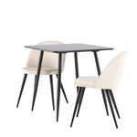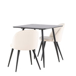 Vytvořte si moderní a příjemný jídelní kout s naší elegantní jídelní sadou, která kombinuje elegantní stůl Polar s luxusními židlemi Velvet. Tato jídelní souprava, která je ideální jak pro malá jídla, tak pro útulné večeře, dodá vaší jídelně nebo kuchyni sofistikovanou a harmonickou atmosféru. Jídelní stůl Polar vyrobený z MDF má elegantní černou barvu, která dodá vašemu domovu moderní a elegantní atmosféru. Stůl s rozměry 75x75 cm nabízí kompaktní, ale prostornou plochu pro jídlo a konverzaci, díky čemuž je ideální pro menší prostory nebo intimní jídelní prostory. Robustní konstrukce stolu zajišťuje dlouhodobé používání a stabilitu. Dvě židle Velvet skvěle doplňují stůl svými elegantními sedáky čalouněnými béžovým sametem. Tyto židle nabízejí pohodlí i styl, díky čemuž jsou ideální pro dlouhá a příjemná jídla. Jejich moderní design s vysokými opěradly a měkkými sedáky dodá vaší jídelně nebo kuchyni sofistikovaný a moderní nádech. Tato jídelní souprava je dokonalou kombinací estetiky a funkčnosti, díky čemuž je vynikající volbou pro ty, kteří hledají elegantní a pohodlný jídelní kout v menším formátu. Vylepšete svůj domov kombinací stolu Polar a židlí Velvet a vytvořte si místo, kde se budou sdílet vzpomínky a radost.