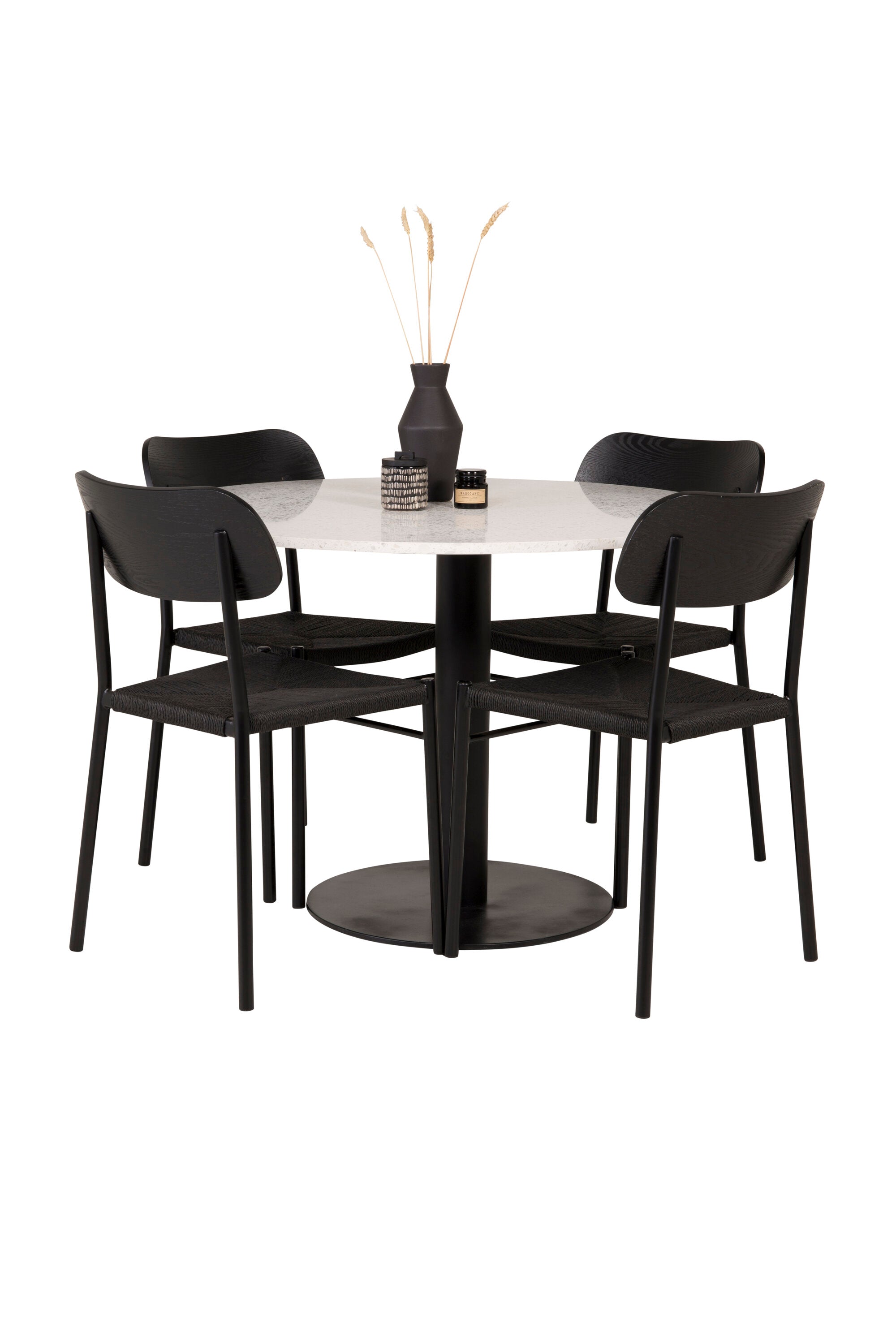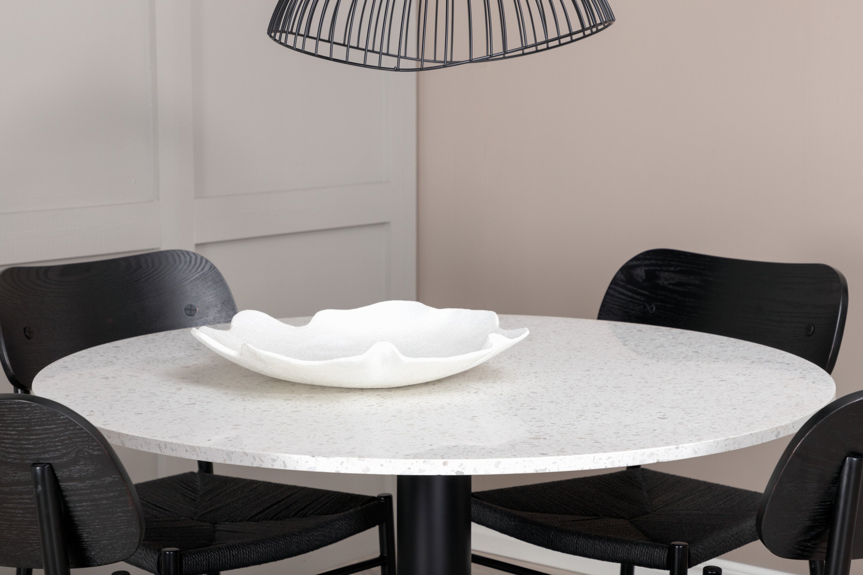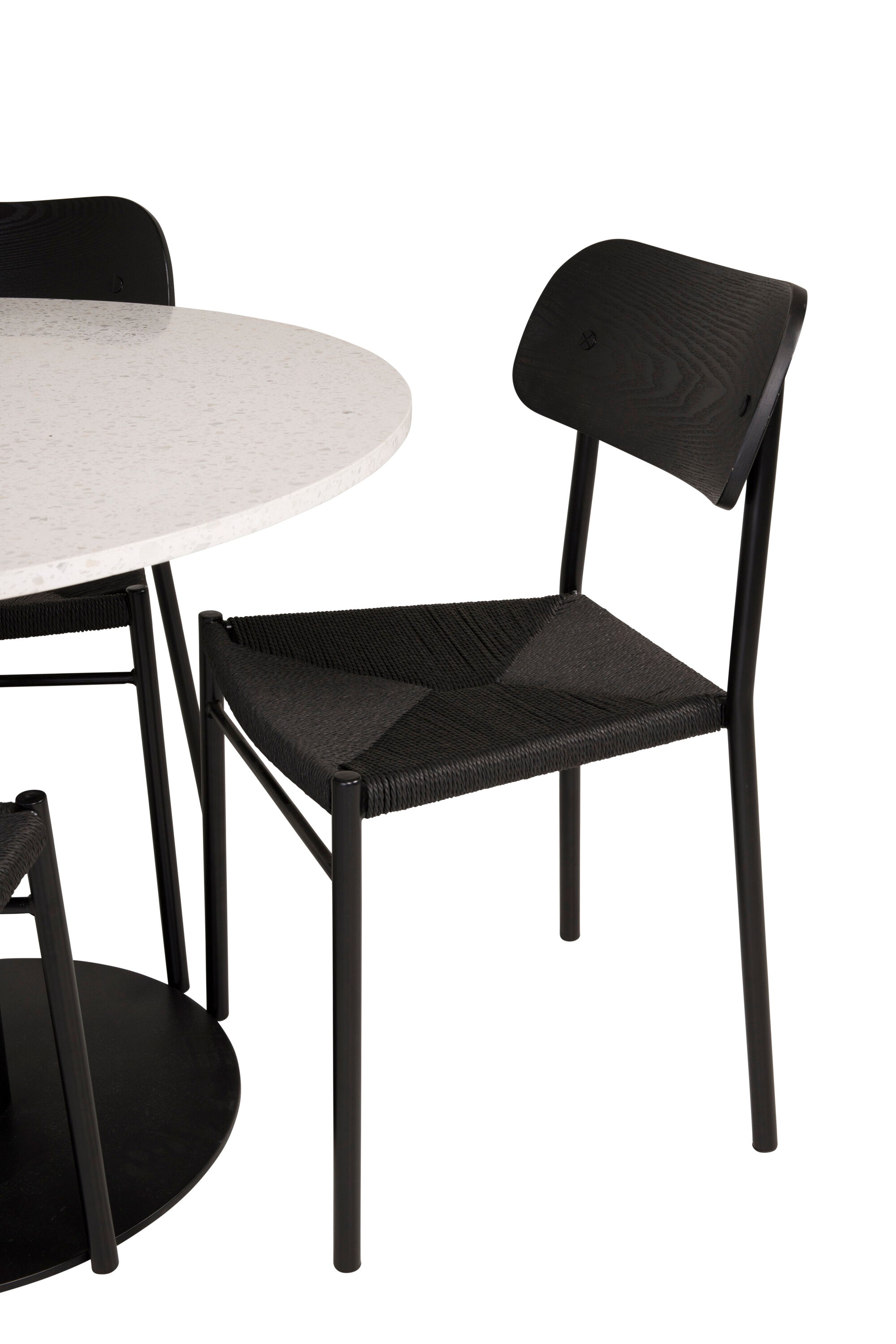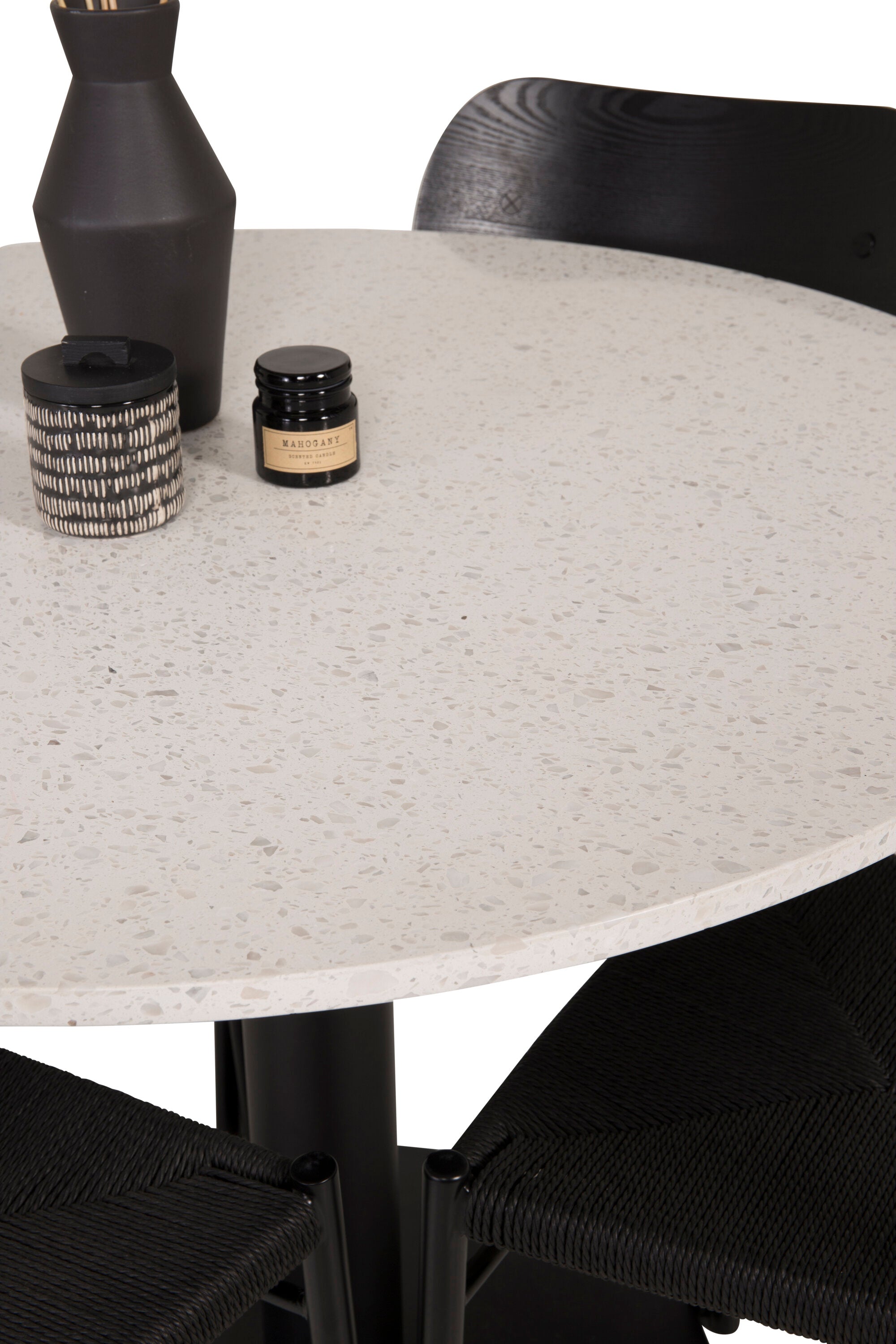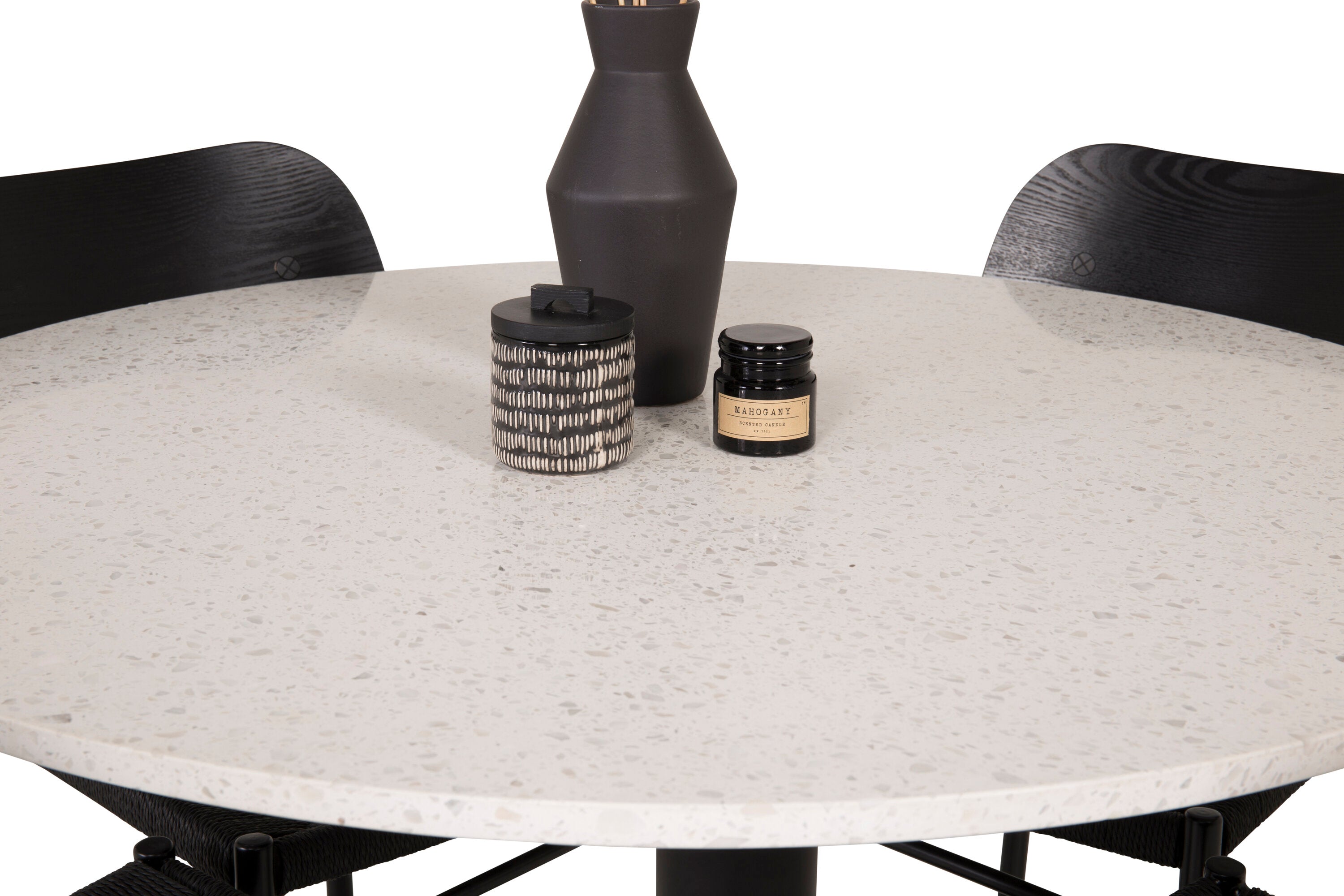 Jídelní stůl Razzia 106 cm – Bílá Terazzo / Černá + Jídelní židle Polly – Černá / Černá _4