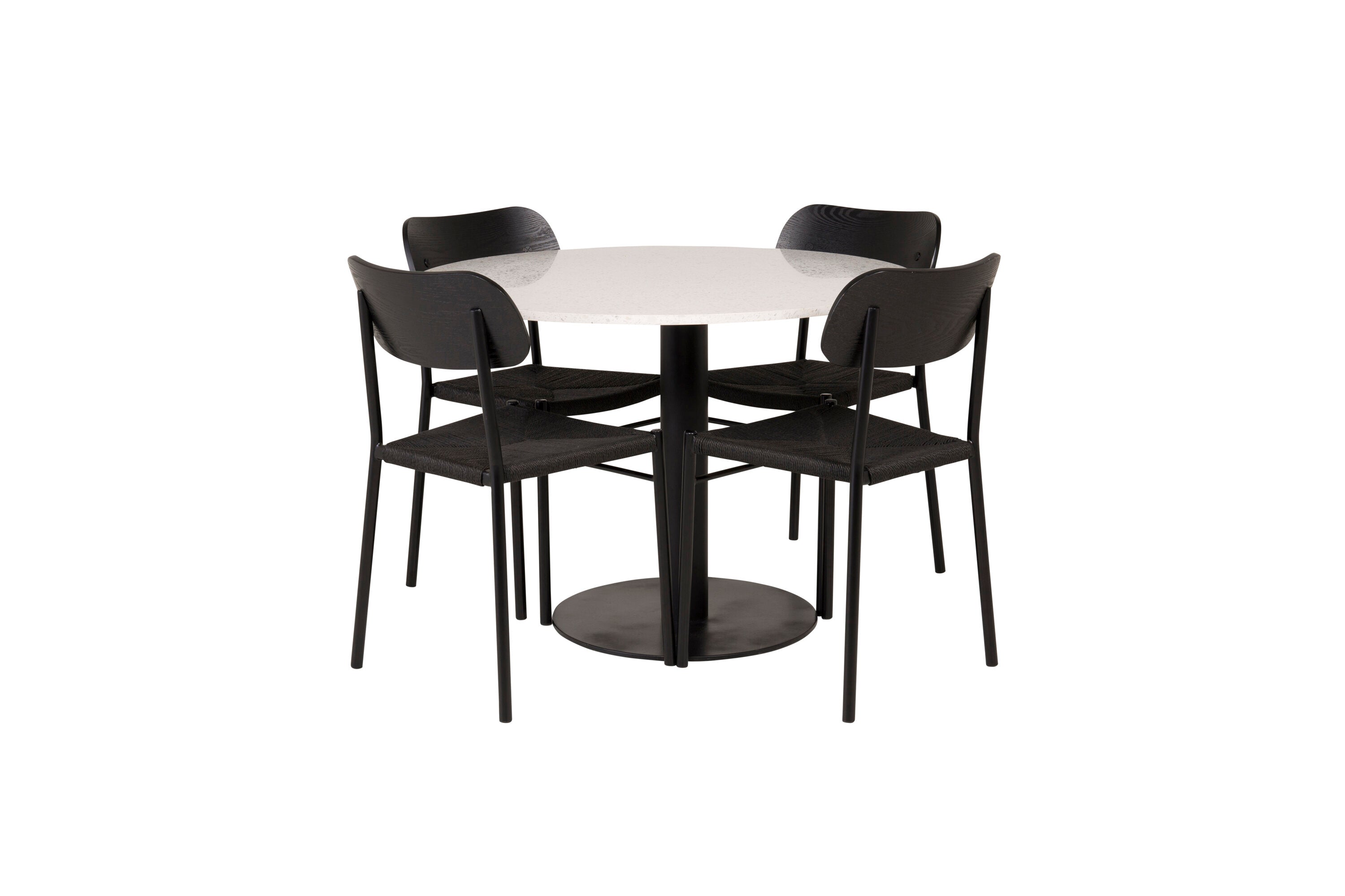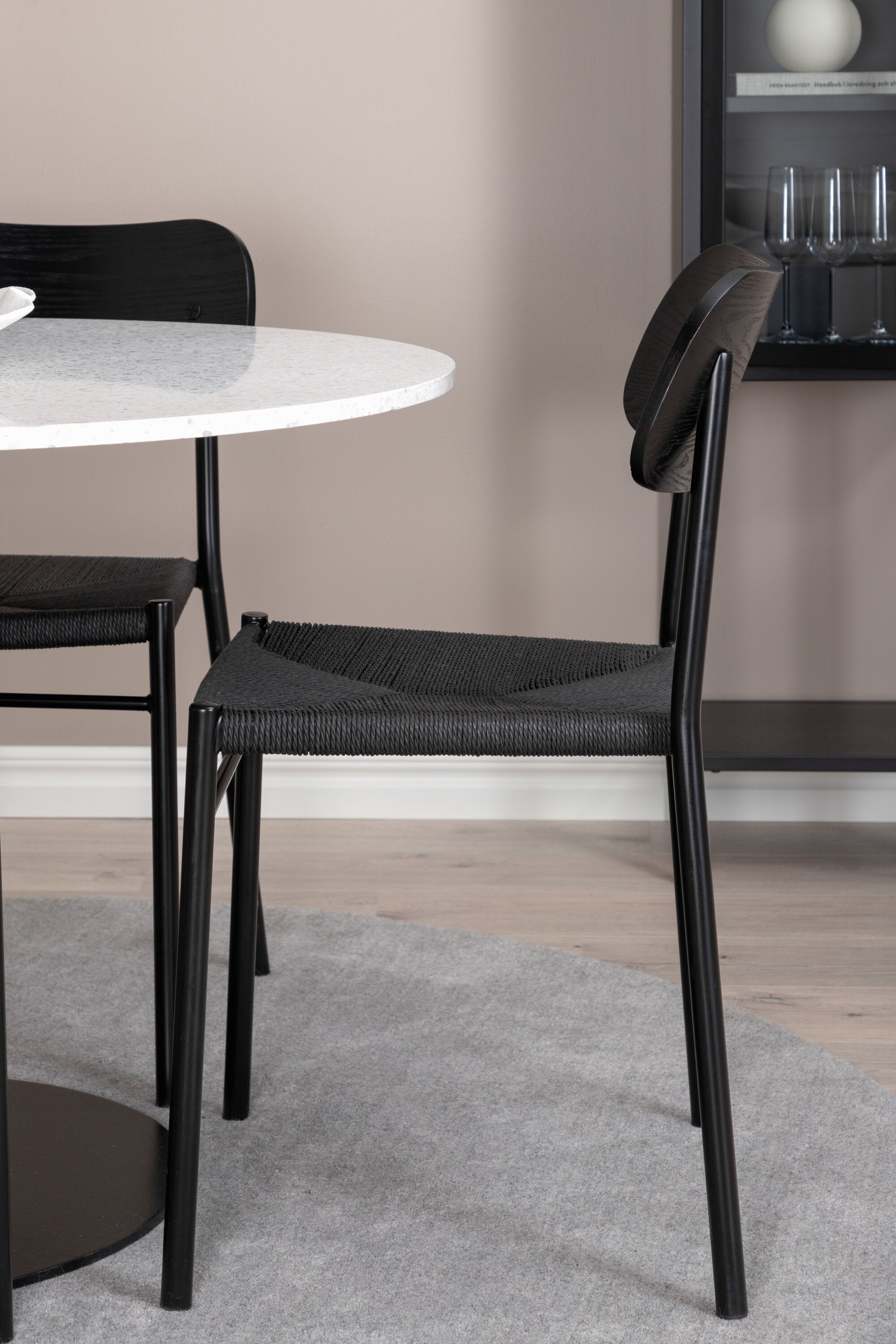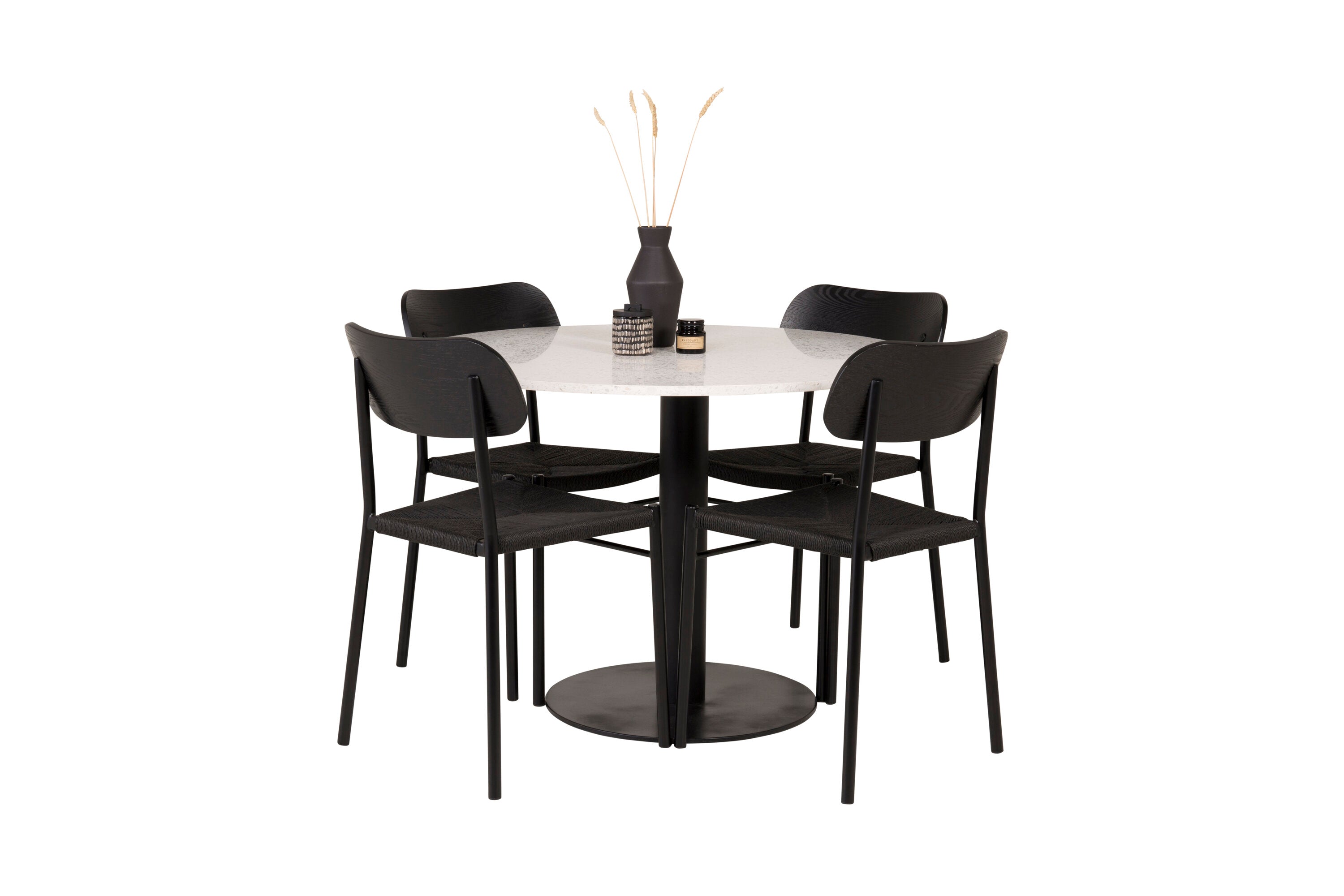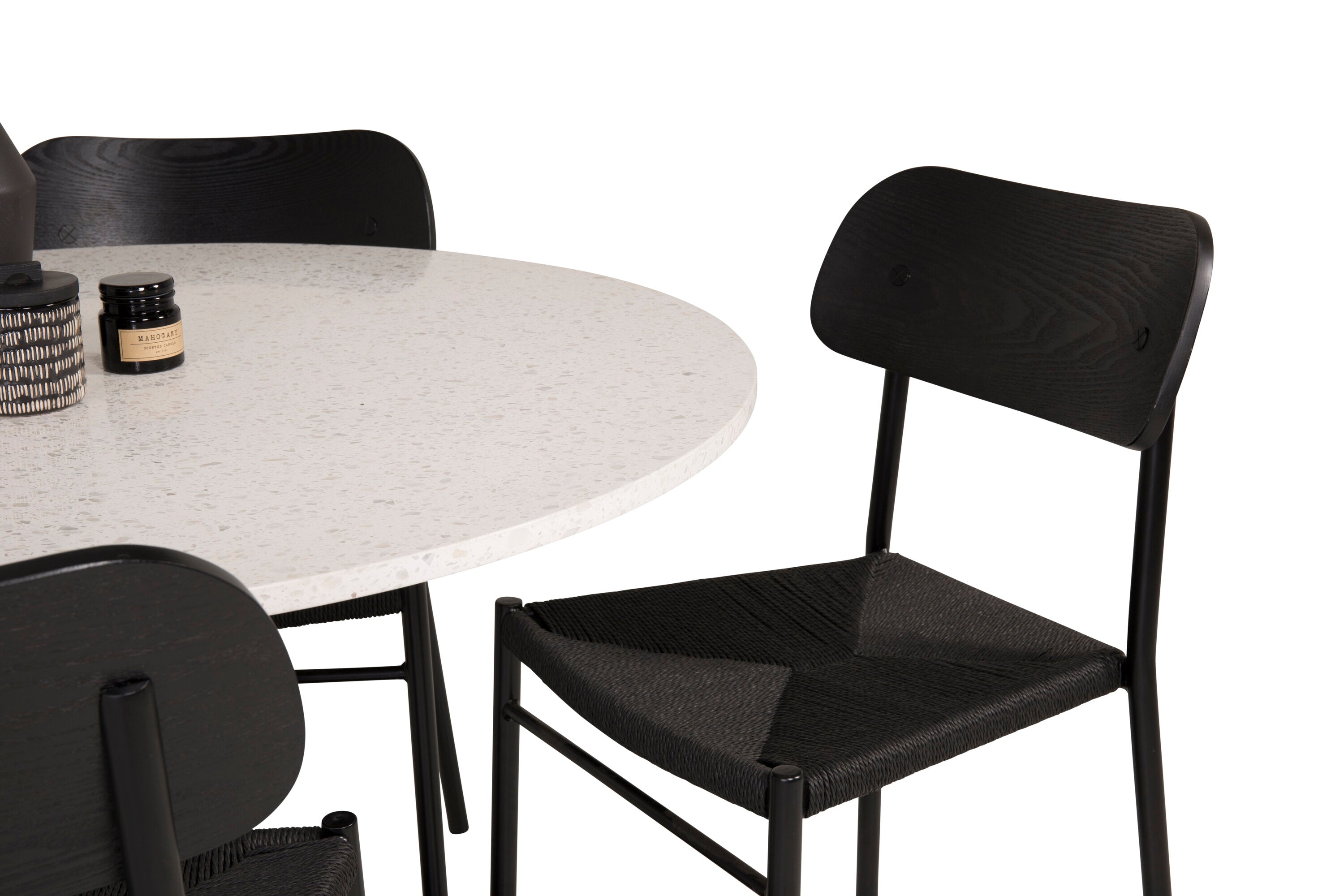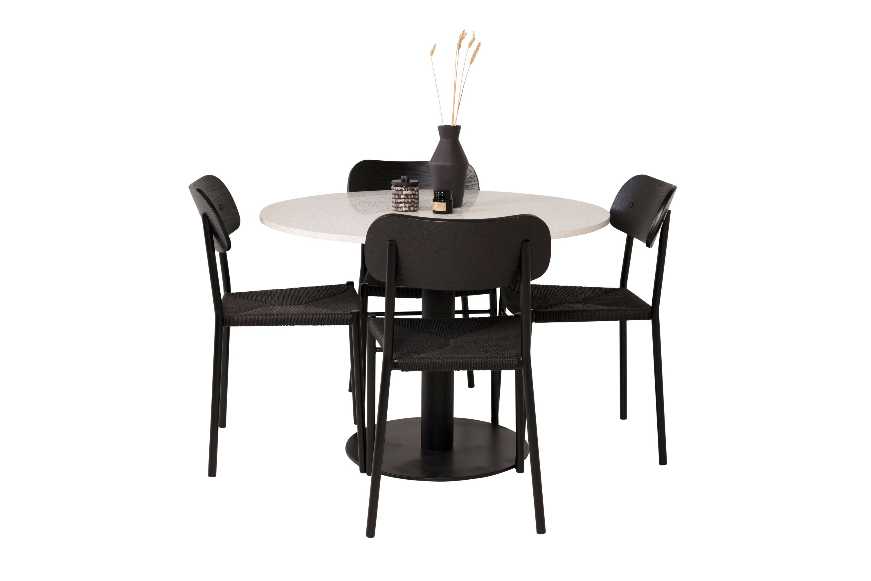 Jídelní stůl Razzia 106 cm – Bílá Terazzo / Černá + Jídelní židle Polly – Černá / Černá _4