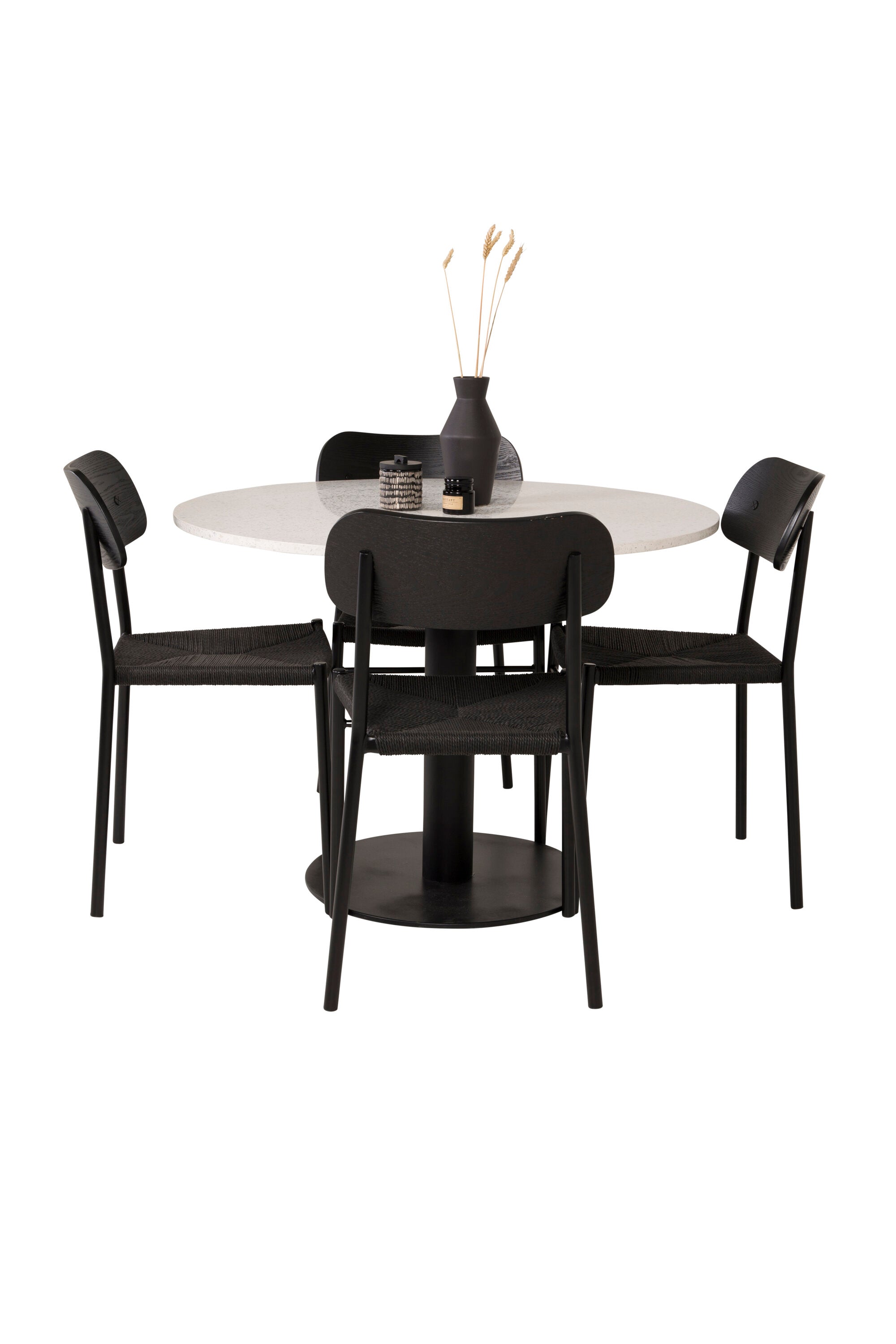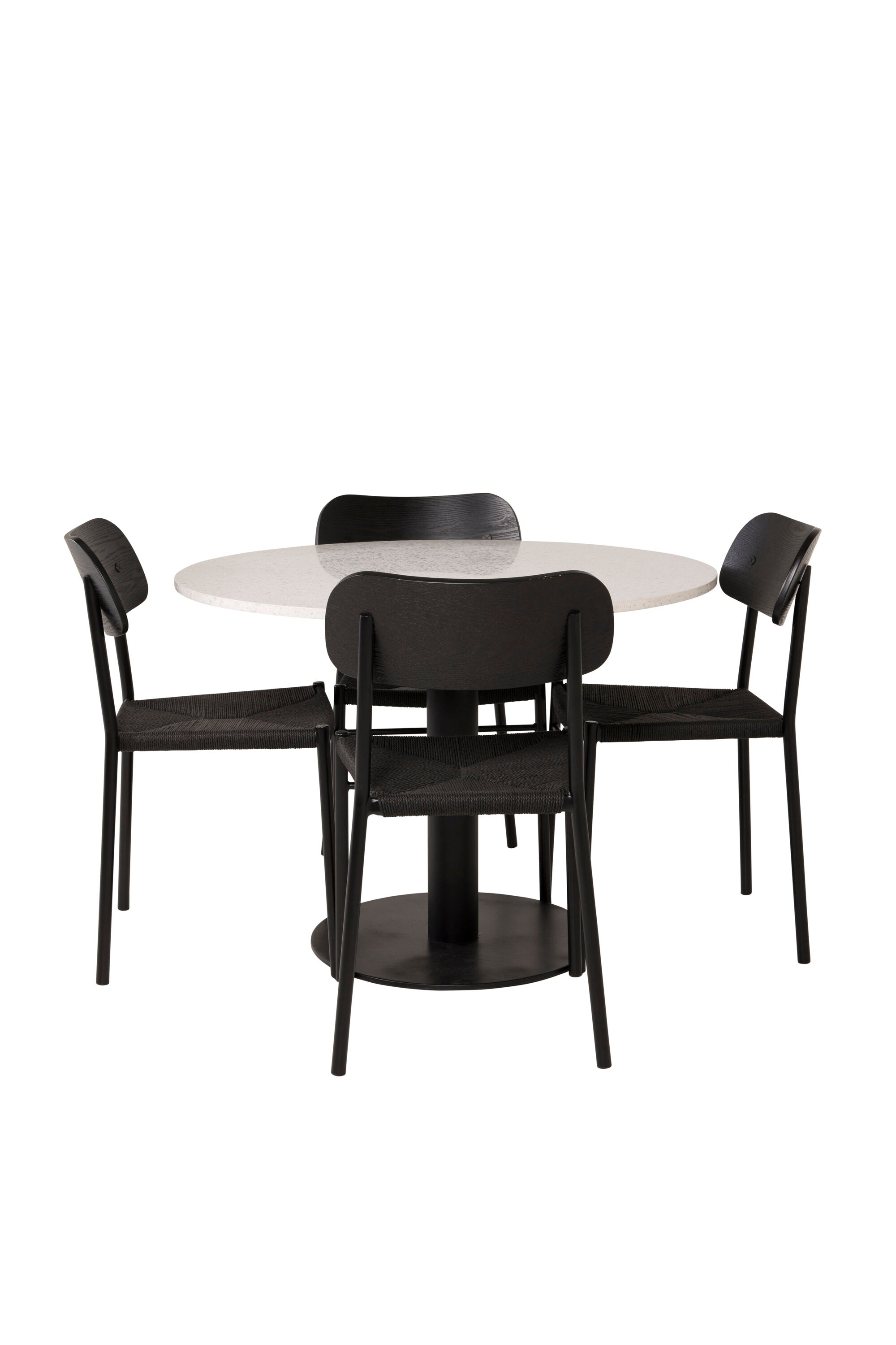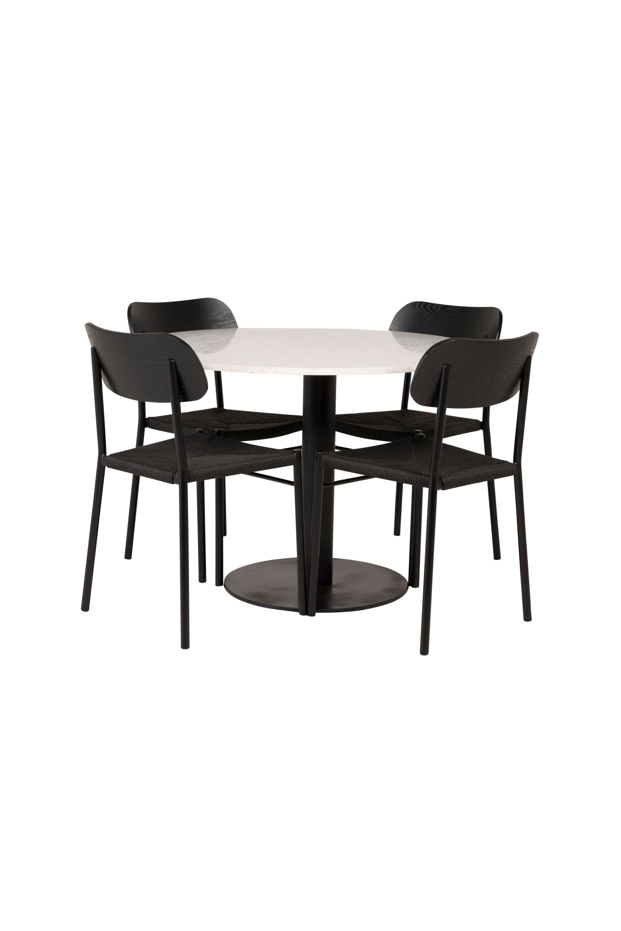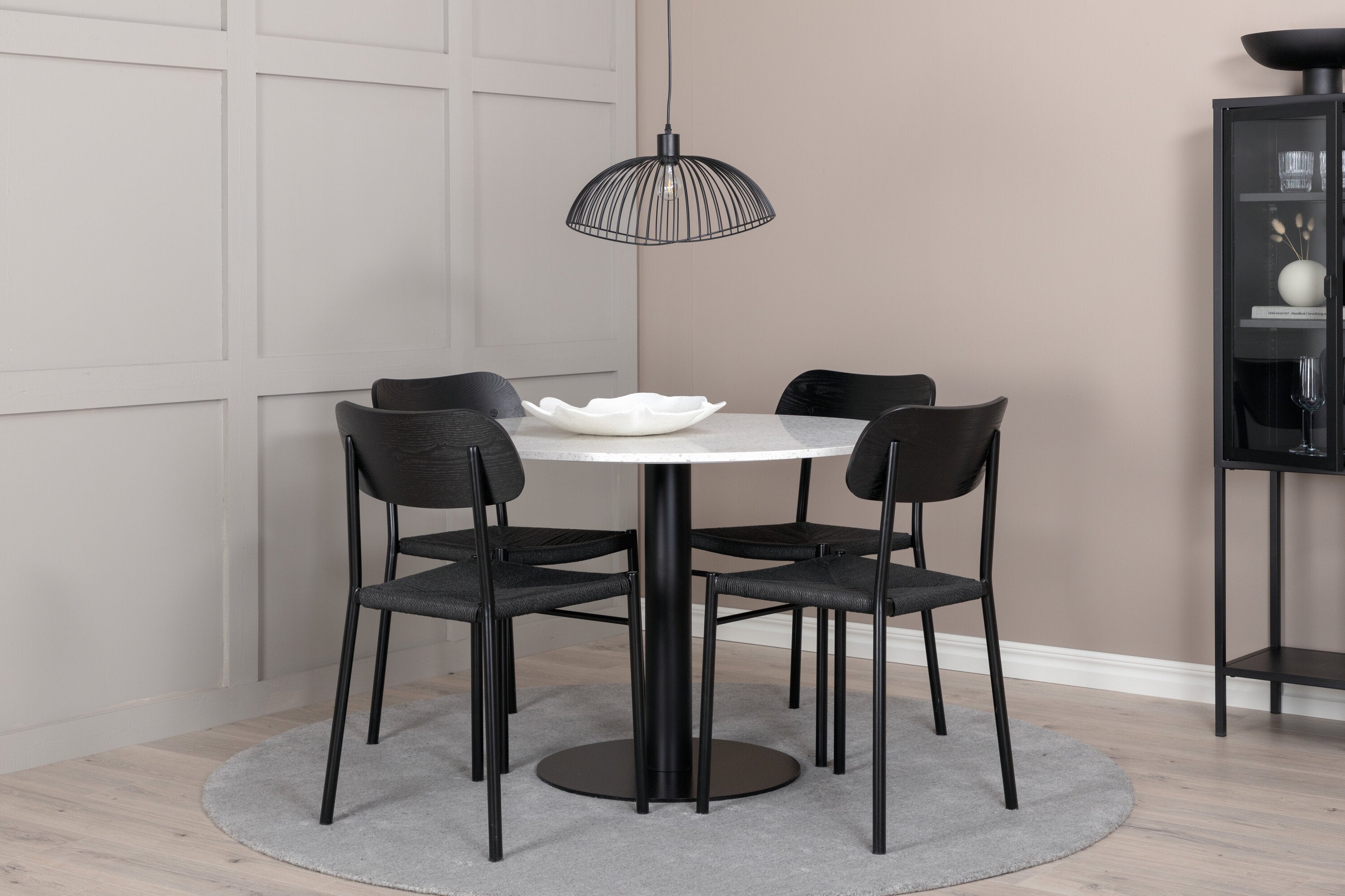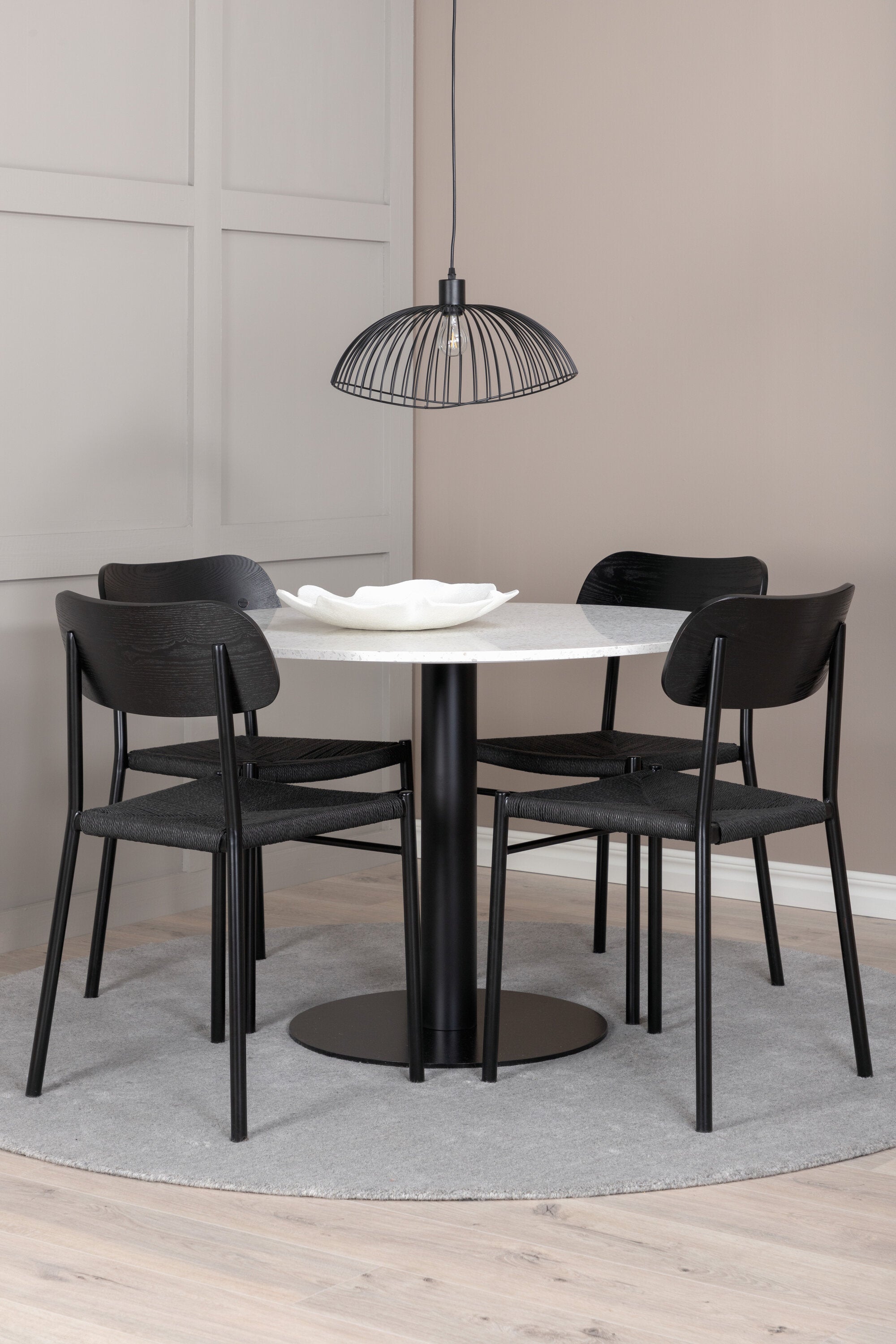 Jídelní stůl Razzia 106 cm – Bílá Terazzo / Černá + Jídelní židle Polly – Černá / Černá _4