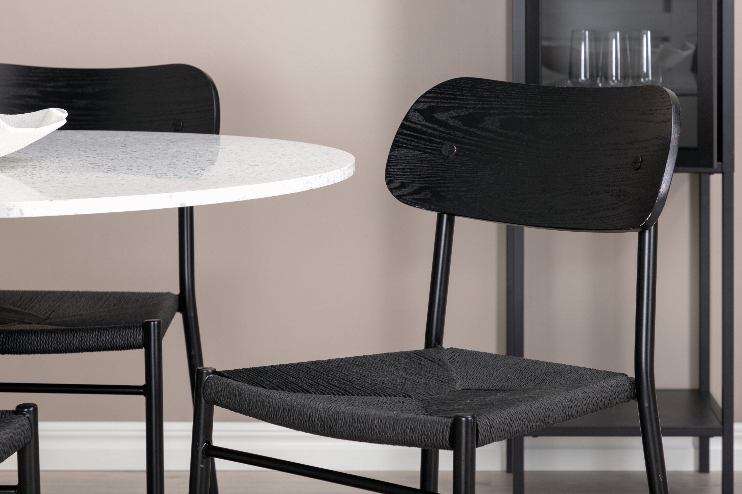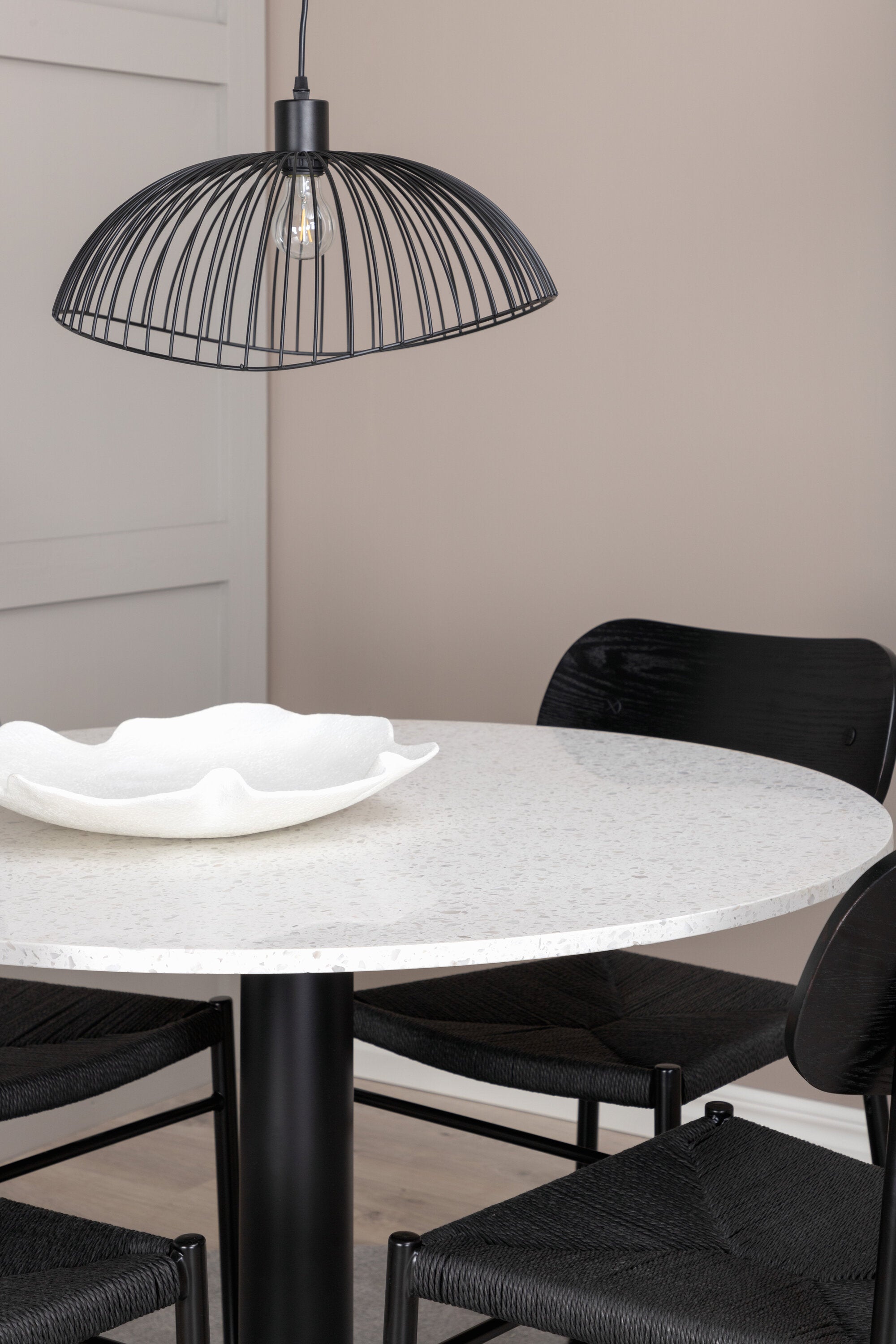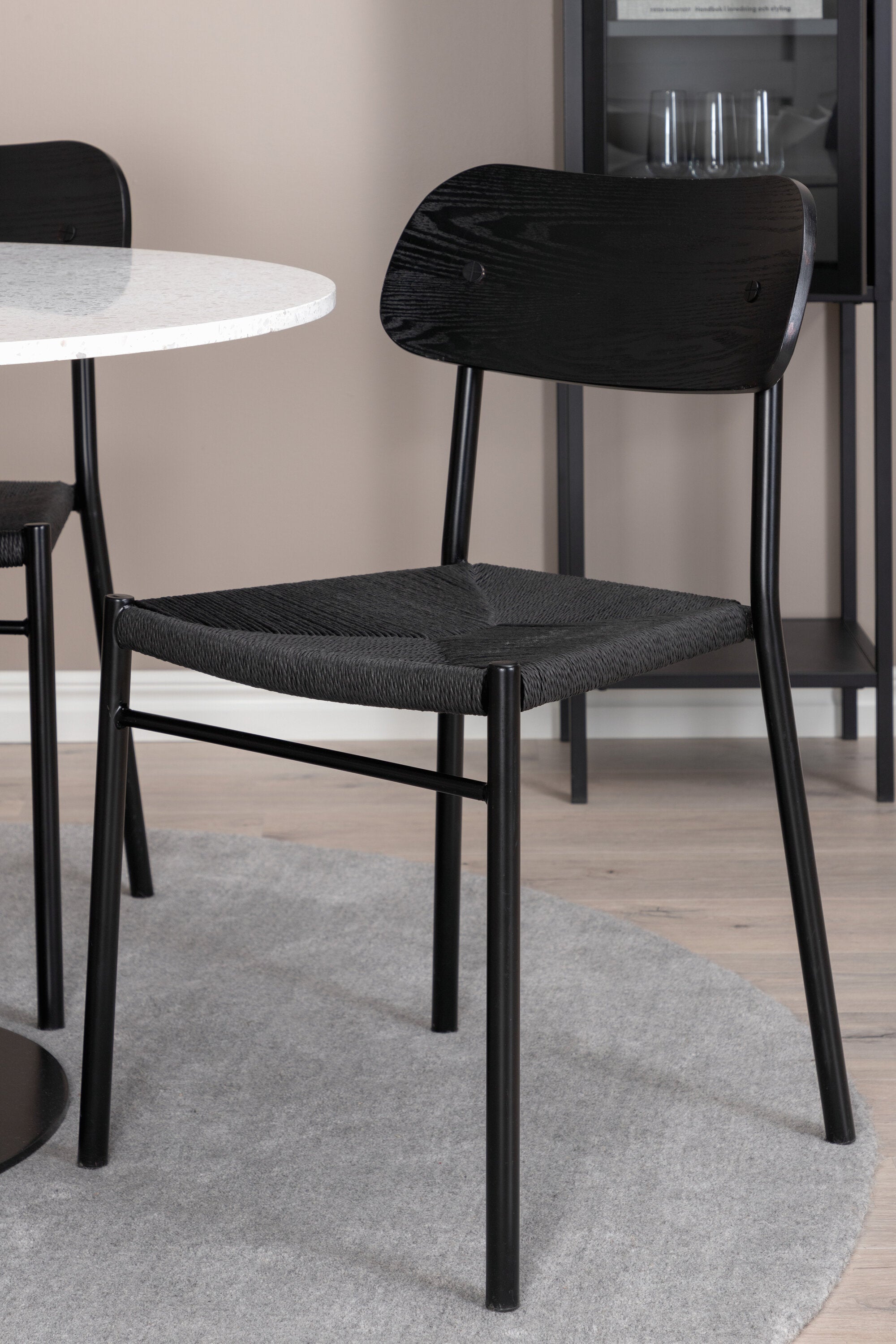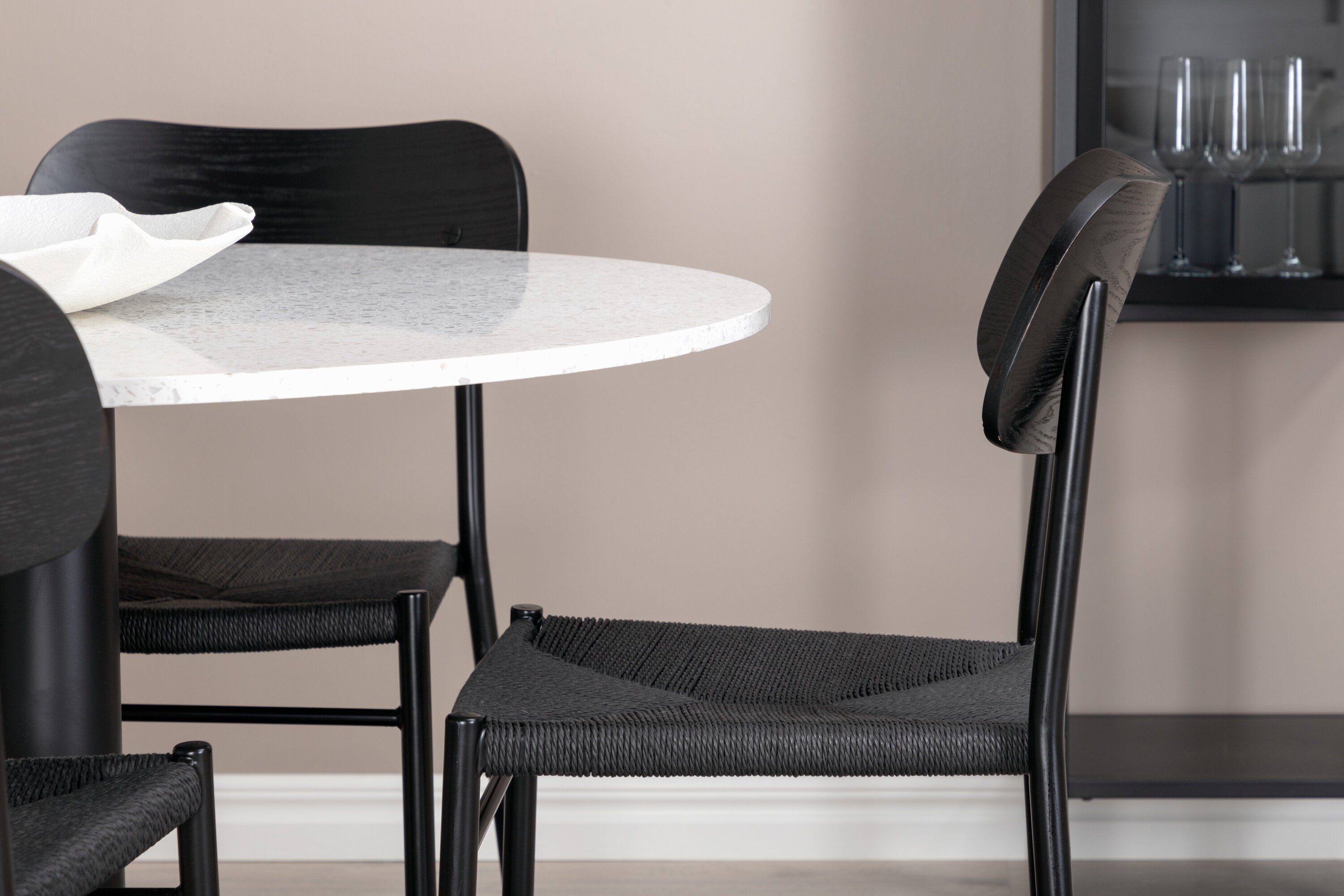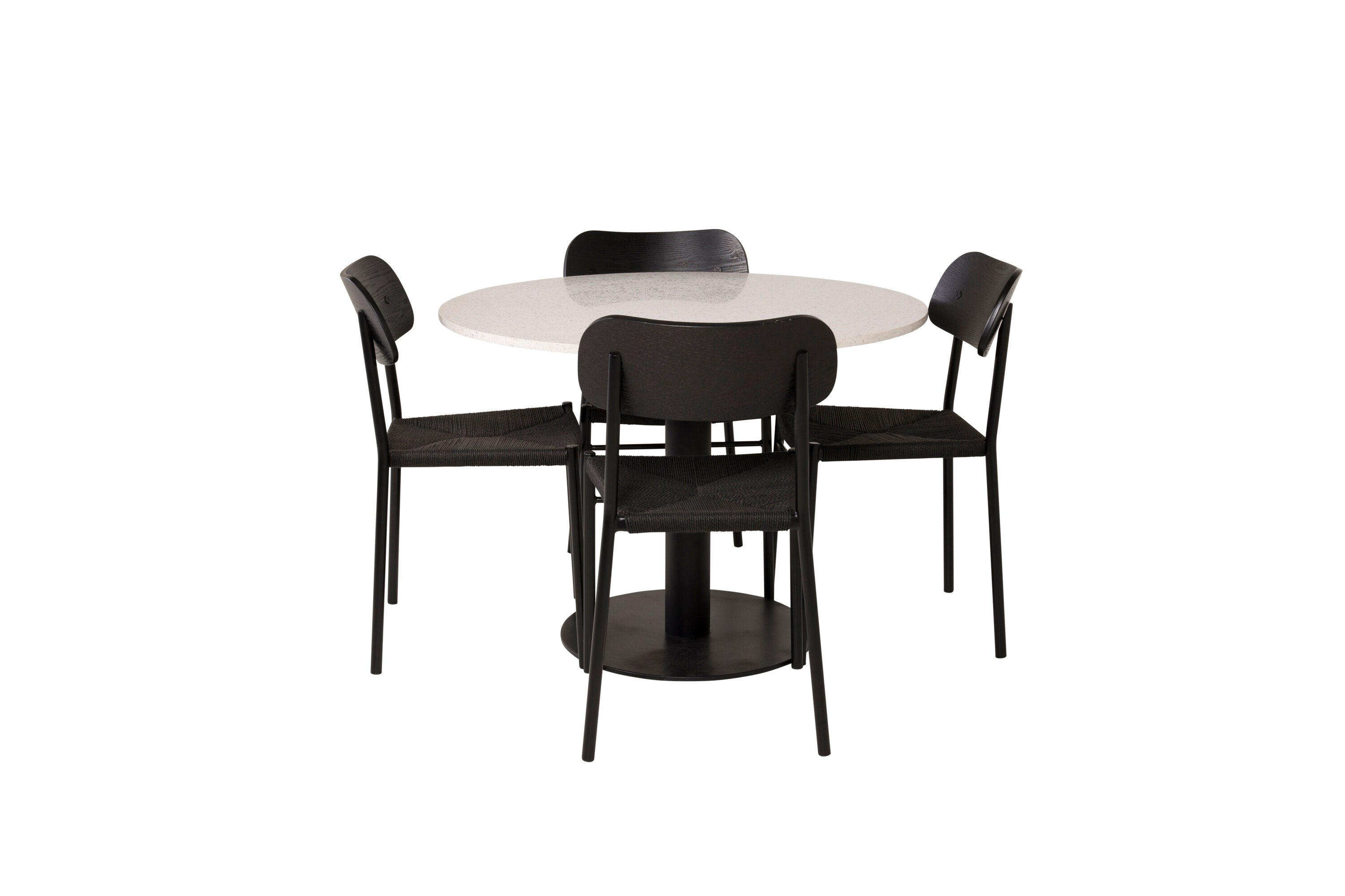 Jídelní stůl Razzia 106 cm – Bílá Terazzo / Černá + Jídelní židle Polly – Černá / Černá _4