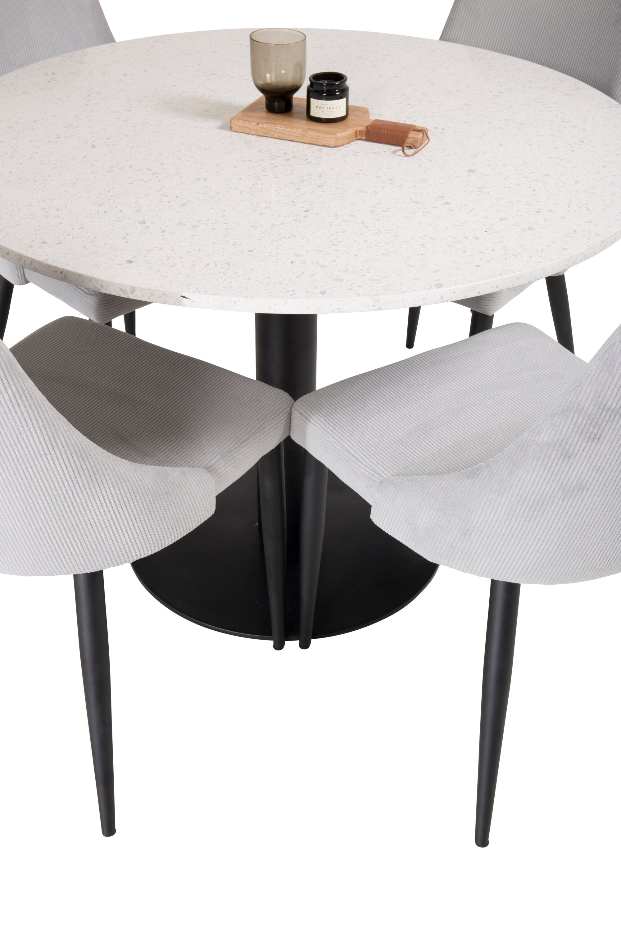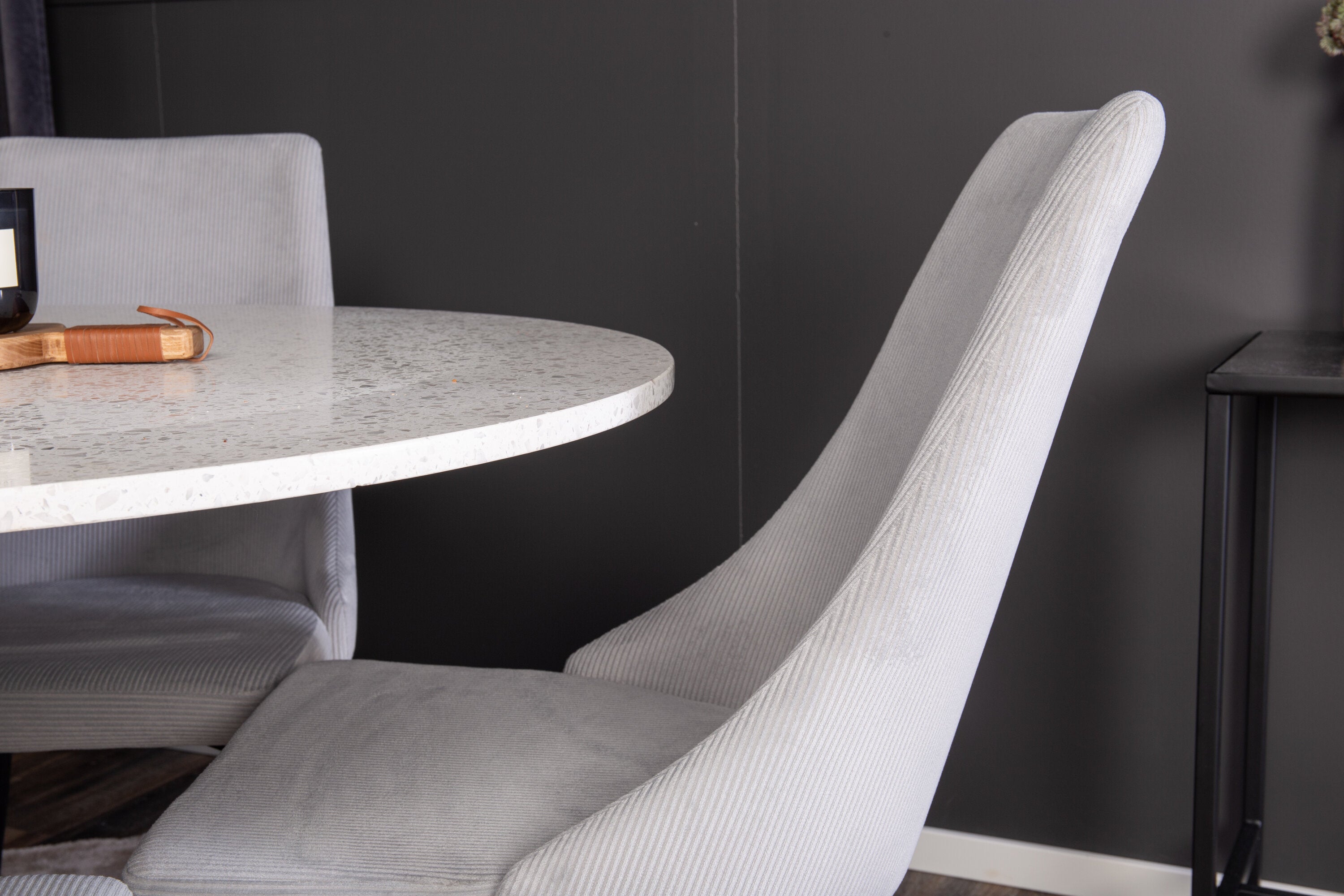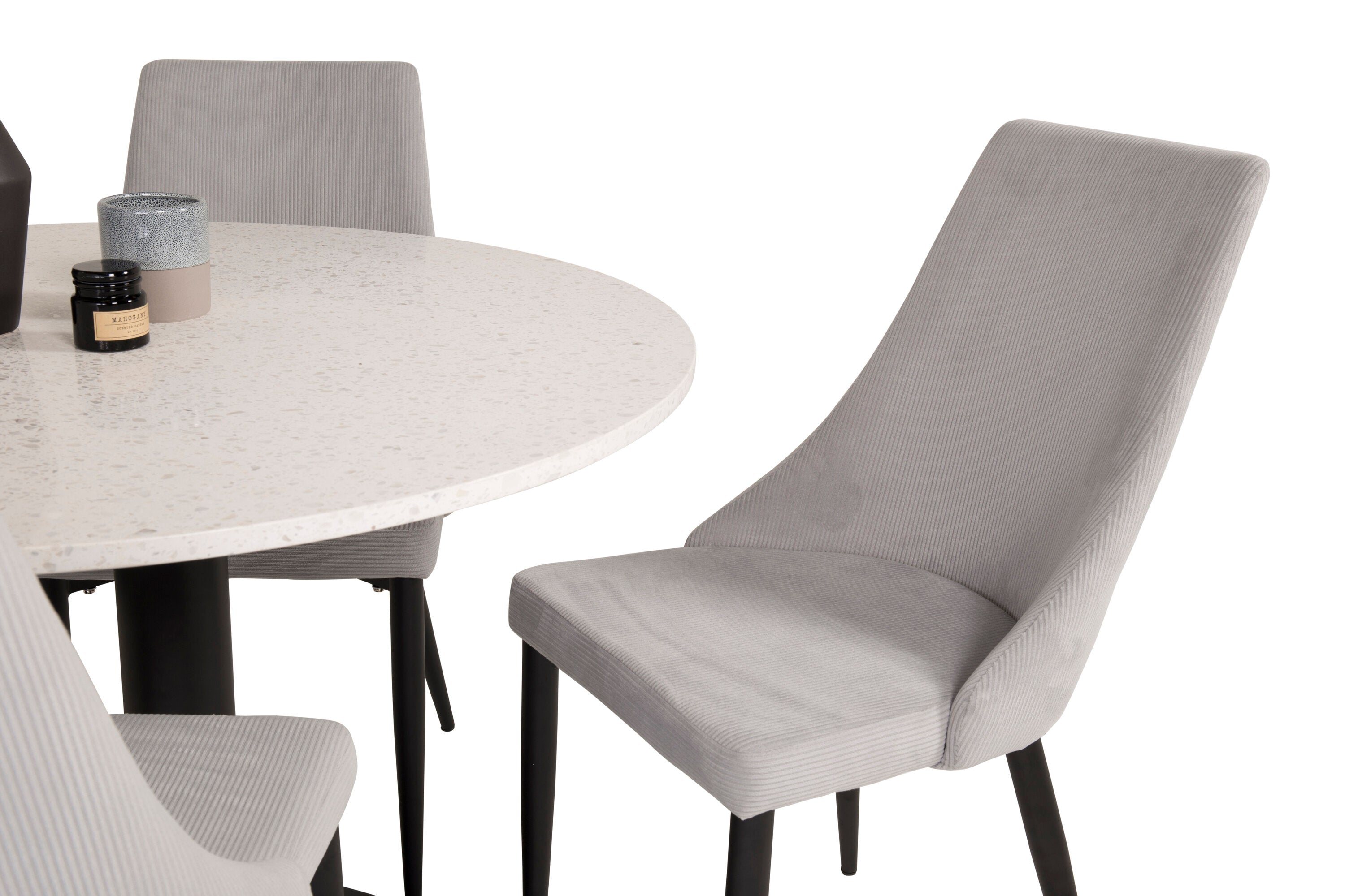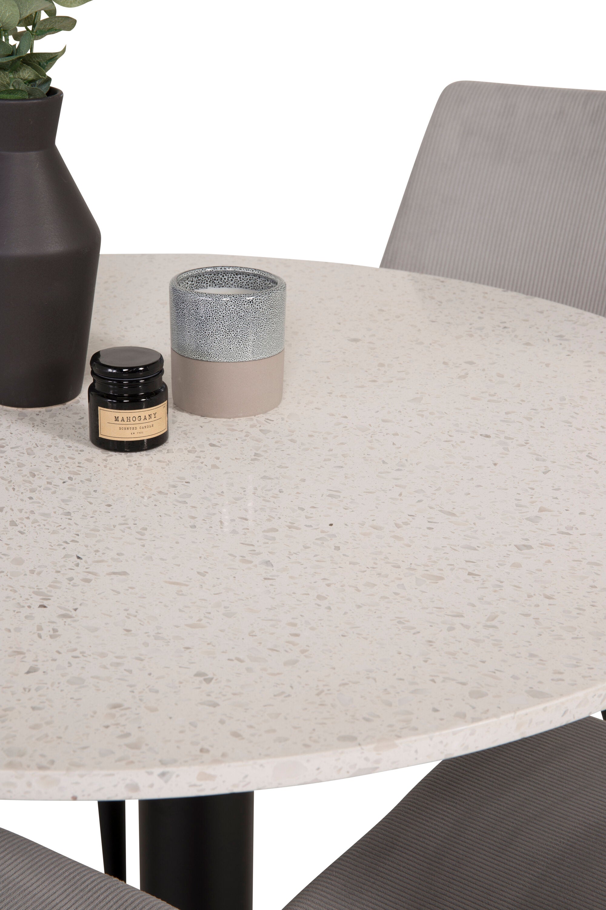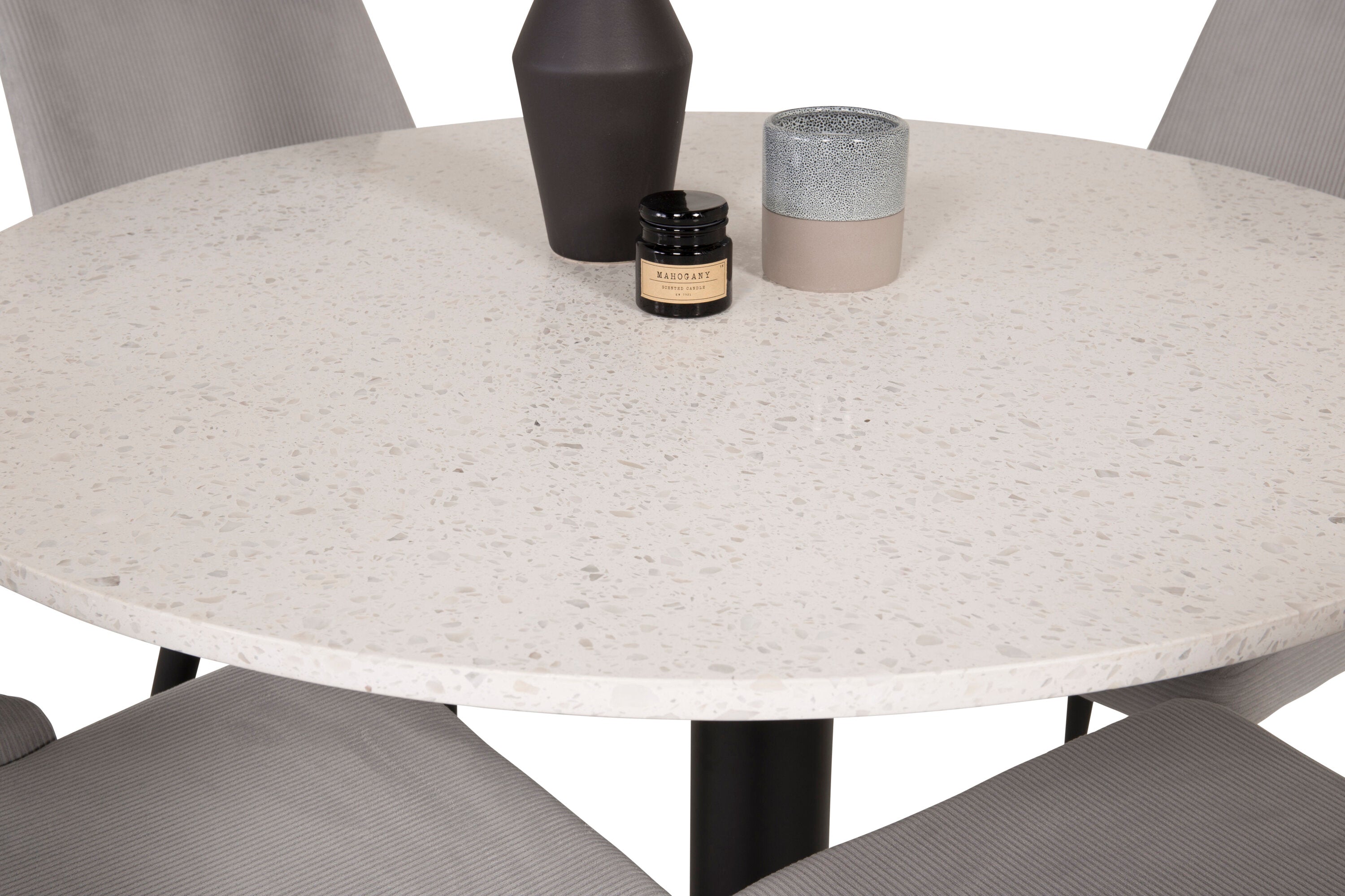 Jídelní stůl Razzia 106 cm -Bílá Terazzo / Černá +Leone jídelní židle - Černé nohy / Světle Šedá manšestrová _4