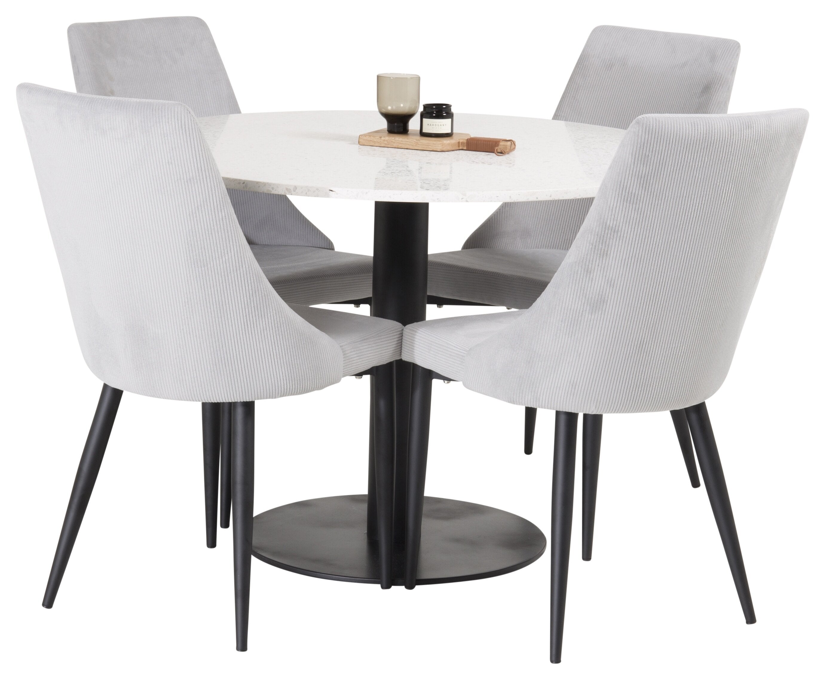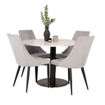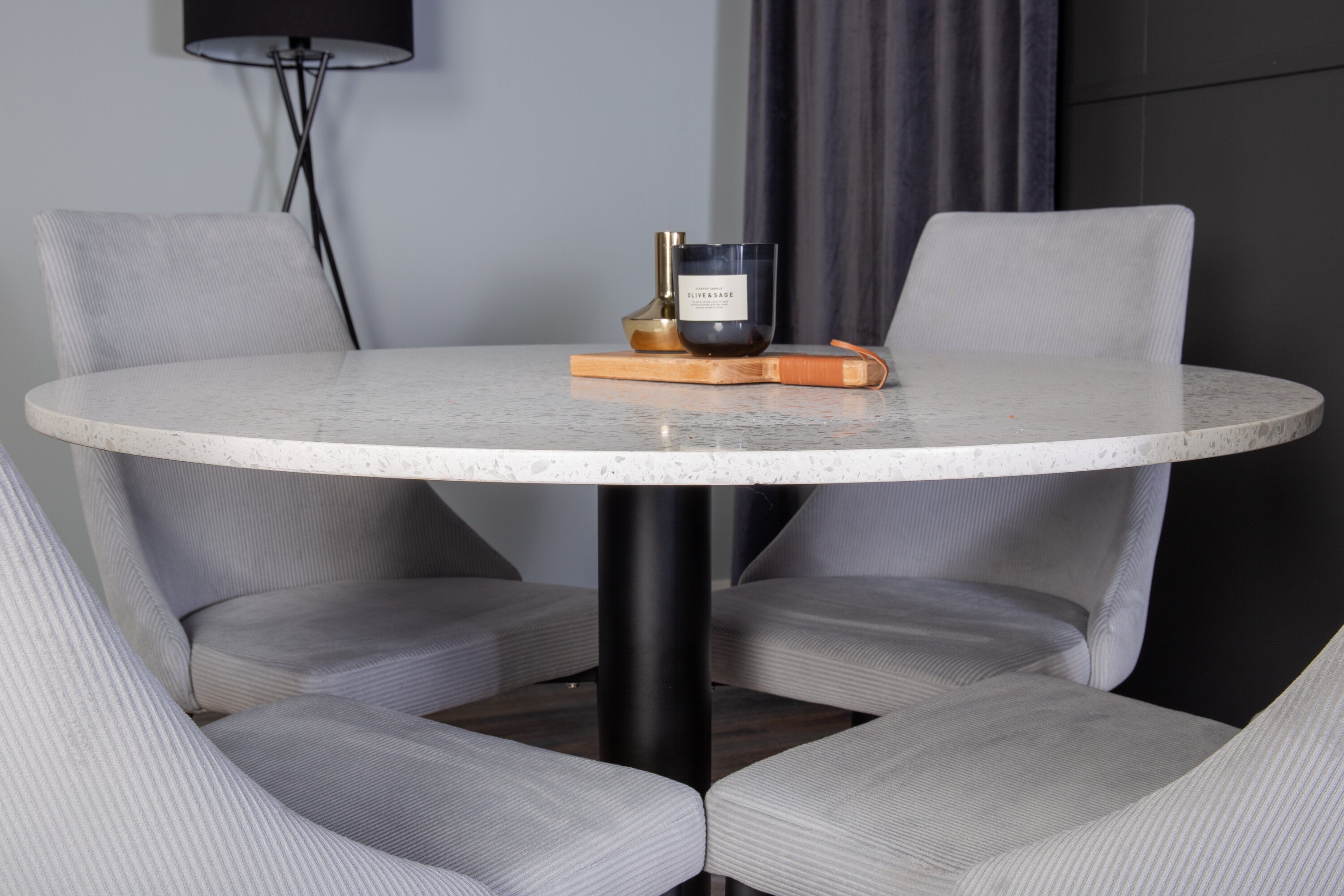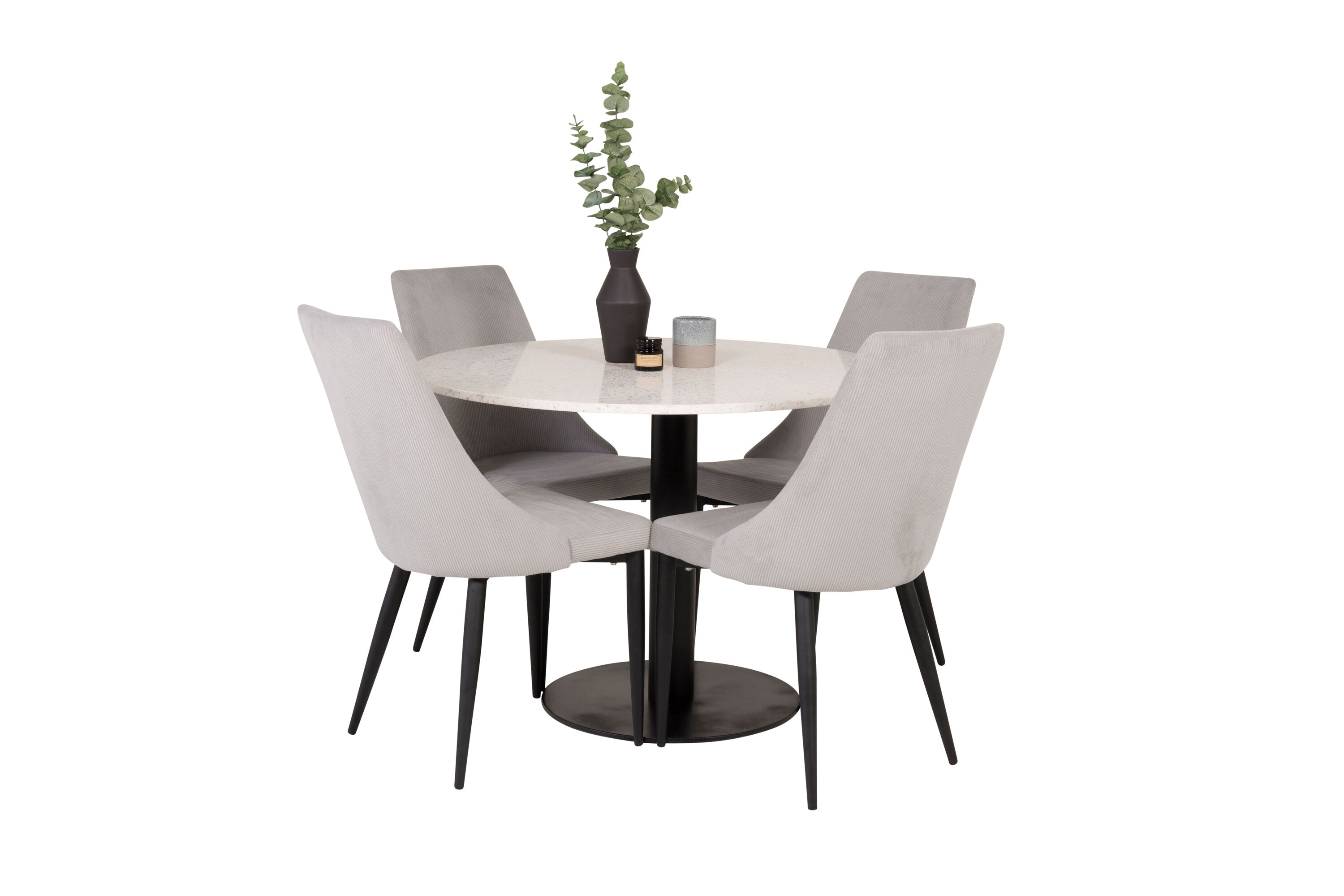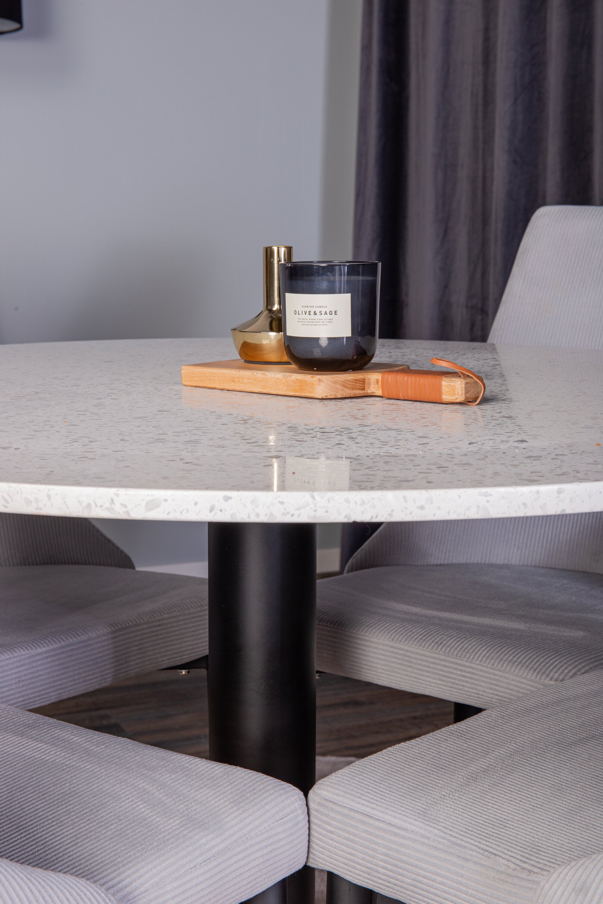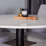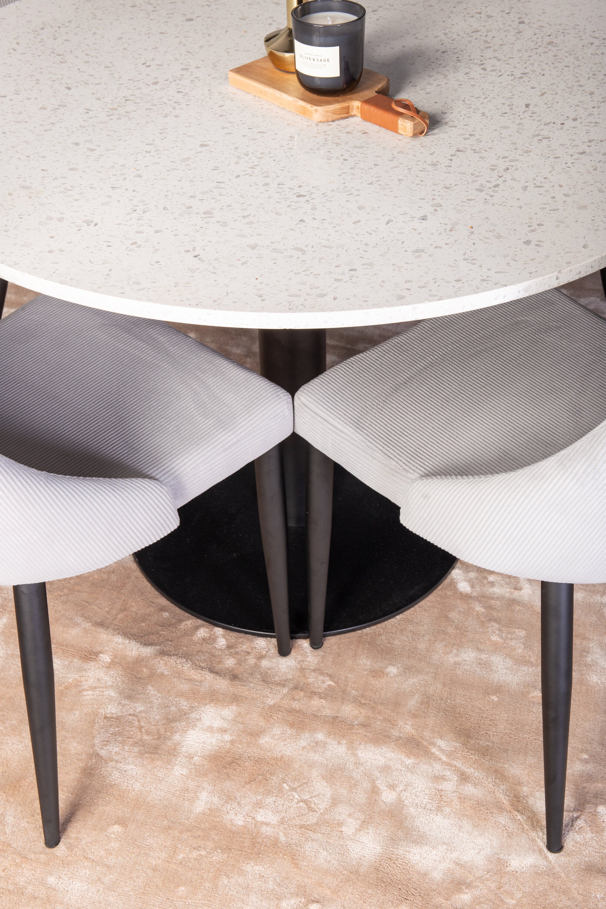 Jídelní stůl Razzia 106 cm -Bílá Terazzo / Černá +Leone jídelní židle - Černé nohy / Světle Šedá manšestrová _4