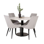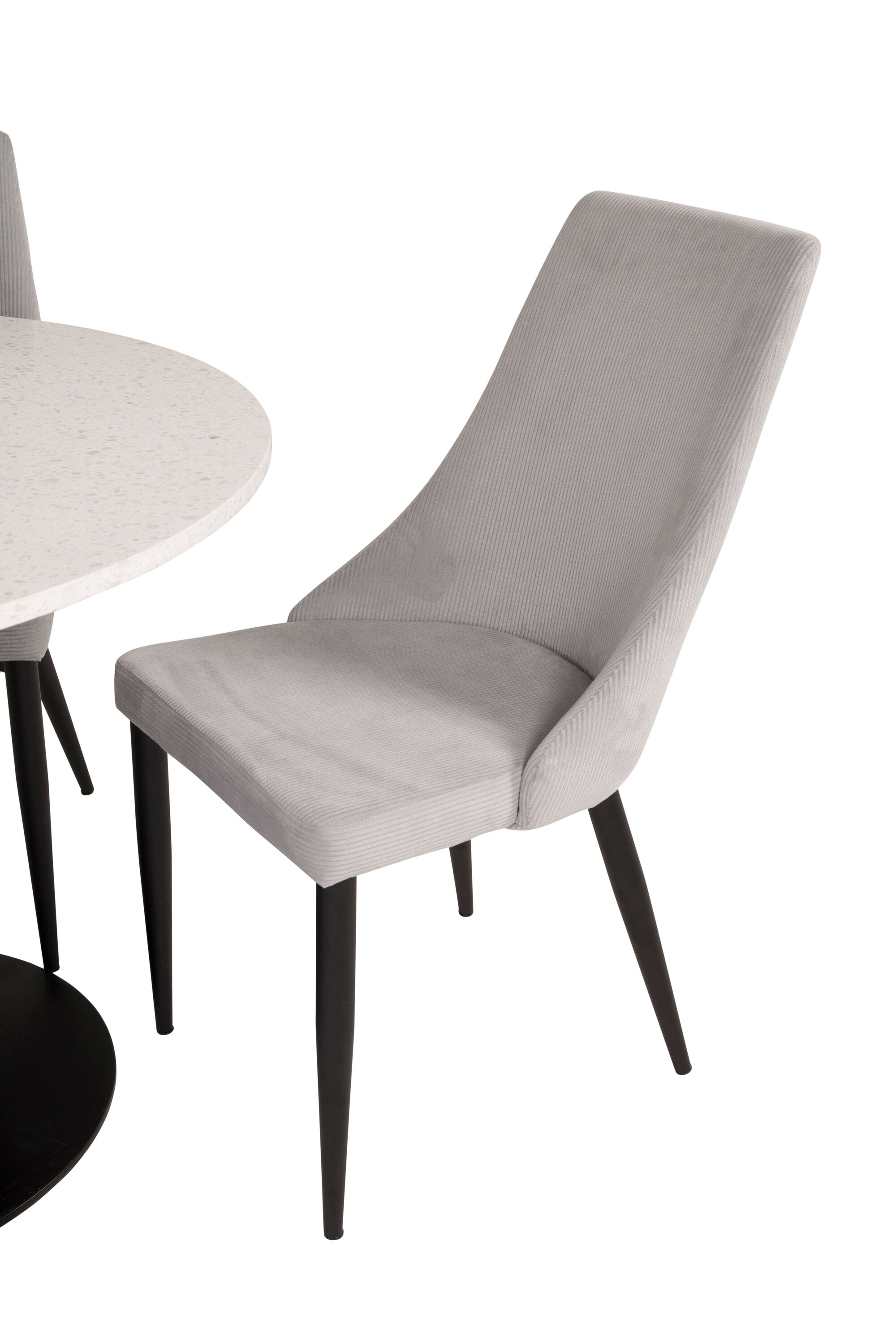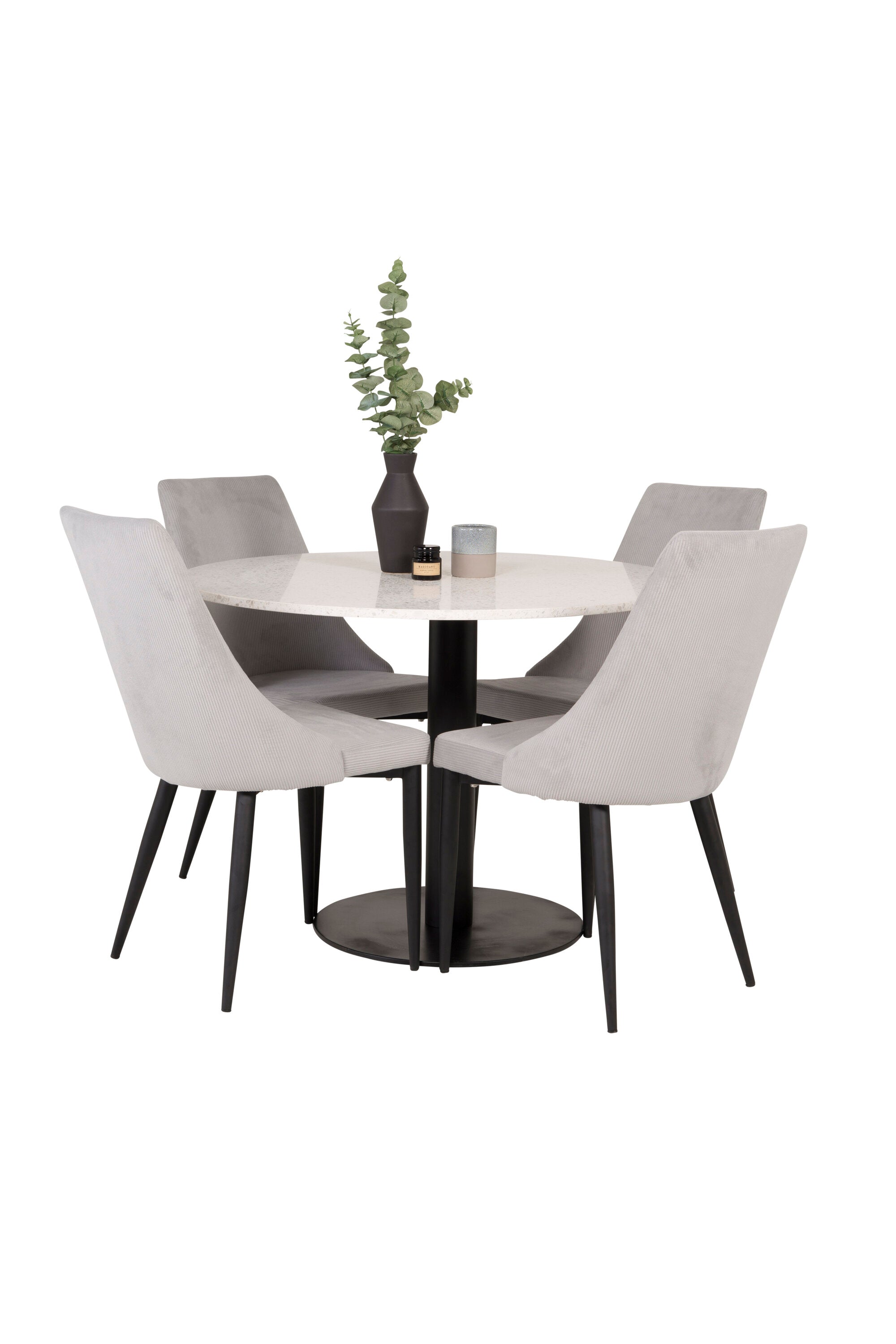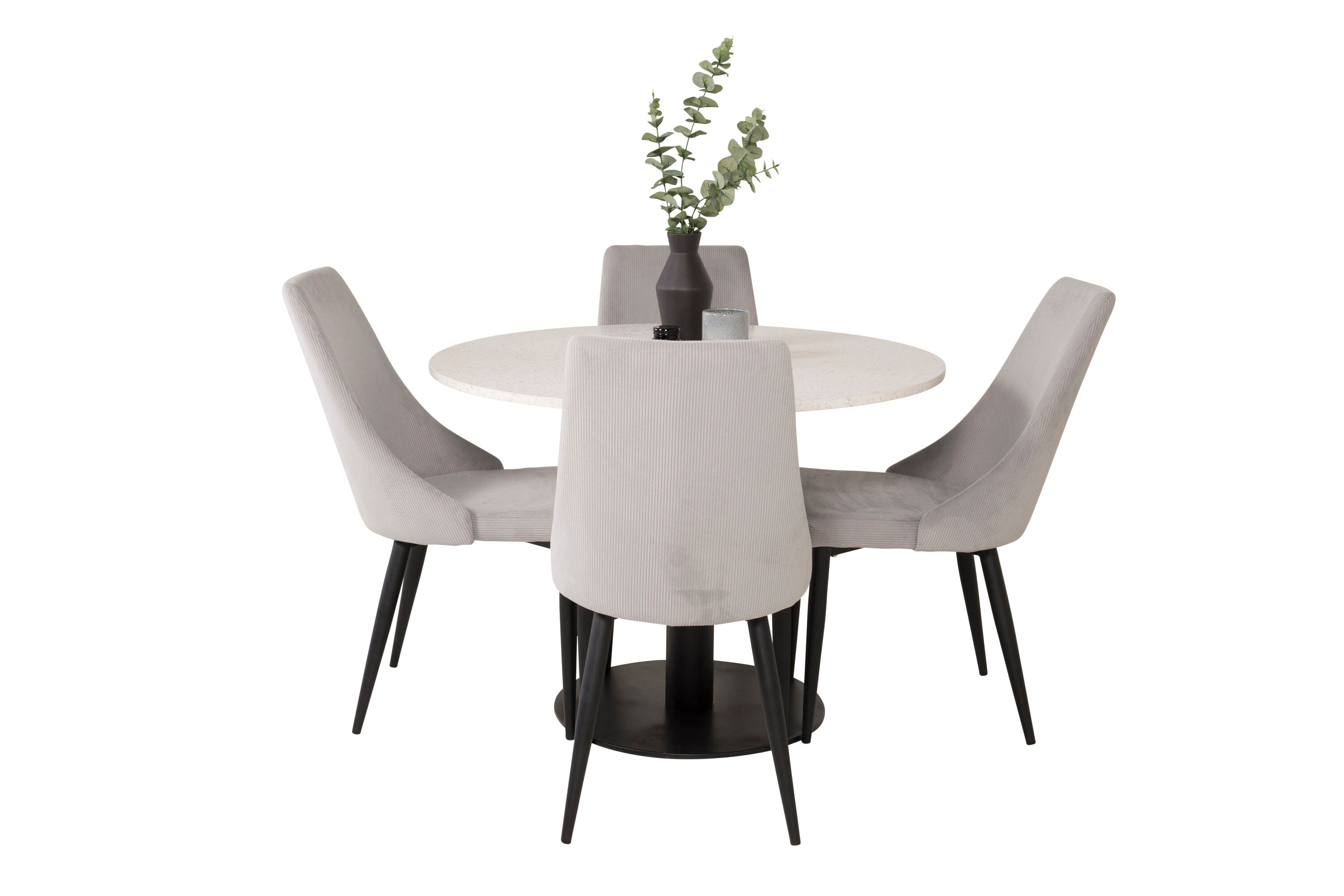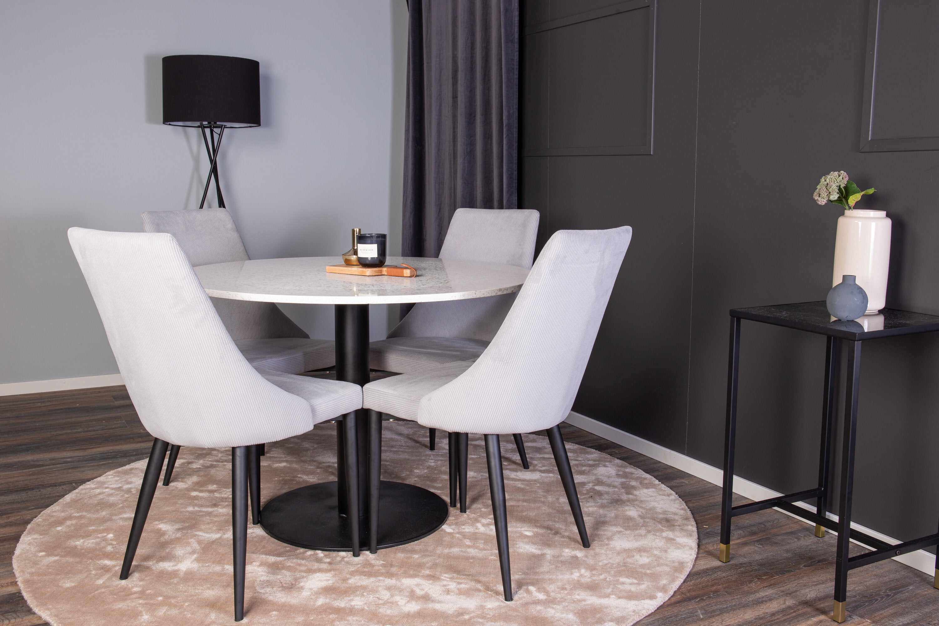 Jídelní stůl Razzia 106 cm -Bílá Terazzo / Černá +Leone jídelní židle - Černé nohy / Světle Šedá manšestrová _4