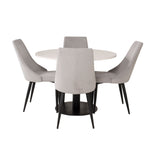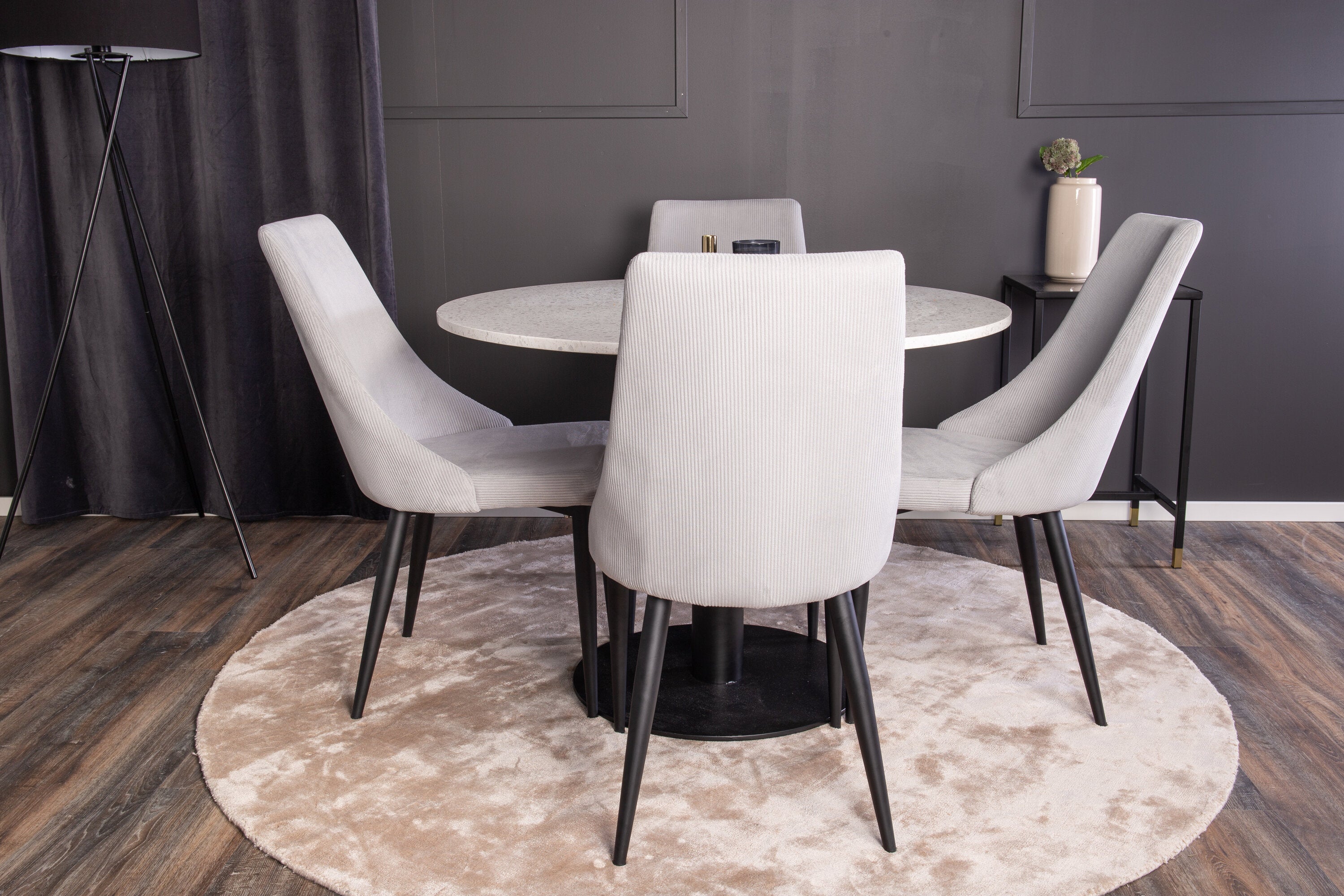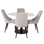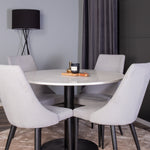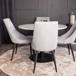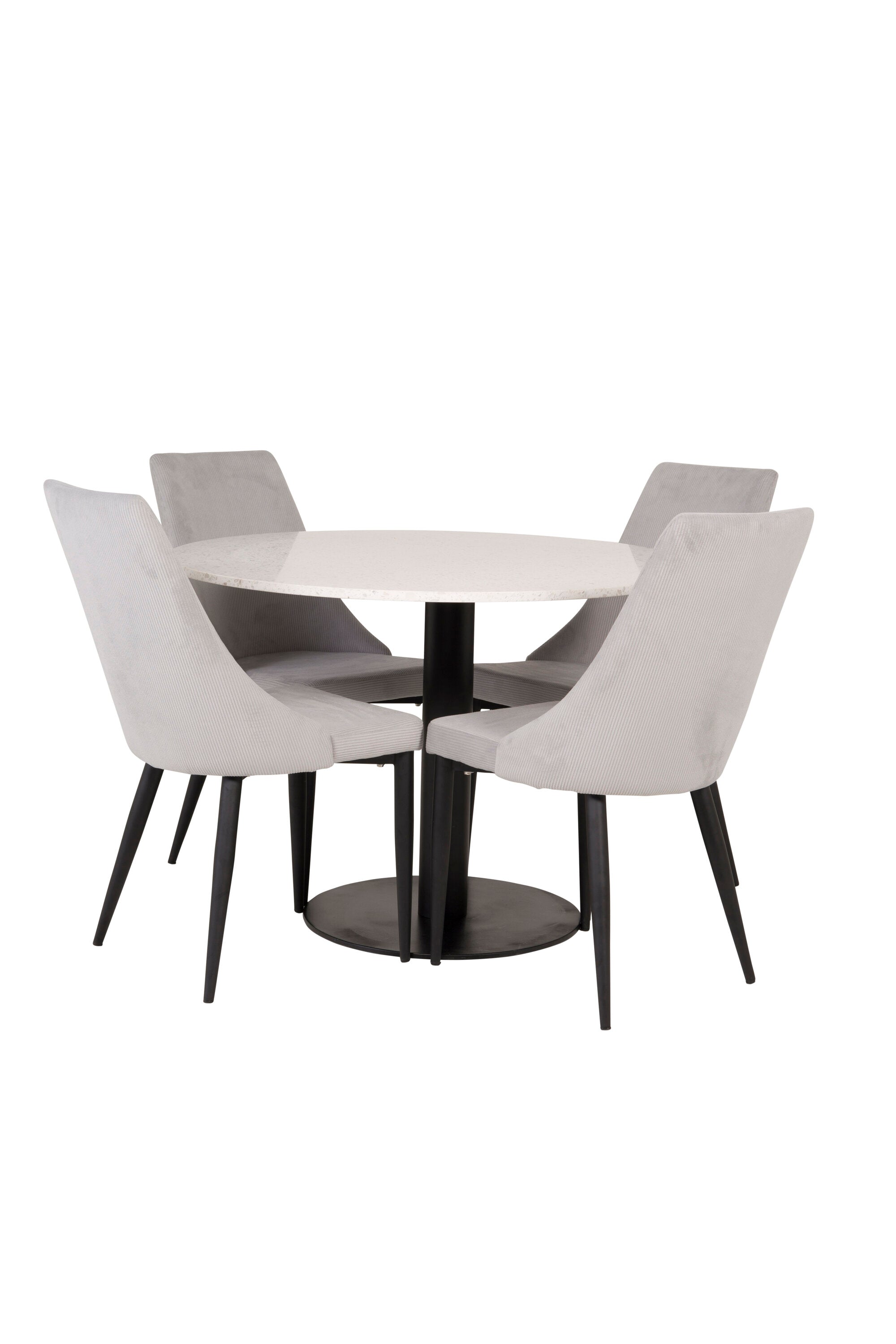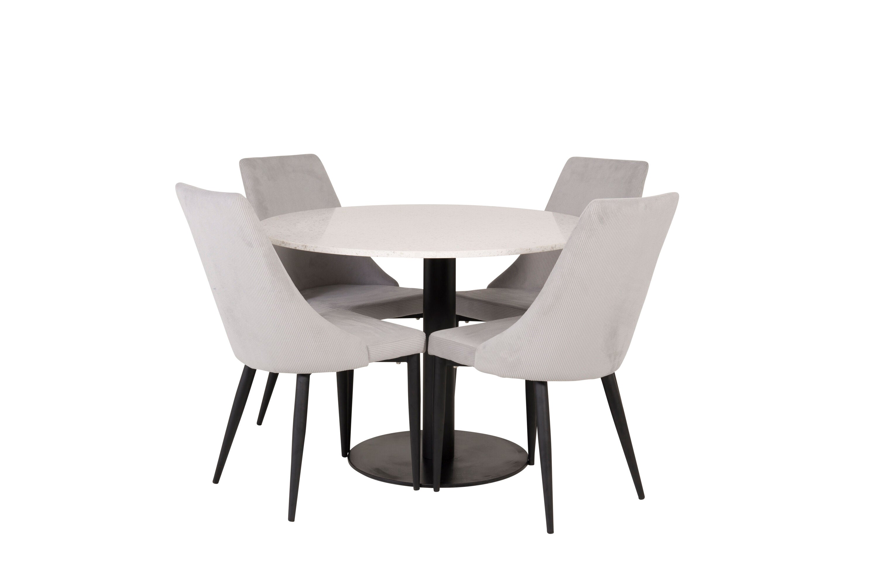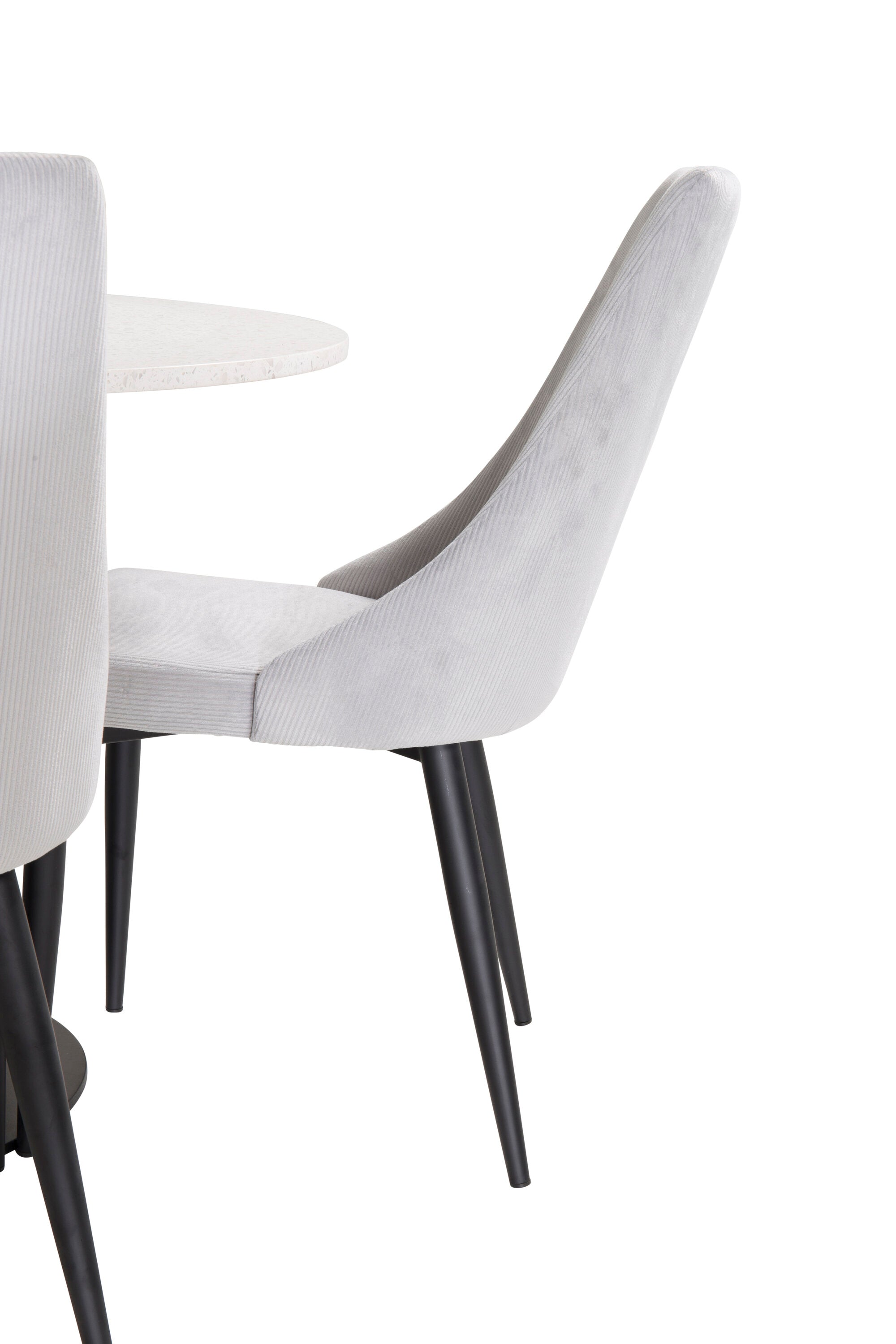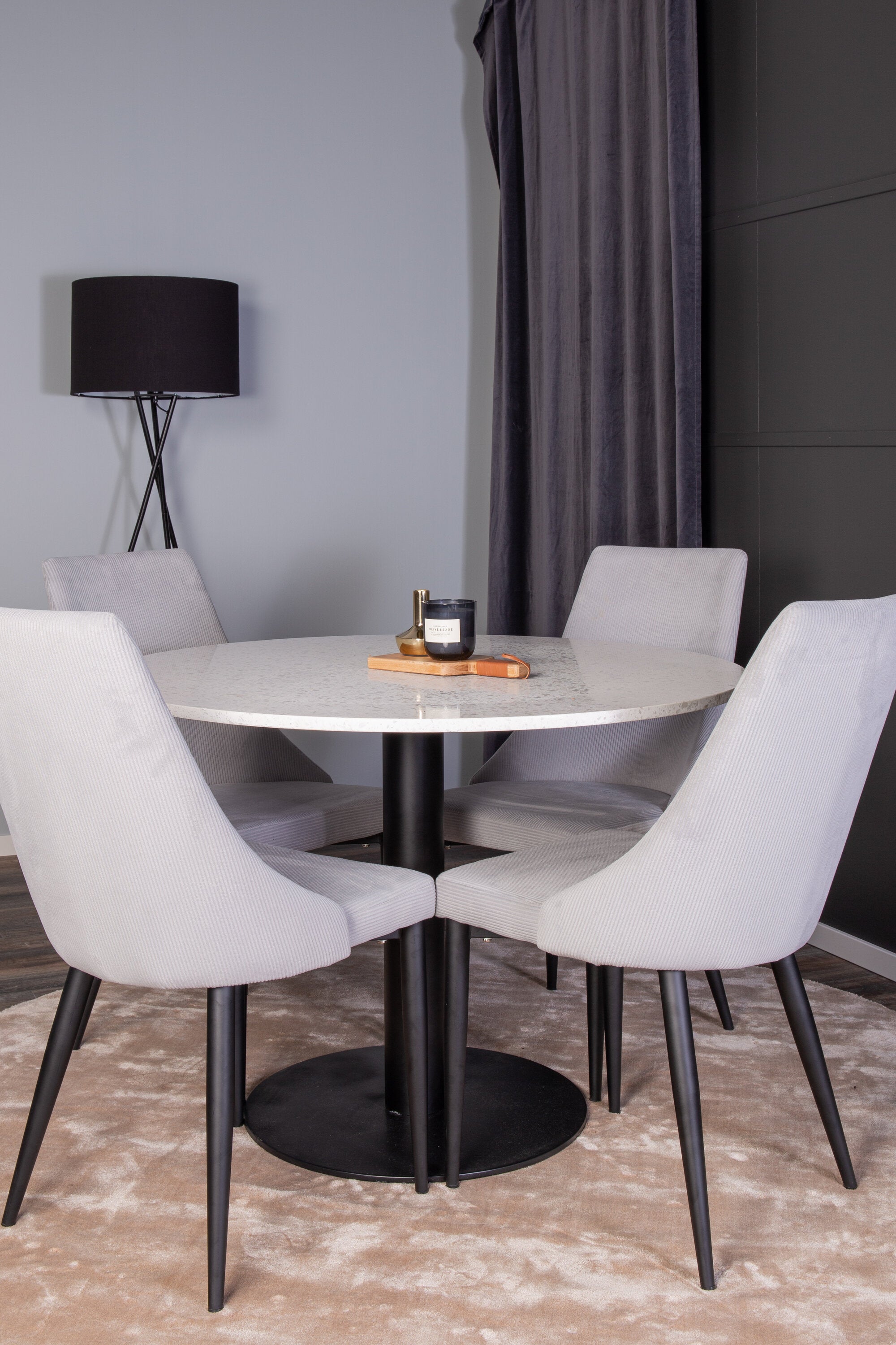 Jídelní stůl Razzia 106 cm -Bílá Terazzo / Černá +Leone jídelní židle - Černé nohy / Světle Šedá manšestrová _4